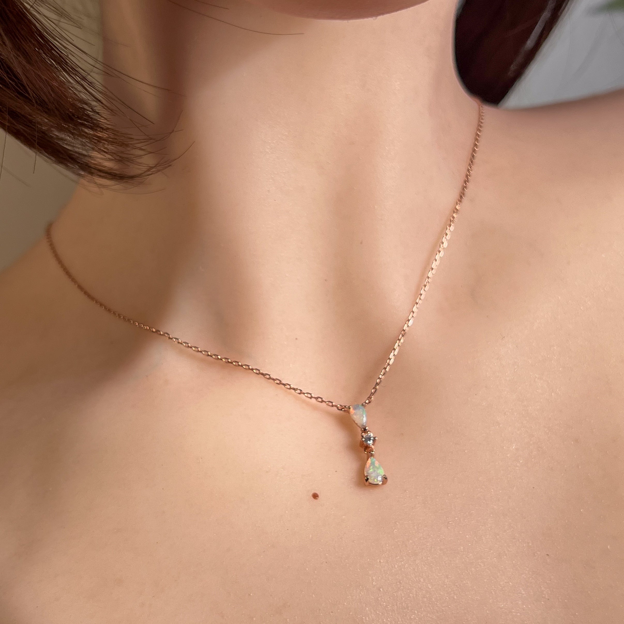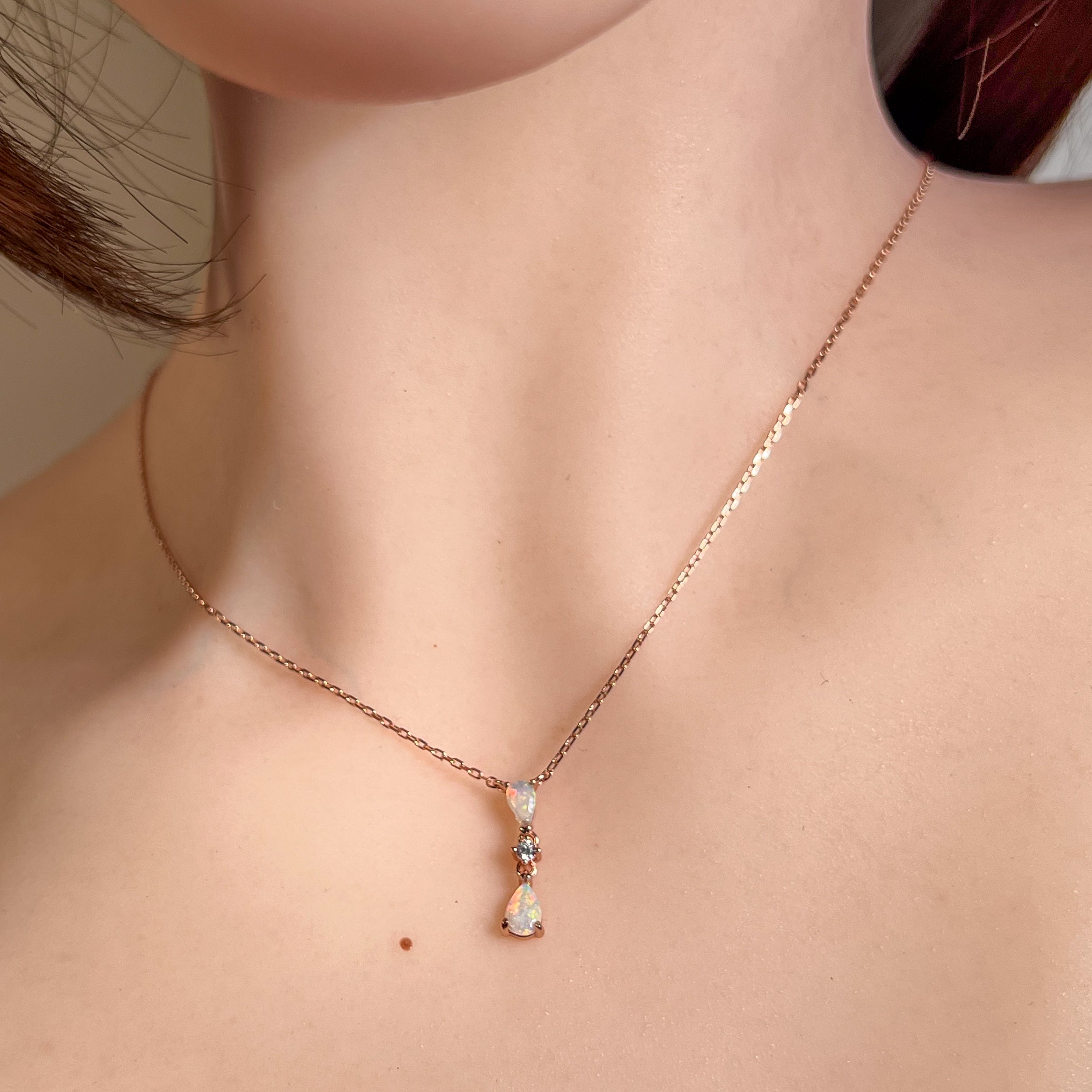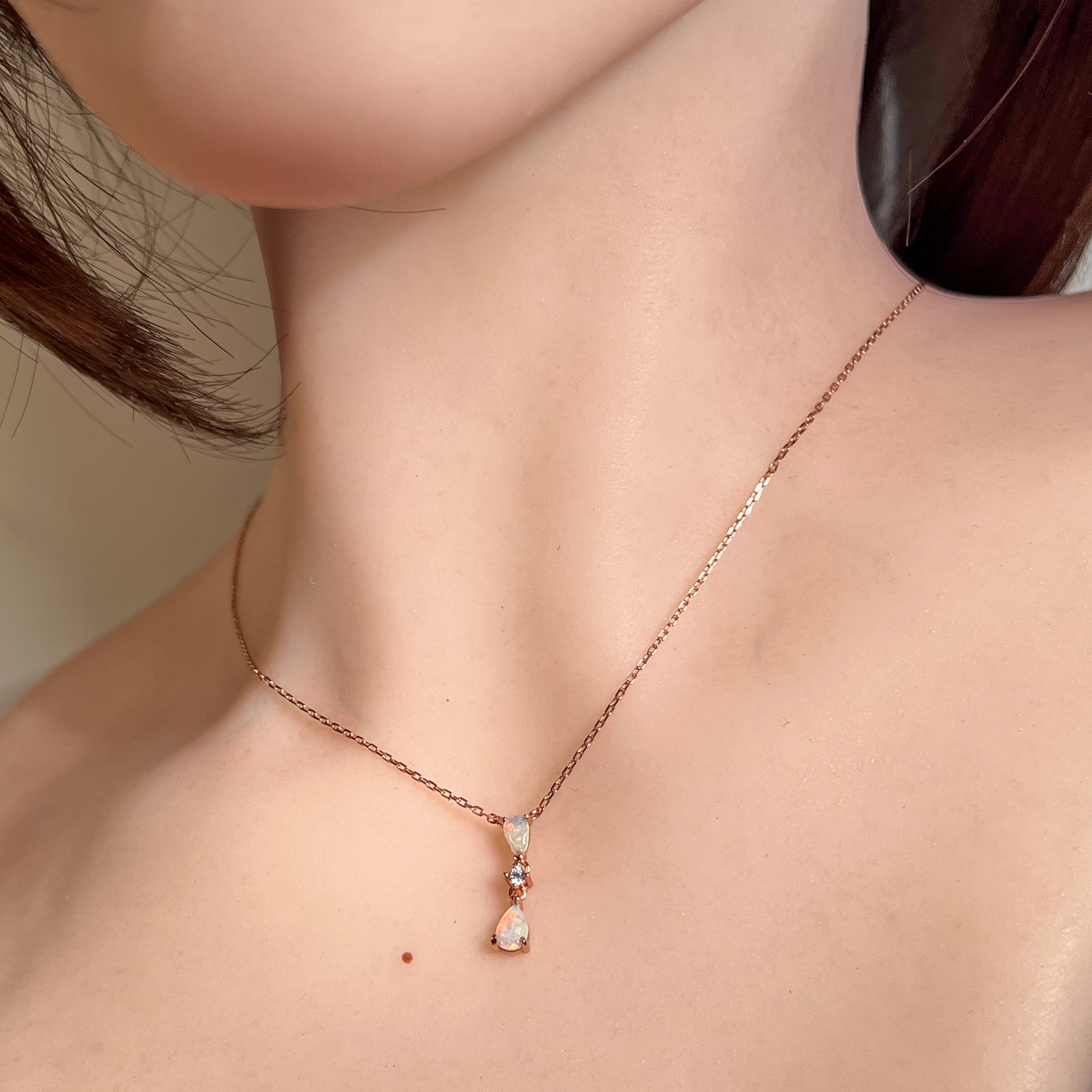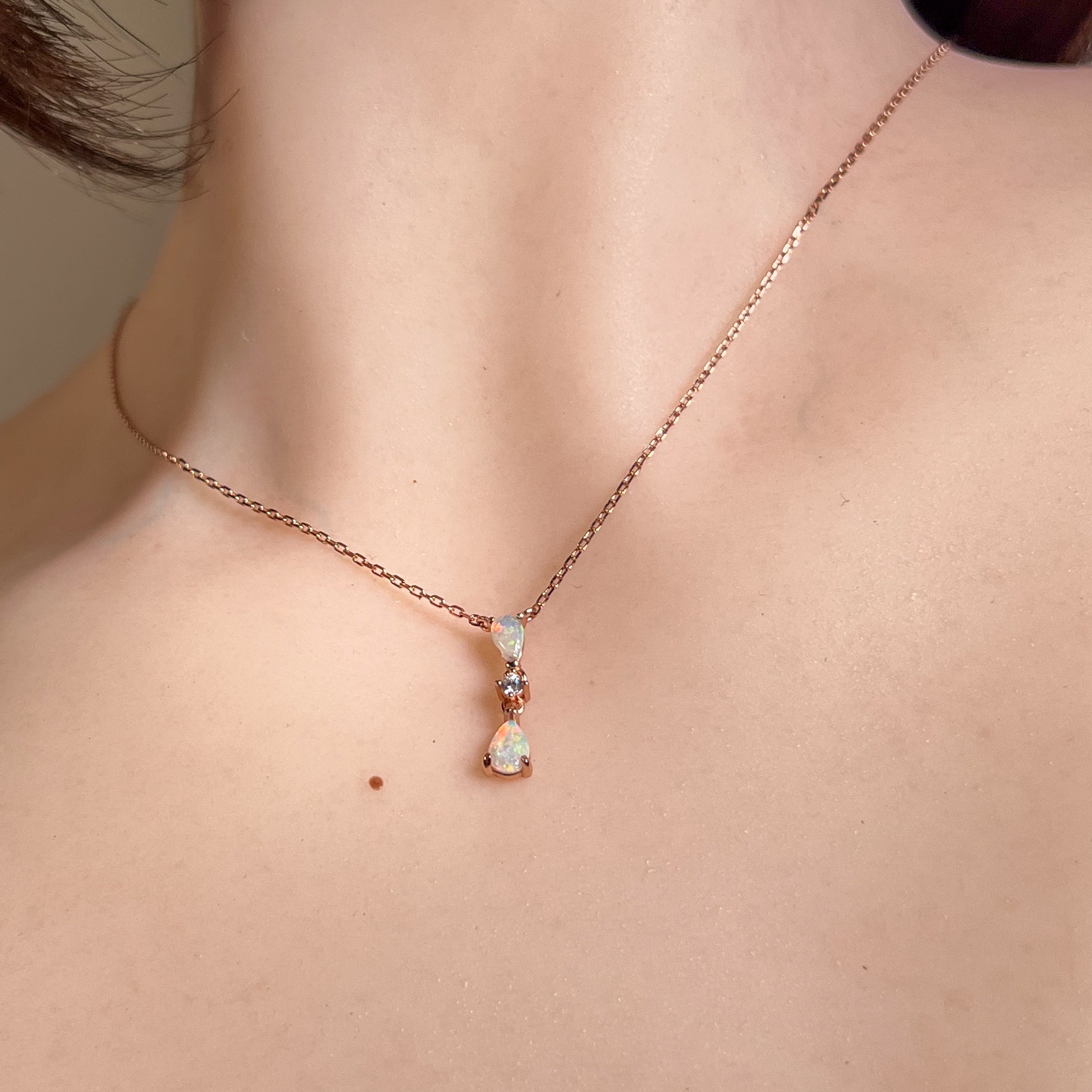 Rose Gold plated silver dainty pearshape Crystal Opal necklace
