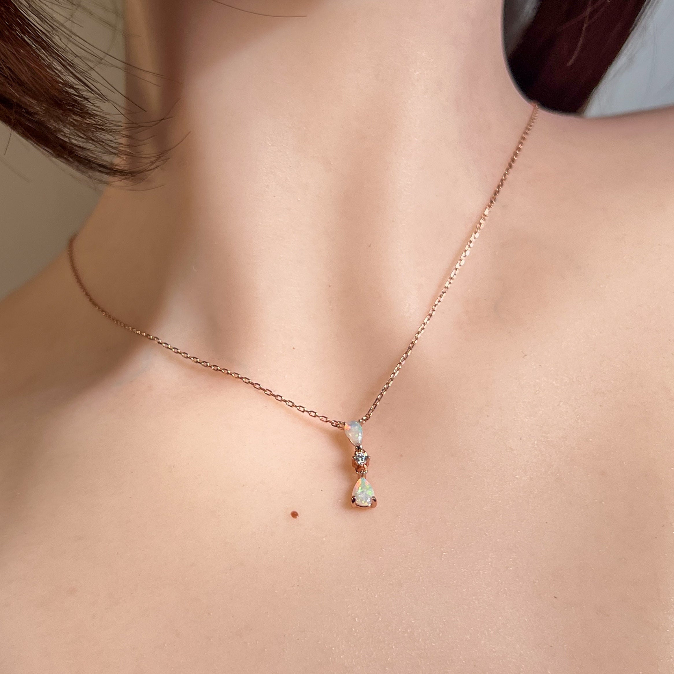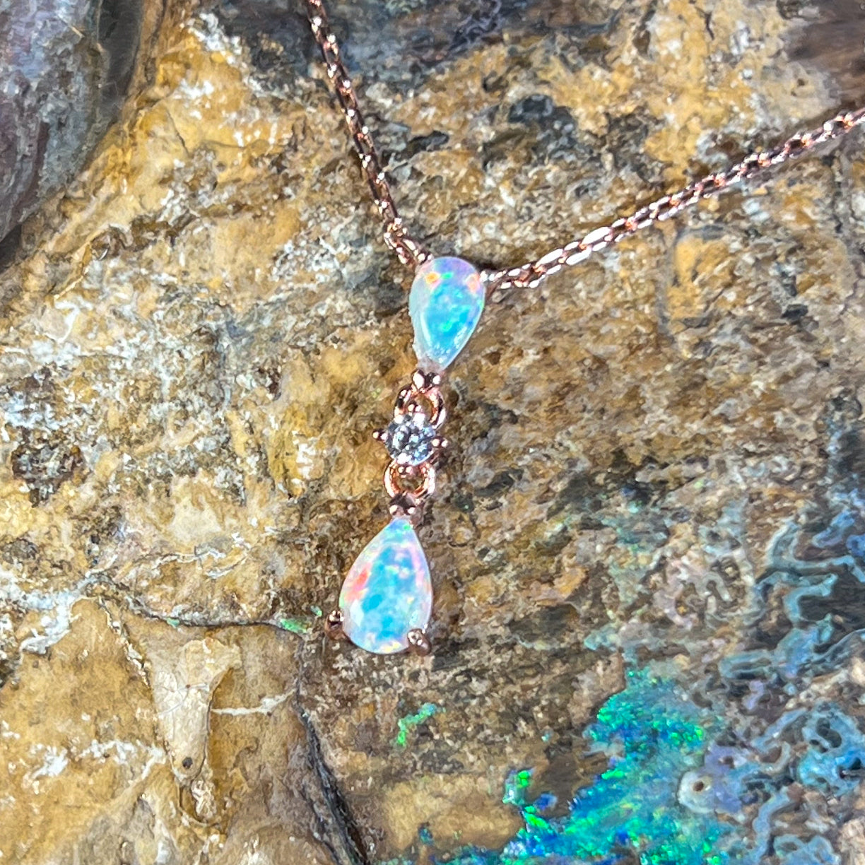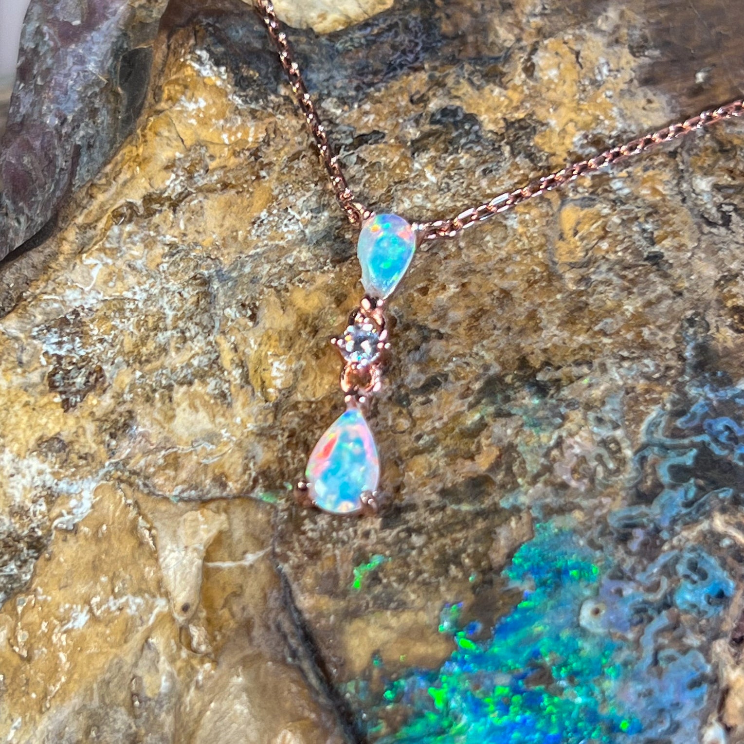 Rose Gold plated silver dainty pearshape Crystal Opal necklace