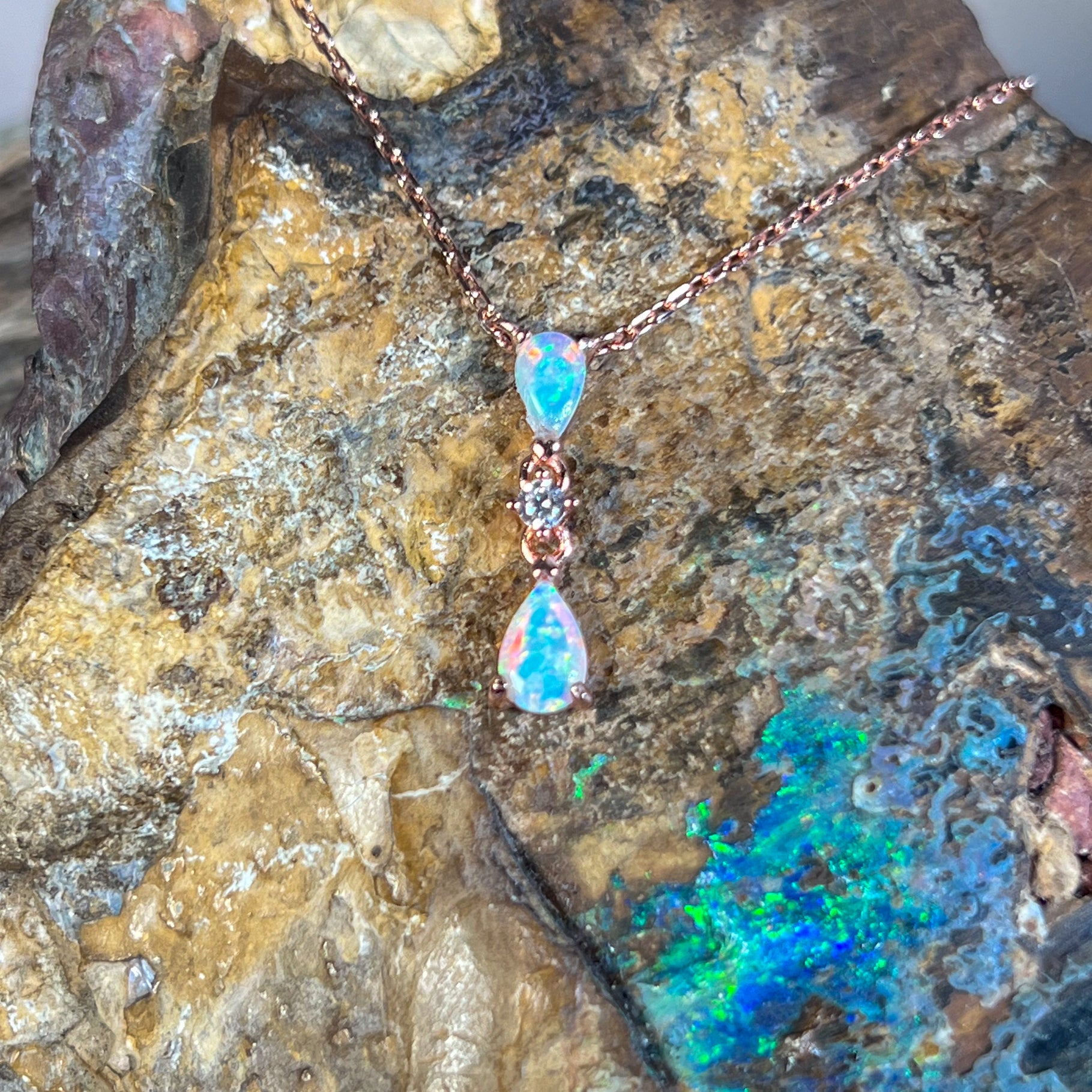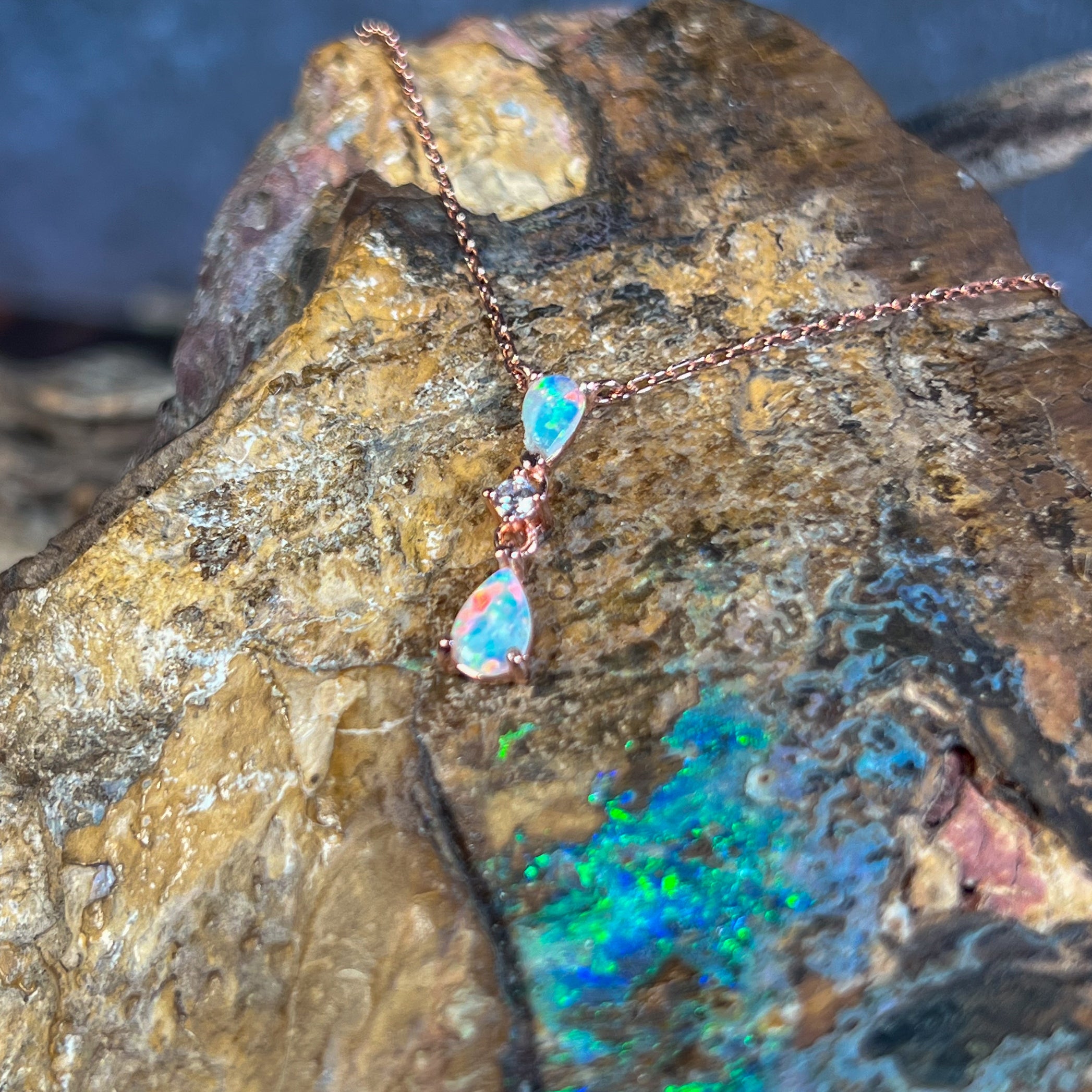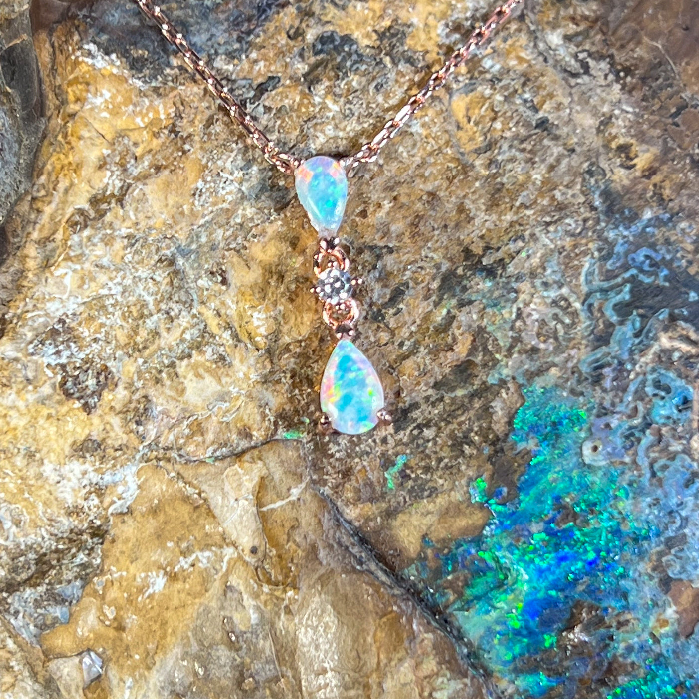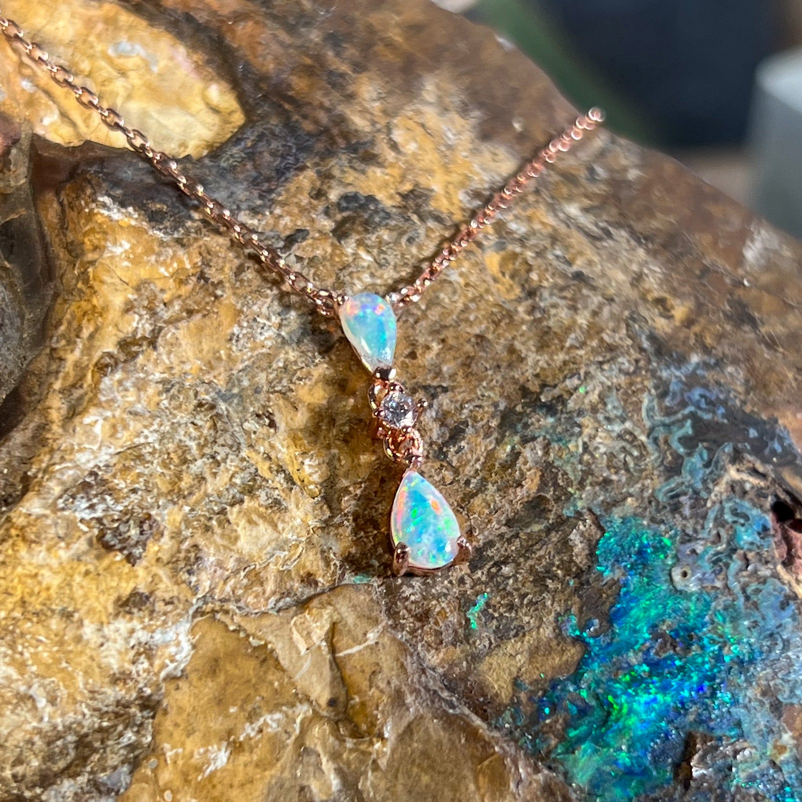 Rose Gold plated silver dainty pearshape Crystal Opal necklace