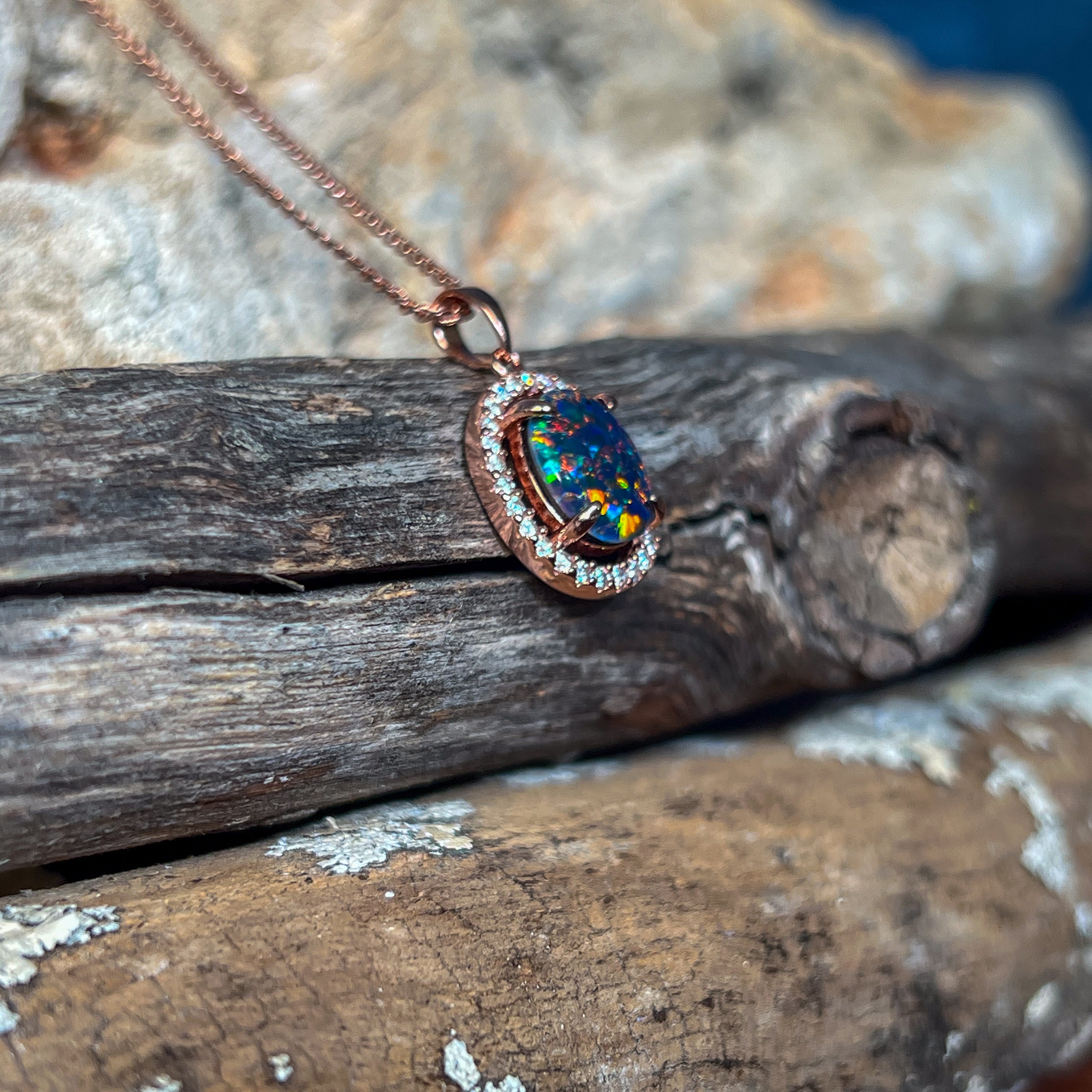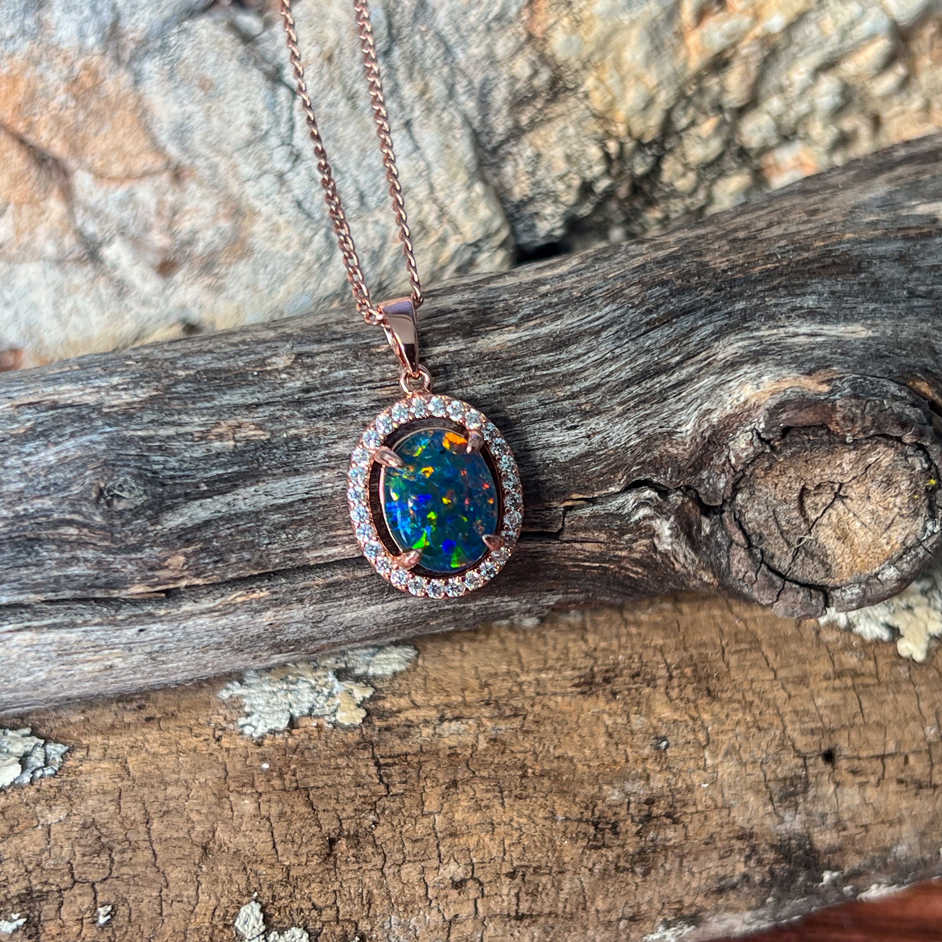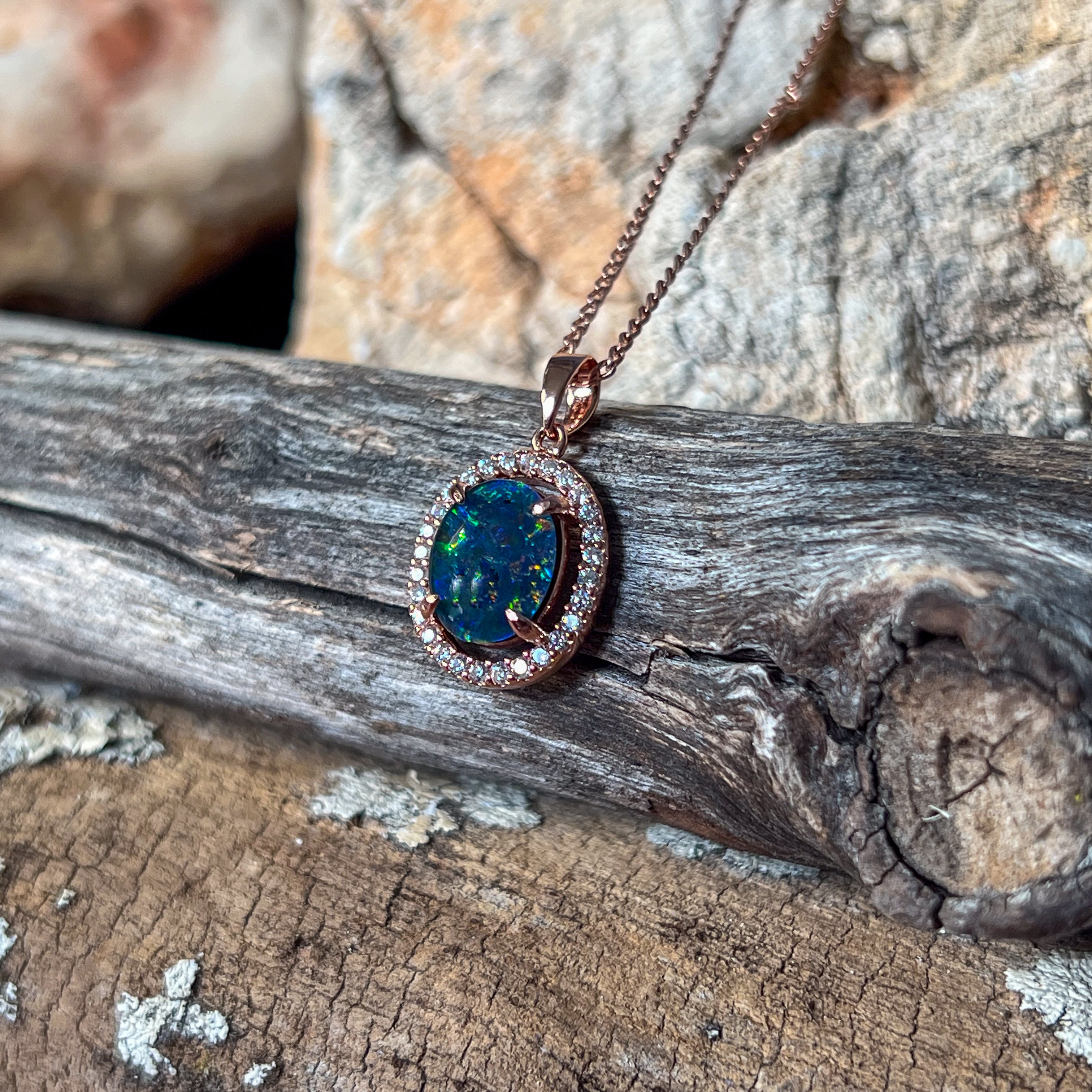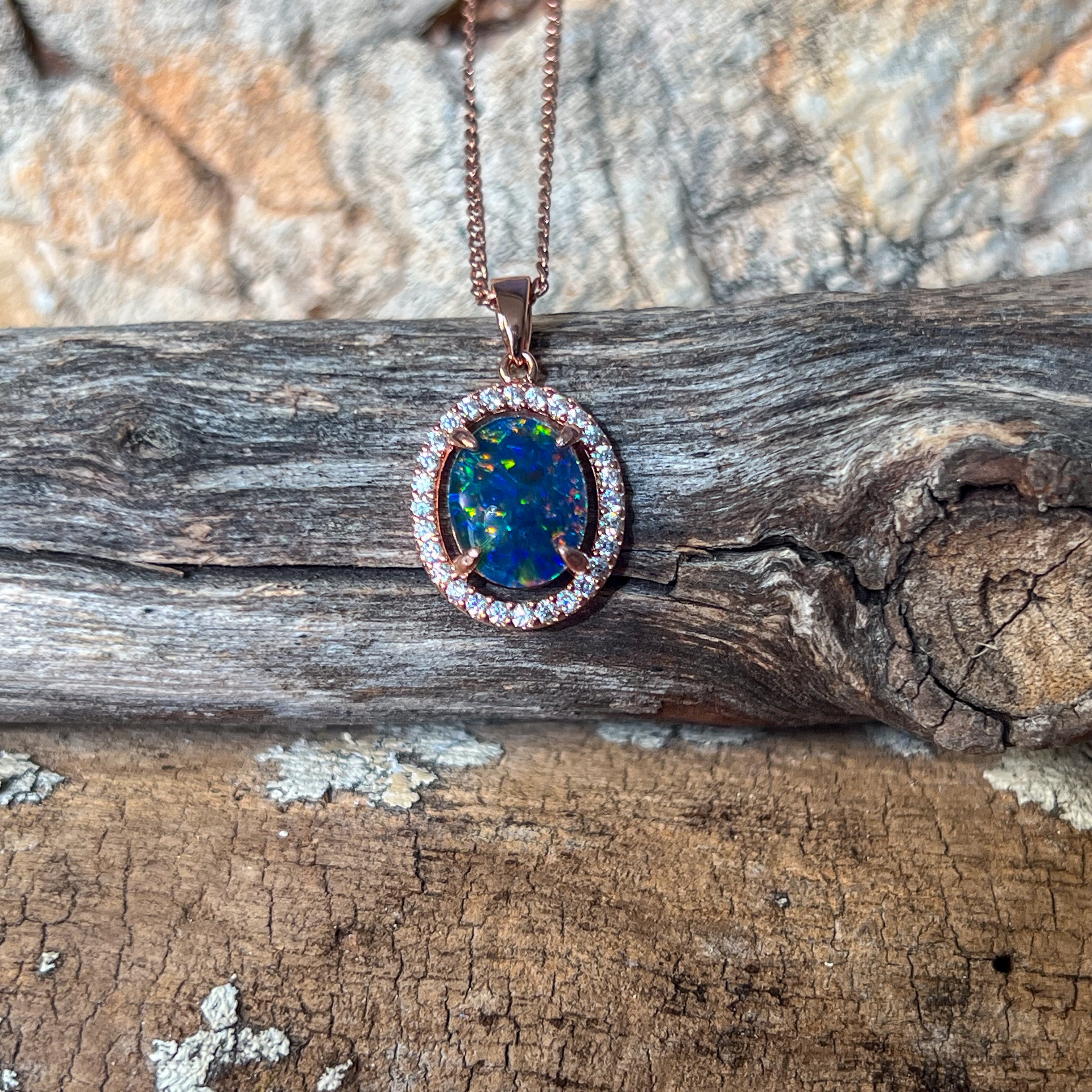 This rose gold plated silver pendant showcases a radiant 10x8mm opal encircled by a delicate halo, making it a thoughtful gift for her. Its elegant design adds a touch of charm and sophistication, perfect for expressing your care and admiration. Whether for daily wear or special moments, this necklace is a beautiful way to celebrate someone special in your life.