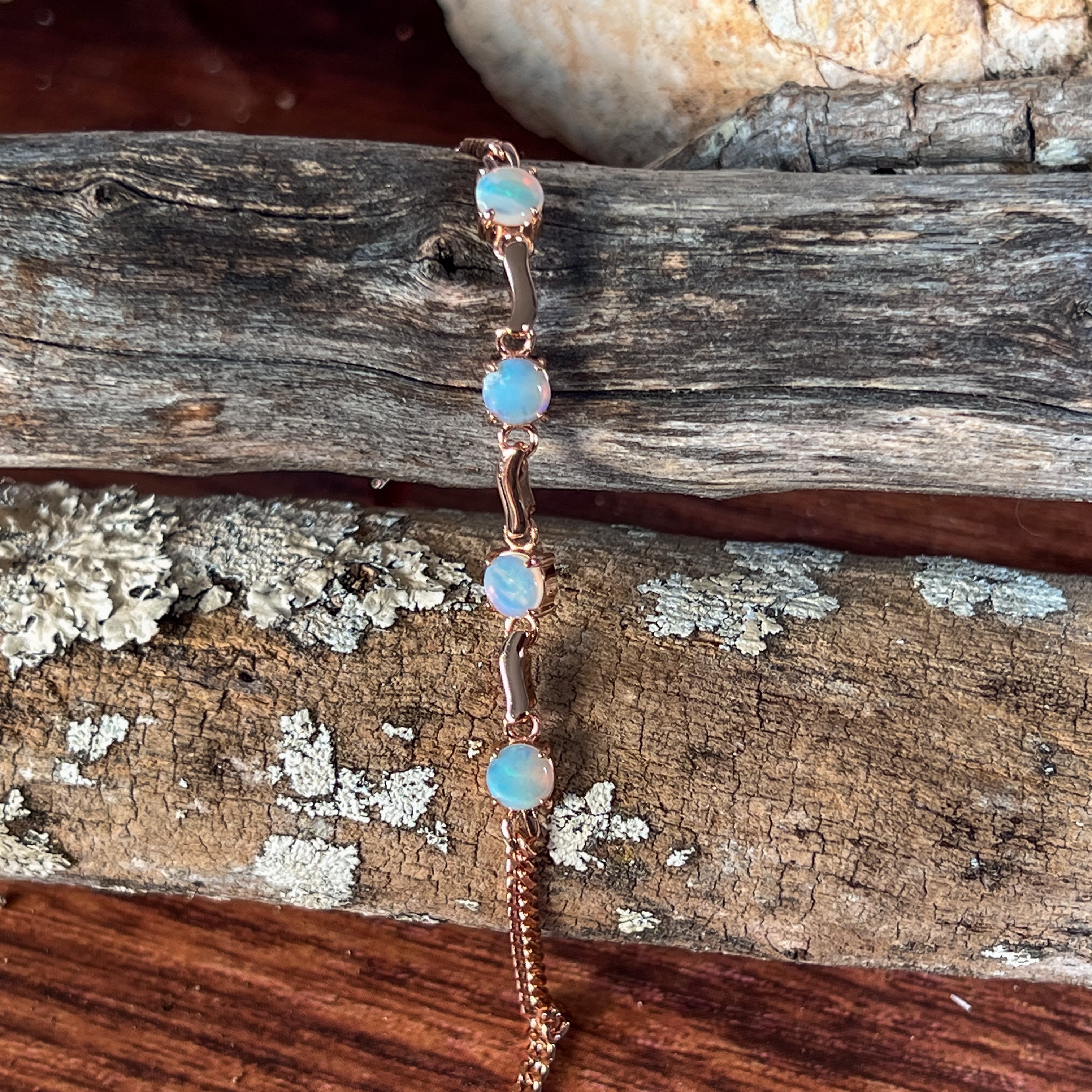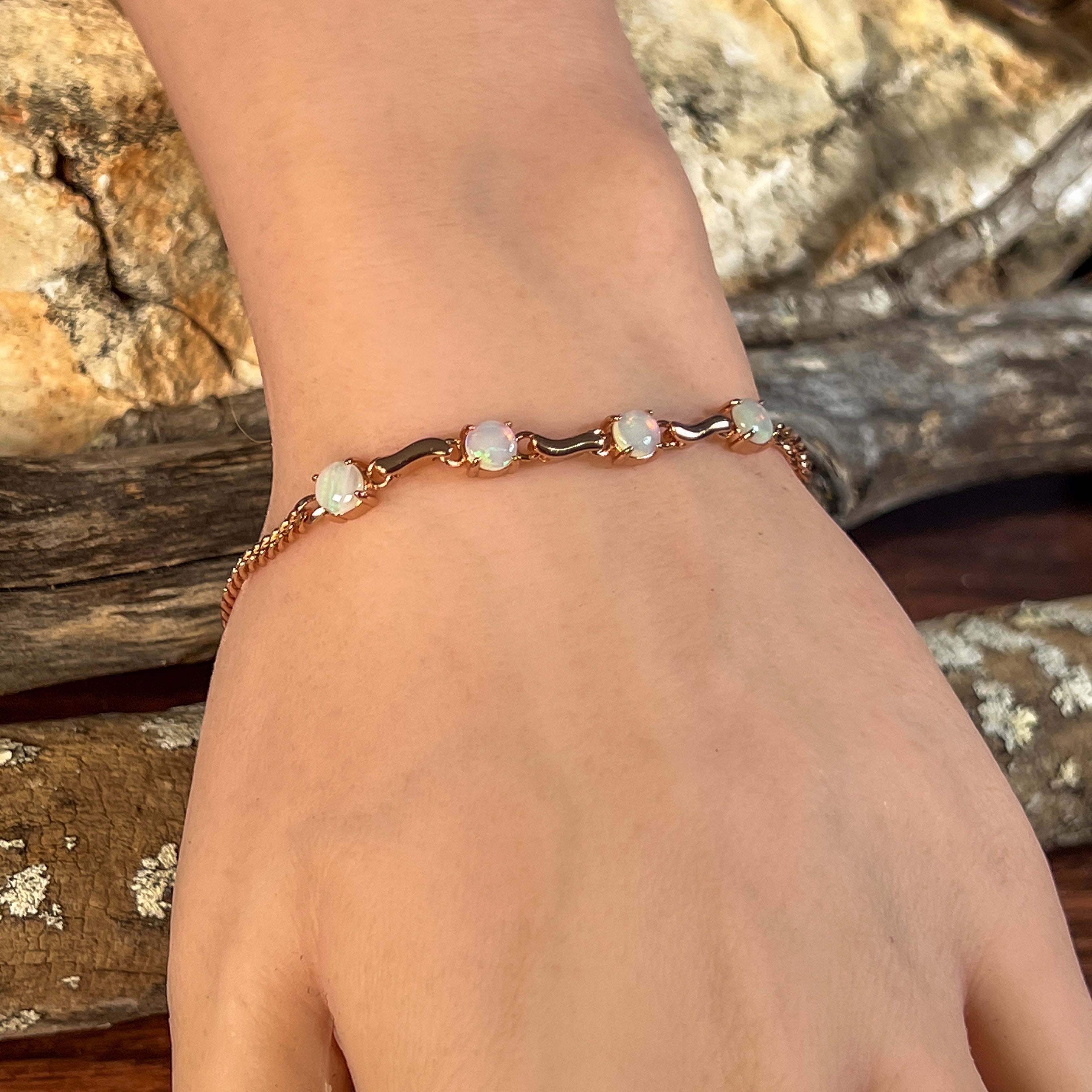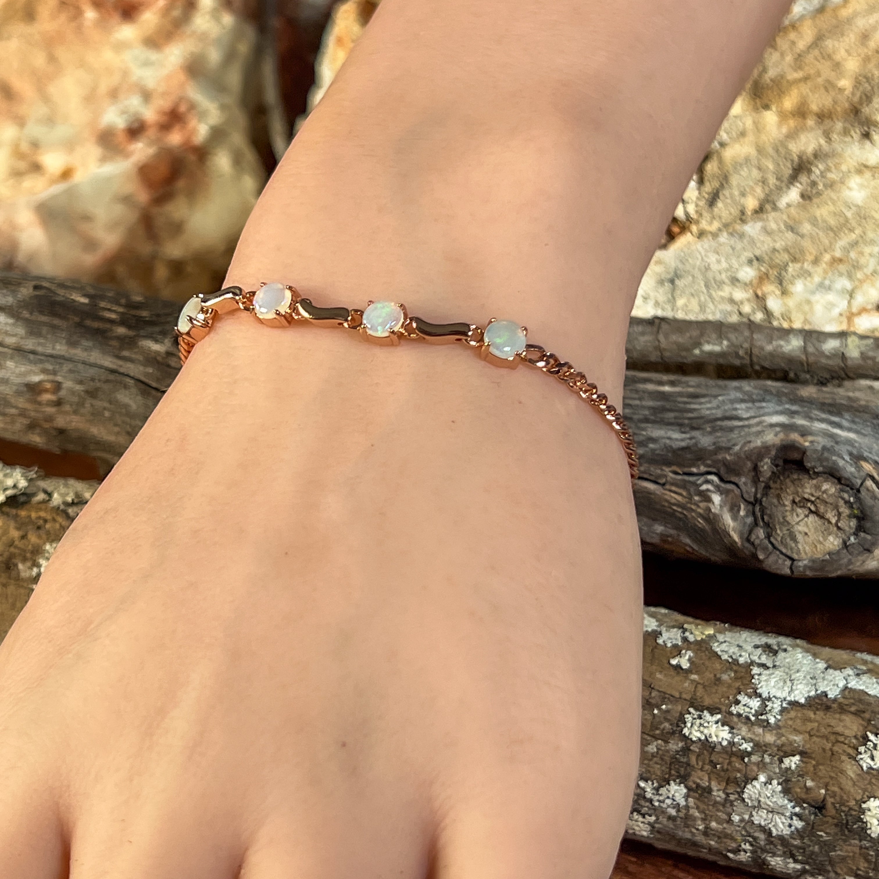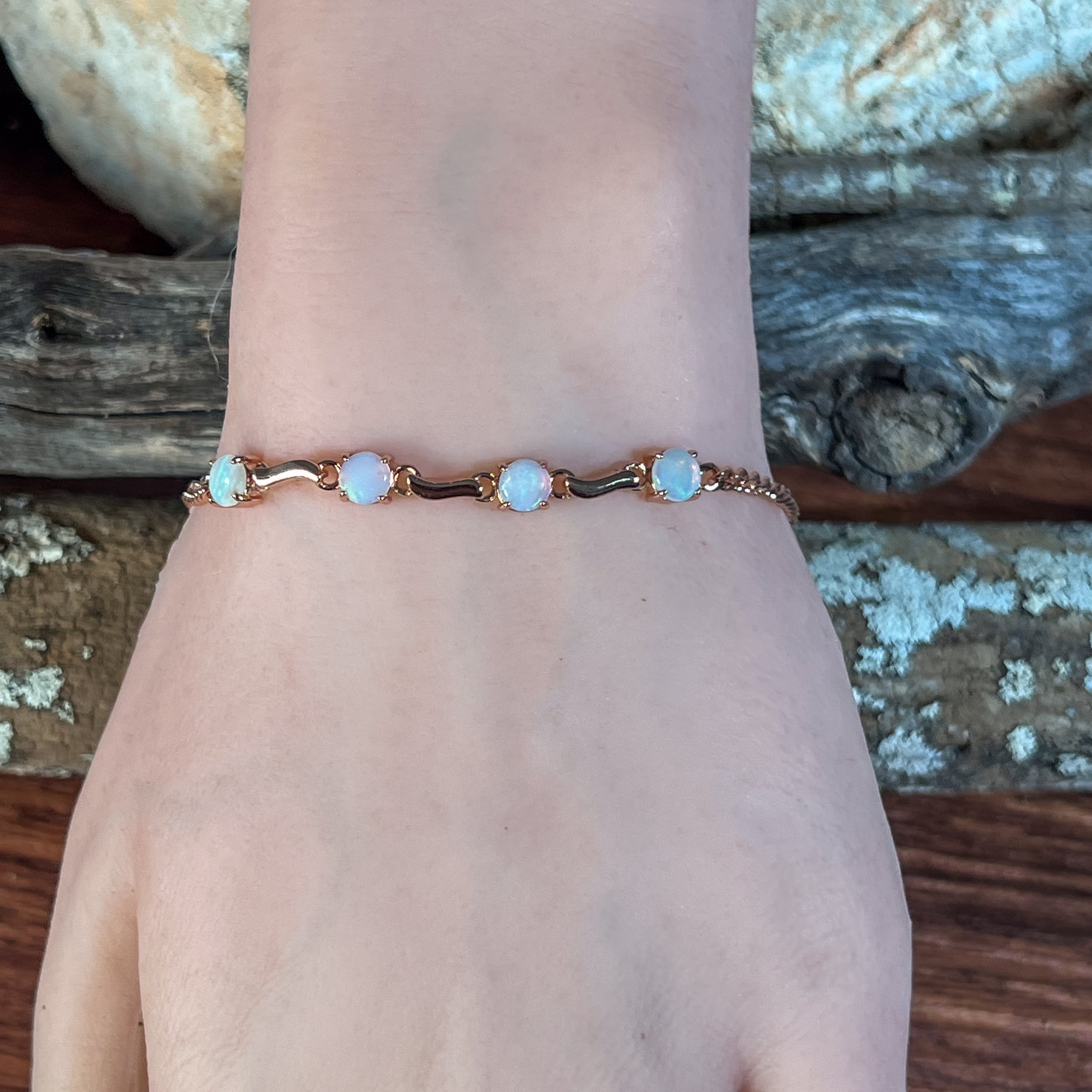 Rose Gold Plated Sterling Silver white opal 5mm bracelet wave pattern