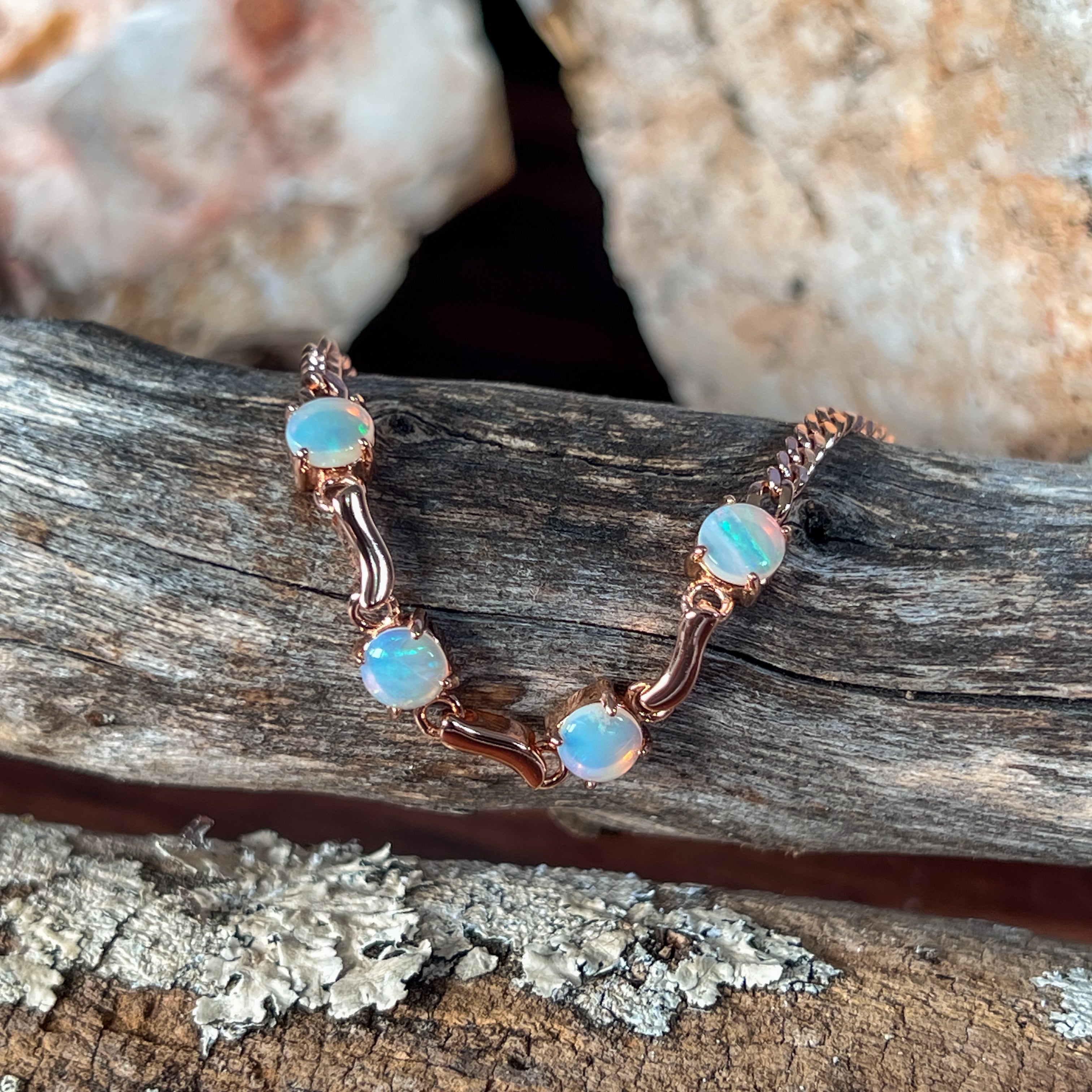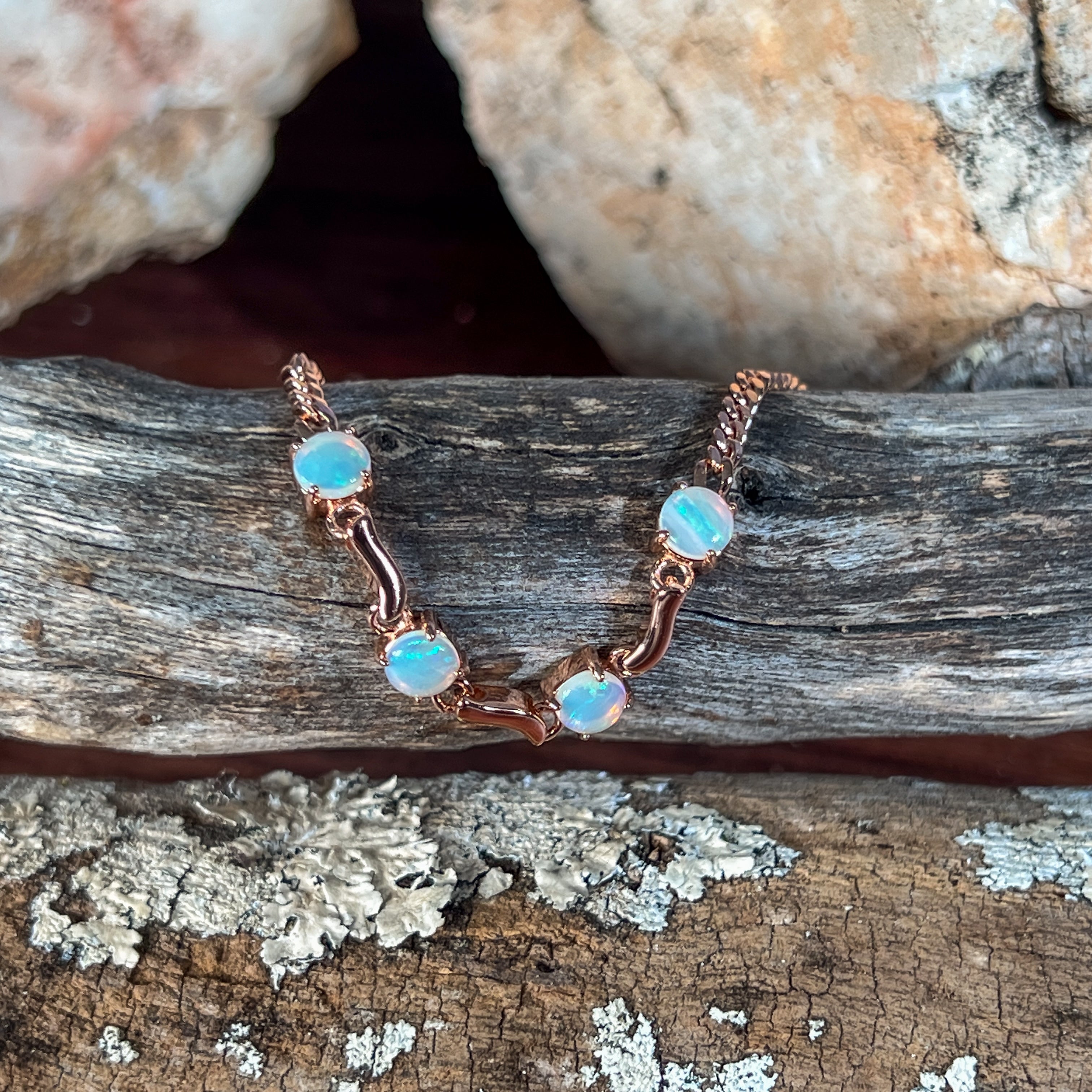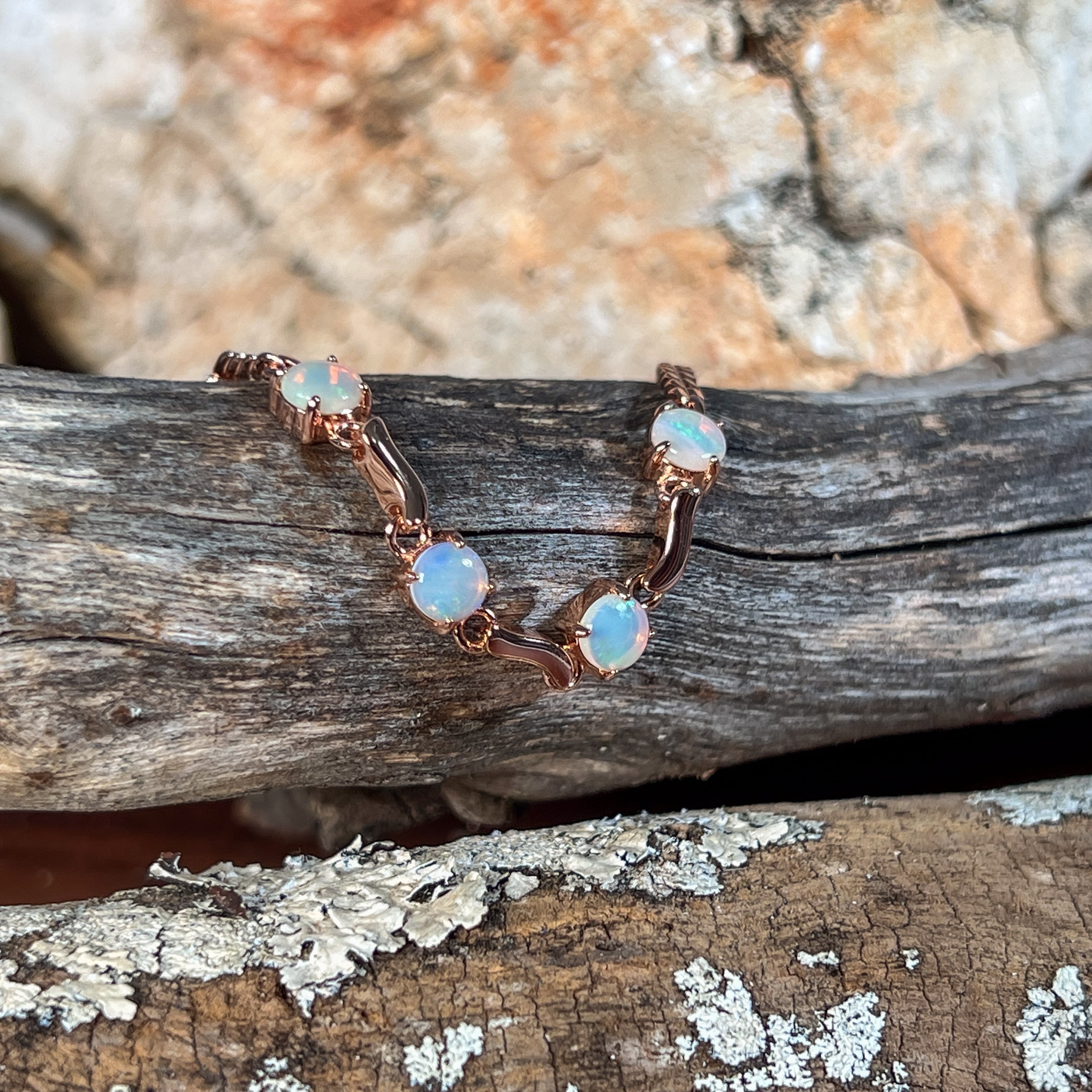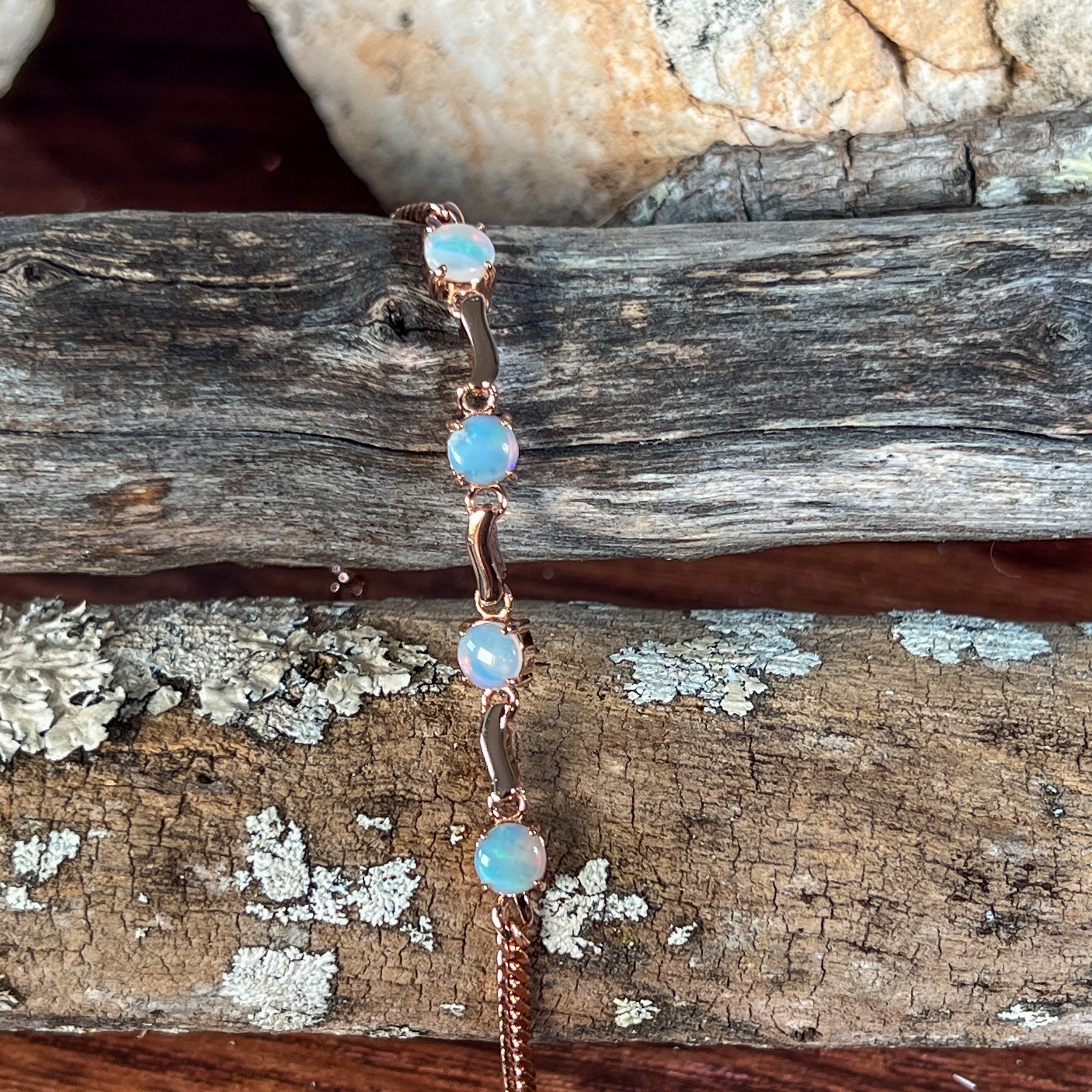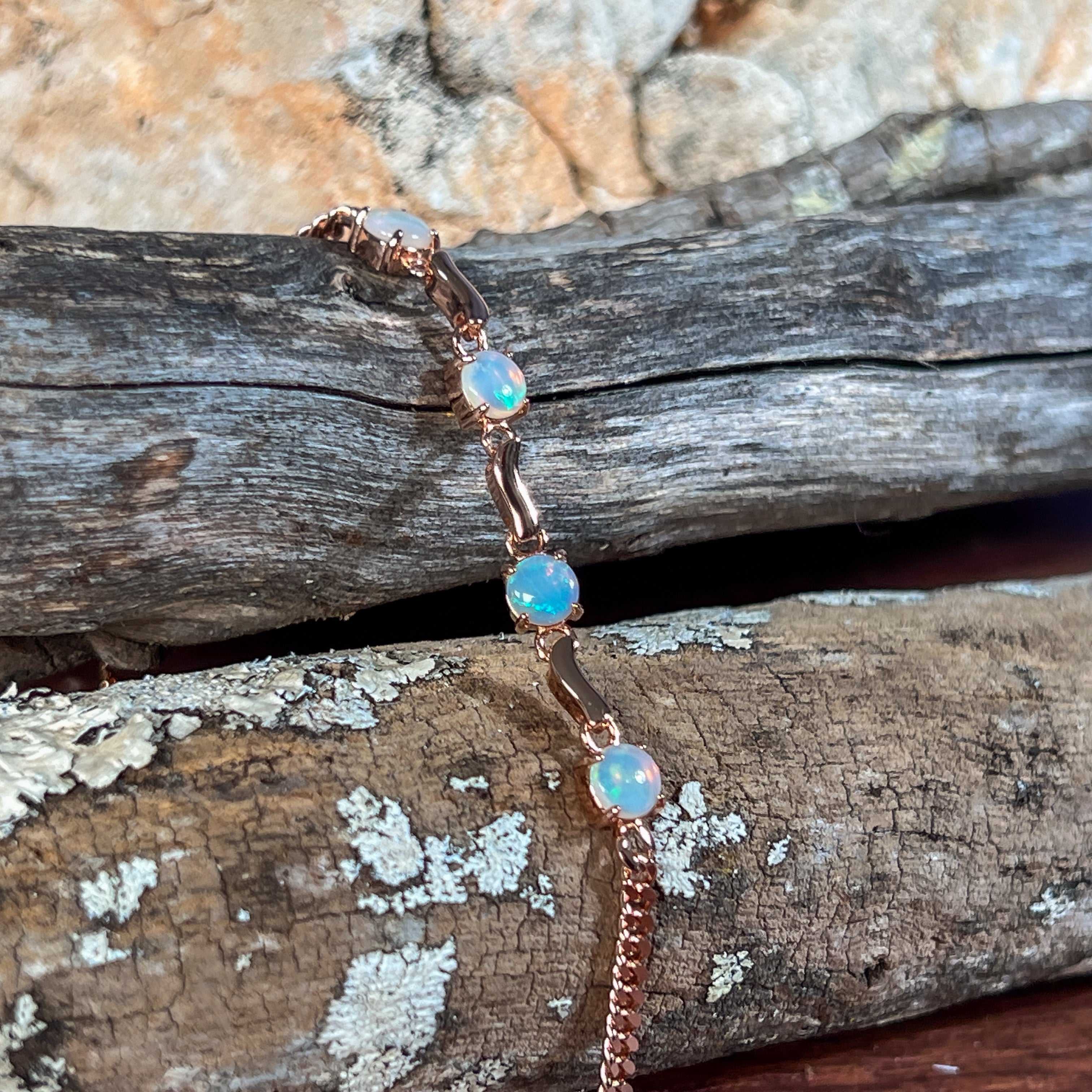 Rose Gold Plated Sterling Silver white opal 5mm bracelet wave pattern