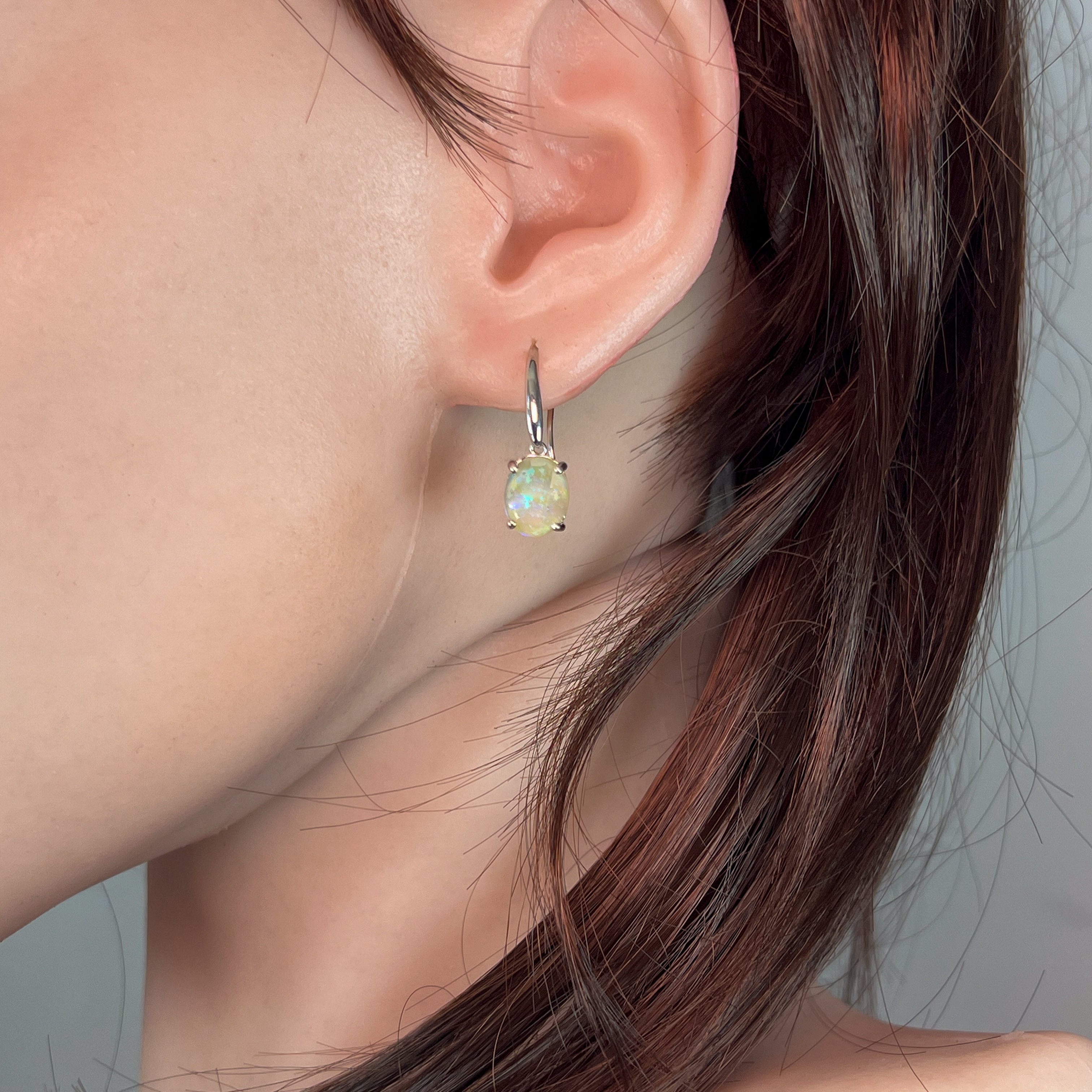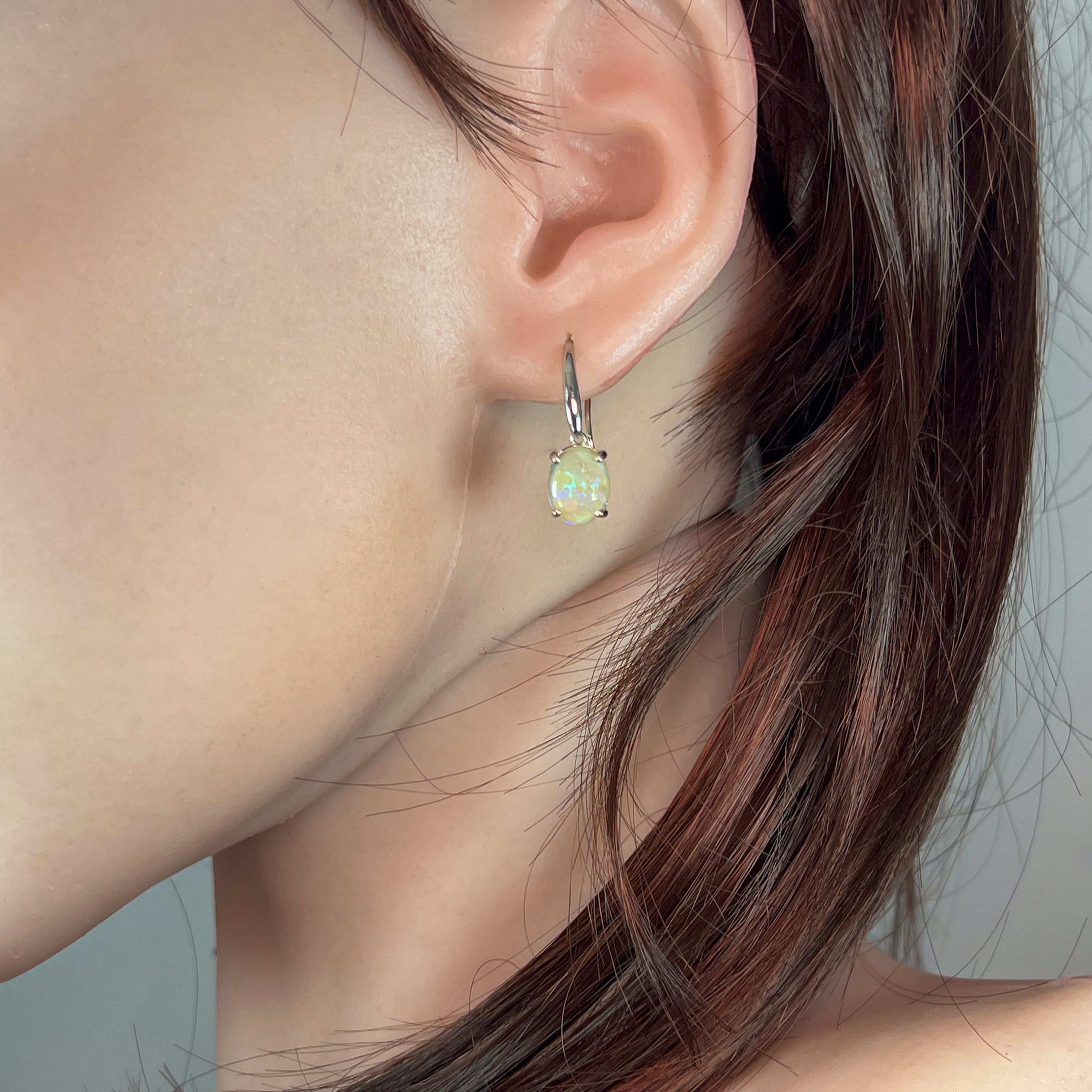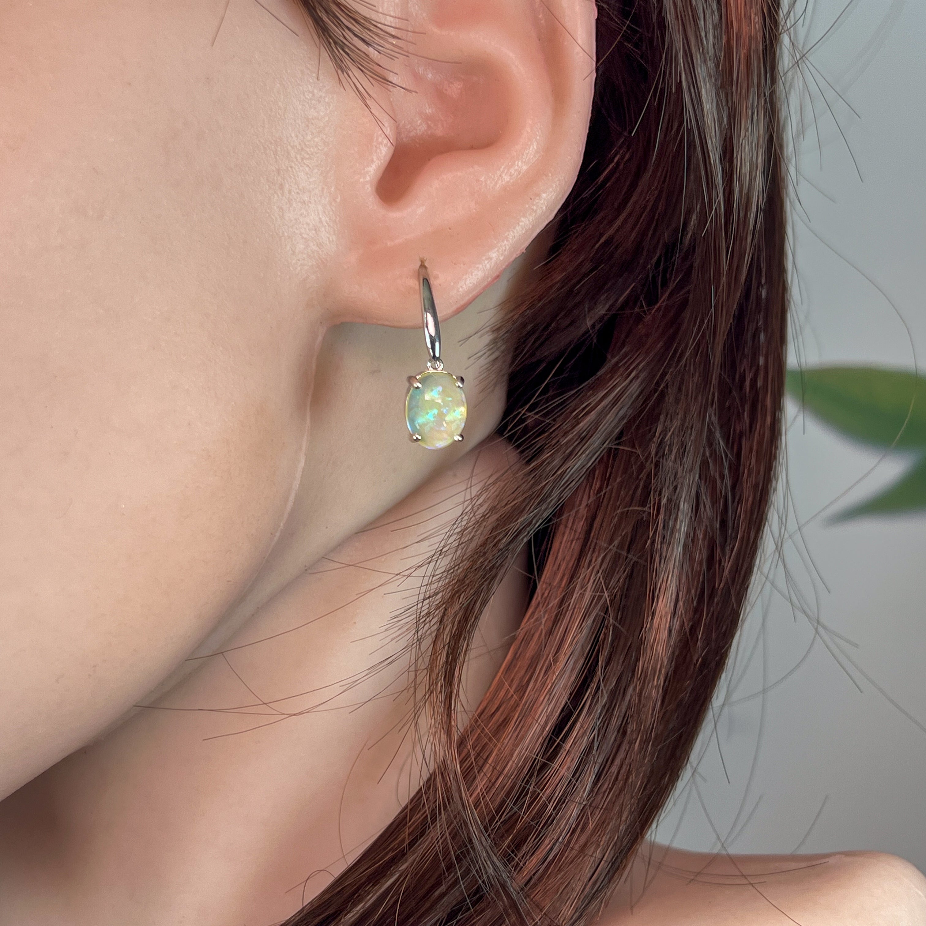Sterling Silver 10x8mm Light Opal dangling Hook earrings claw set