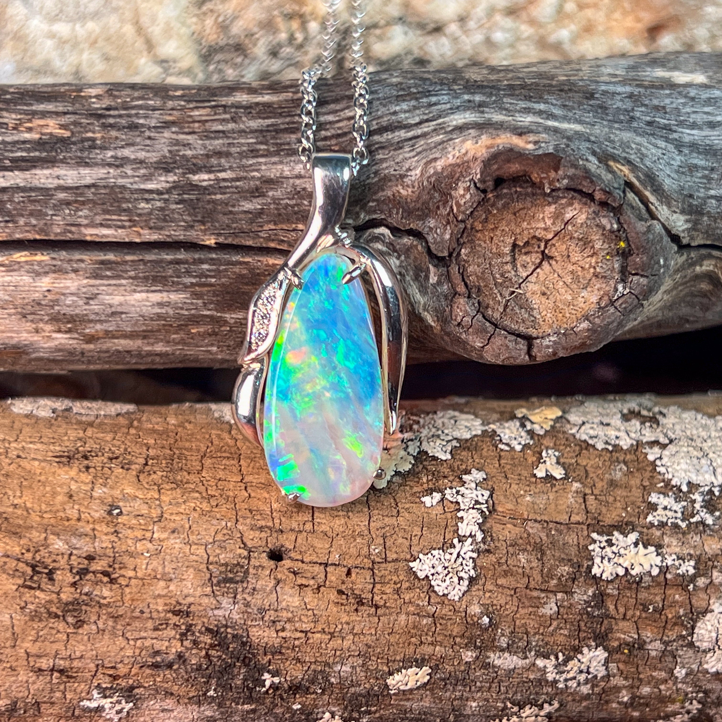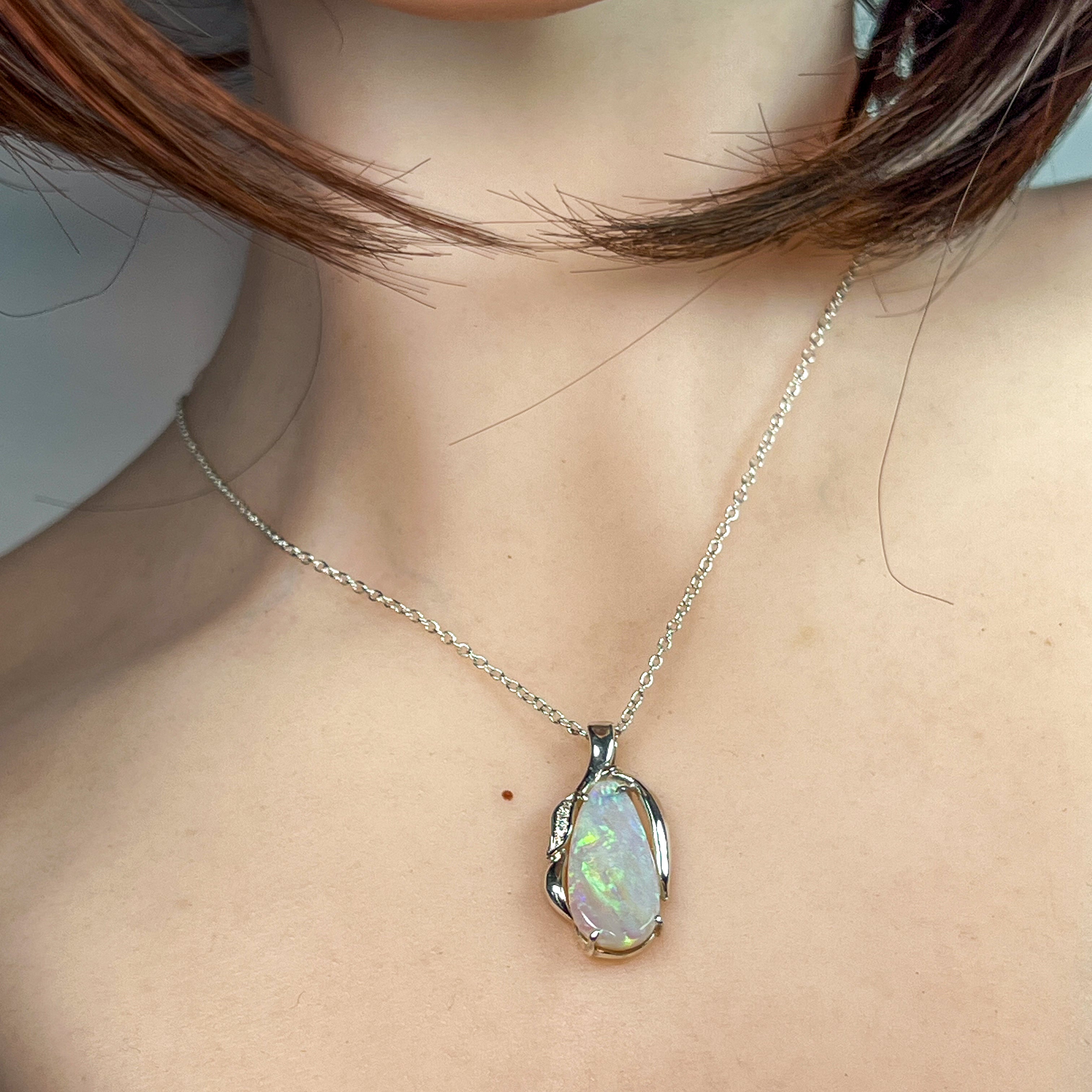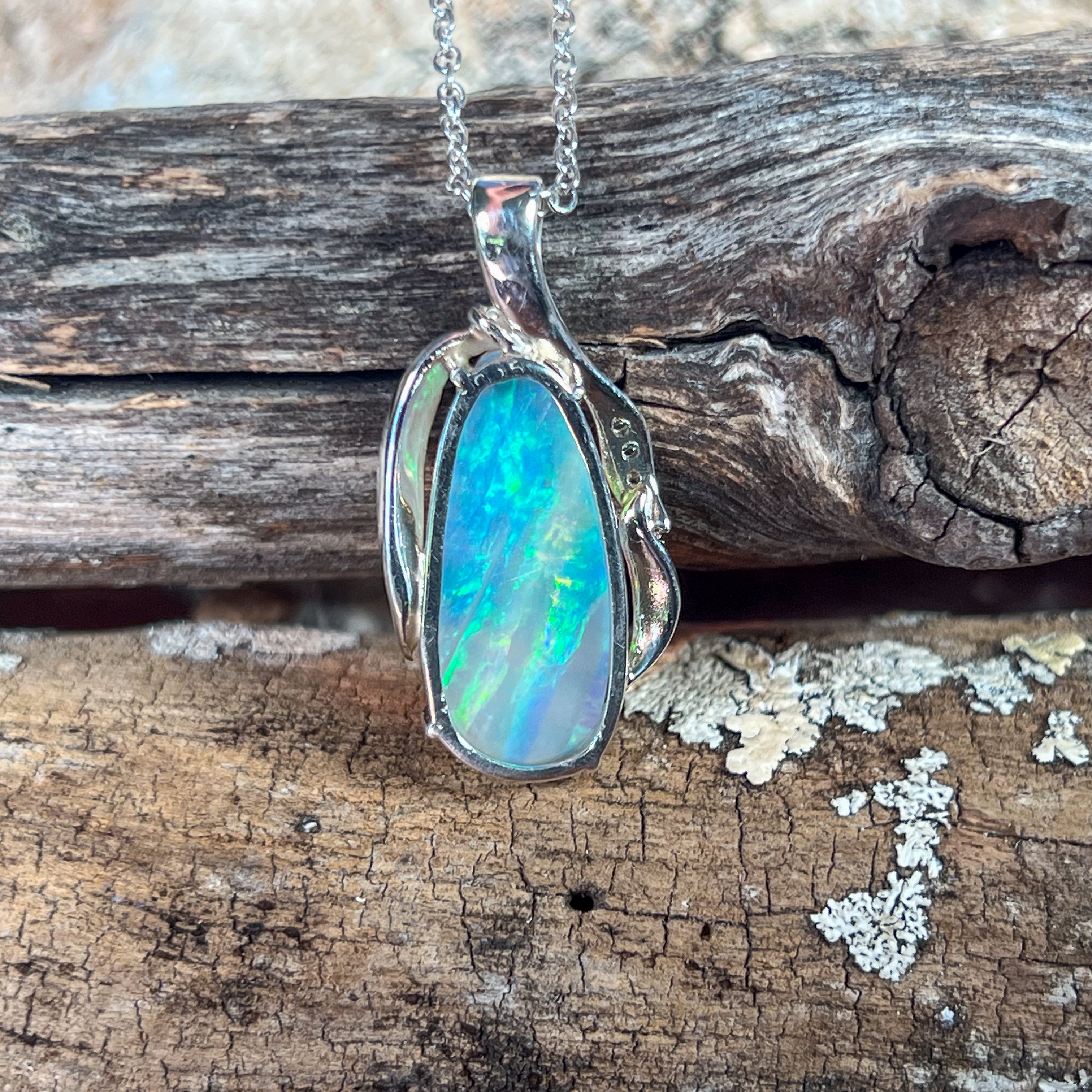 Make a bold statement with this Sterling Silver pendant featuring a dazzling 7.1ct crystal opal sourced directly from the opal capital, Coober Pedy. Its fiery flashes capture the untamed beauty of the Australian outback, perfect for those who dare to shine with unique, natural elegance. Elevate your style and own a piece that commands attention wherever you go.