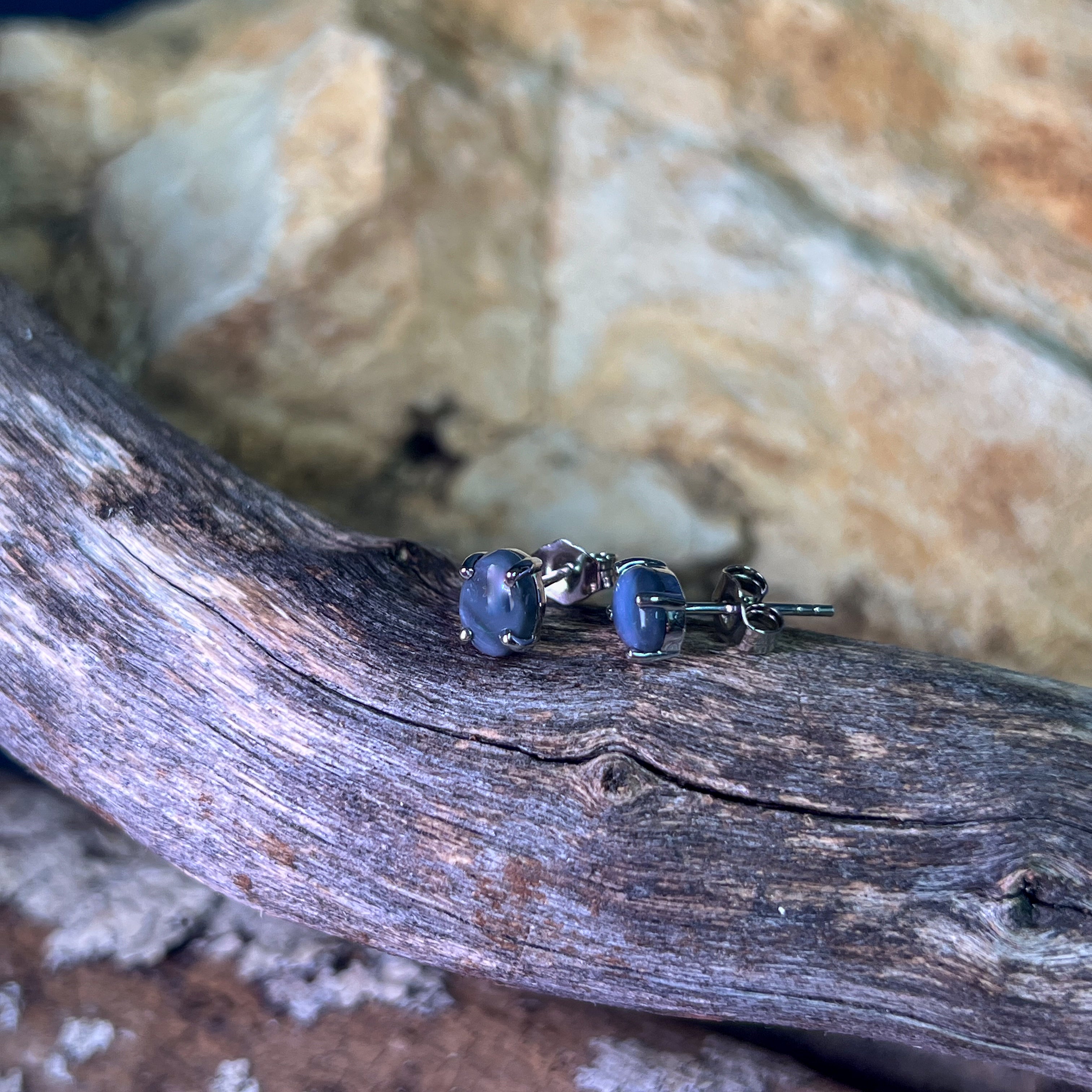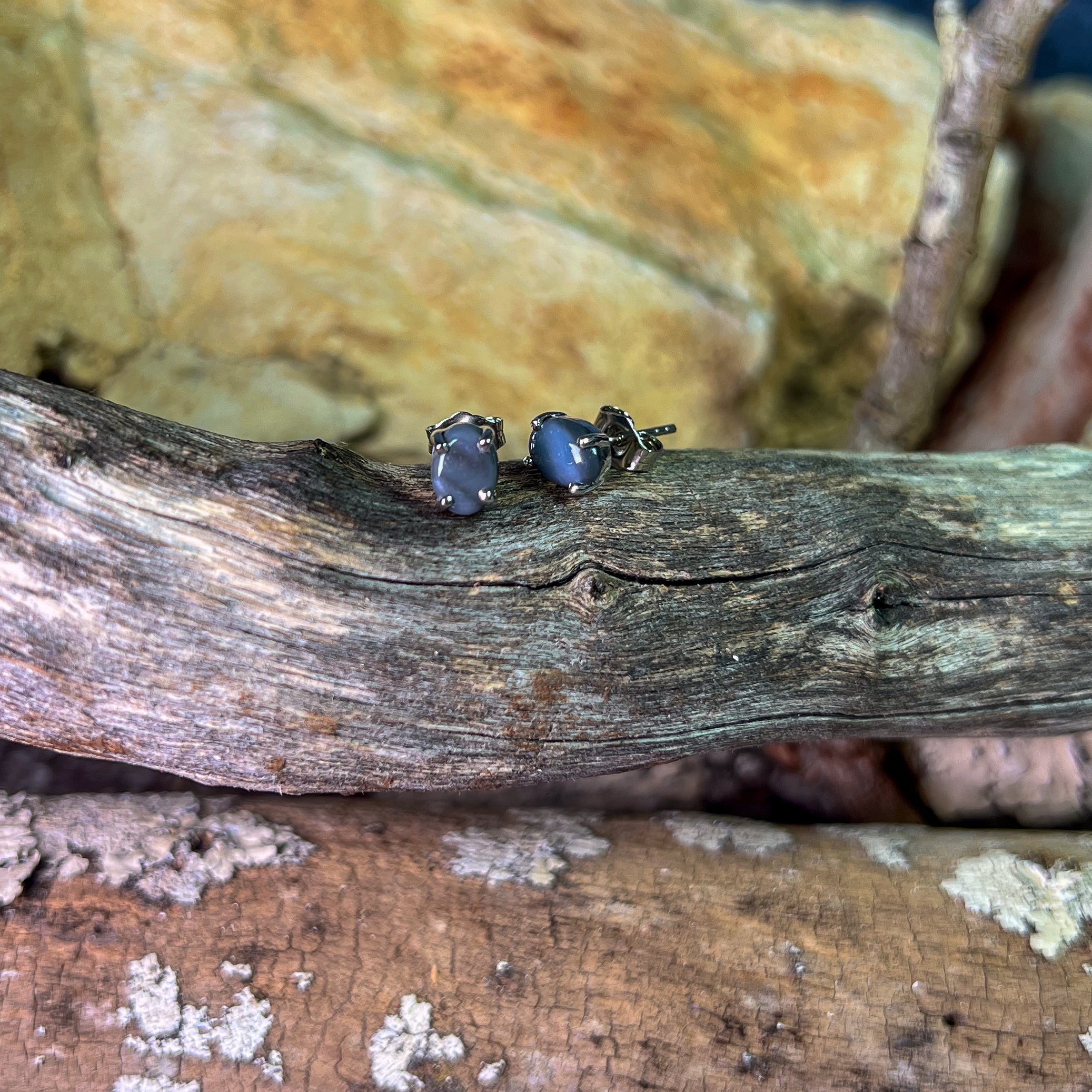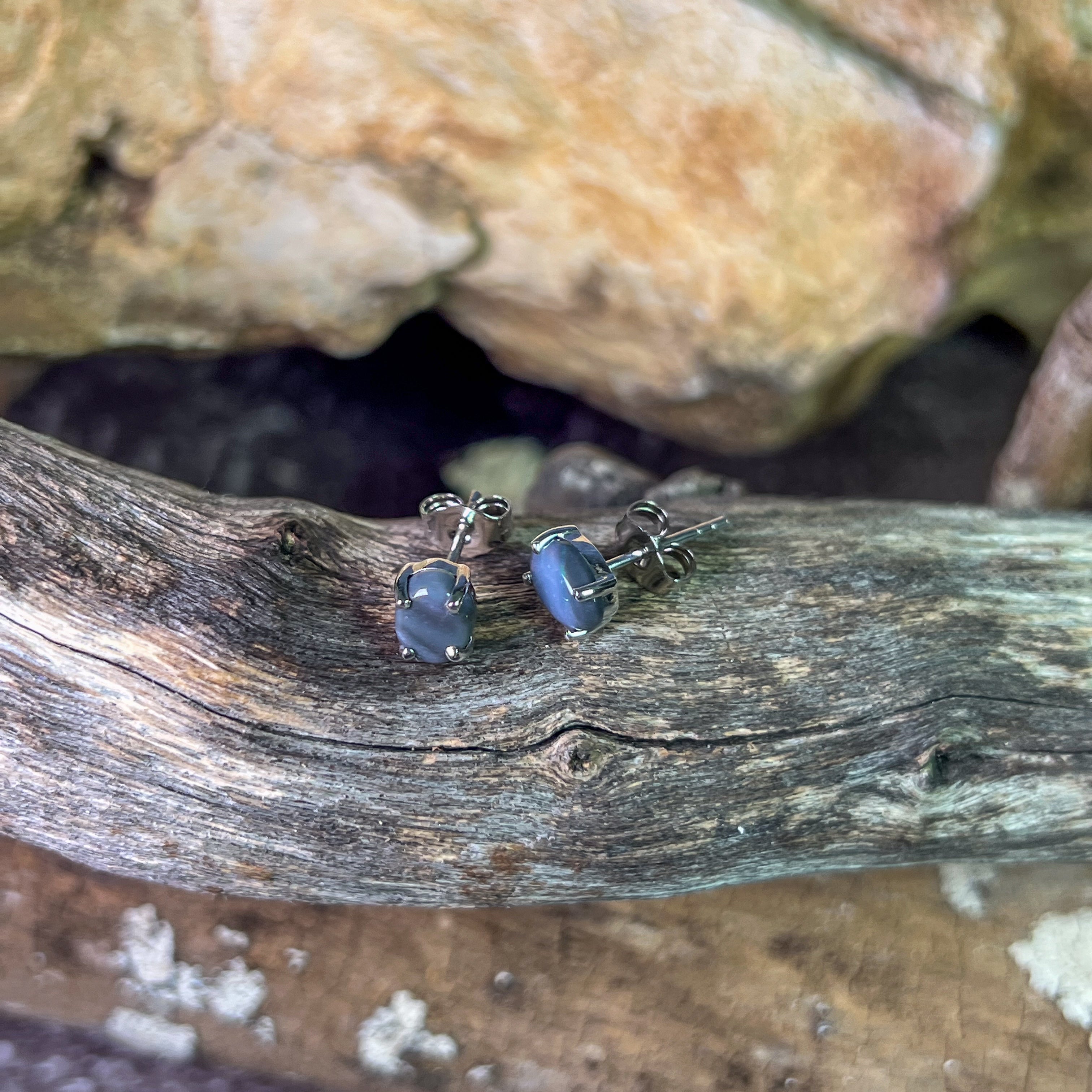 Sterling Silver Black Opal 7x5mm studs