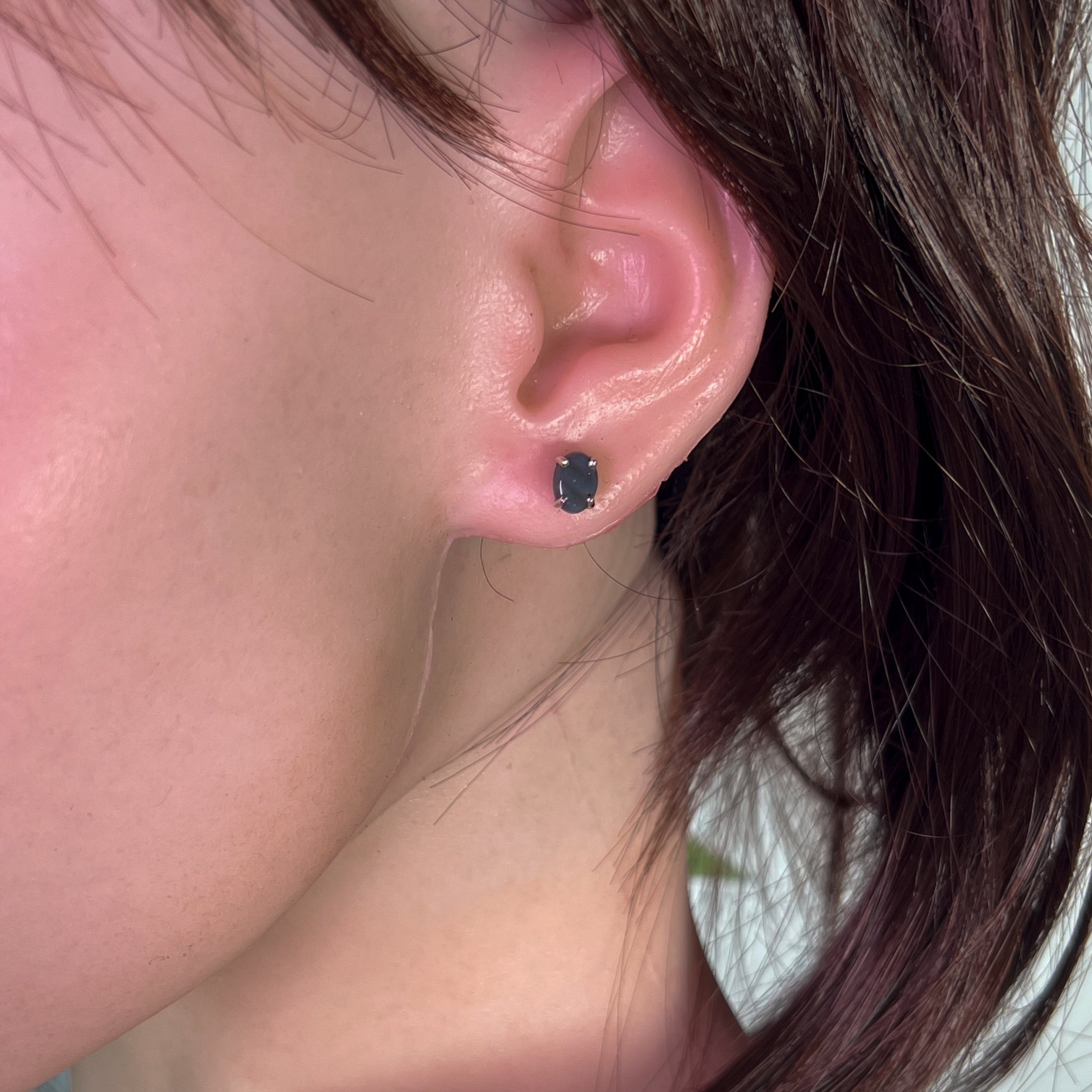Upgrade your earring game with our stunning Sterling Silver Black Opal 7x5mm studs! Featuring a petite black opal, these studs add a touch of sophistication and charm to any outfit. Elevate your style and make a statement without saying a word.