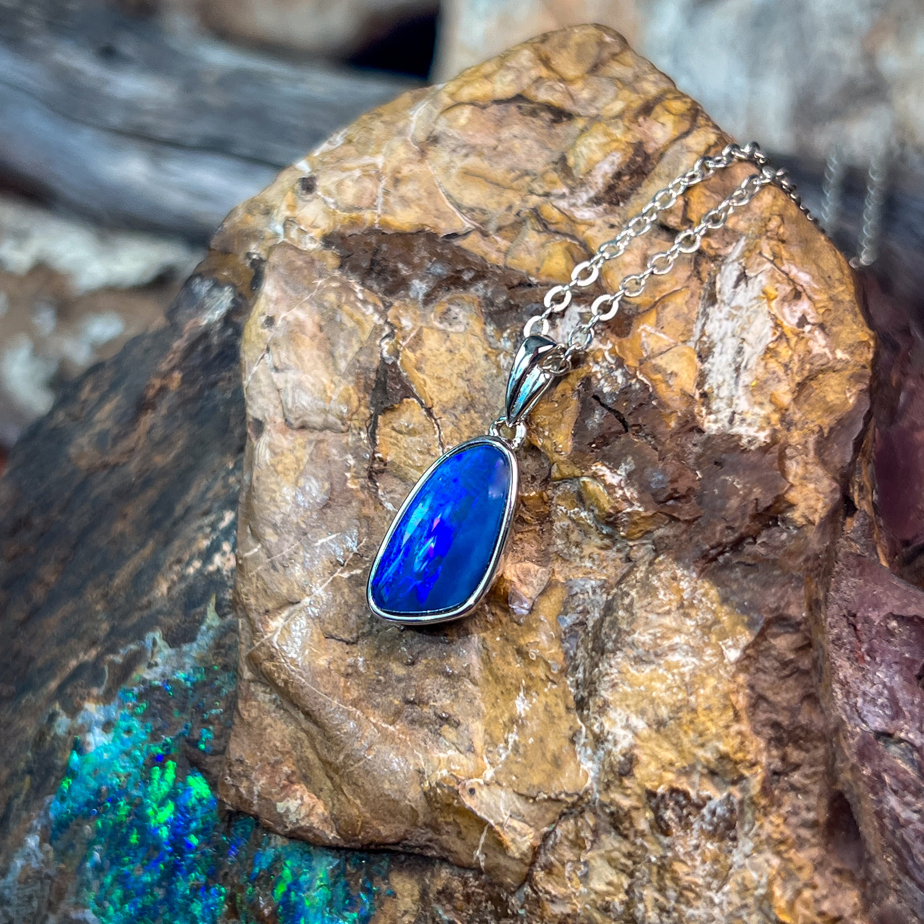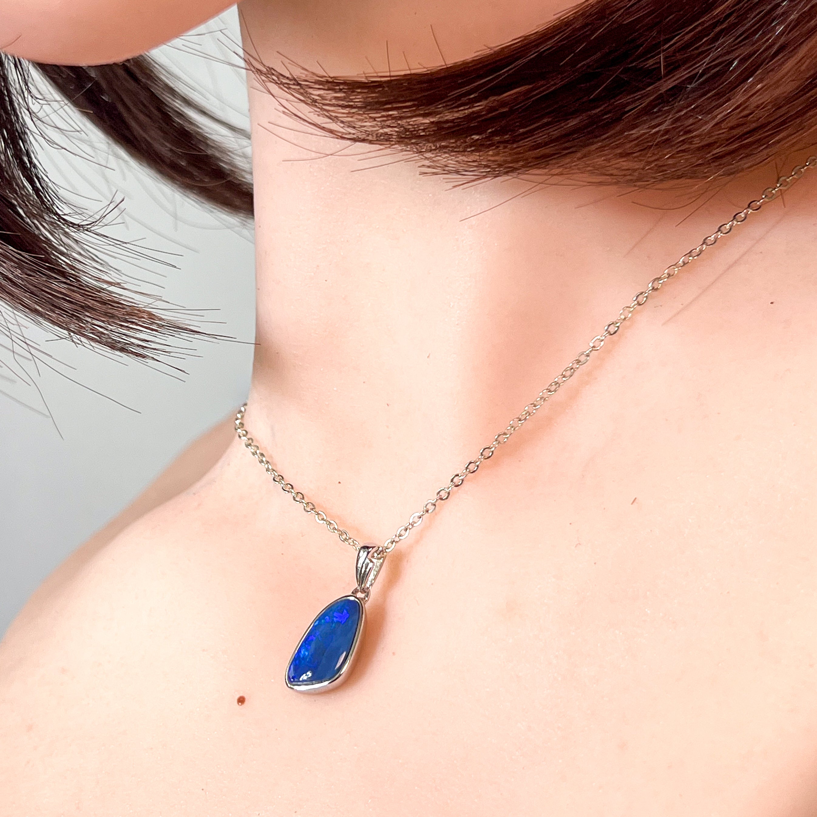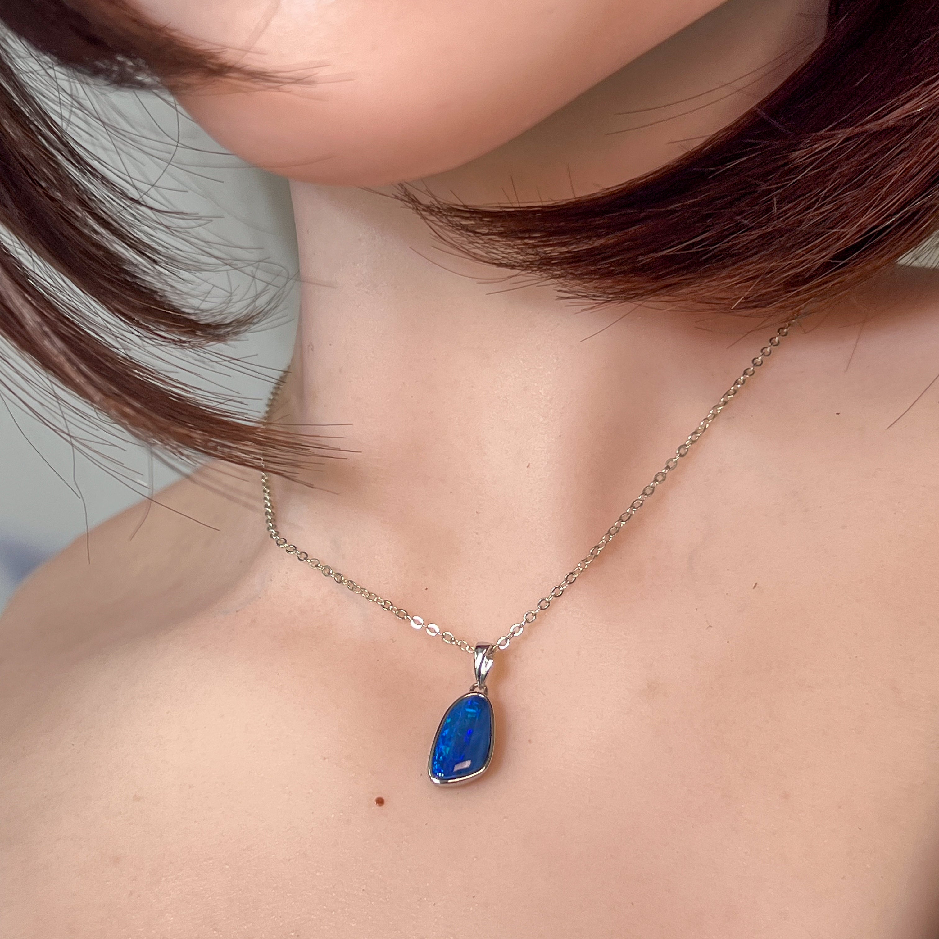 Add a splash of magic to your day with this Sterling Silver Blue Opal doublet bezel pendant. Its shimmering blue opal birthstone catches the light beautifully, making it the perfect playful accessory to brighten any outfit. Crafted with care, this necklace is a charming way to celebrate your birth month or gift a loved one something truly special.