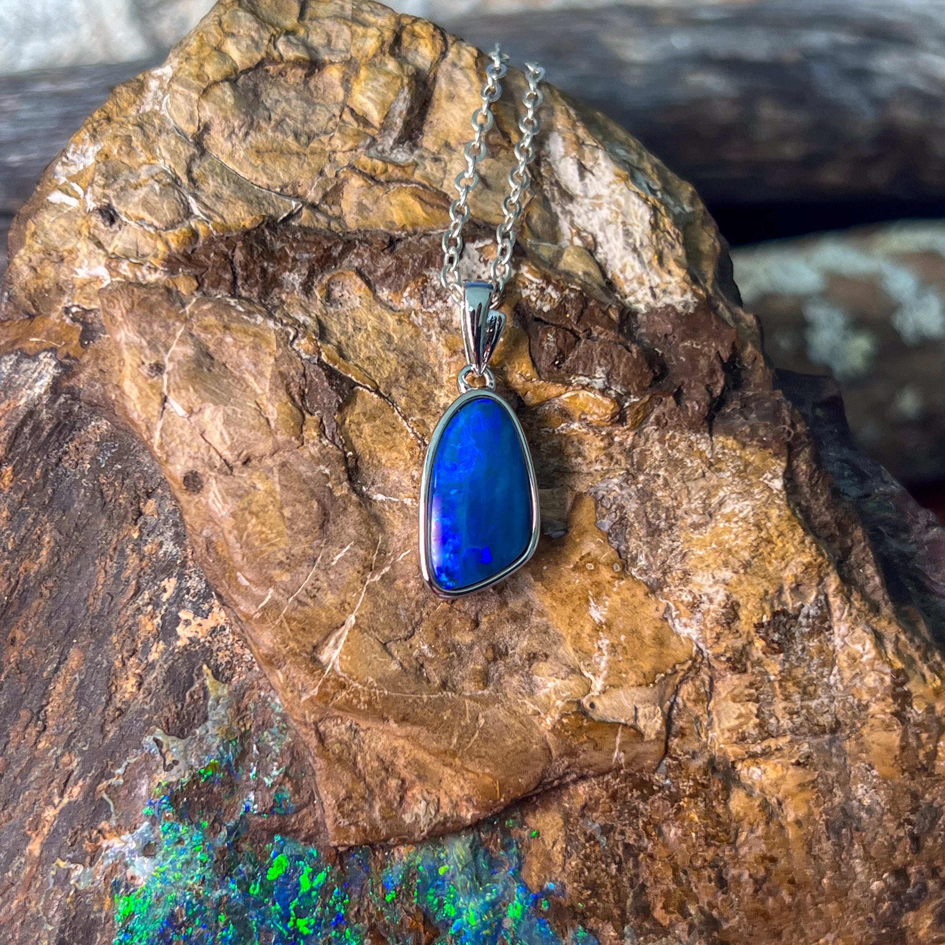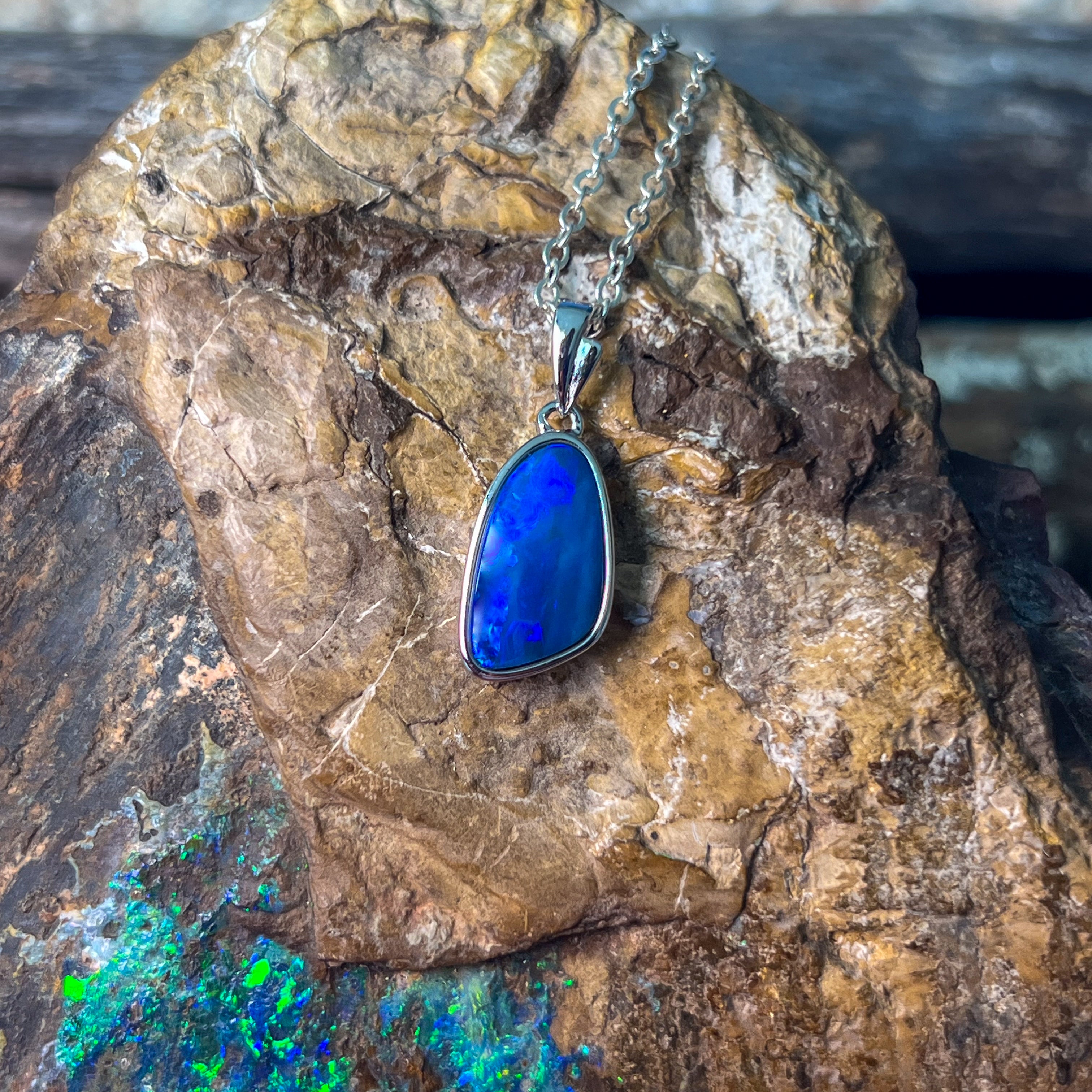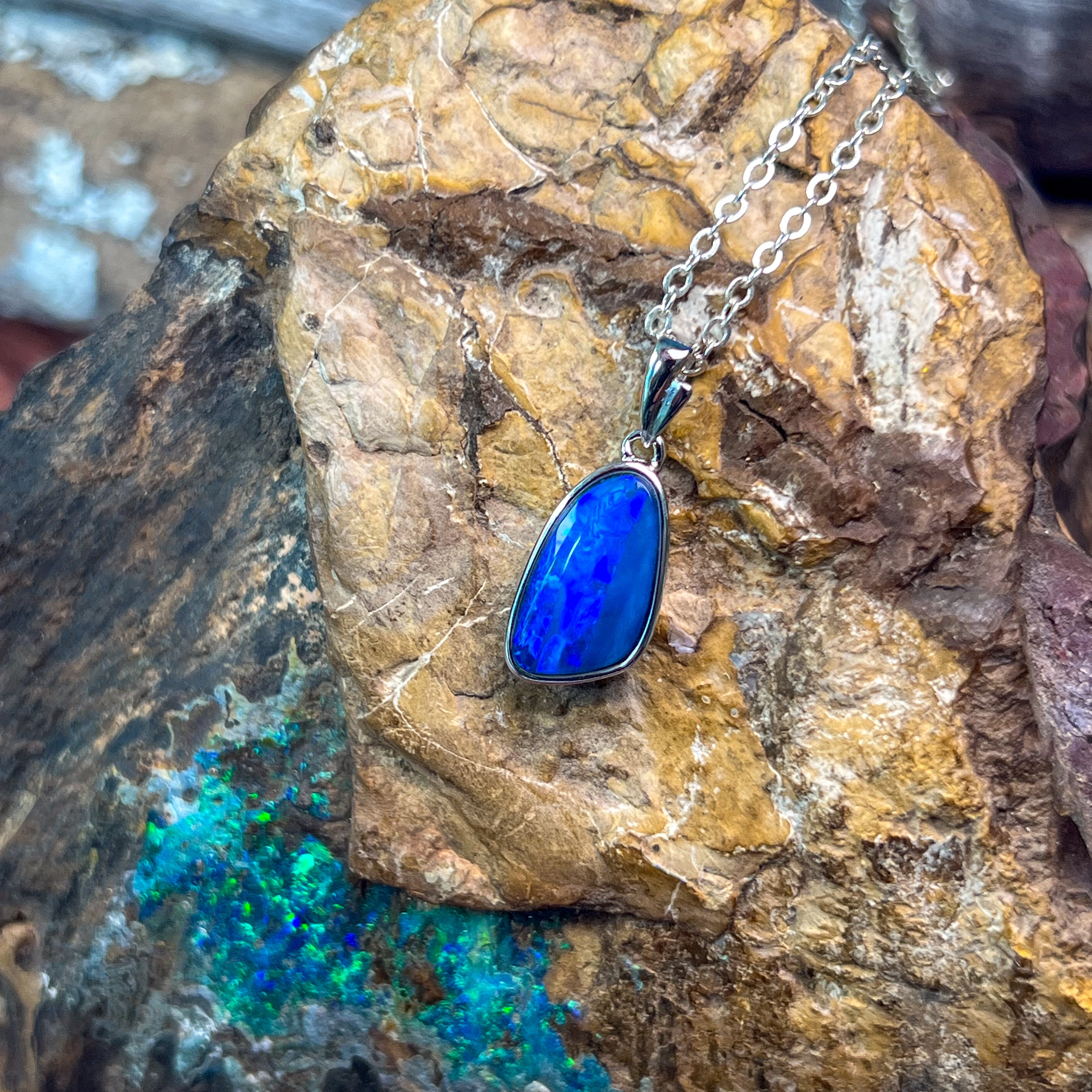 Add a splash of magic to your day with this Sterling Silver Blue Opal doublet bezel pendant. Its shimmering blue opal birthstone catches the light beautifully, making it the perfect playful accessory to brighten any outfit. Crafted with care, this necklace is a charming way to celebrate your birth month or gift a loved one something truly special.