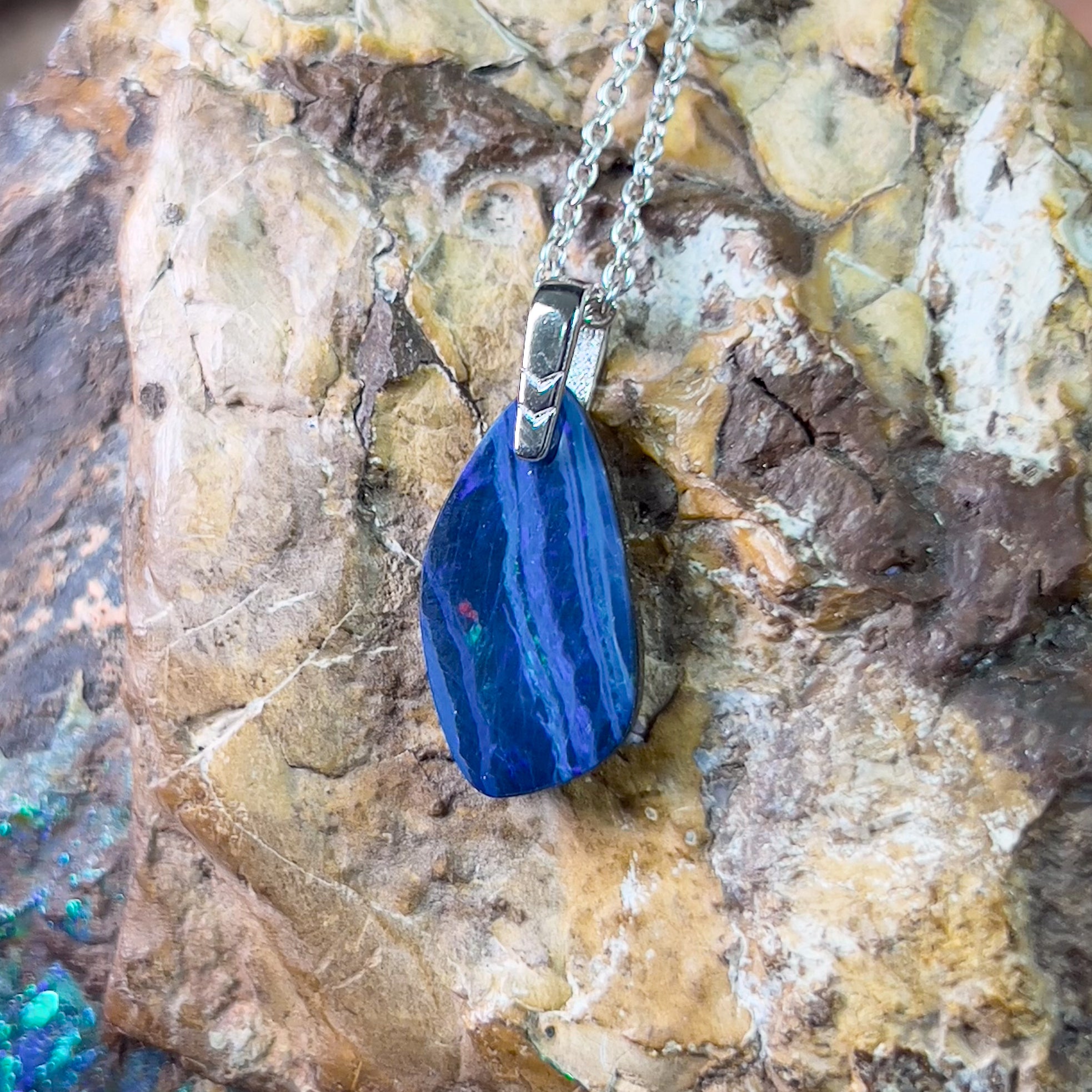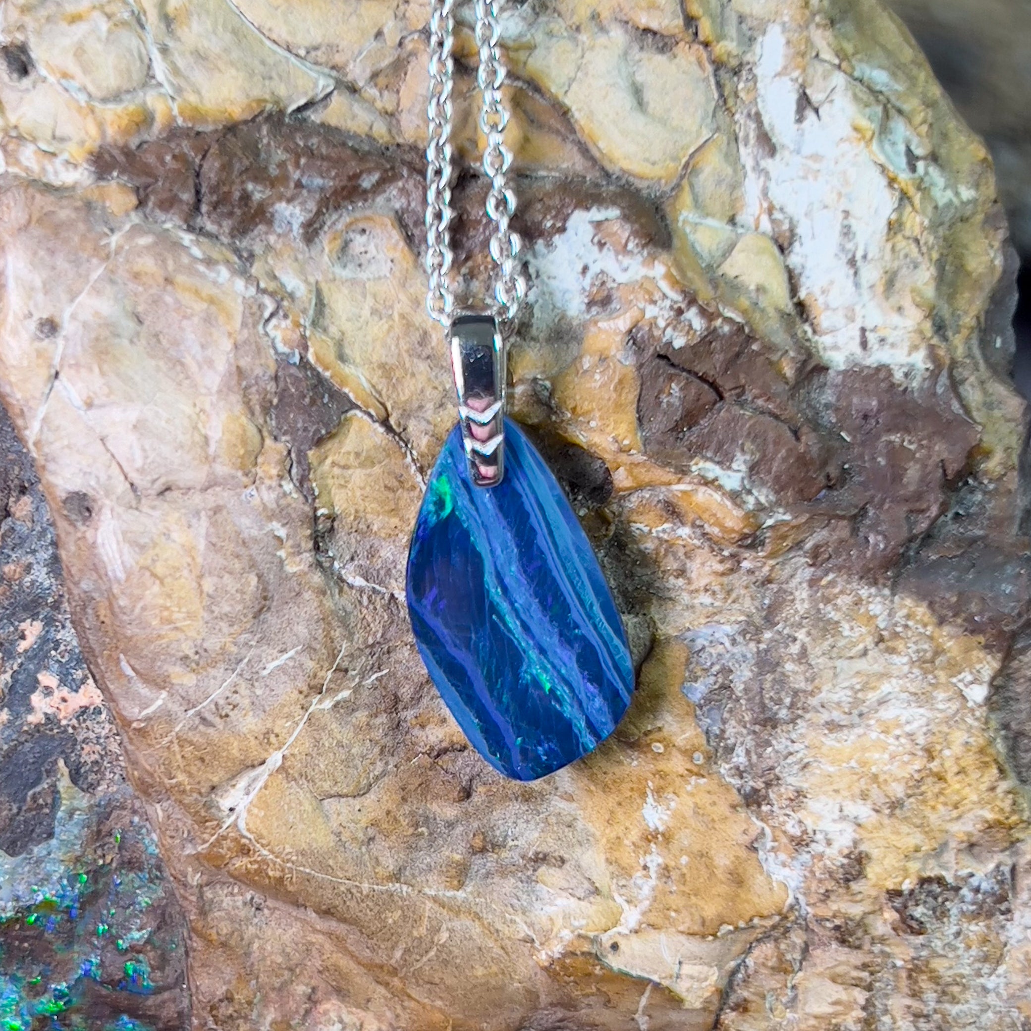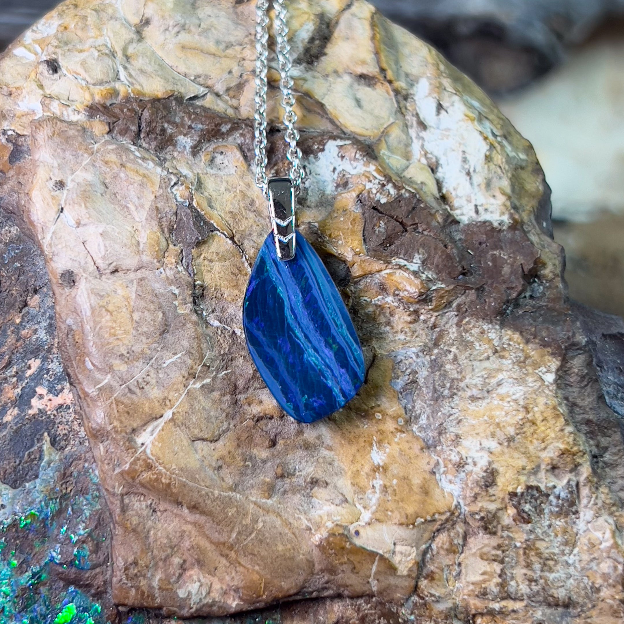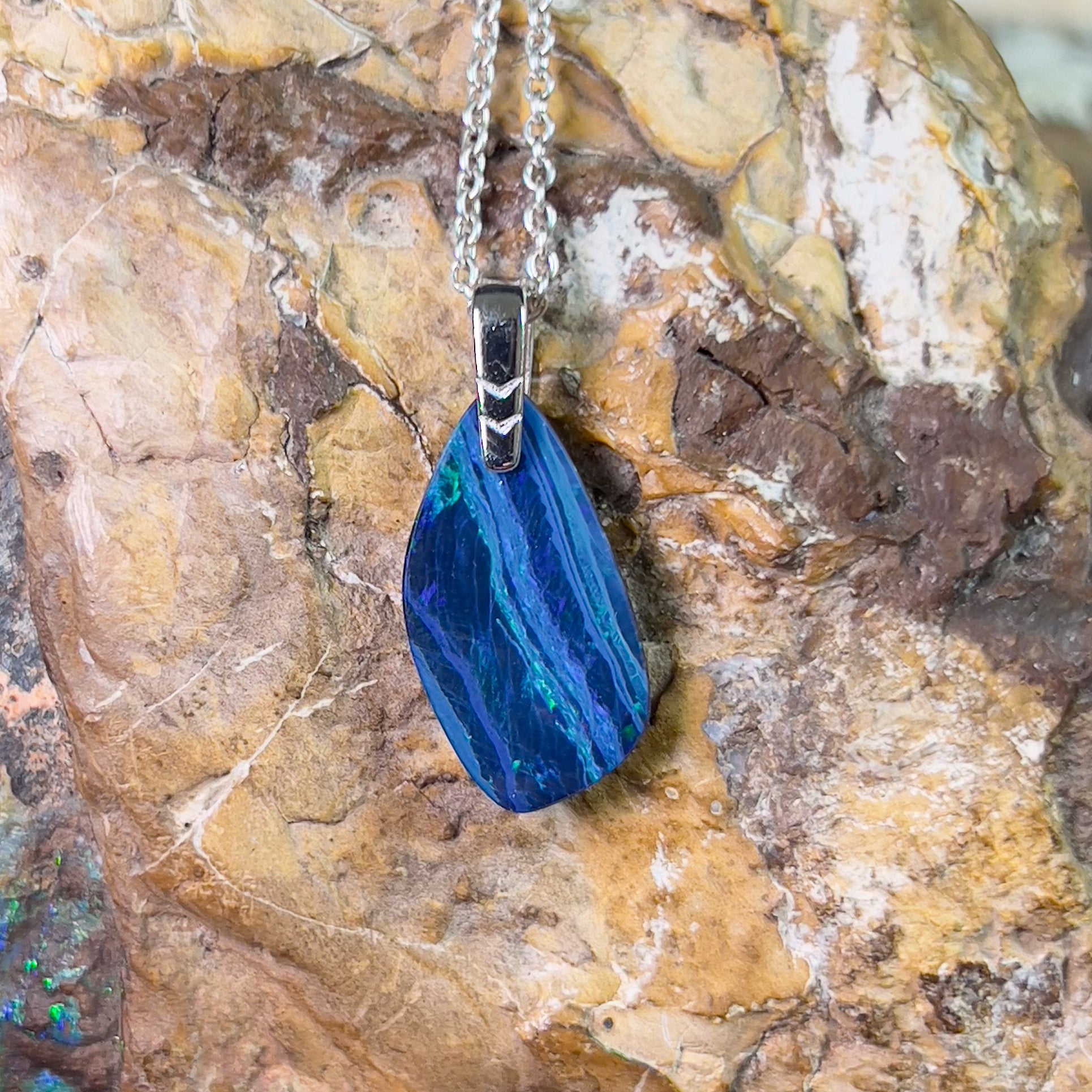 Add some sparkle and sophistication to your collection with our Sterling Silver Blue stripe pattern Opal doublet pattern. The unique stripe pattern adds a touch of elegance, while the stunning opal doublet reflects a mesmerizing array of colors. Elevate any outfit and make a statement with this must-have piece.