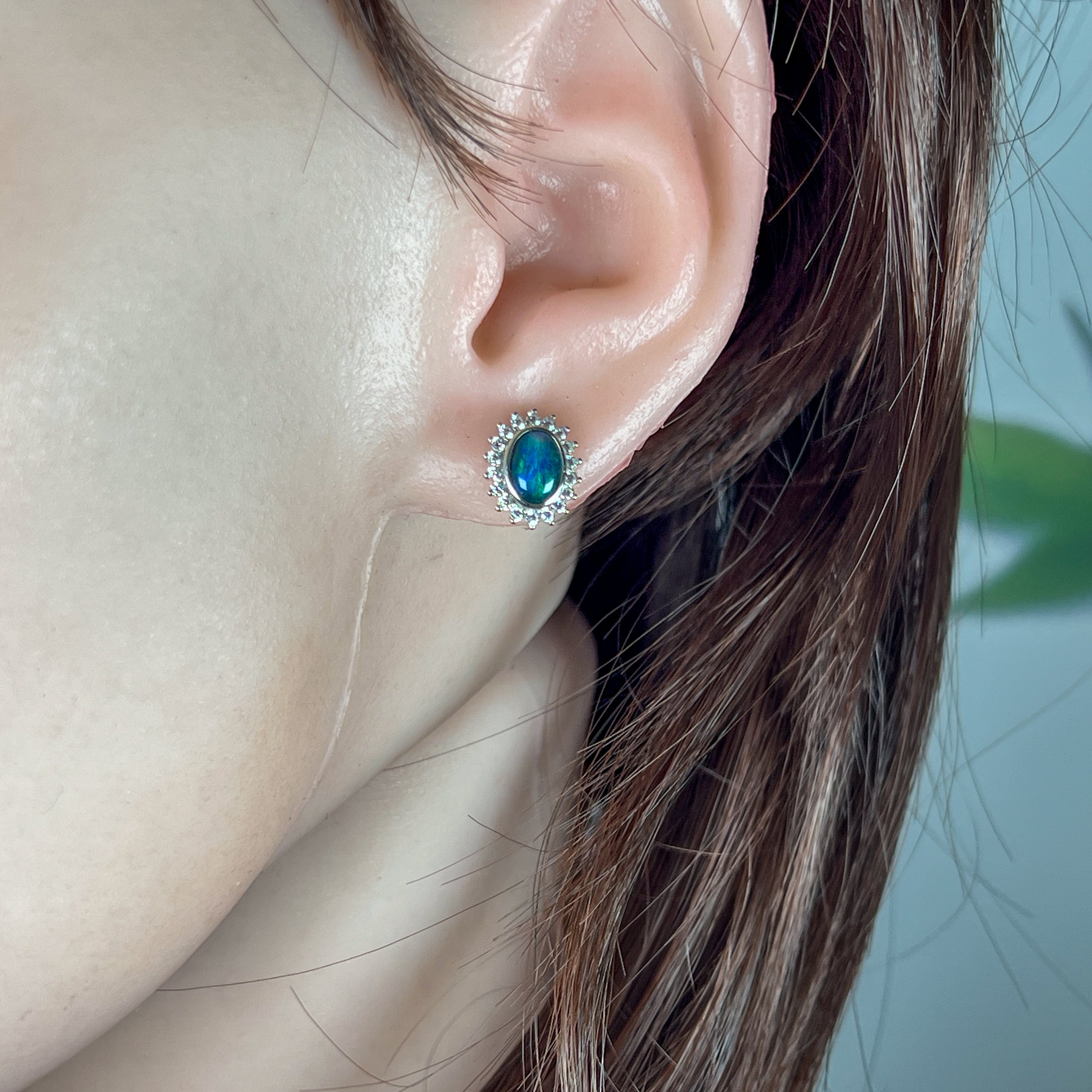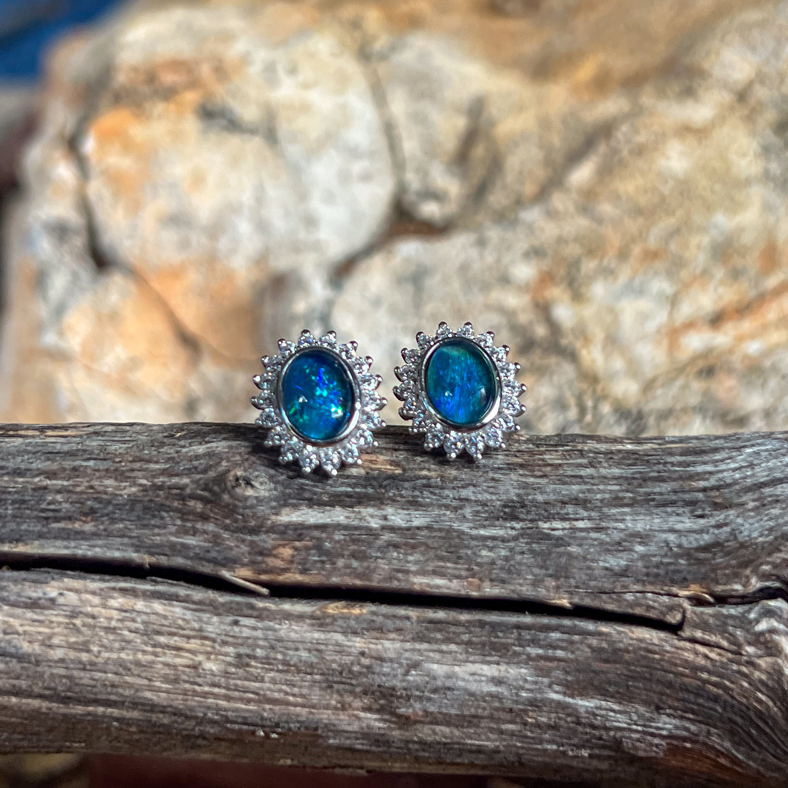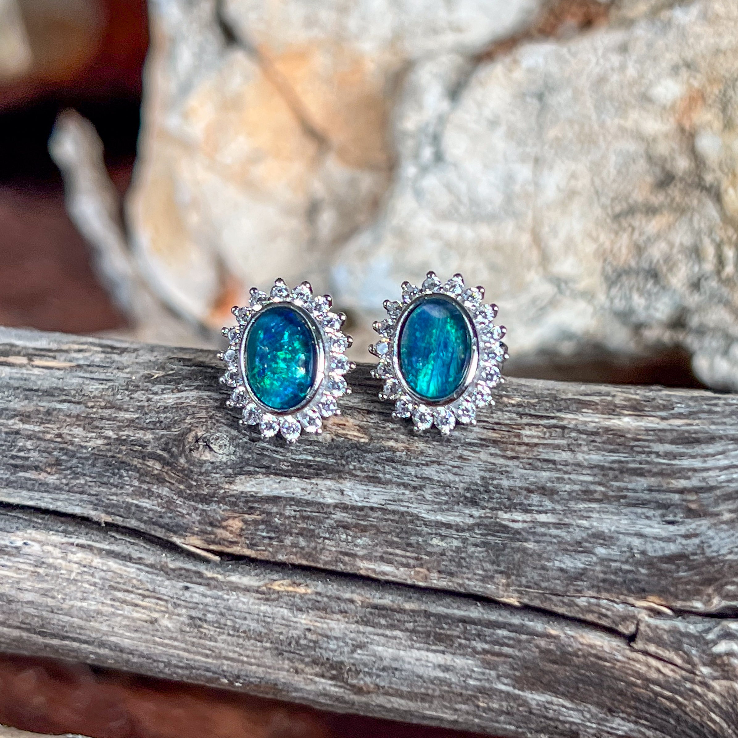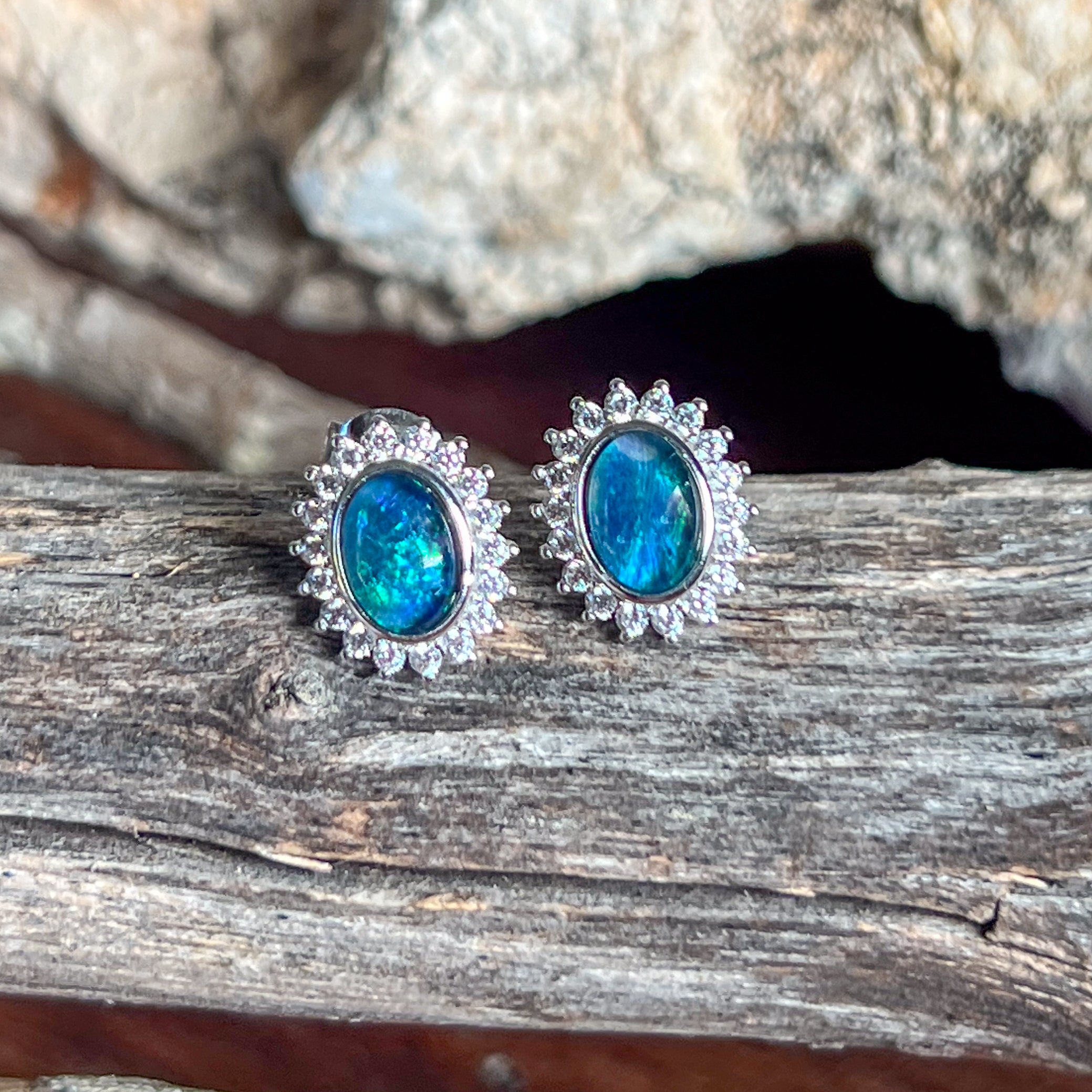 Sterling Silver cluster stud Opal triplet 7x5mm bezel style earrings