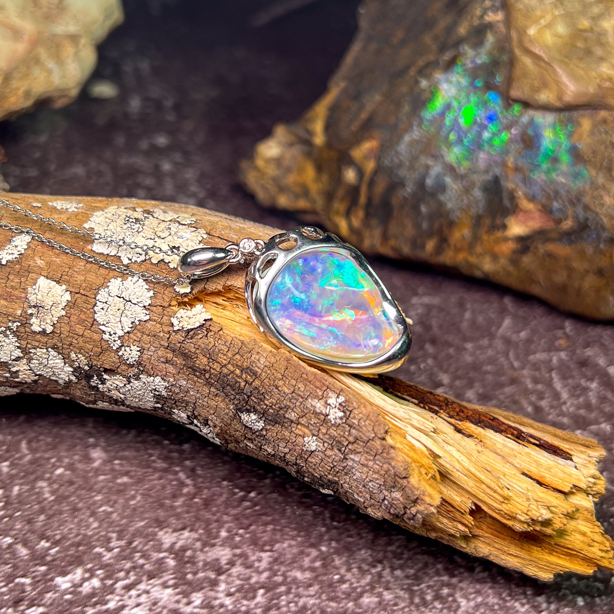 This stunning sterling silver pendant features a natural, high quality crystal opal that exudes elegance and sophistication. Perfect for any occasion, this opal jewelry for her will add a touch of luxury to any outfit. Elevate your style with the mesmerizing beauty of this opal pendant.