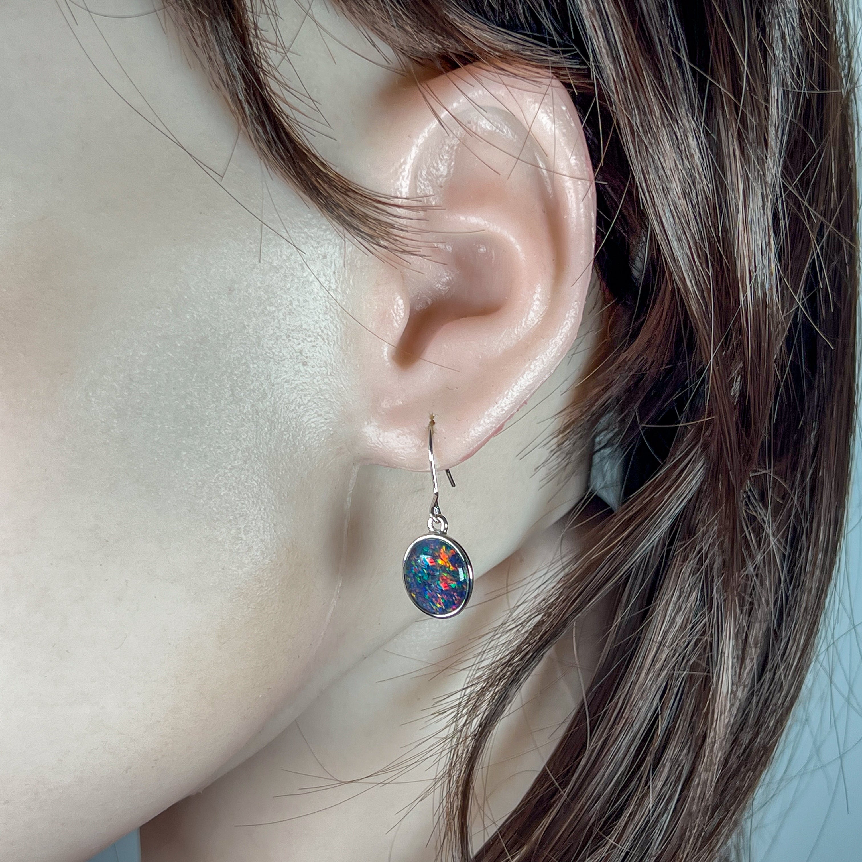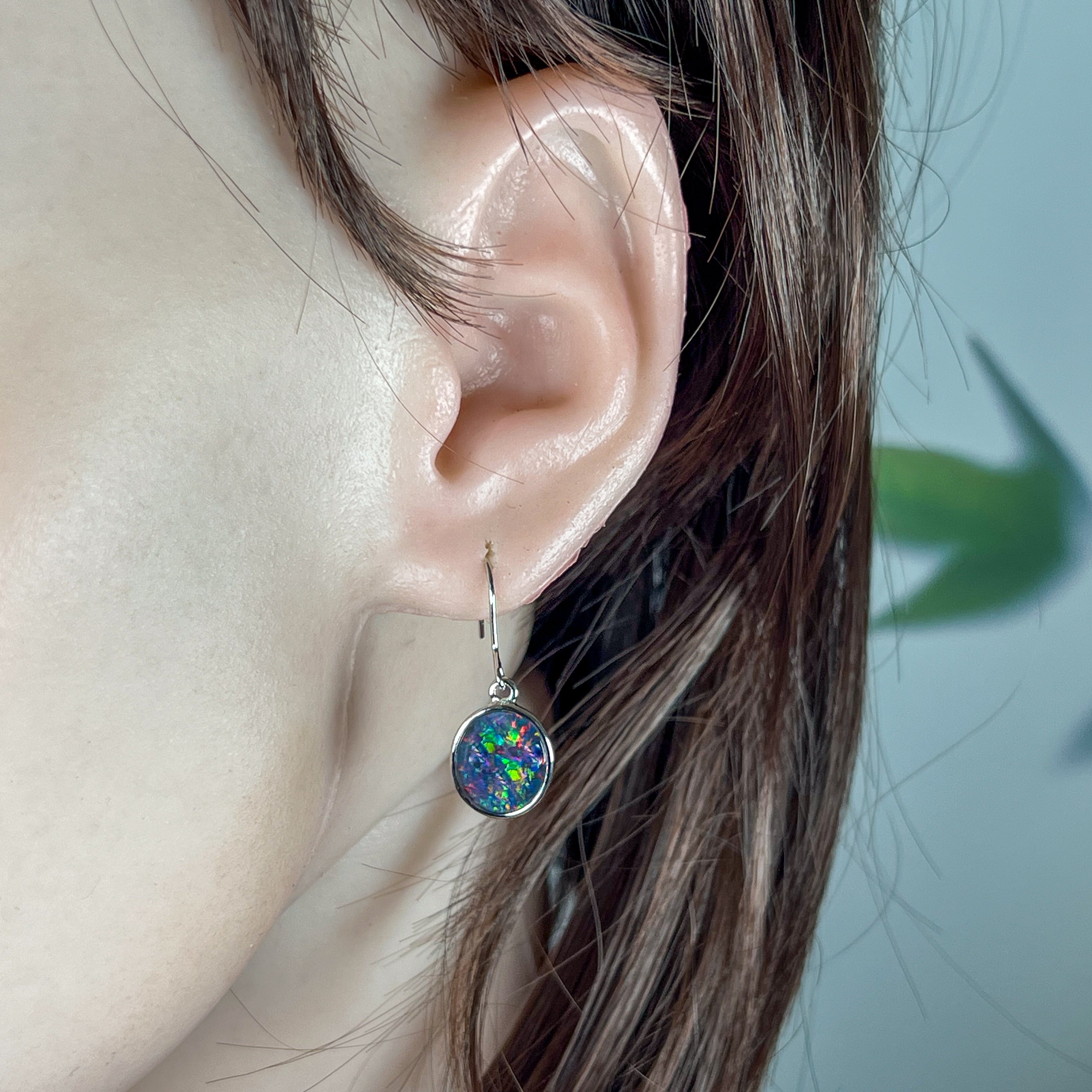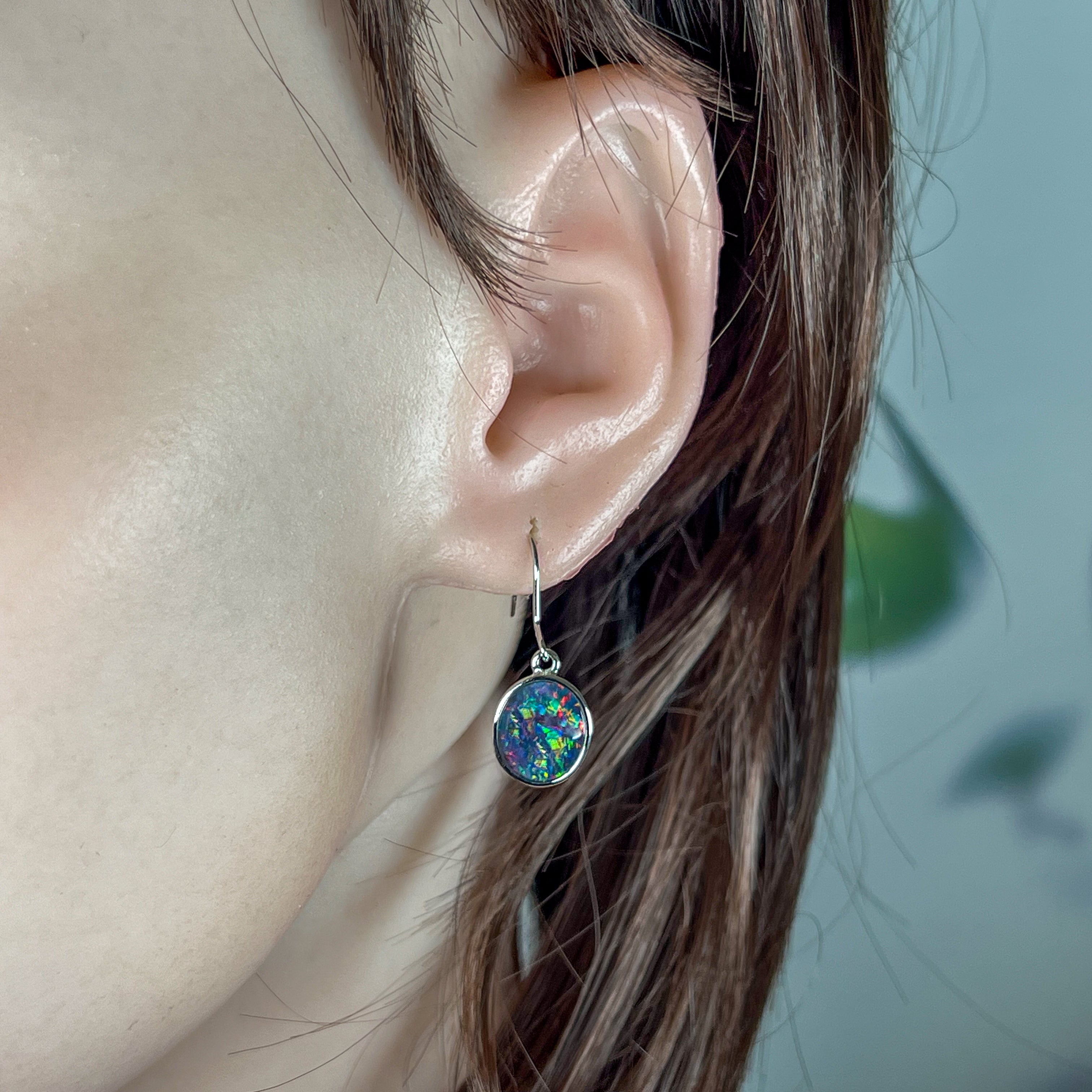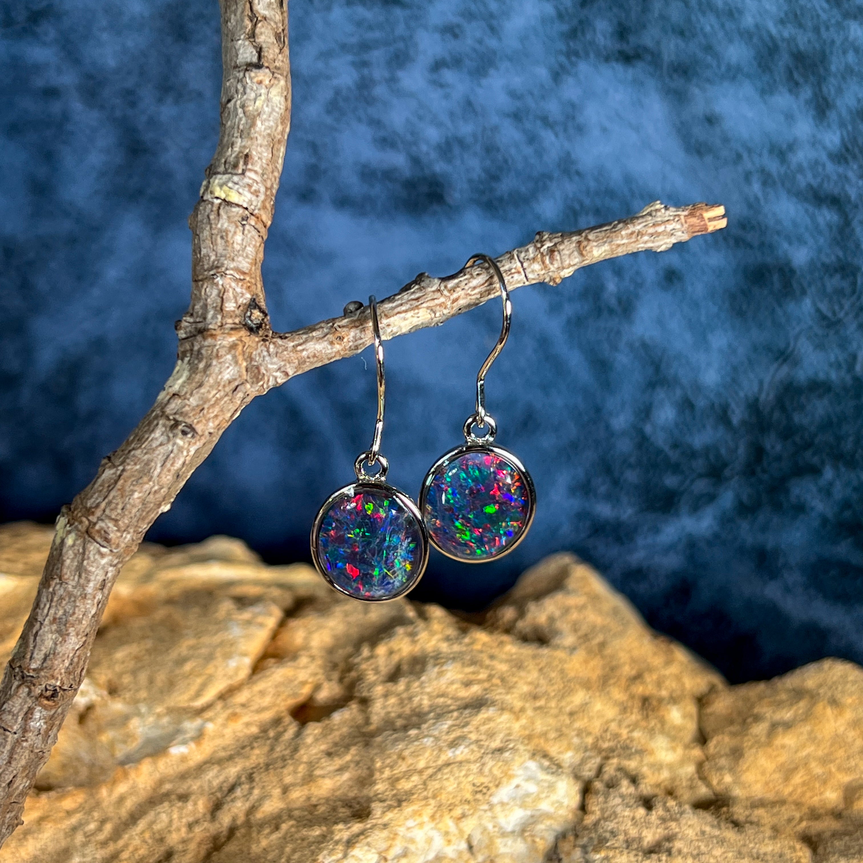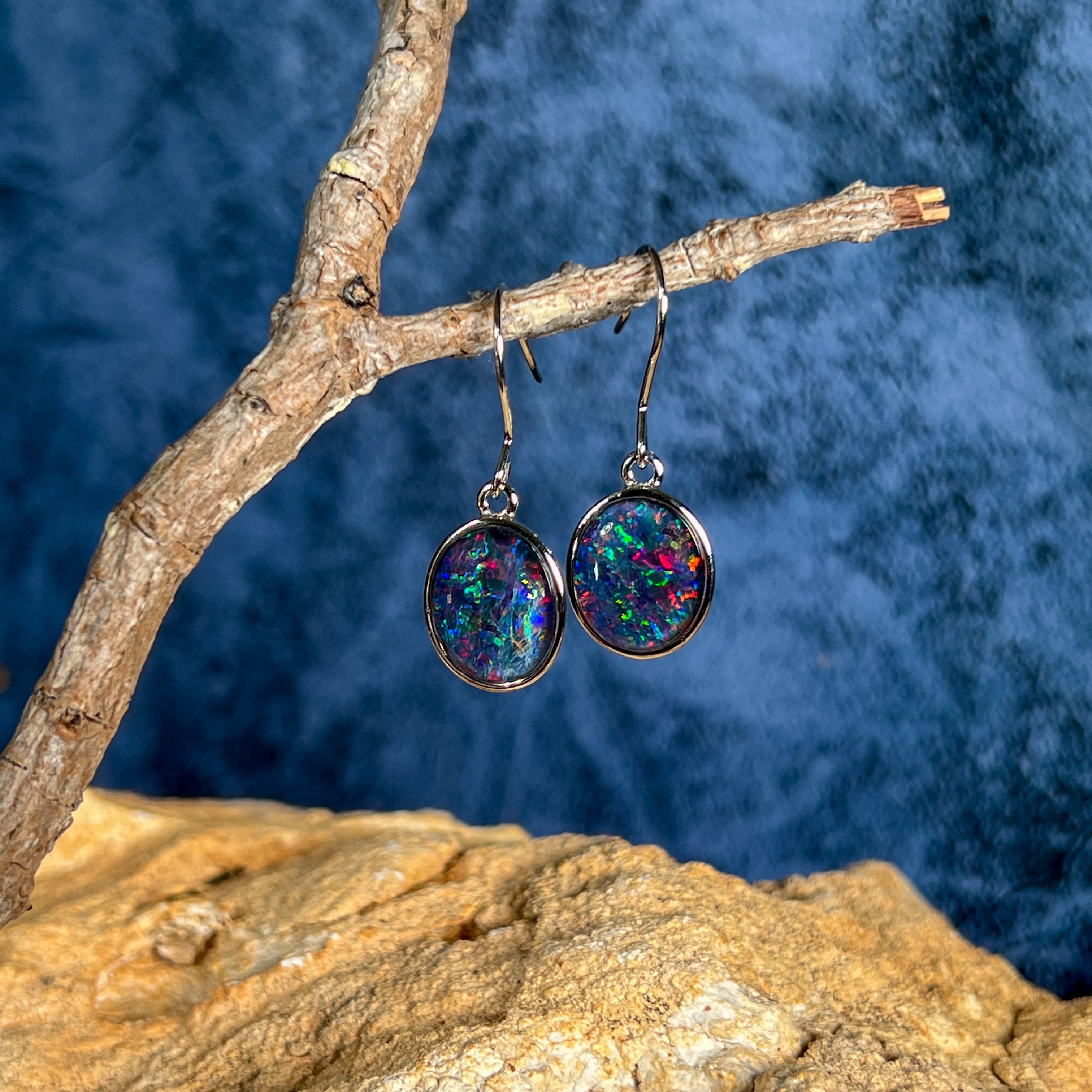 Sterling Silver dangling 12x10mm Opal Triplet bezel set earrings hooks