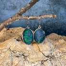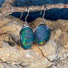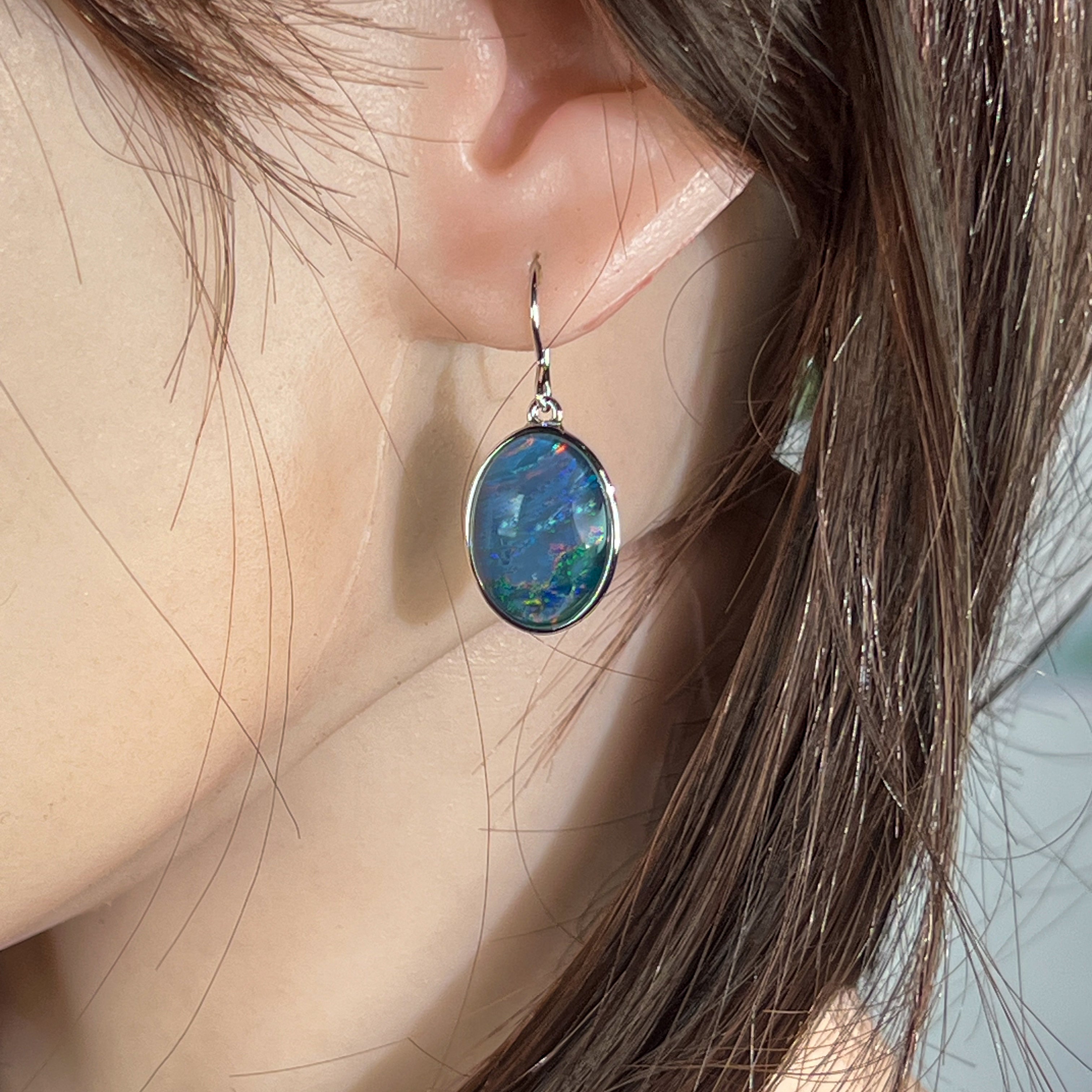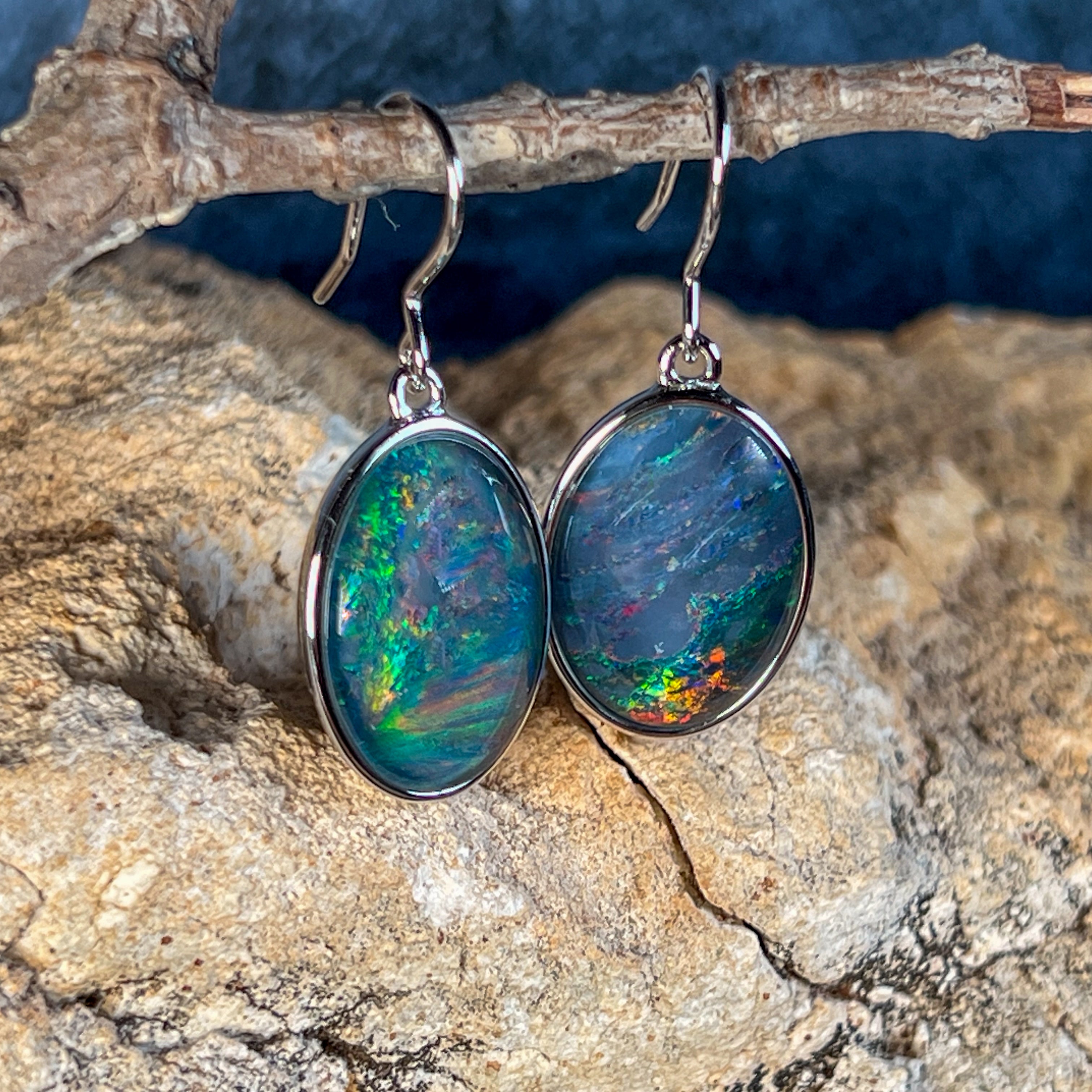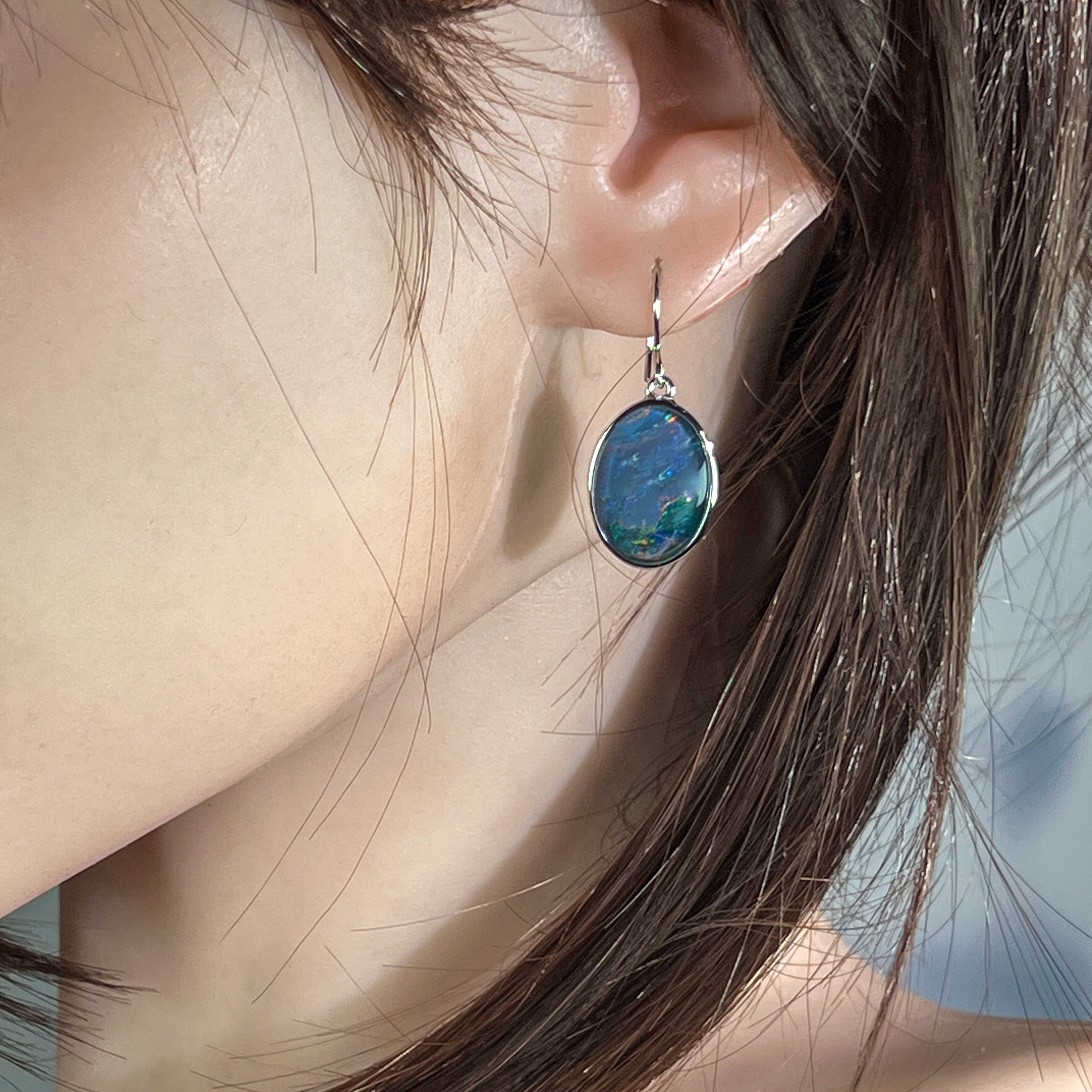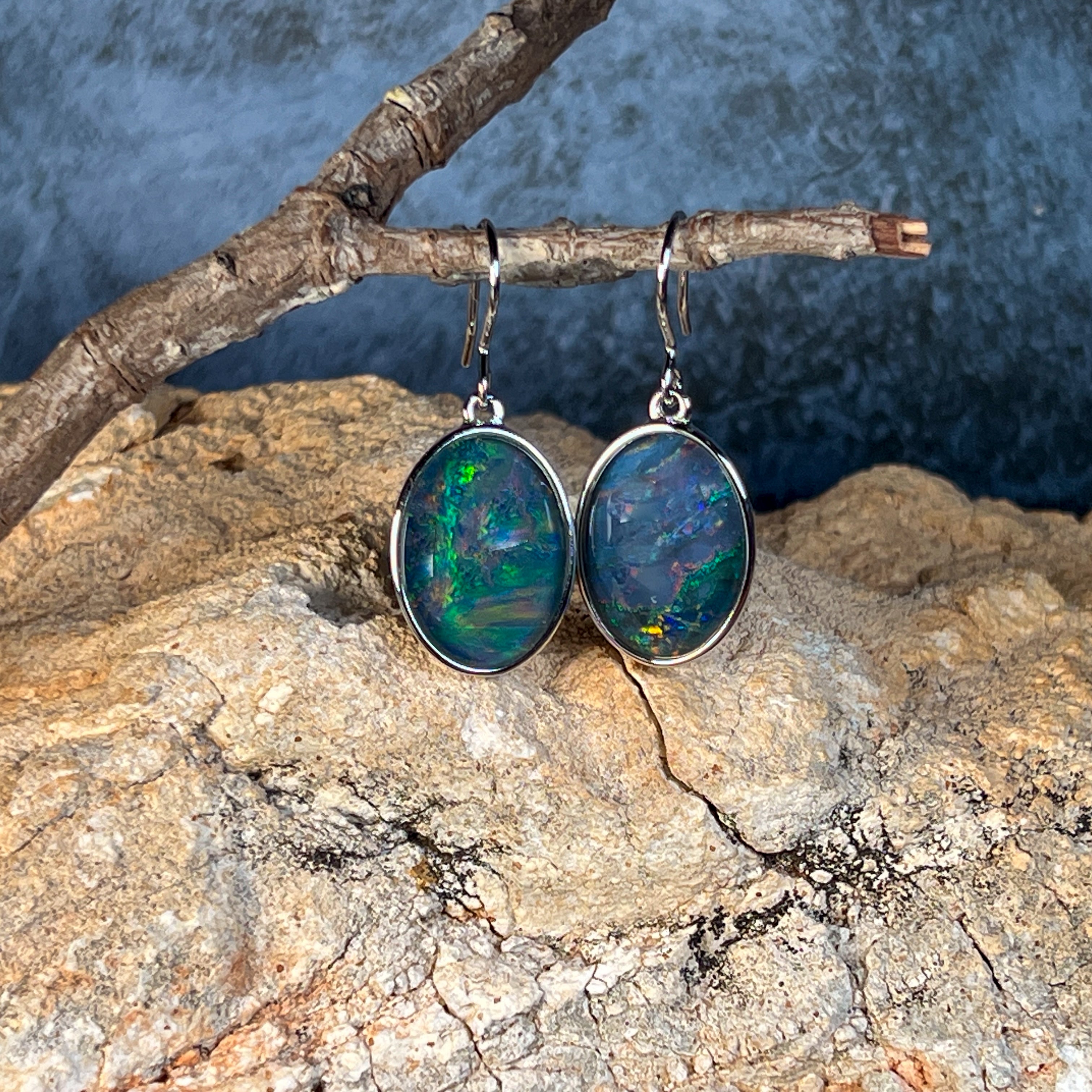 Elevate your jewellery collection with these stunning Sterling Silver dangling Opal triplet earrings. Featuring generous proportions that make a bold statement, these earrings showcase the mesmerising play of colour unique to quality opal stones. The triplet construction ensures durability and vibrant optical effects, while the sterling silver setting provides timeless elegance and lasting quality. Perfect for those who appreciate distinctive, eye-catching pieces that spark conversation. Whether you're dressing up for a special occasion or adding sophistication to everyday wear, these large dangling earrings deliver versatile style with genuine gemstone beauty.
