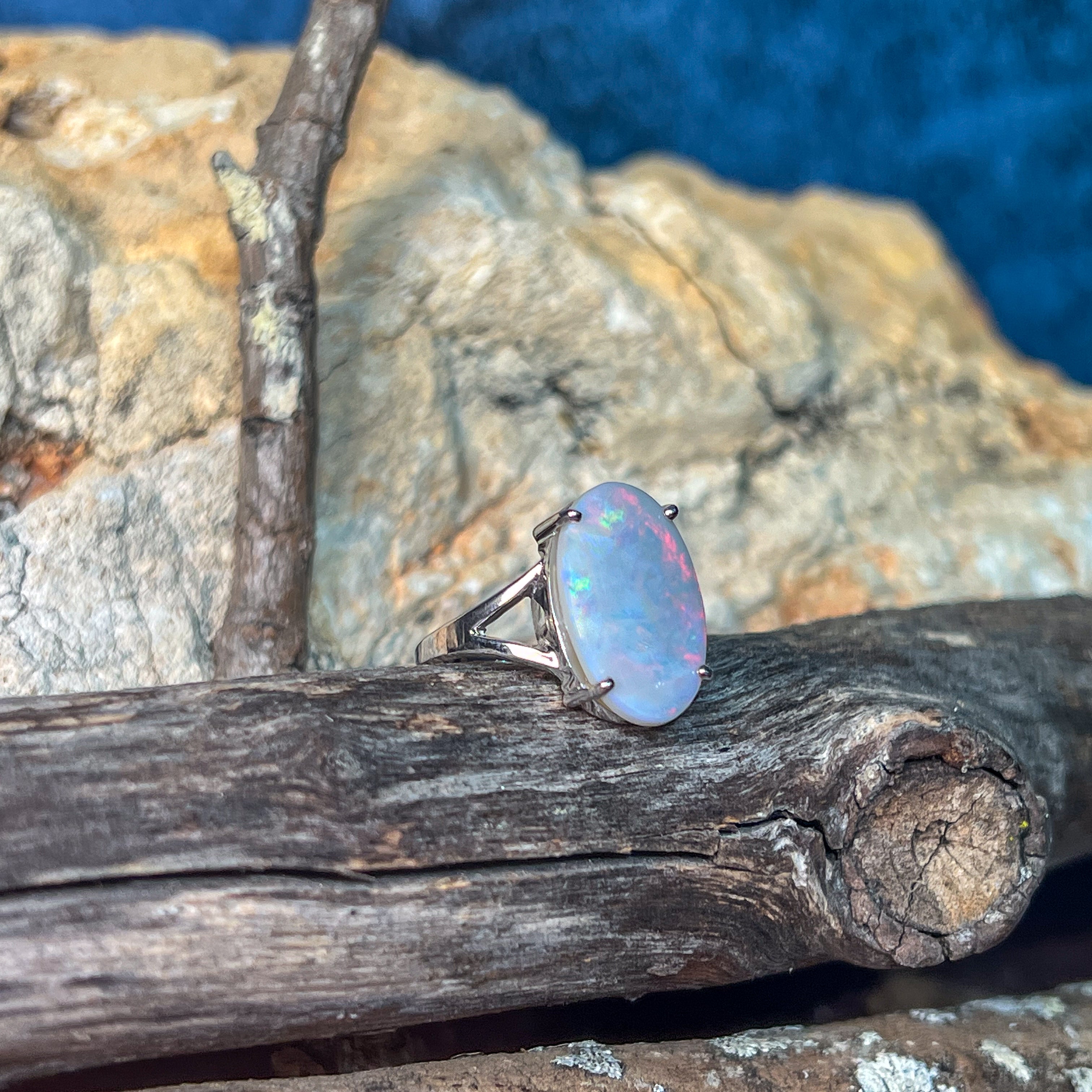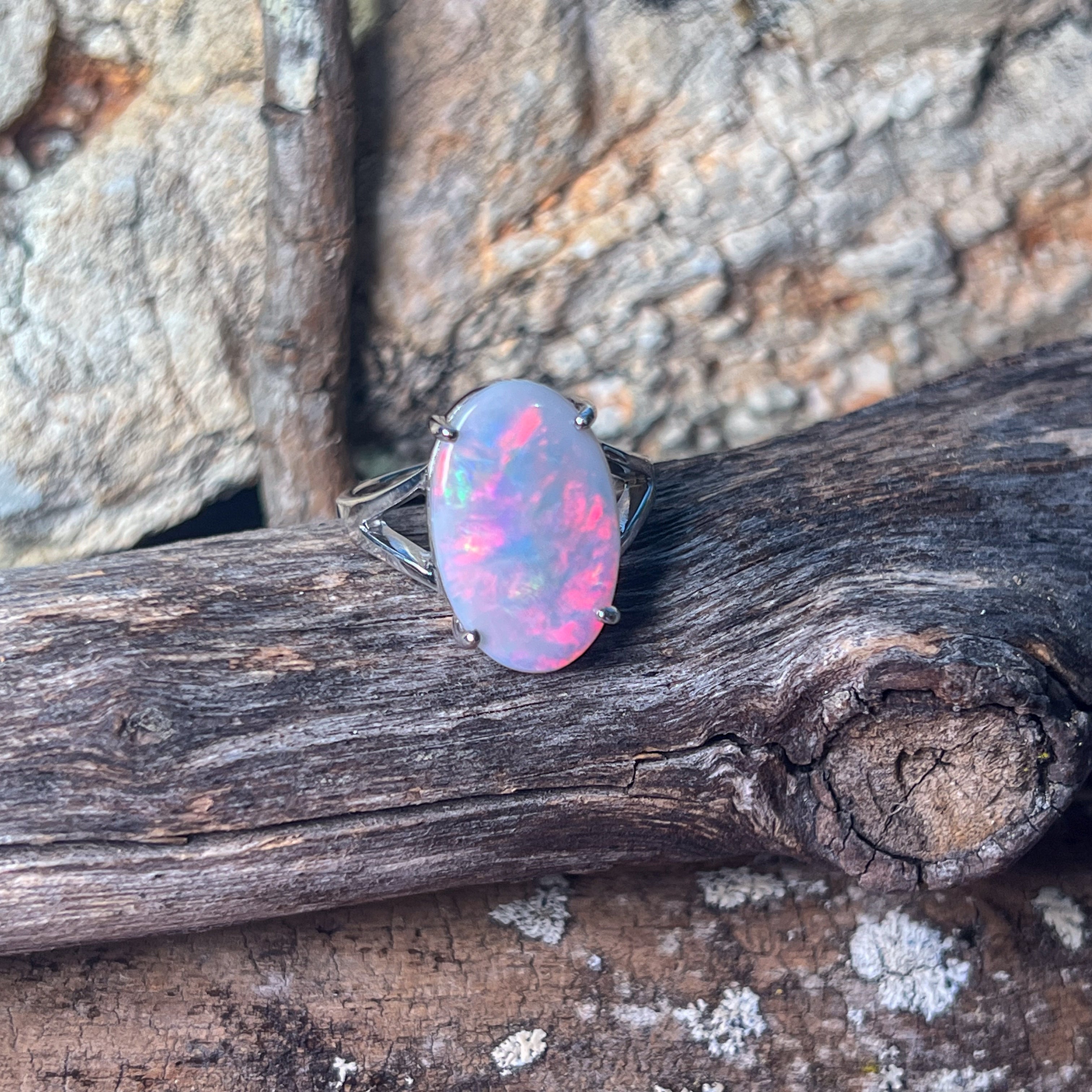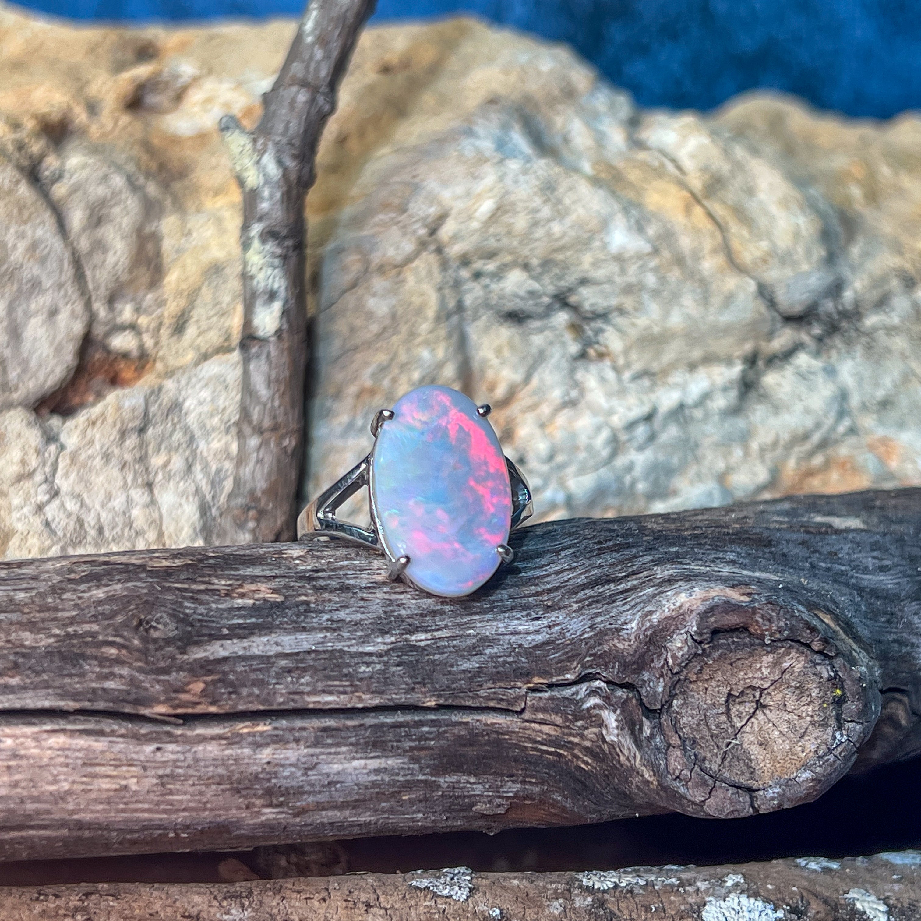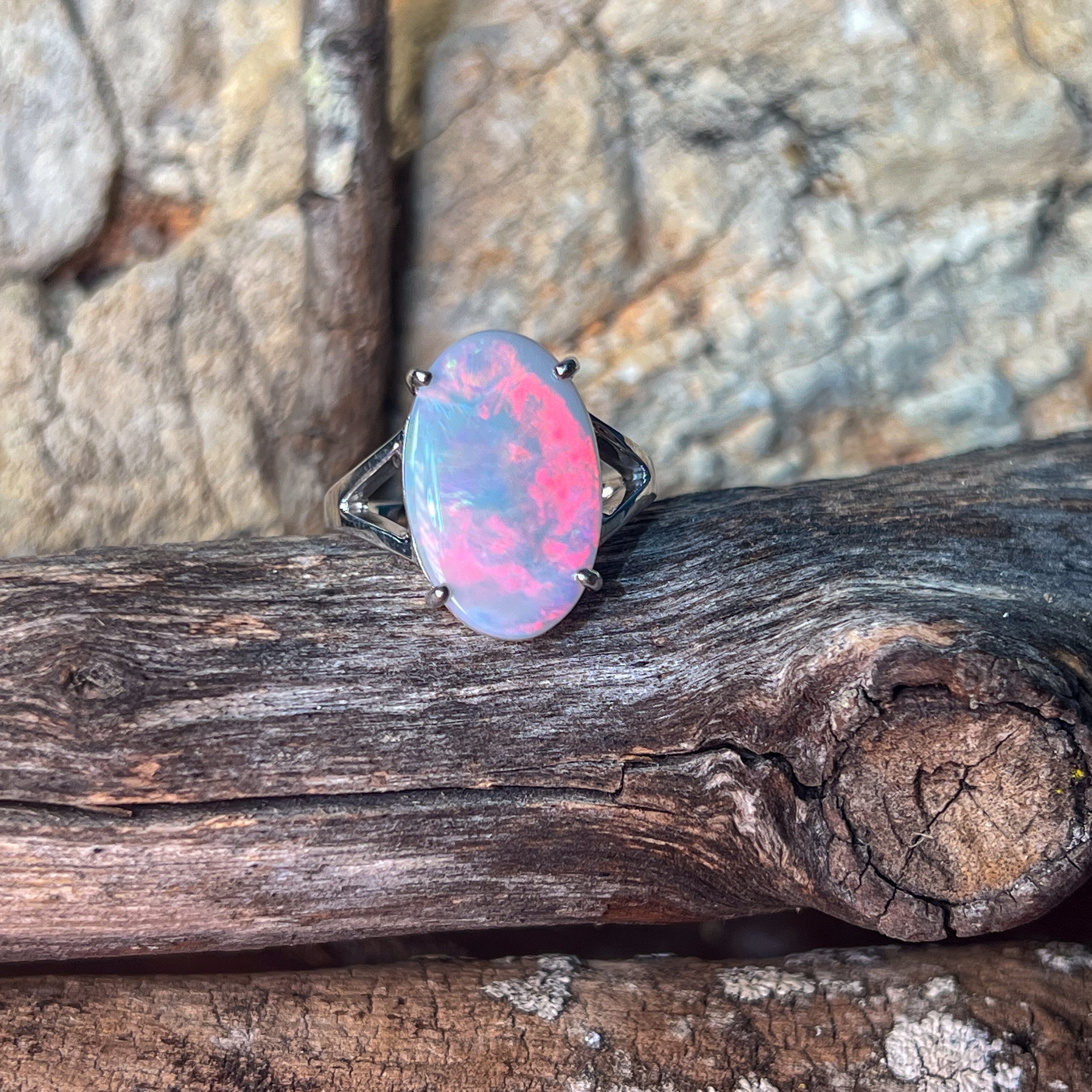 Sterling Silver Dark Opal 6.35ct claw set split shank