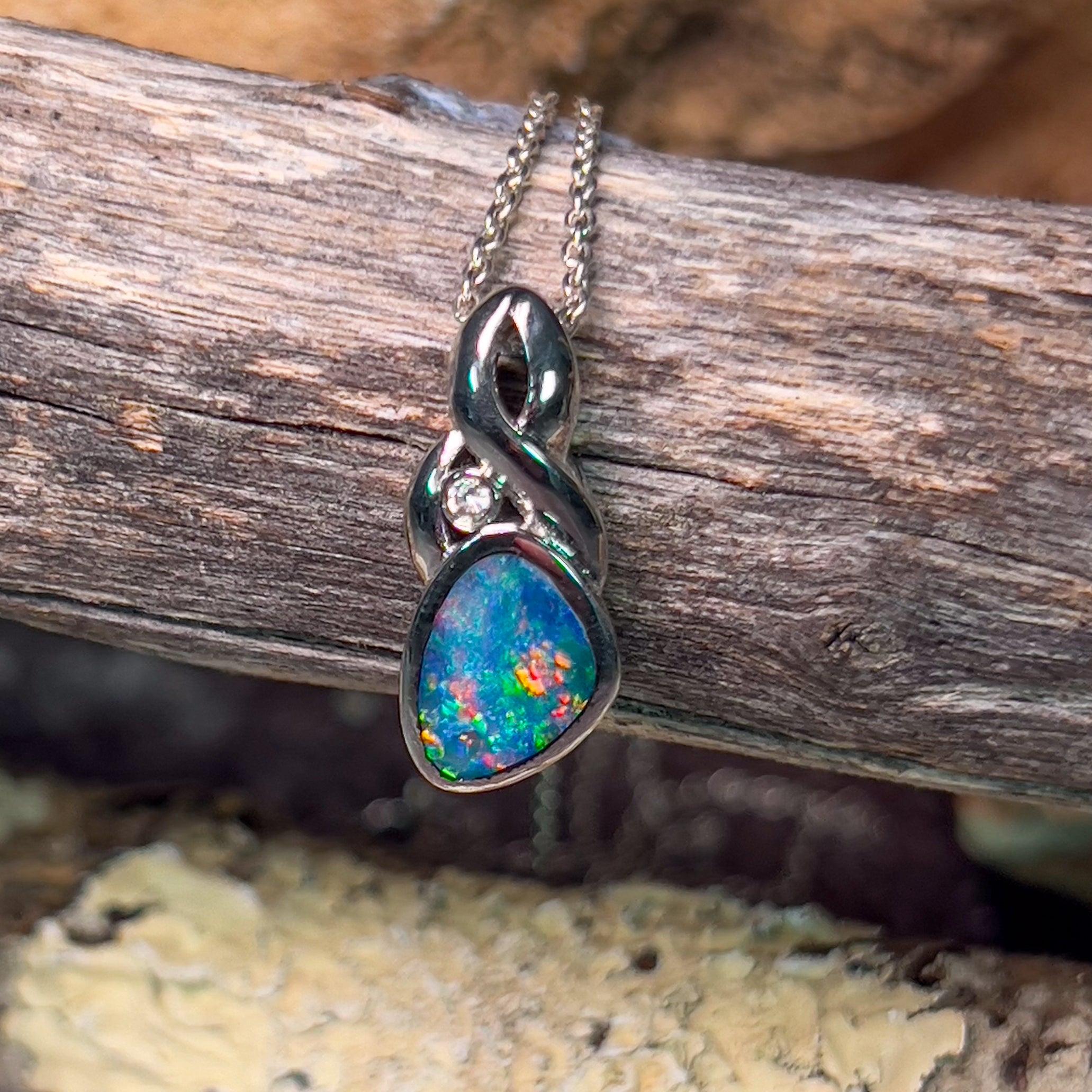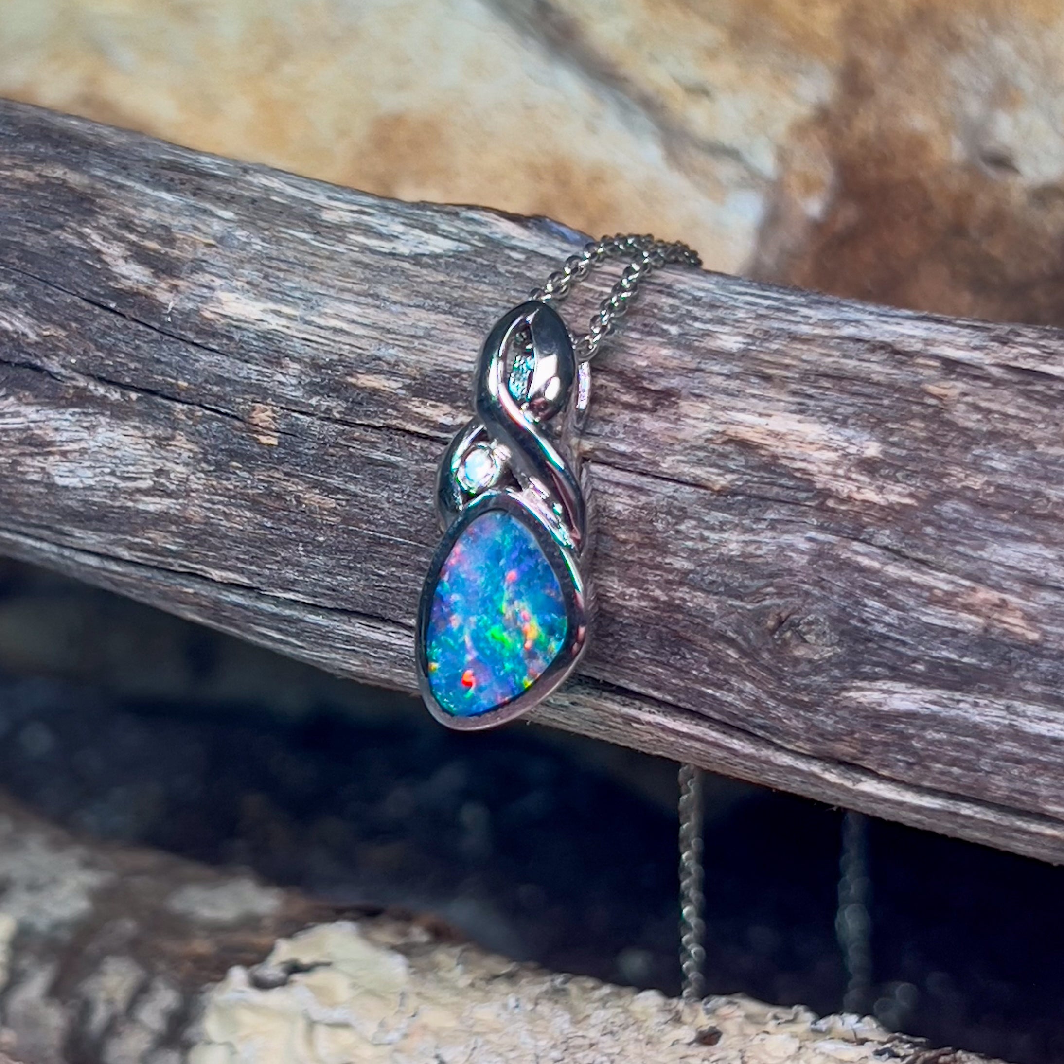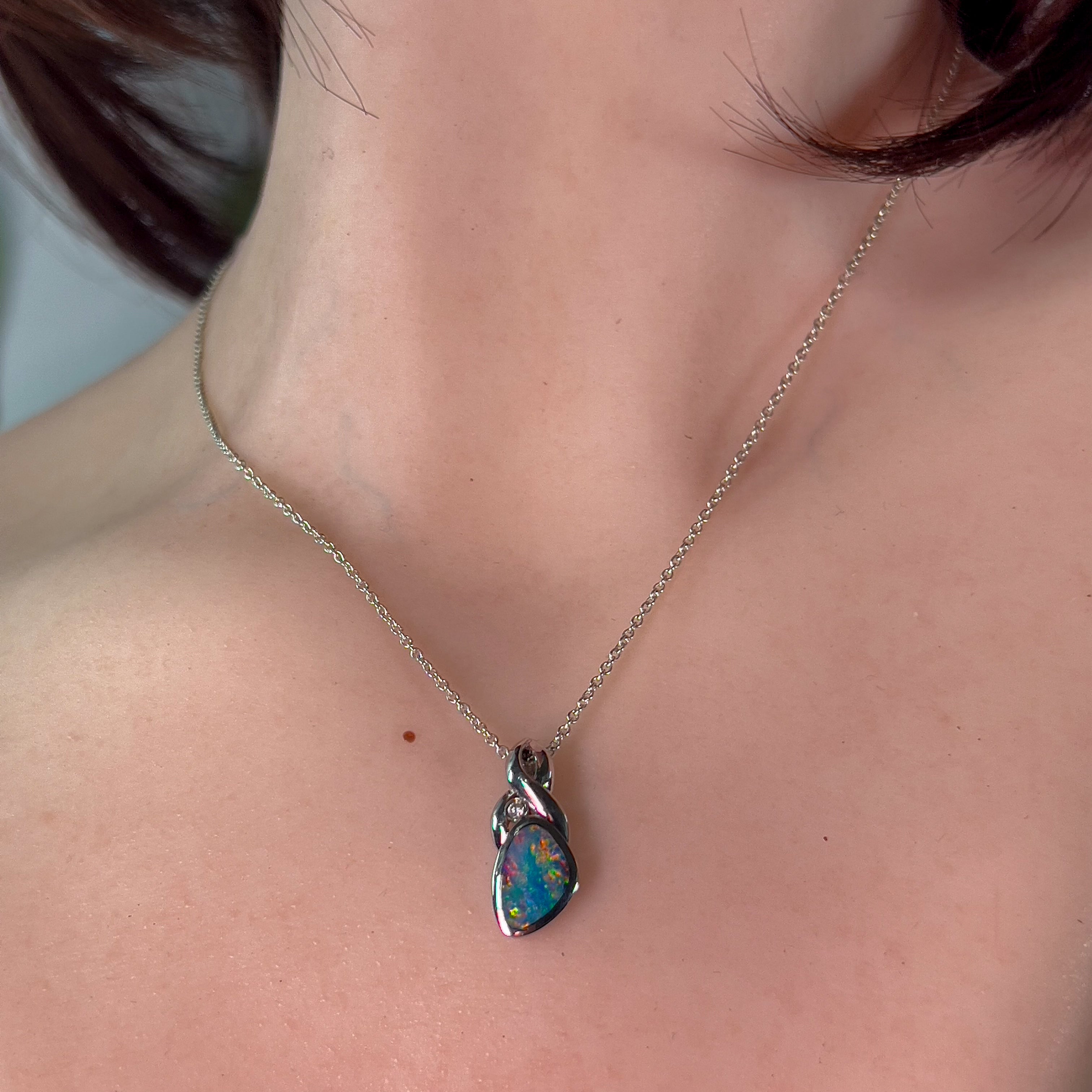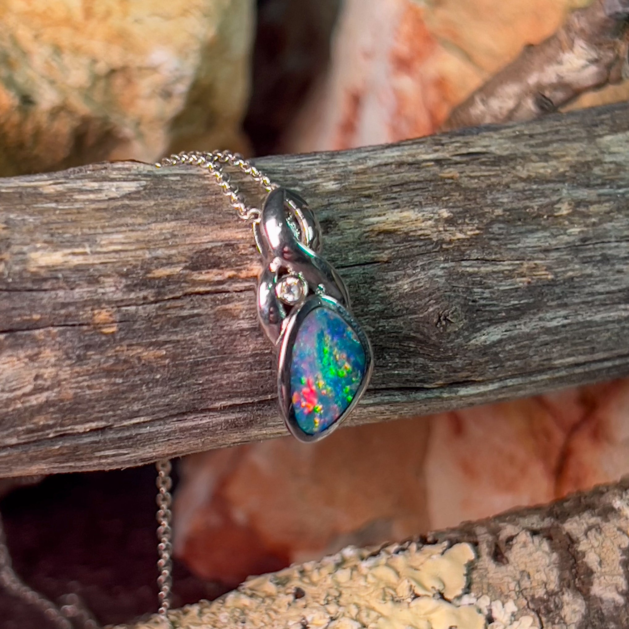 Sterling Silver Freeform drop shape Opal doublet pendant