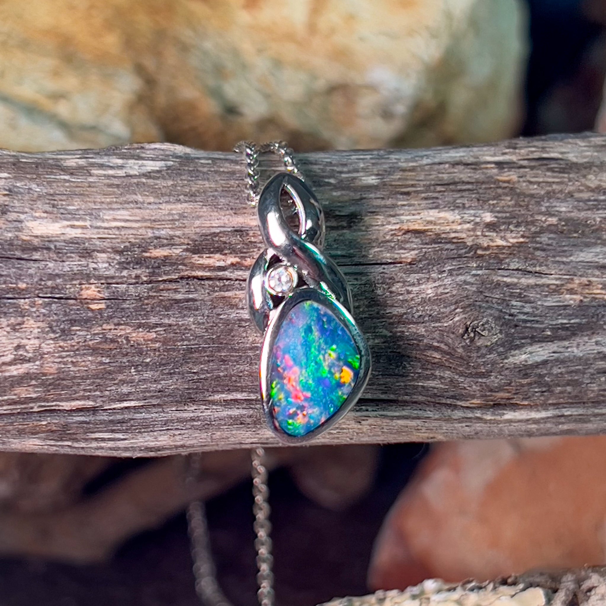 Experience the stunning beauty and color of our Sterling Silver Freeform Opal doublet pendant! Each pendant features a sharp, vibrant color that will make you stand out in any crowd. Elevate your style and express your unique personality with this one-of-a-kind piece. Add it to your collection today!