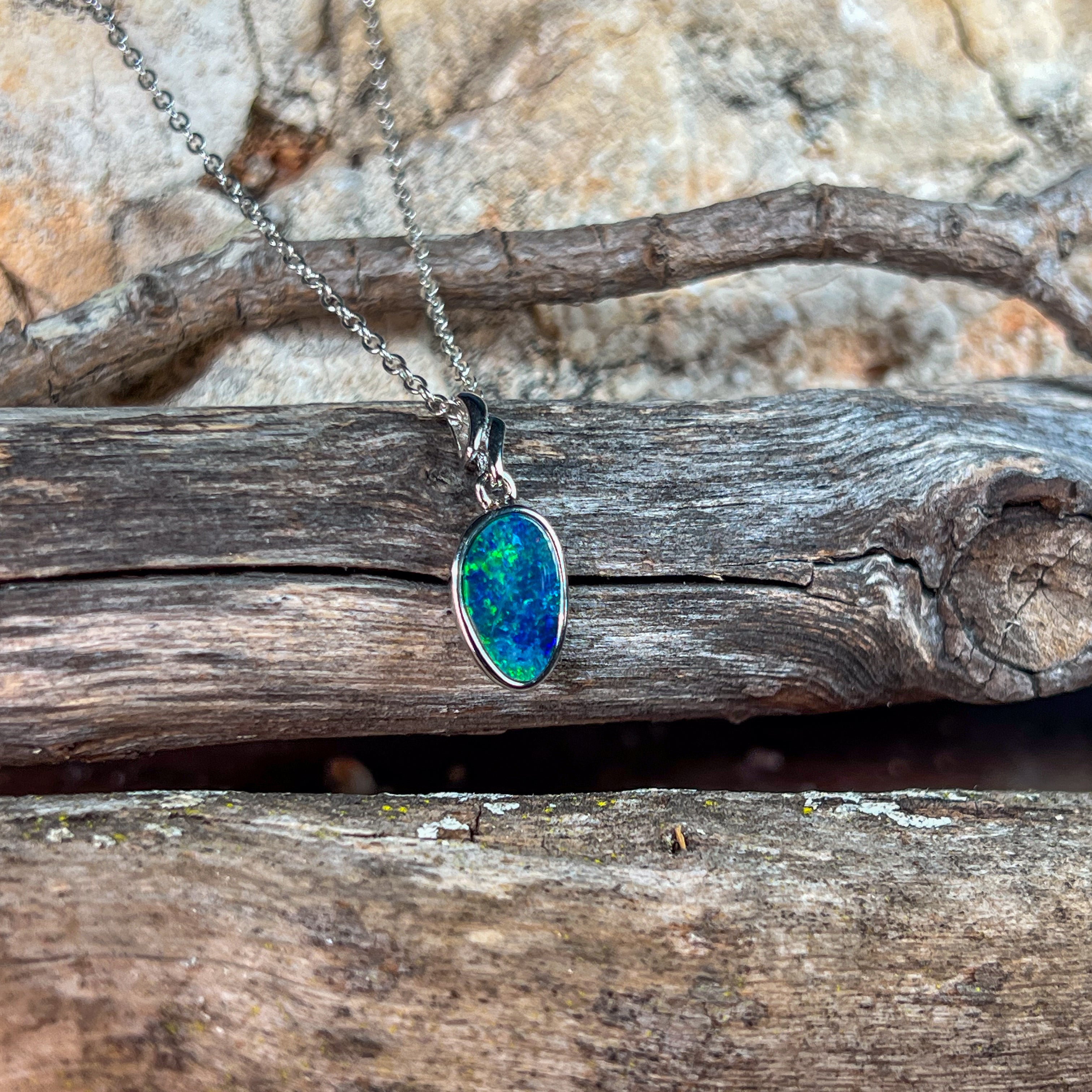 Sterling Silver freeform Green Blue Opal doublet pendant