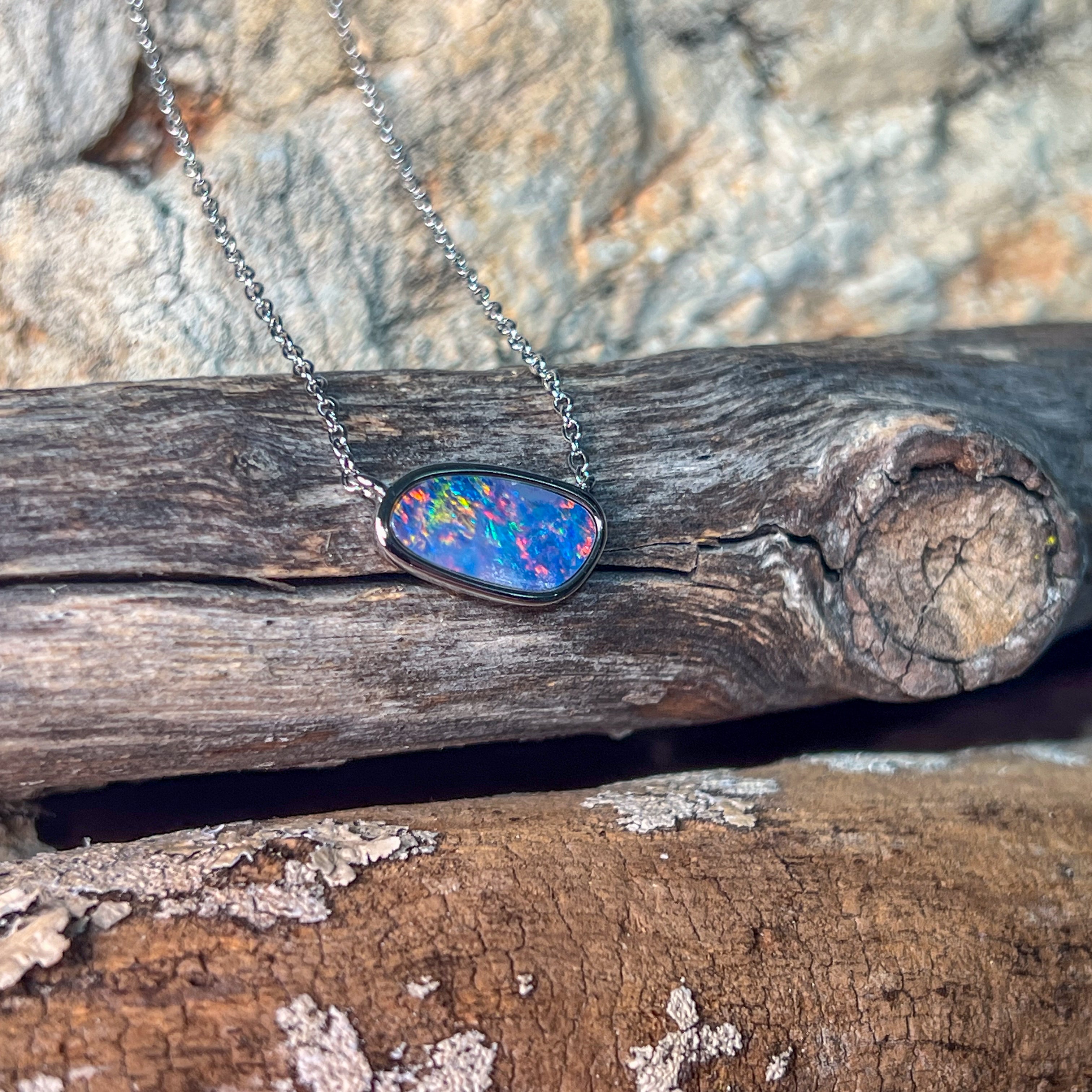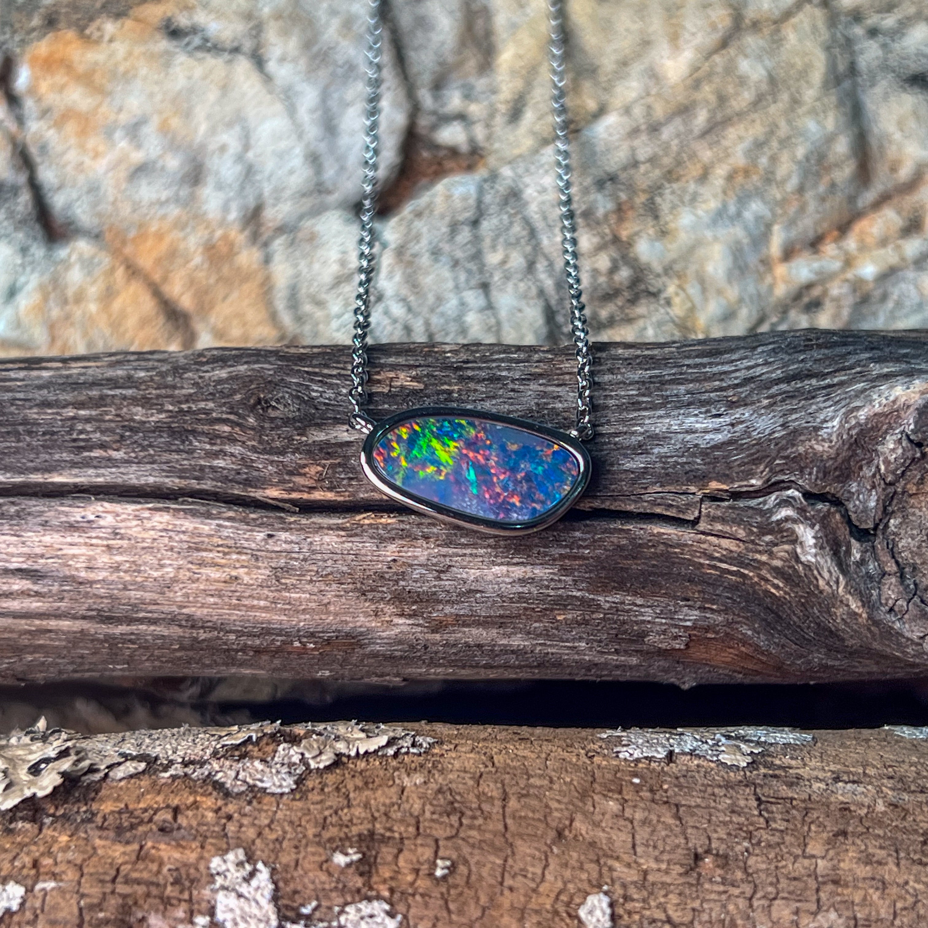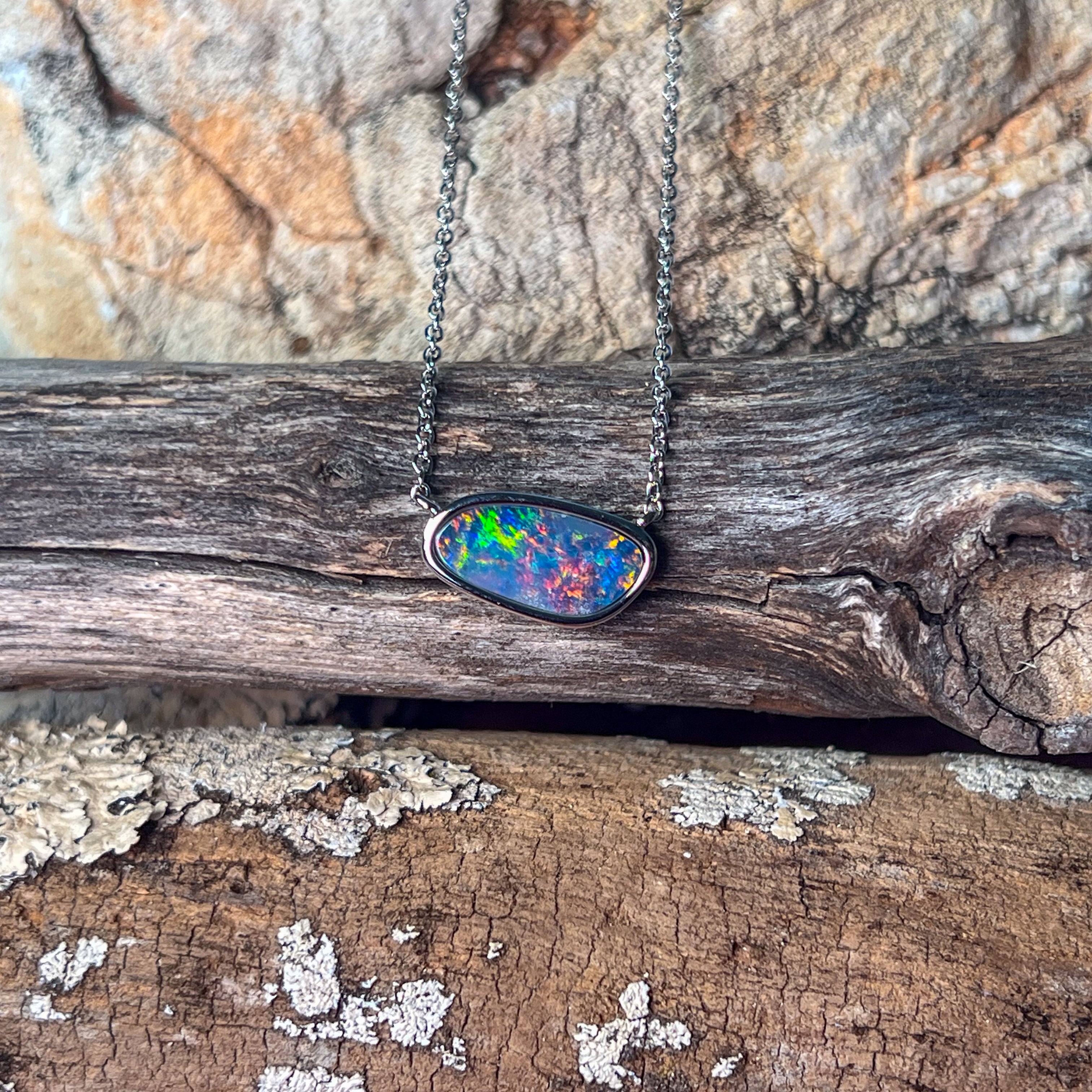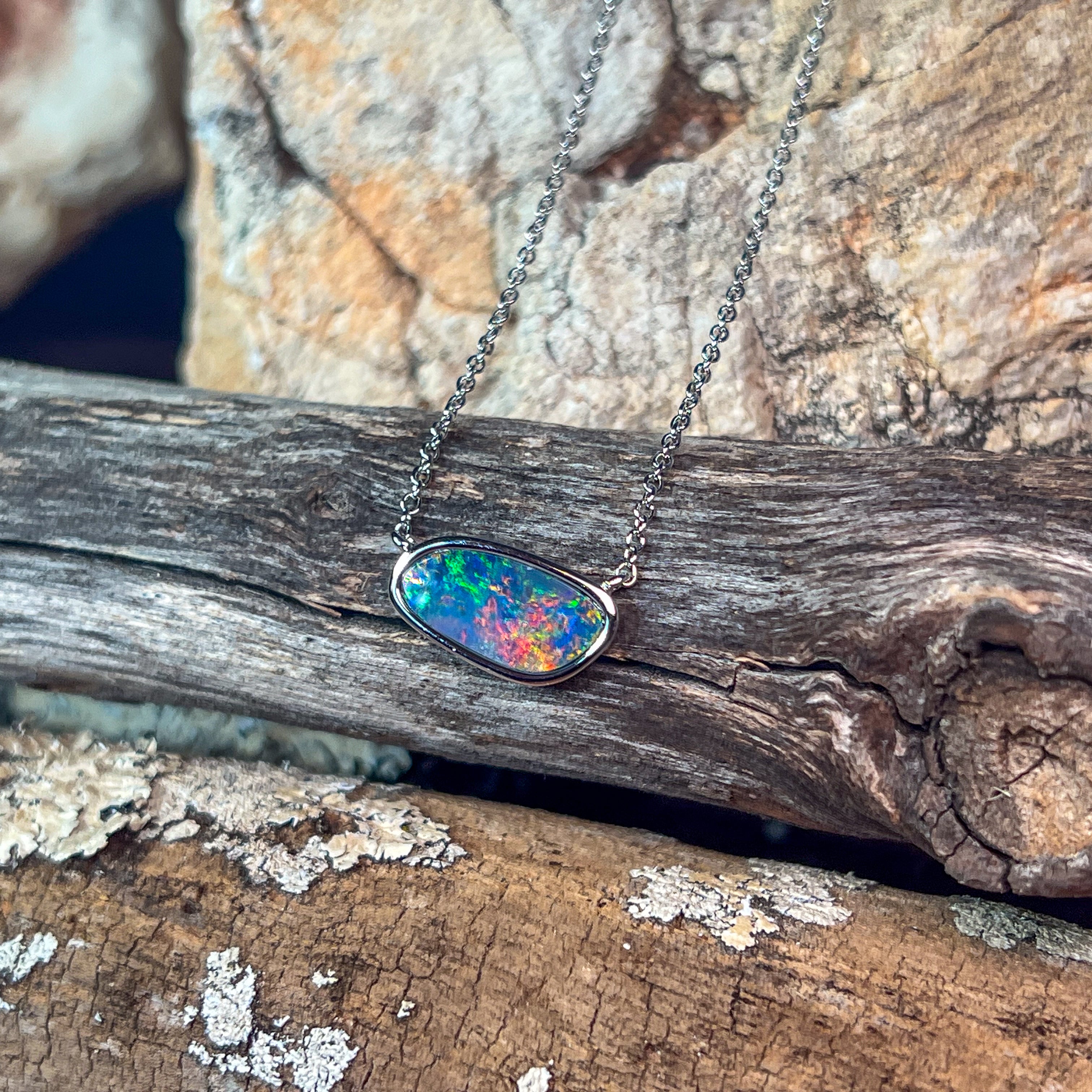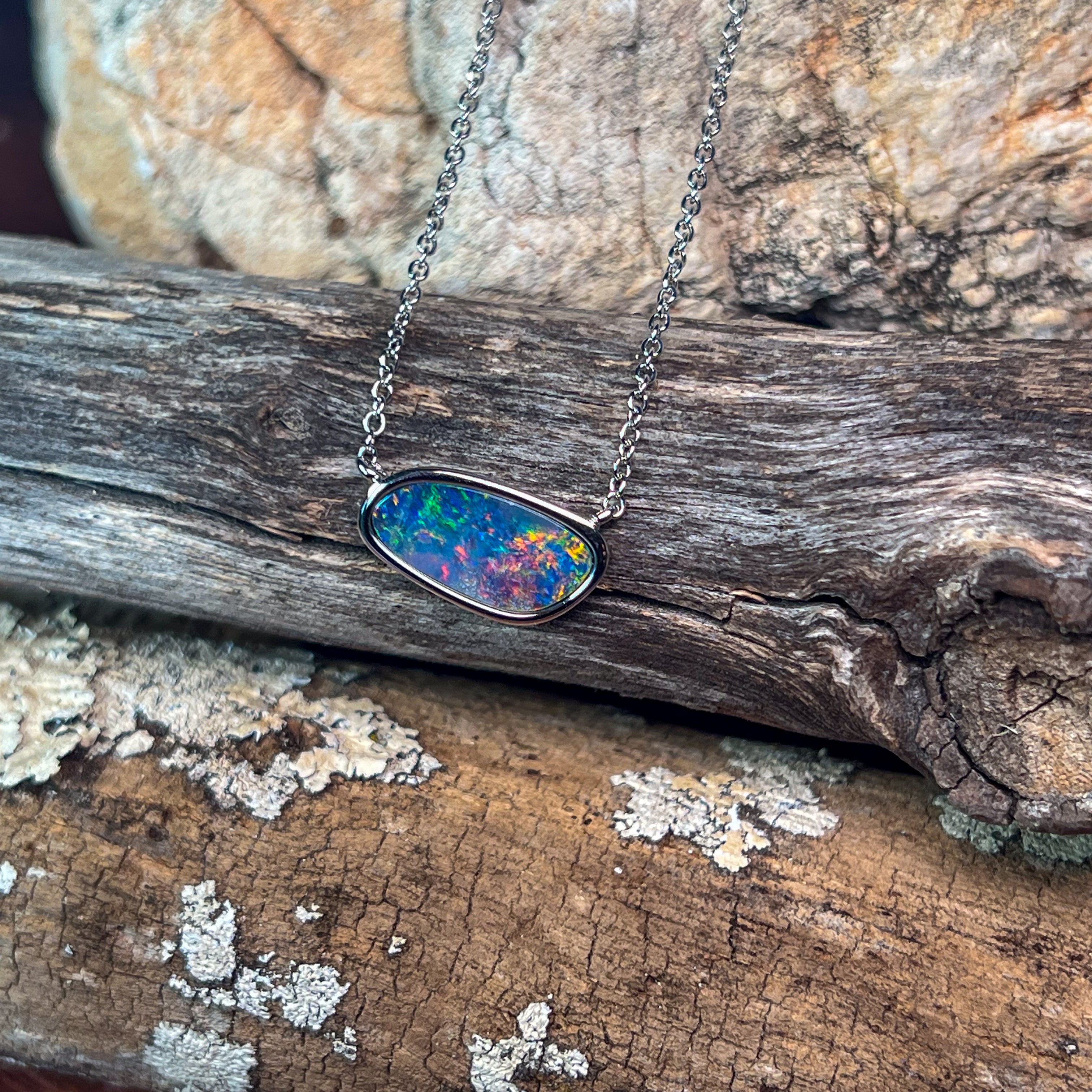 Sterling Silver freeform horizontal set Opal doublet necklace