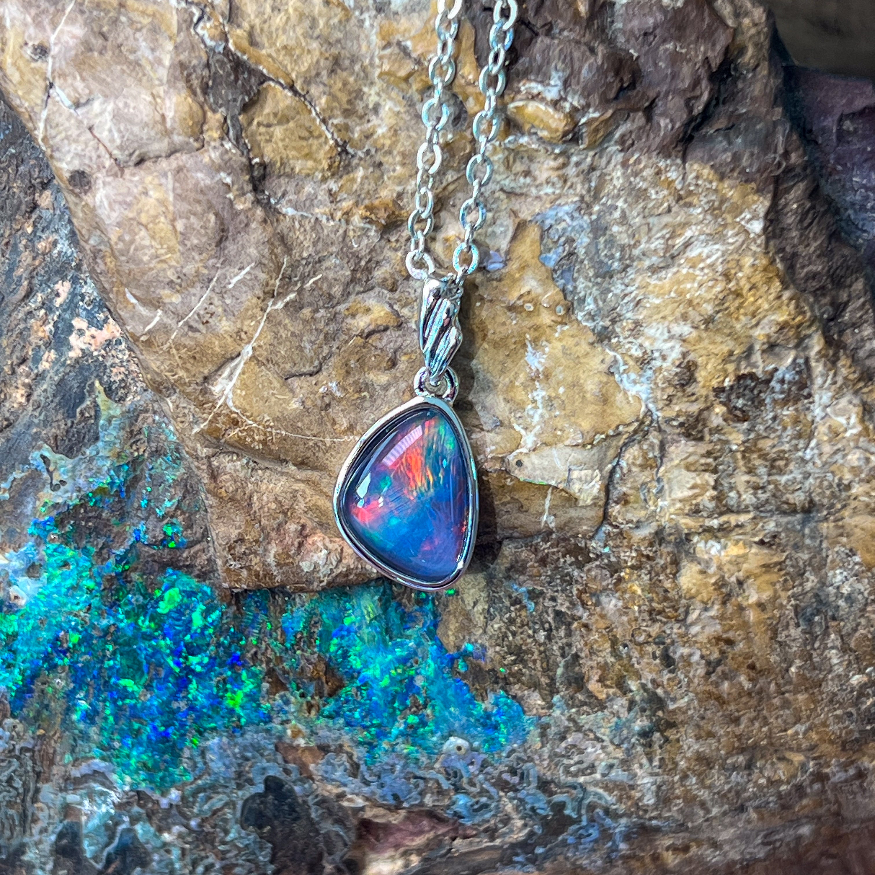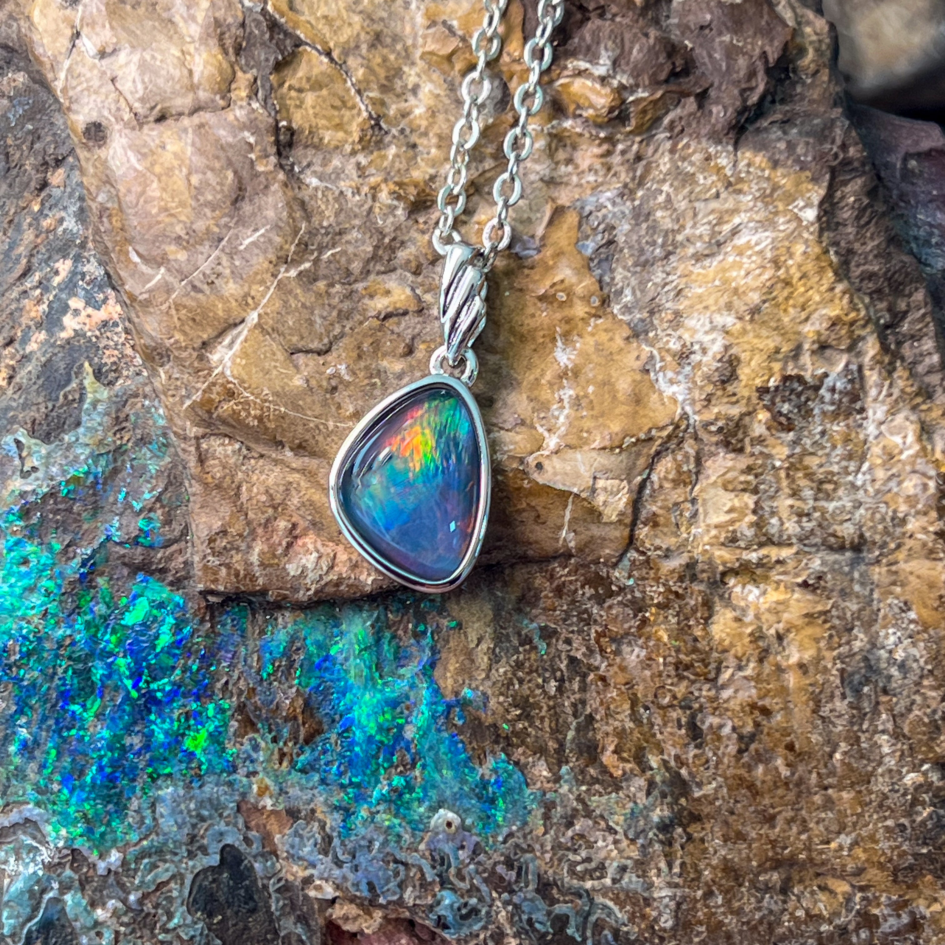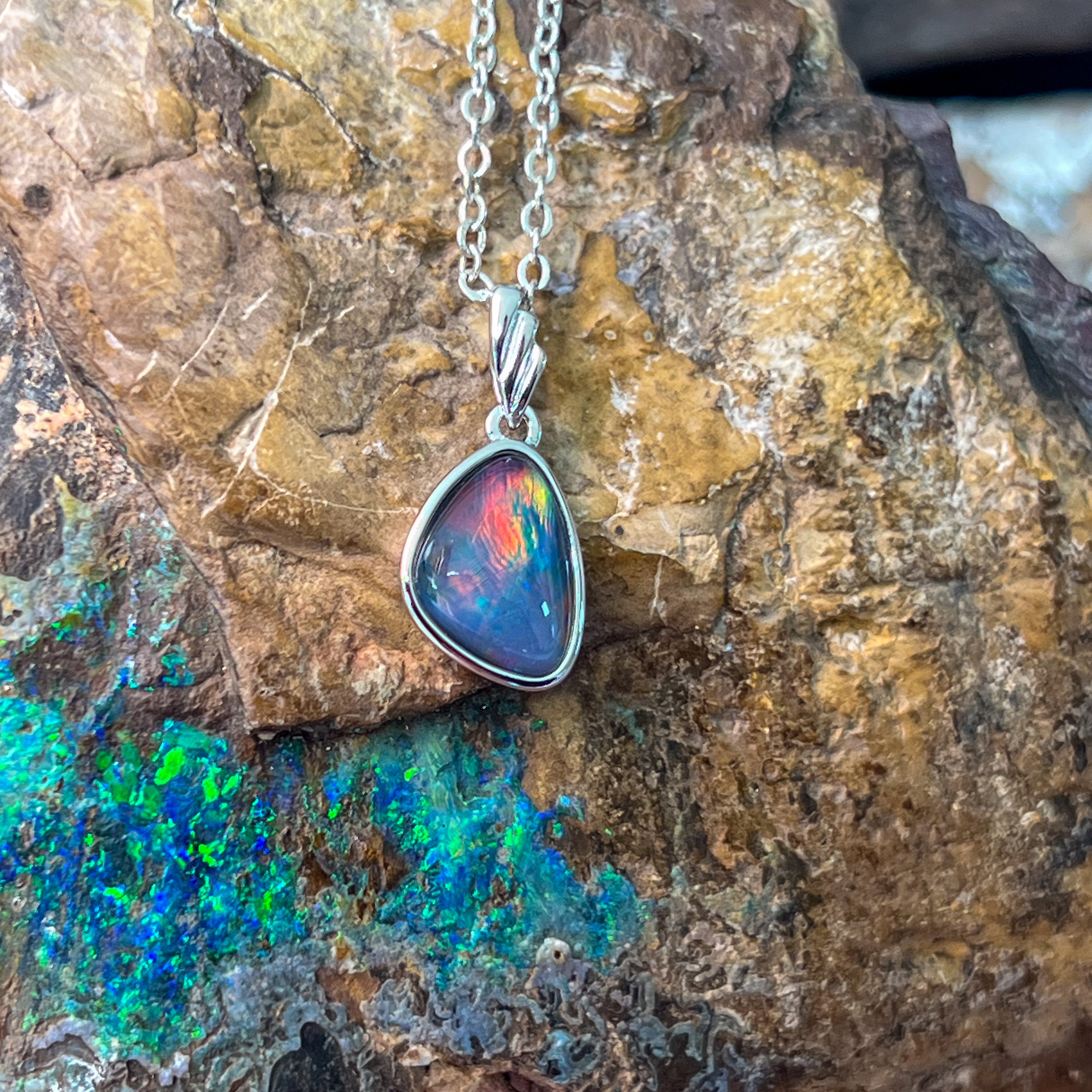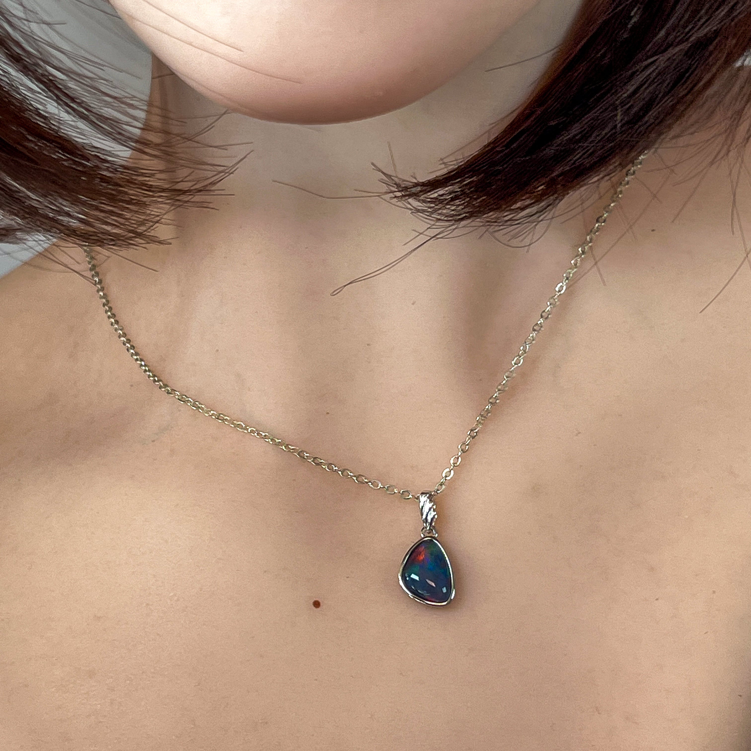 Sterling Silver freeform Opal triplet triangle shape pendant