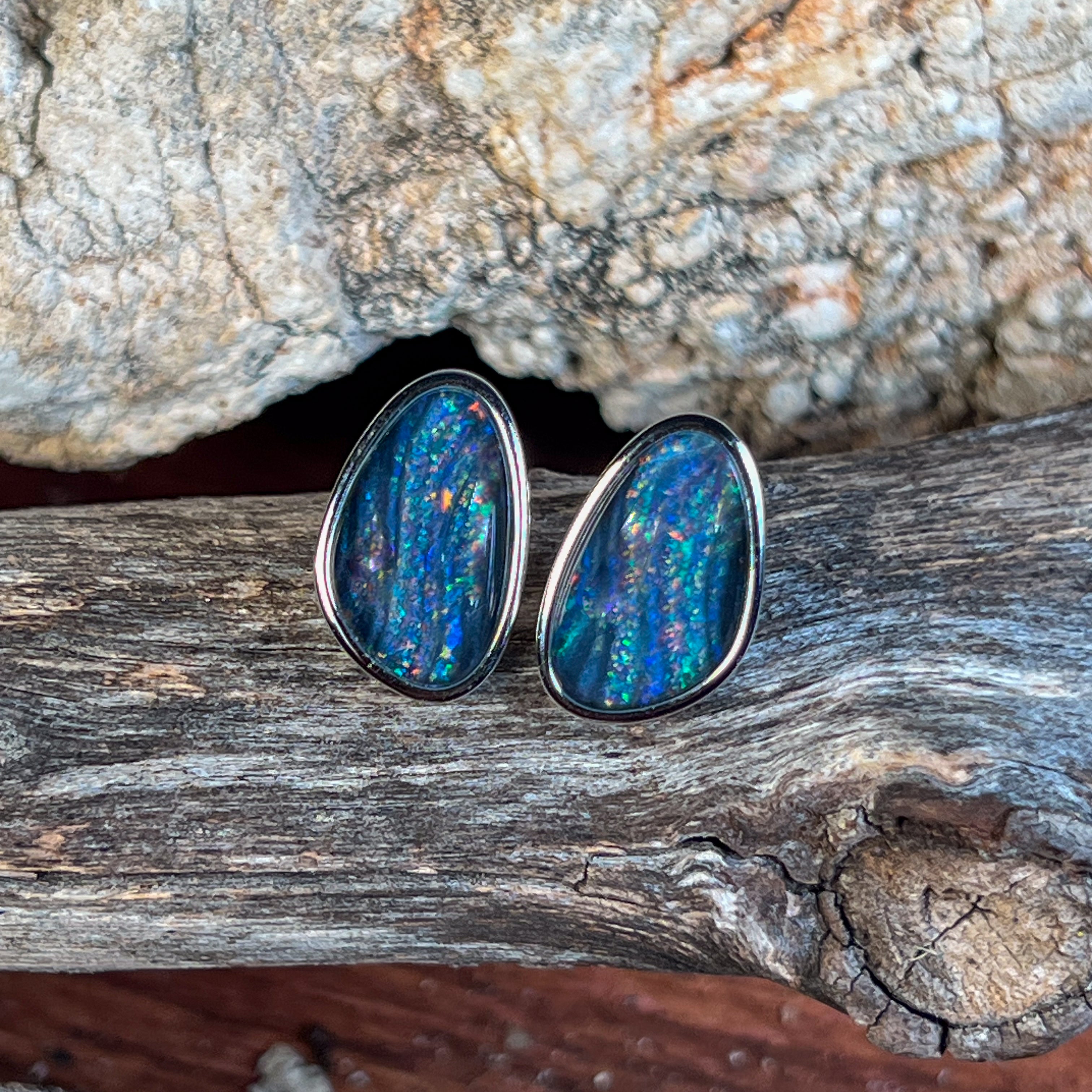 Sterling Silver freeform shape Red Blue Opal triplet studs