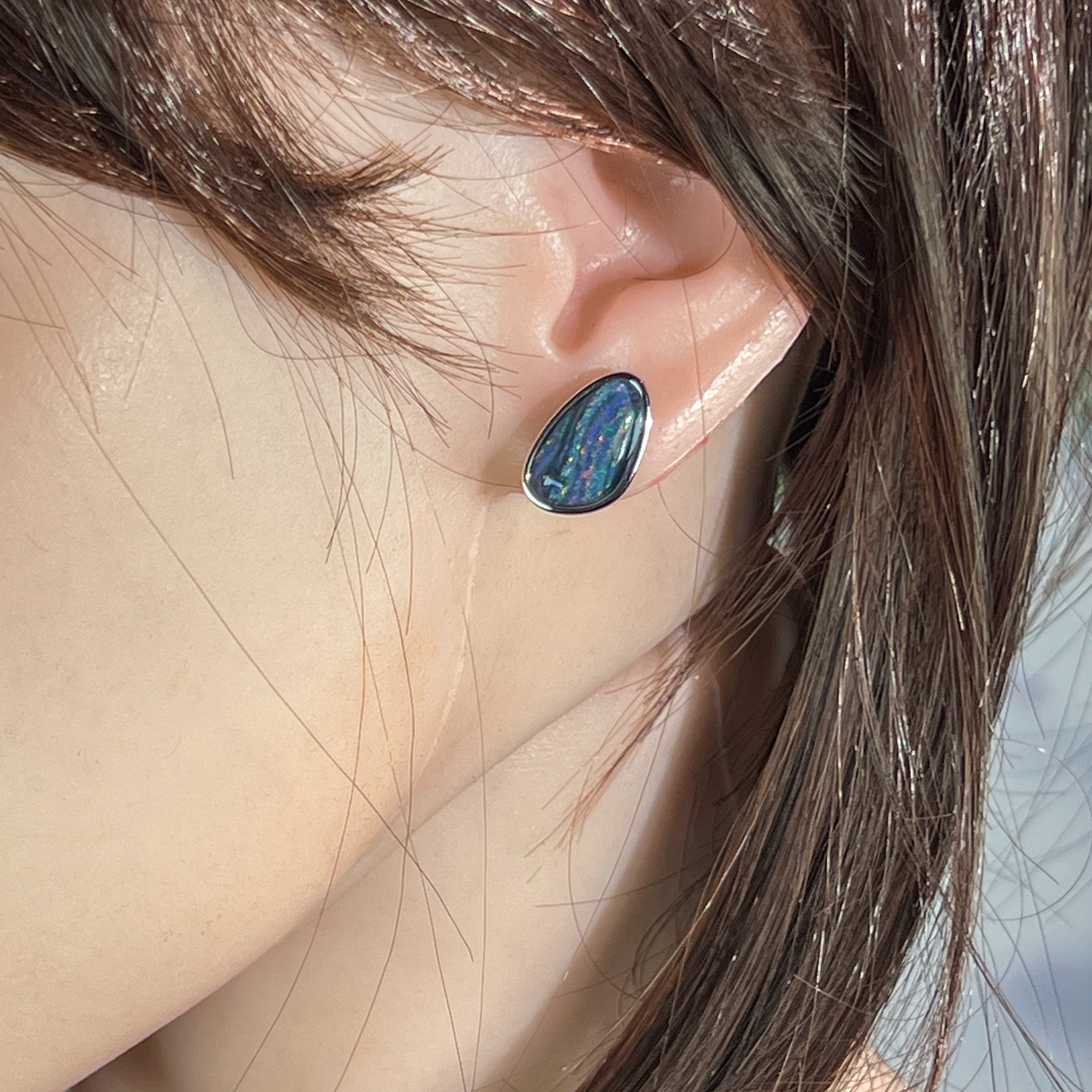 Capture the mesmerizing dance of colour with these stunning Sterling Silver freeform studs, each featuring a vibrant Red Blue Opal triplet set in a graceful wave pattern. The organic, flowing design celebrates the stone's natural beauty while the triplet construction ensures durability and lasting brilliance. Perfect for those who appreciate distinctive, artistic jewellery that makes a subtle yet sophisticated statement. These versatile studs transition effortlessly from everyday elegance to special occasions, offering timeless appeal with contemporary flair.