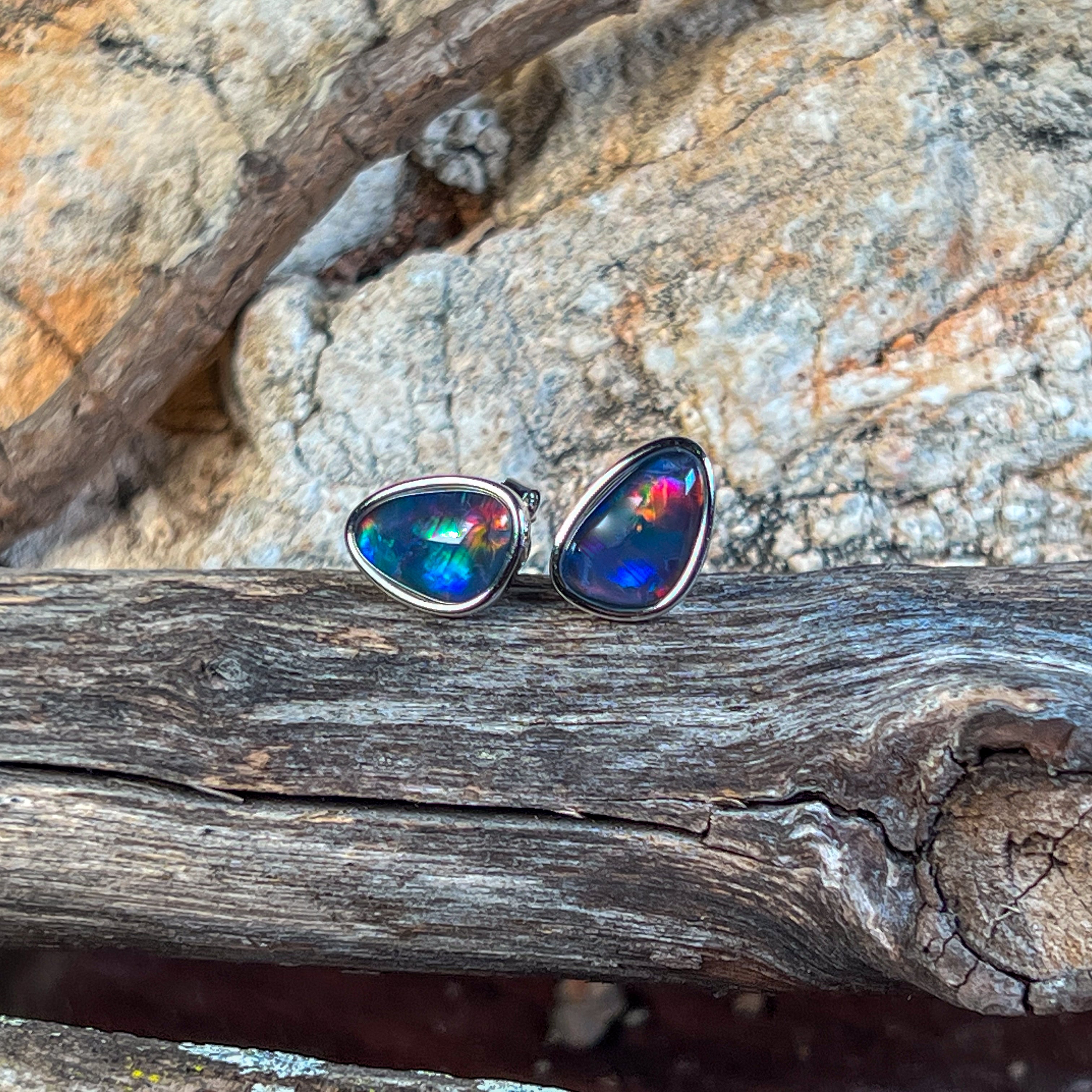 Capture the mesmerizing dance of colour with these stunning Sterling Silver Freeform studs. Each piece showcases a vibrant red flash that ignites with brilliant blue undertones, creating a dynamic interplay of light that shifts with every movement. Handcrafted in quality sterling silver, these studs offer the perfect balance of bold statement and everyday wearability. Ideal for those who appreciate gemstone jewellery that commands attention while maintaining elegant sophistication. A true conversation starter that transforms any outfit.