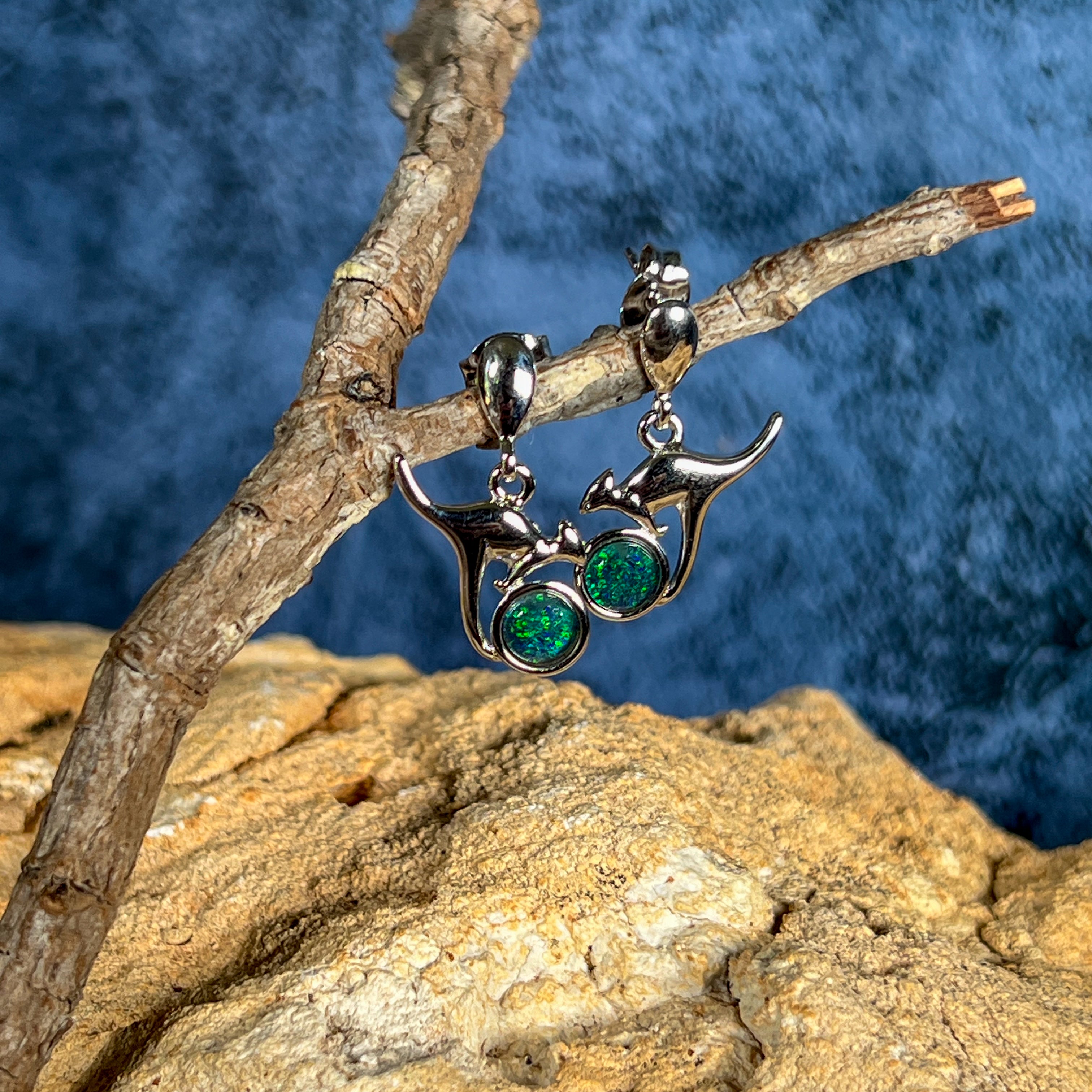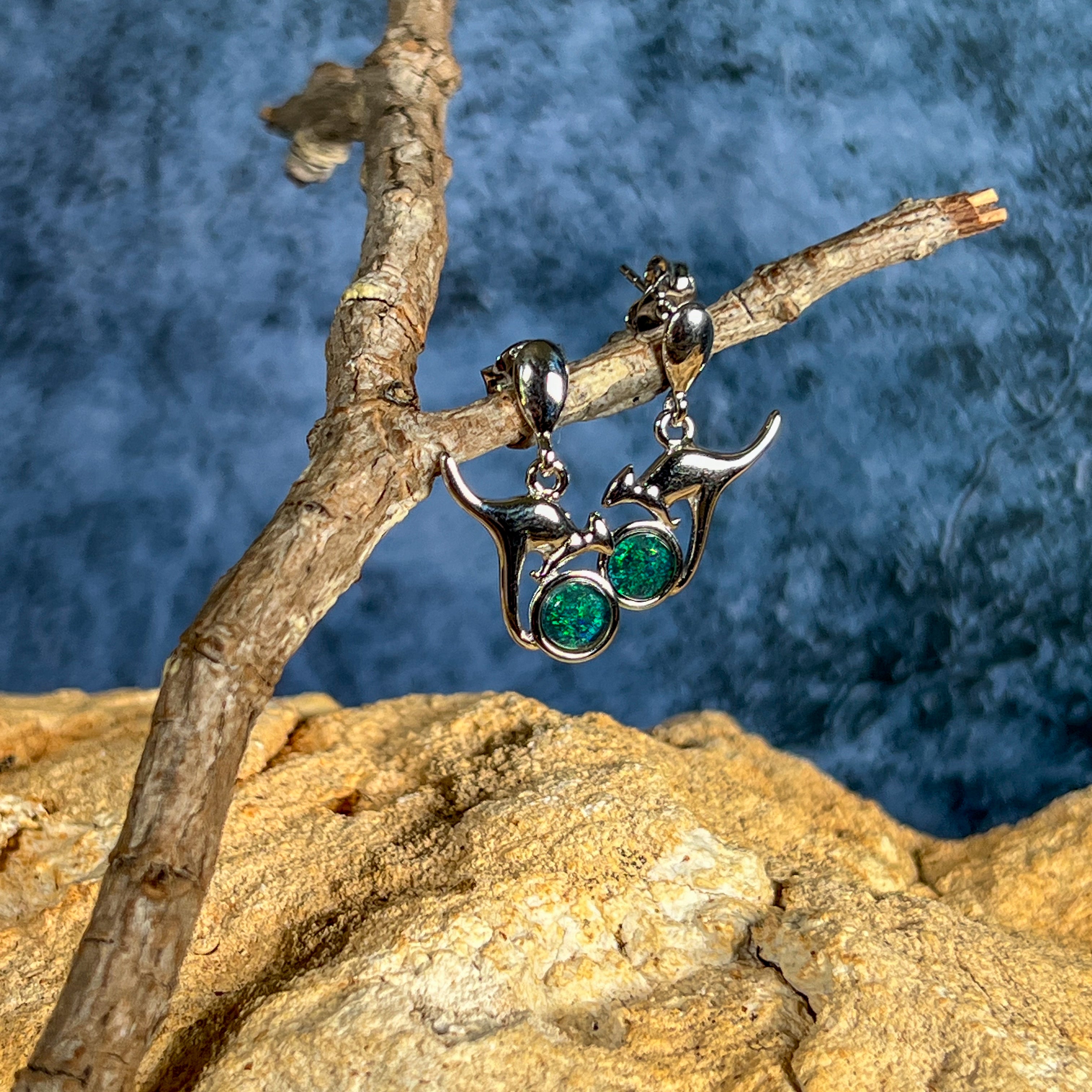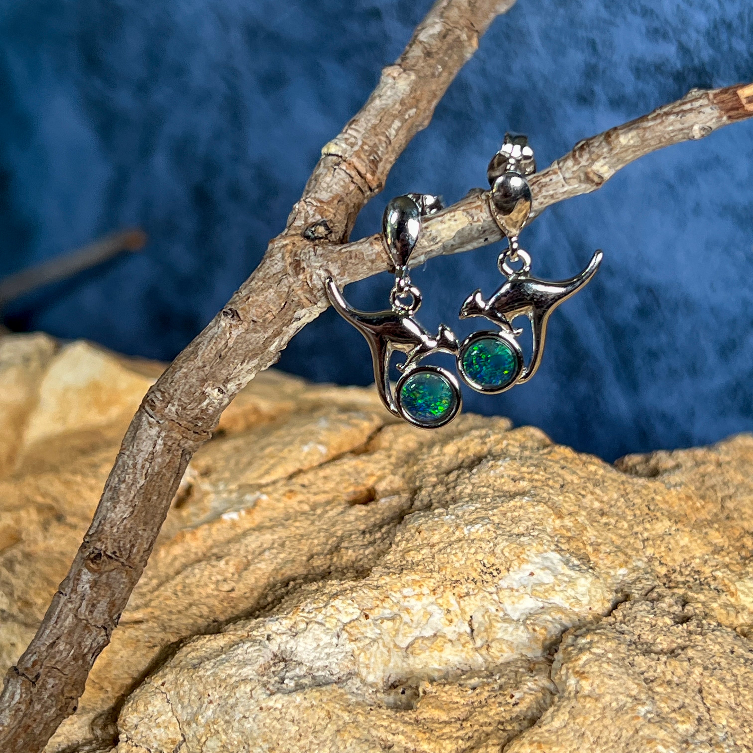 Sterling Silver Kangaroo dangling earrings 5mm opal triplets