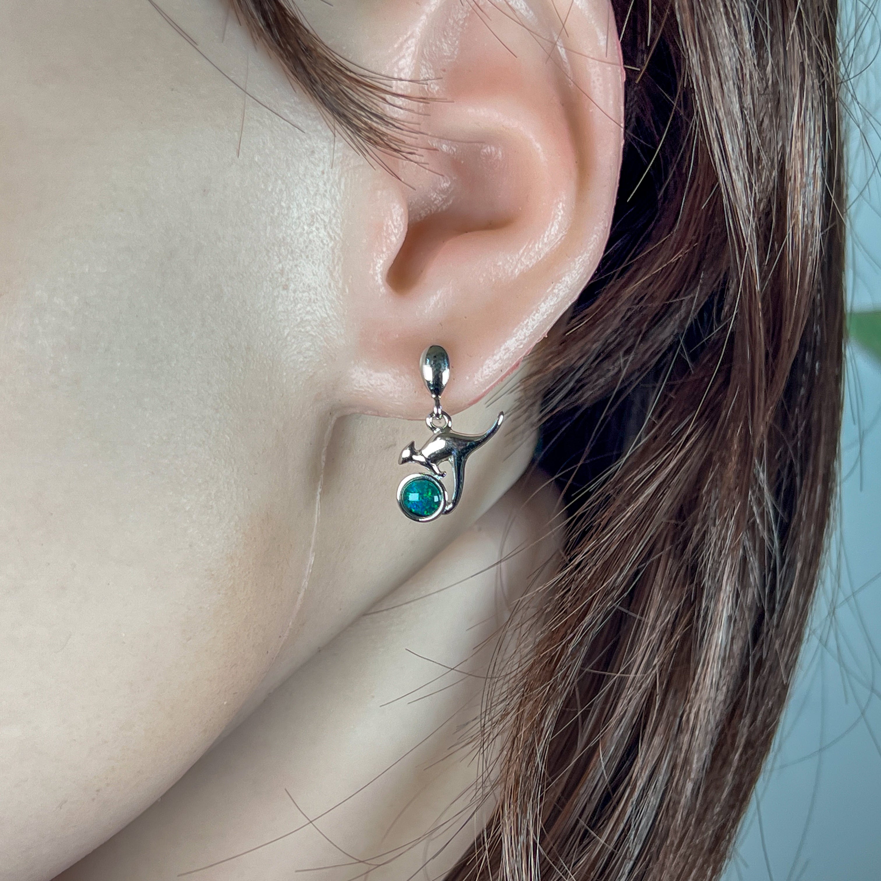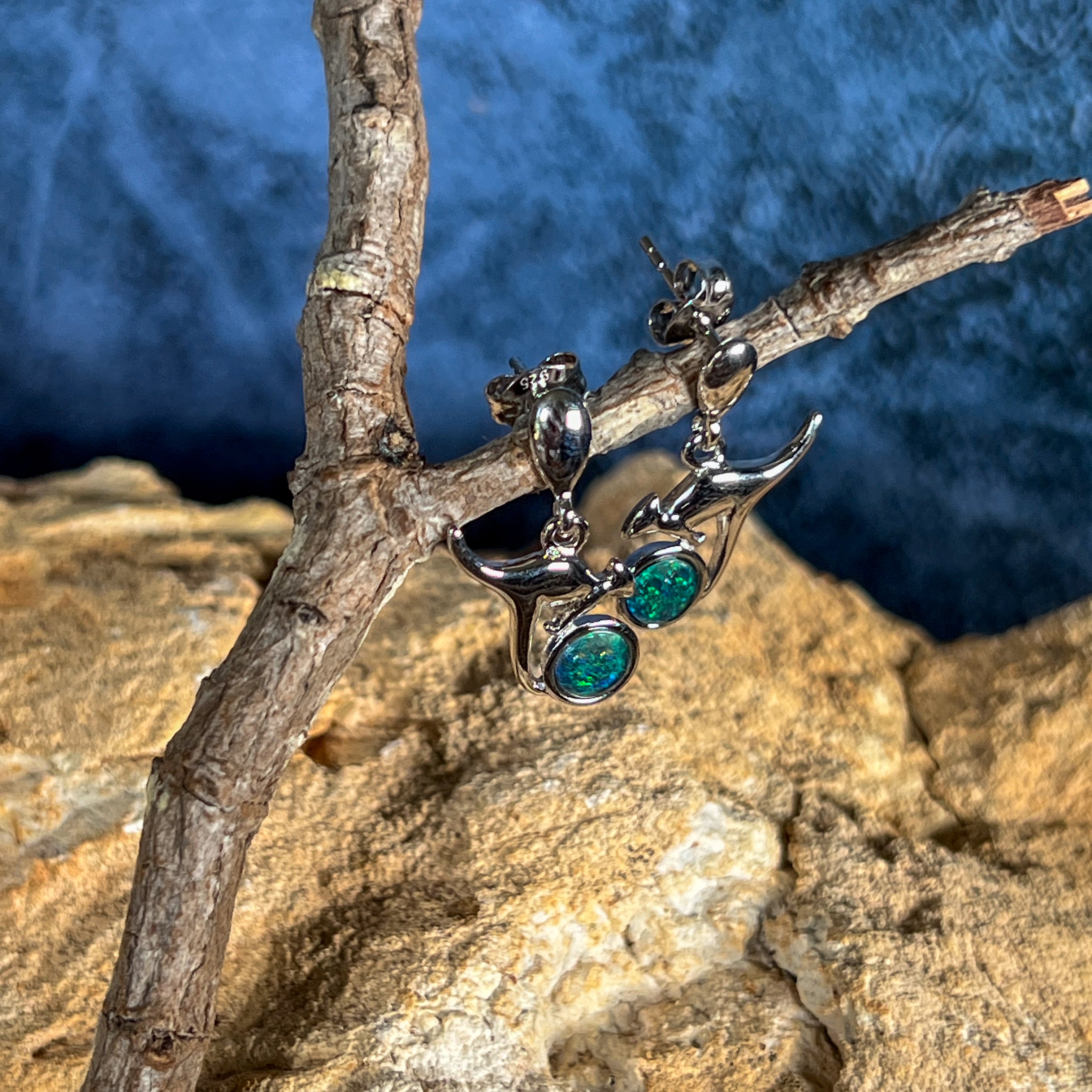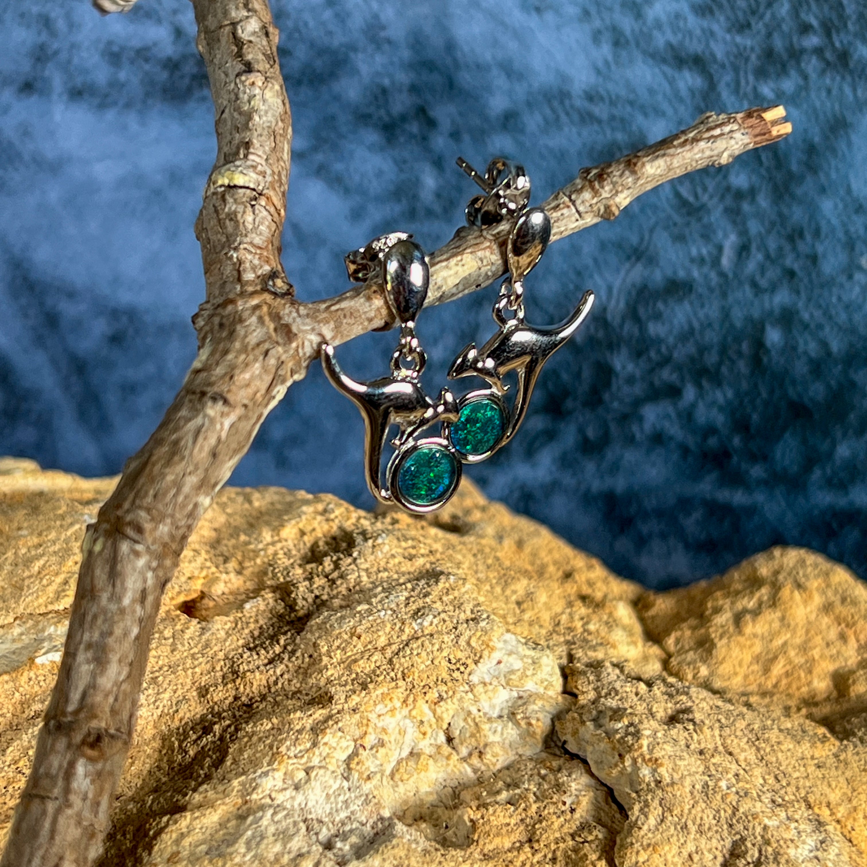 Sterling Silver Kangaroo dangling earrings 5mm opal triplets
