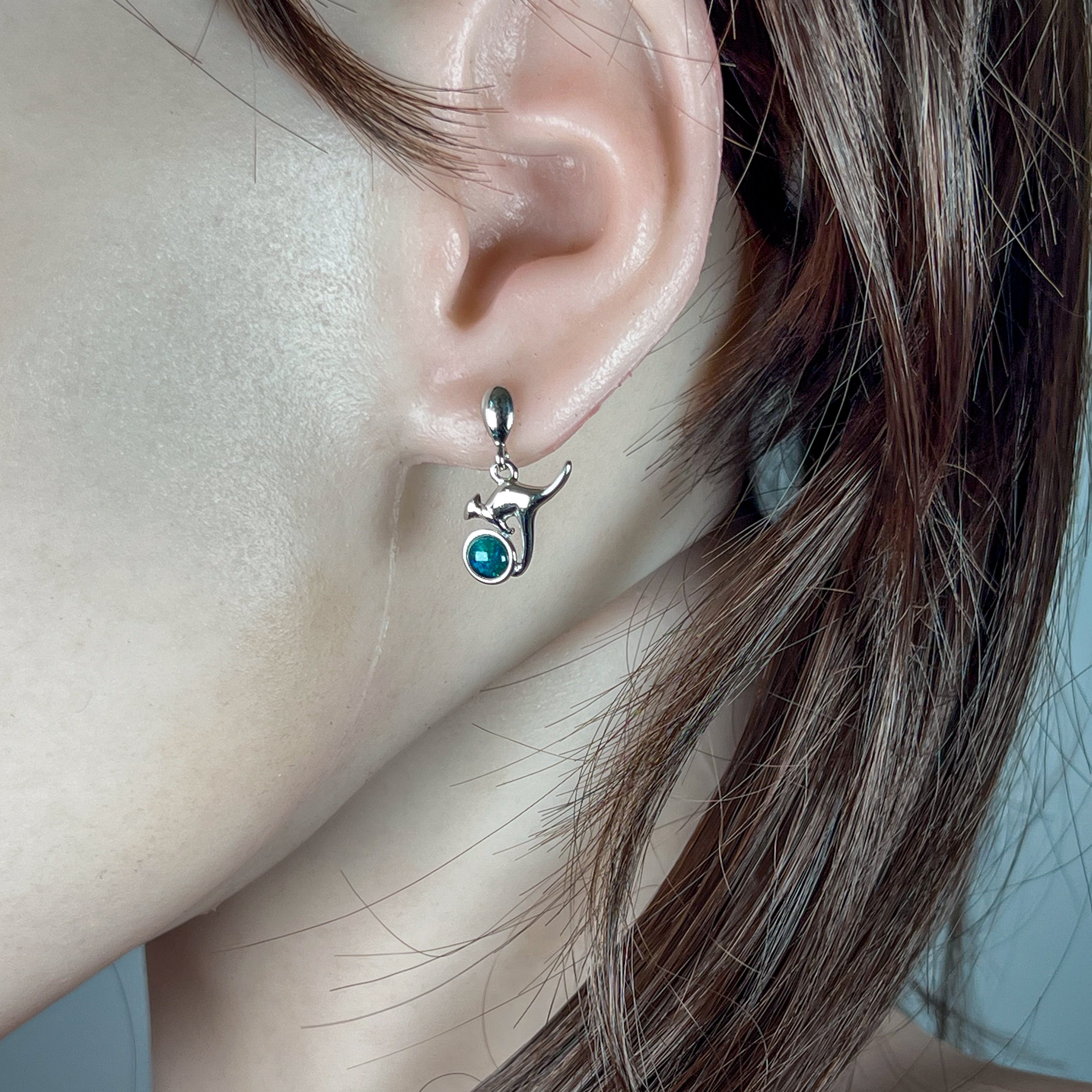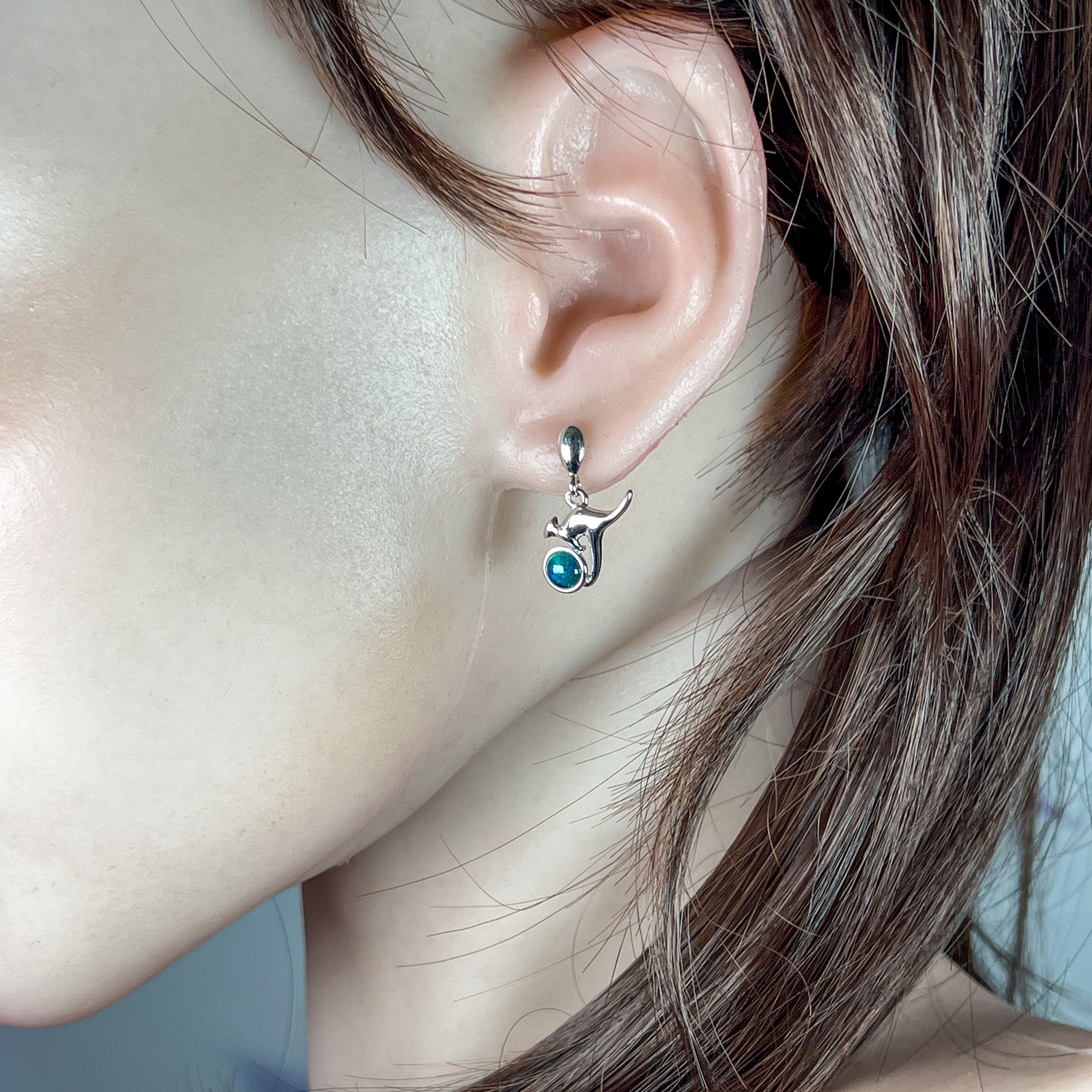 One Sterling Silver Opal Kangaroo design stud dangling earrings