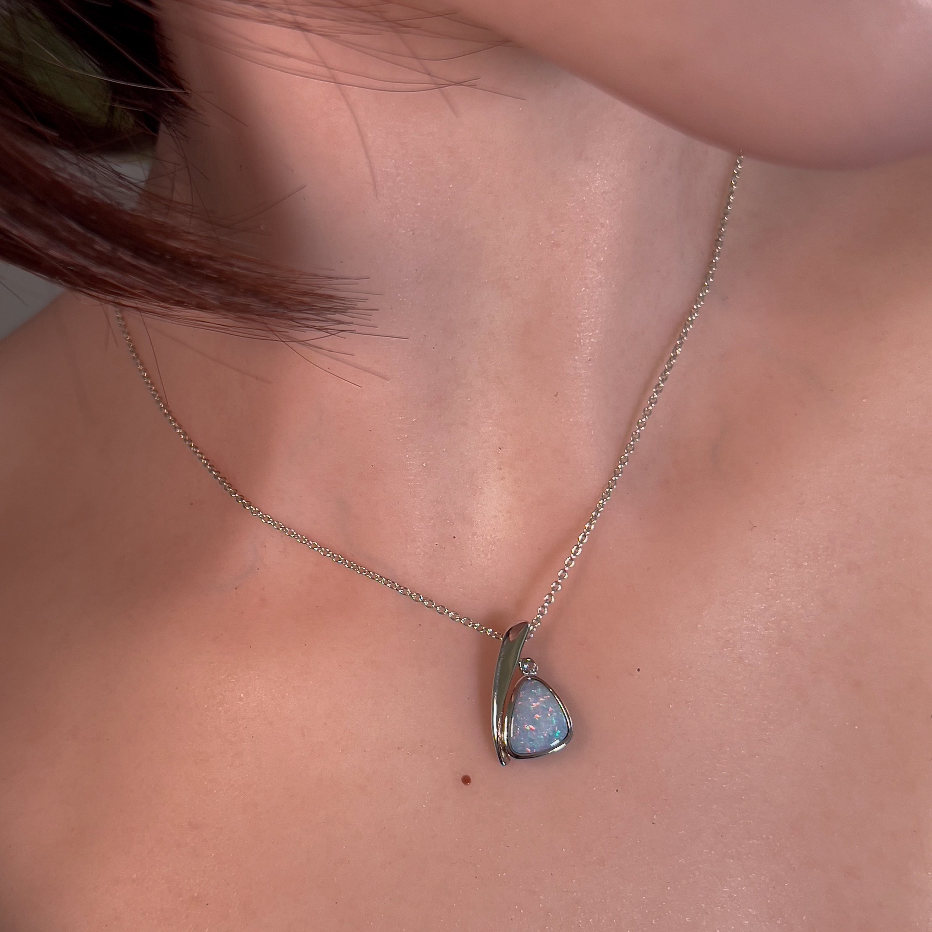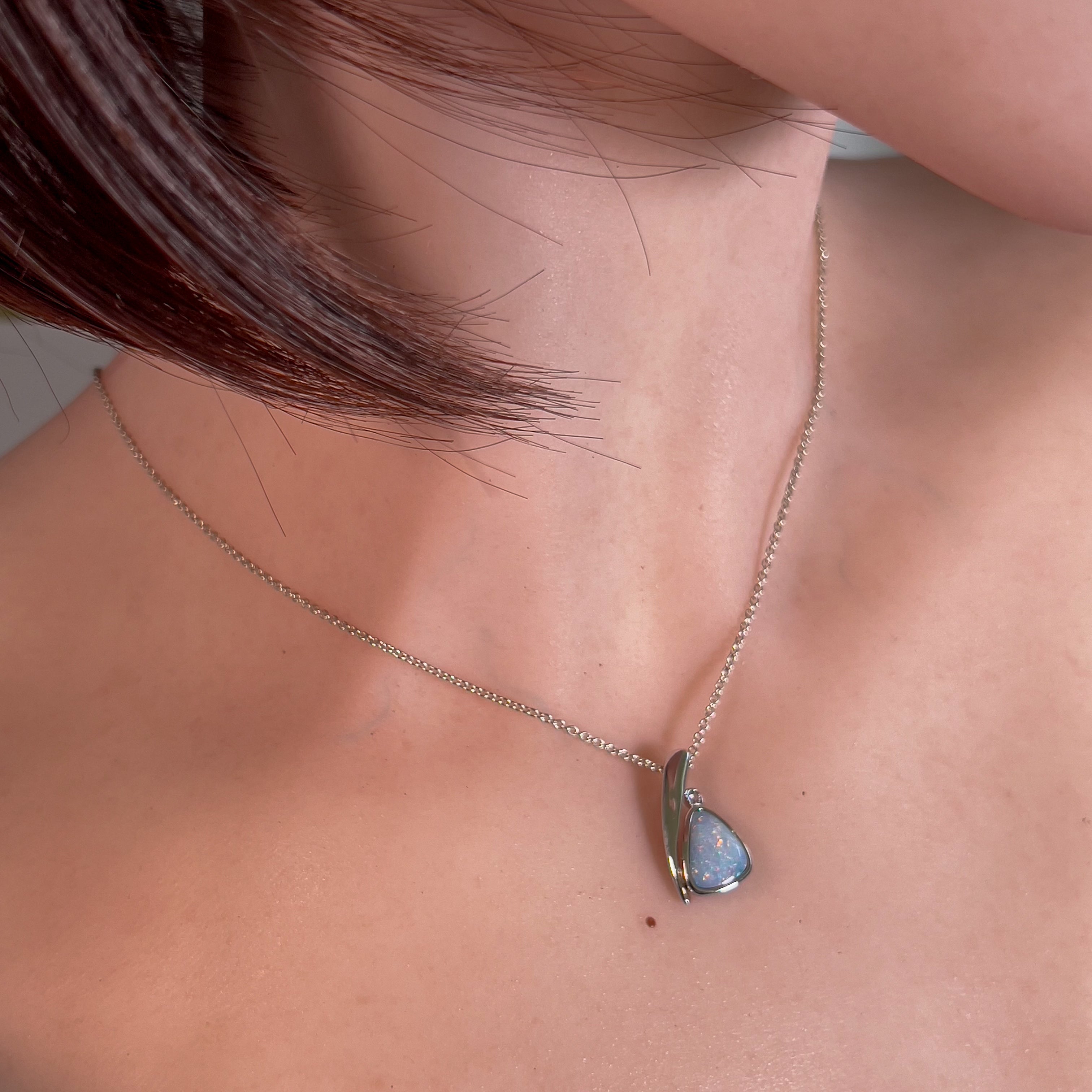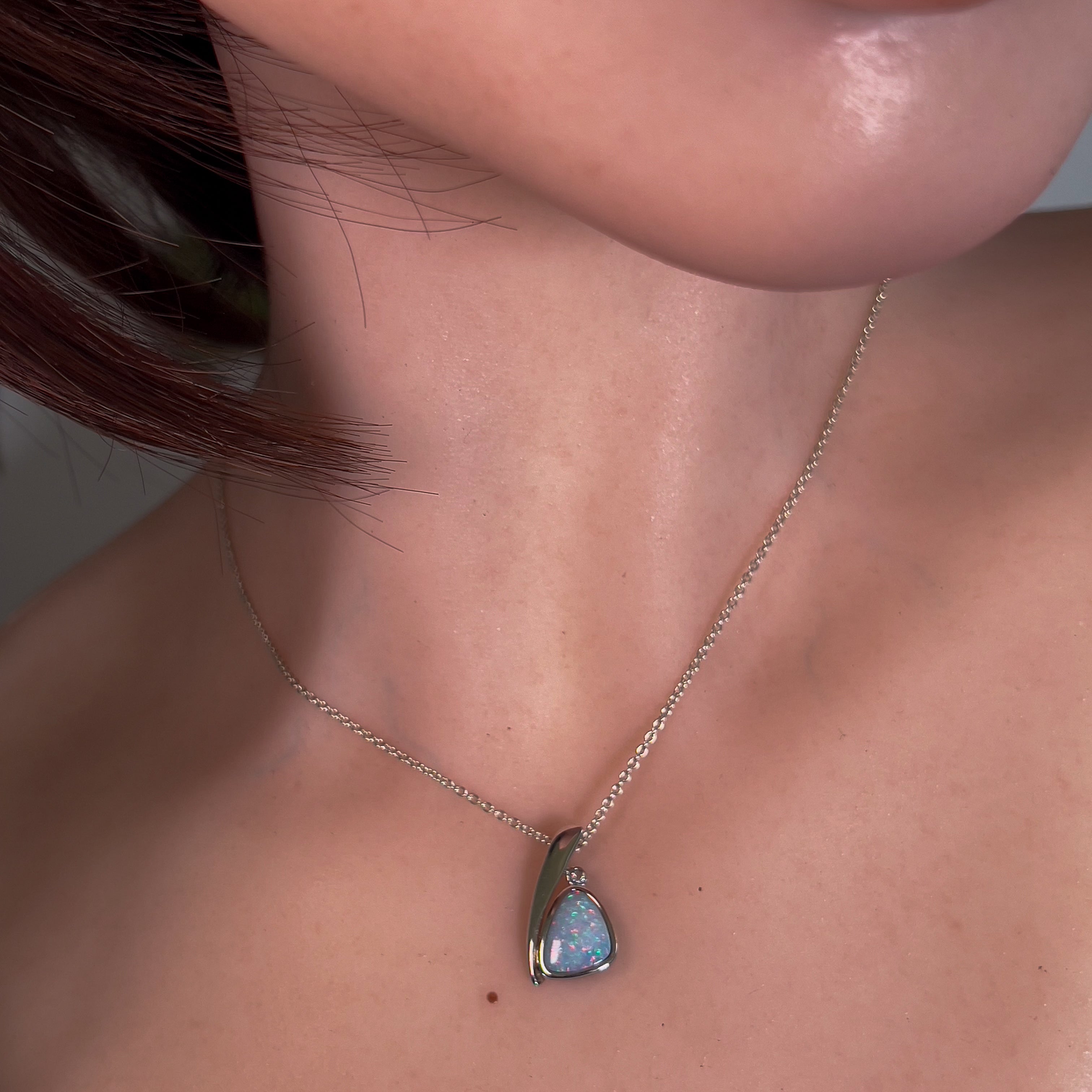 This stunning Sterling Silver Light Blue Opal doublet pendant features a beautiful light baby blue color that will add a touch of elegance to any outfit. The light blue hue of the pendant is mesmerizing and will draw attention to the wearer, making it a perfect addition to any jewelry collection.