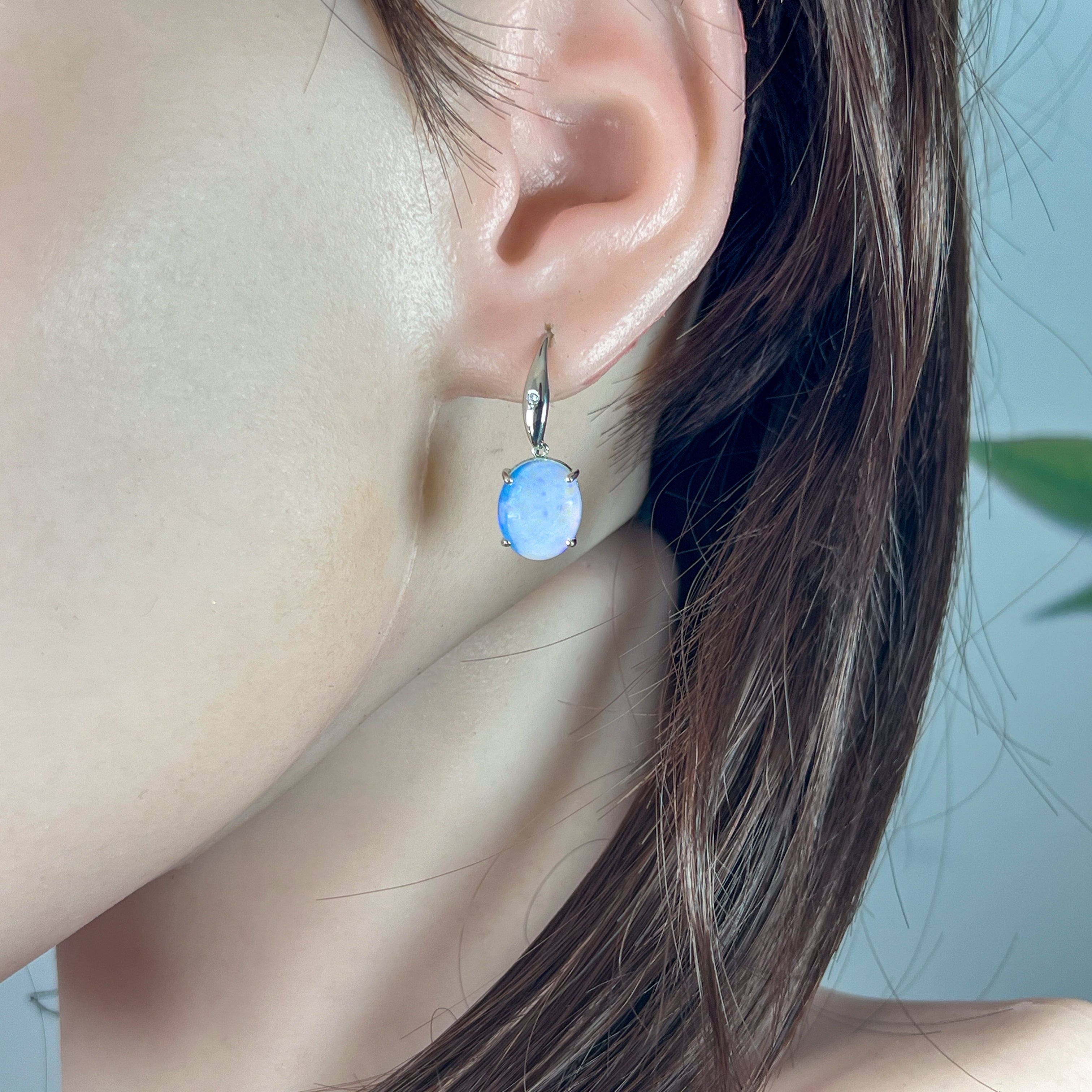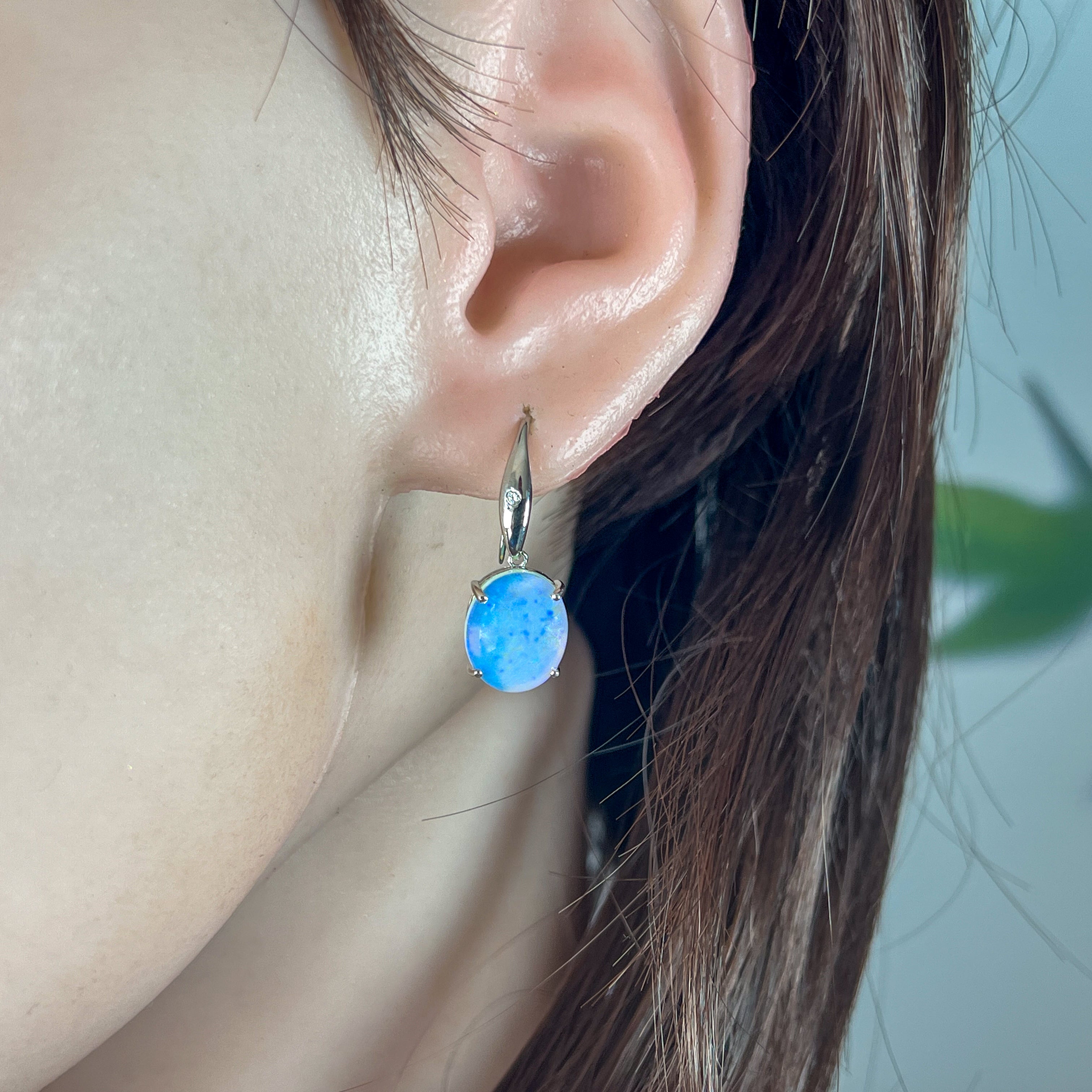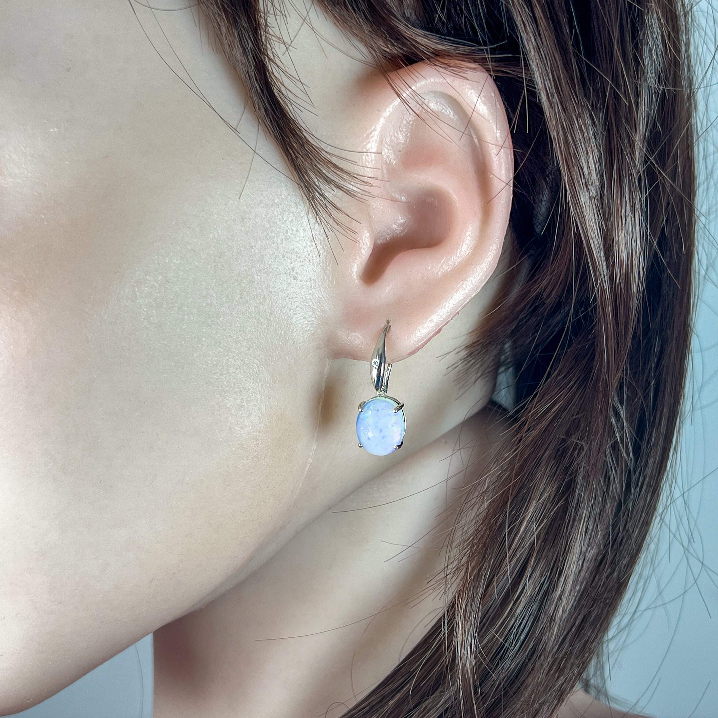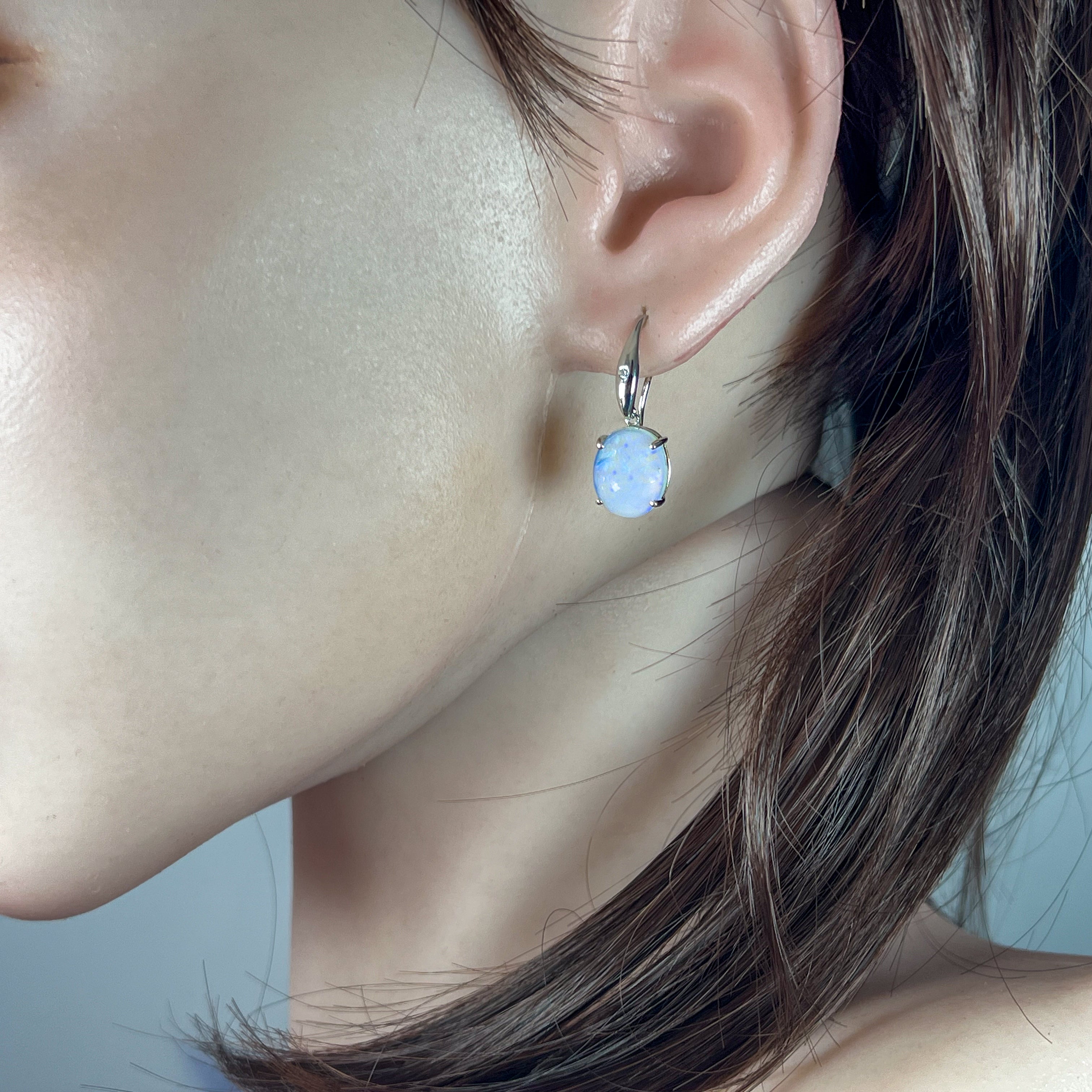 Sterling Silver Light Opal Blue Purple Oval Opal dangling hook earrings
