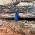 Sterling Silver long Drop shape Blue Green Opal doublet pendant