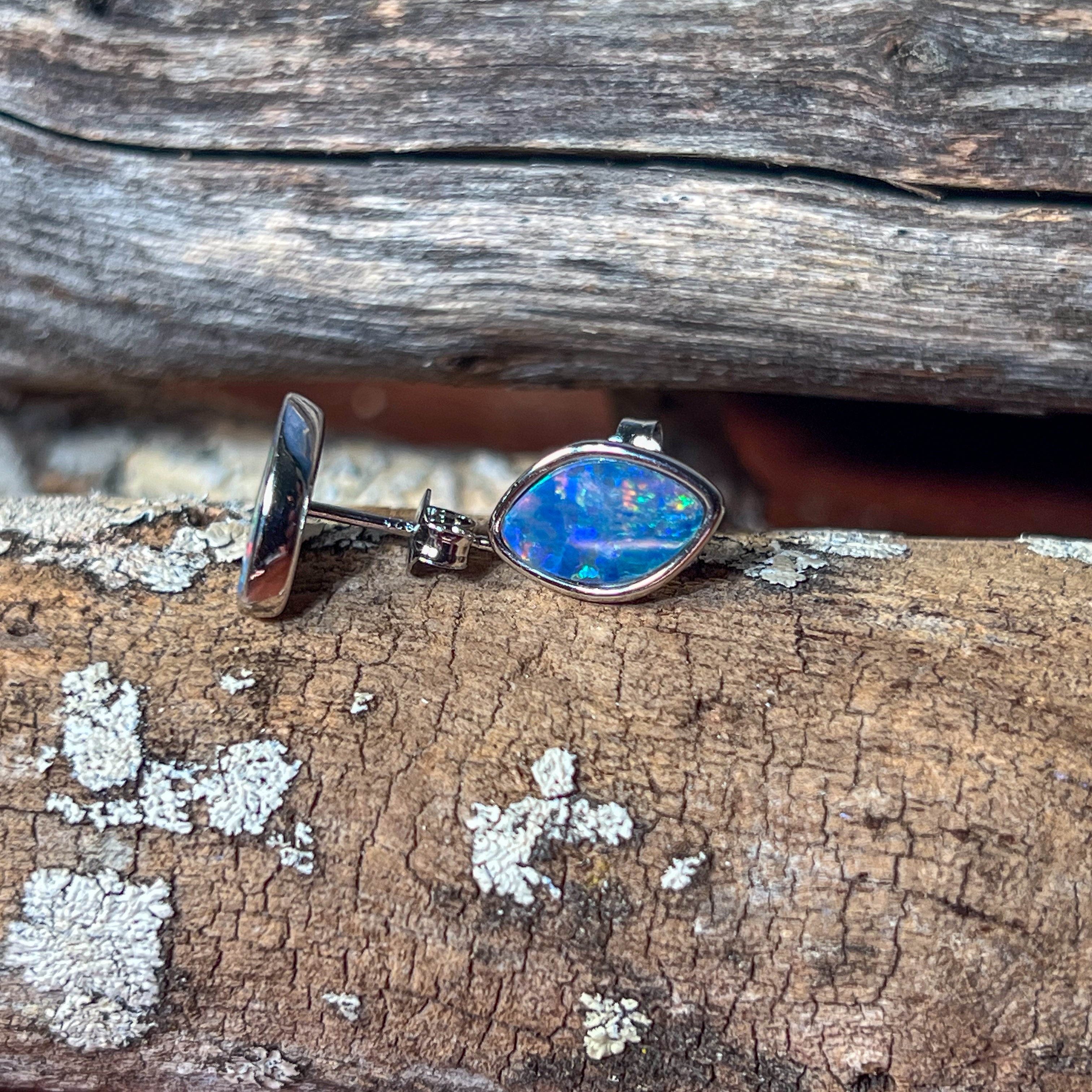 Add a splash of whimsy to your look with these Sterling Silver Marquise shape Opal doublet stud earrings. Their soft, shimmering colours catch the light just right, making every day feel a little more magical. Perfect for adding a playful sparkle to any outfit!
