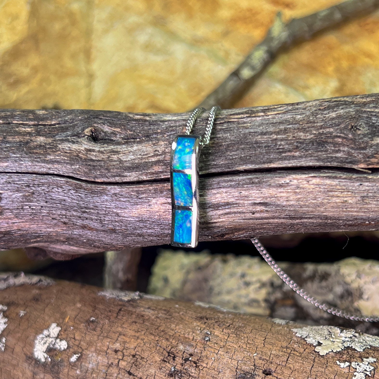 STERLING SILVER 4 OPAL INLAY BOX PENDANT