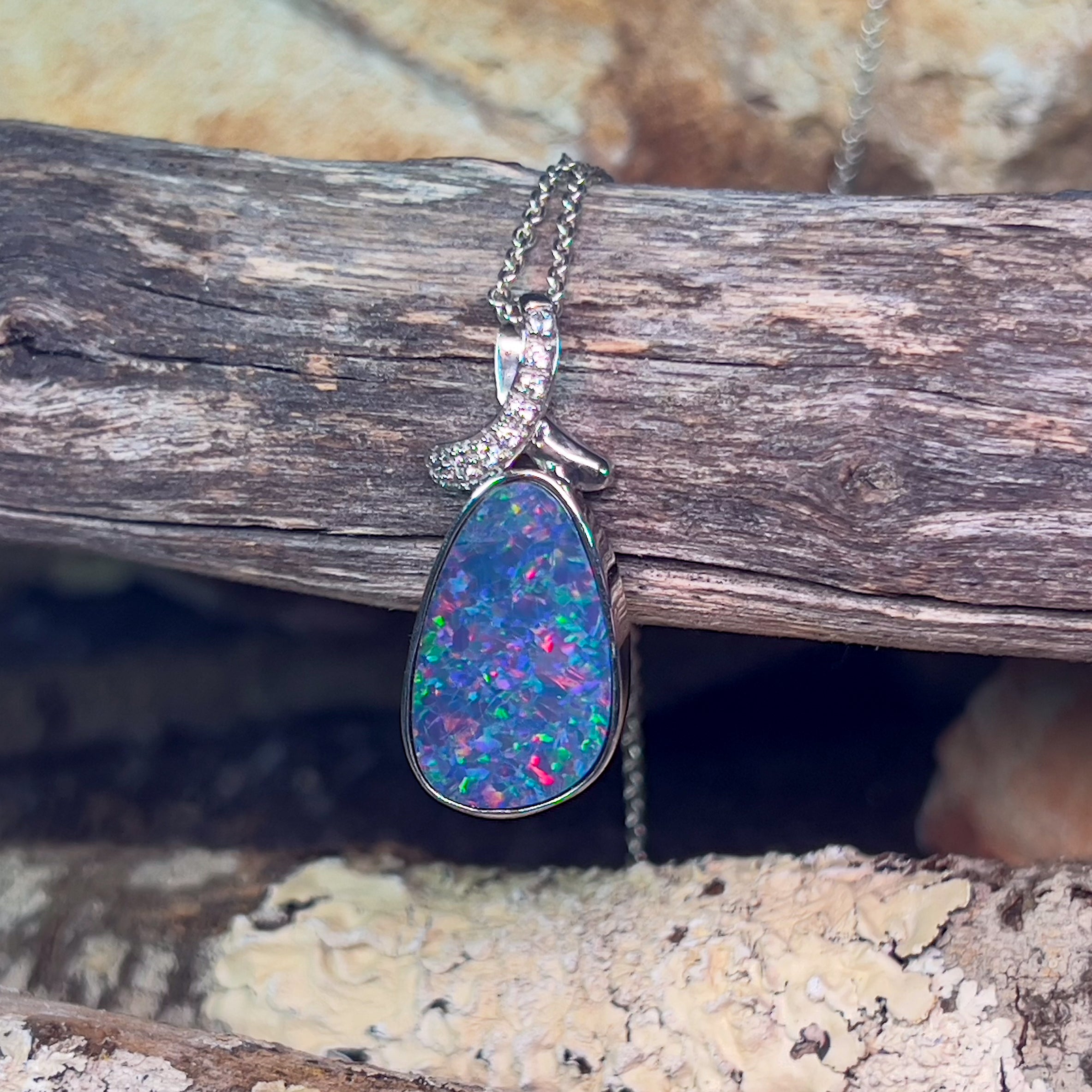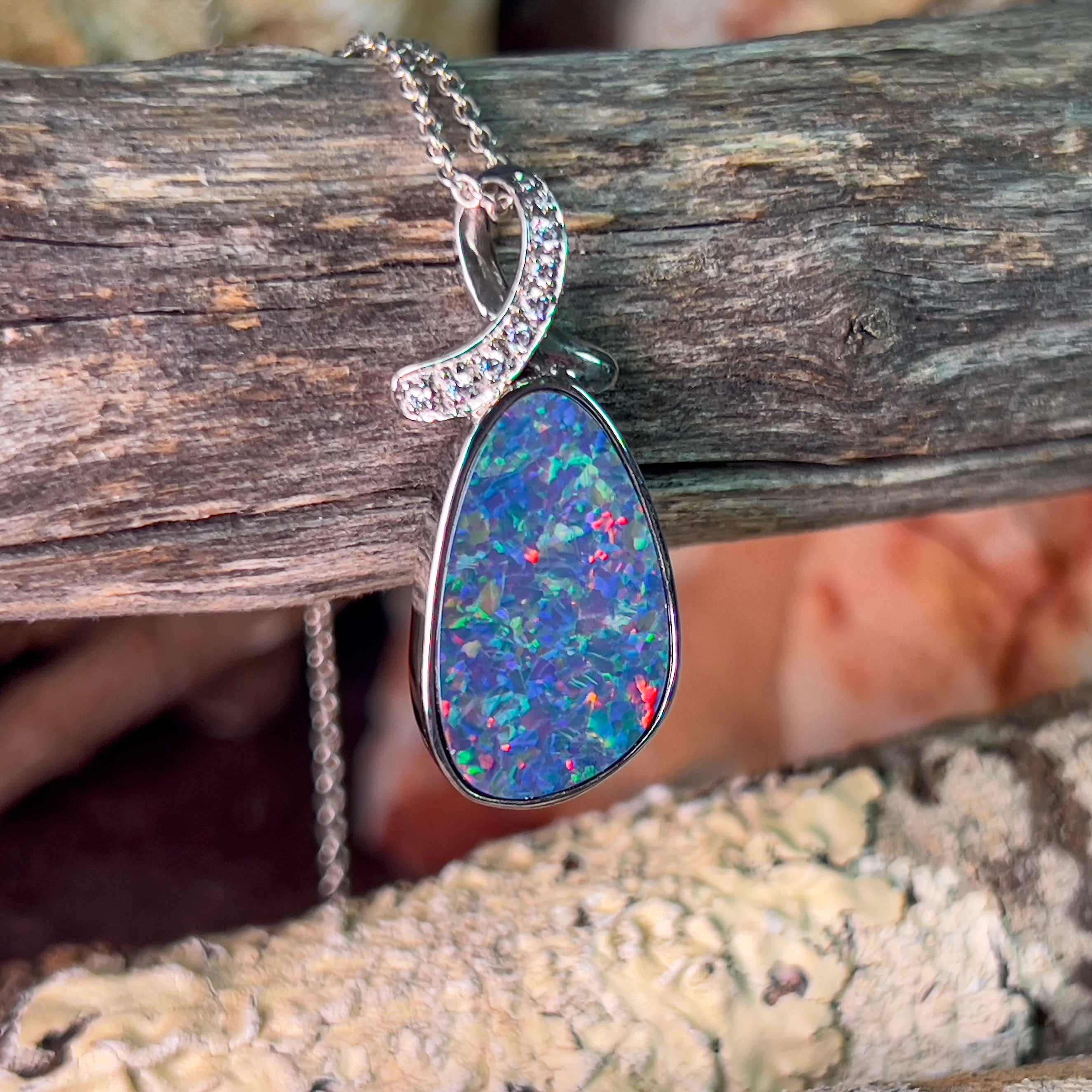 Sterling Silver Opal doublet 4.28ct large drop style pendant