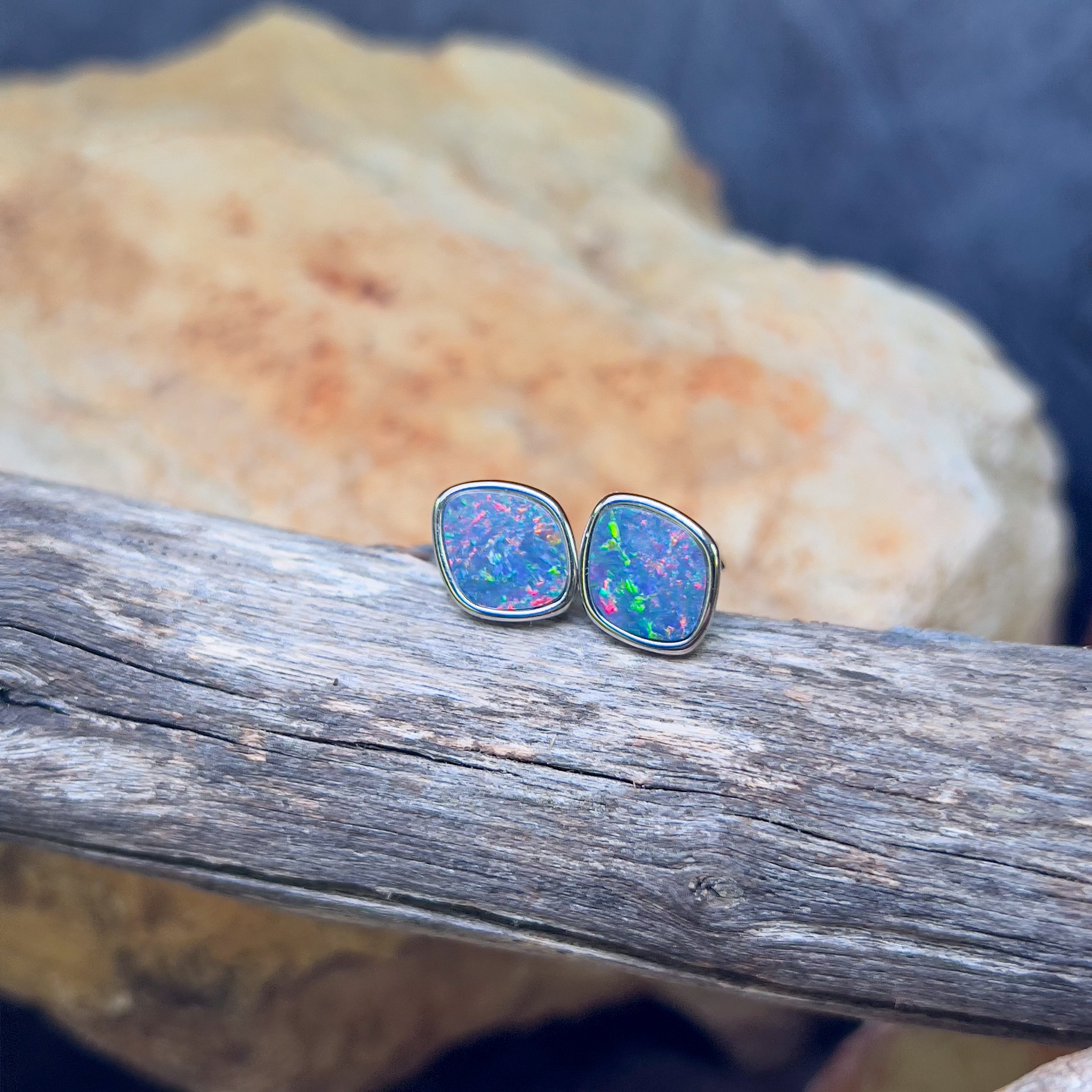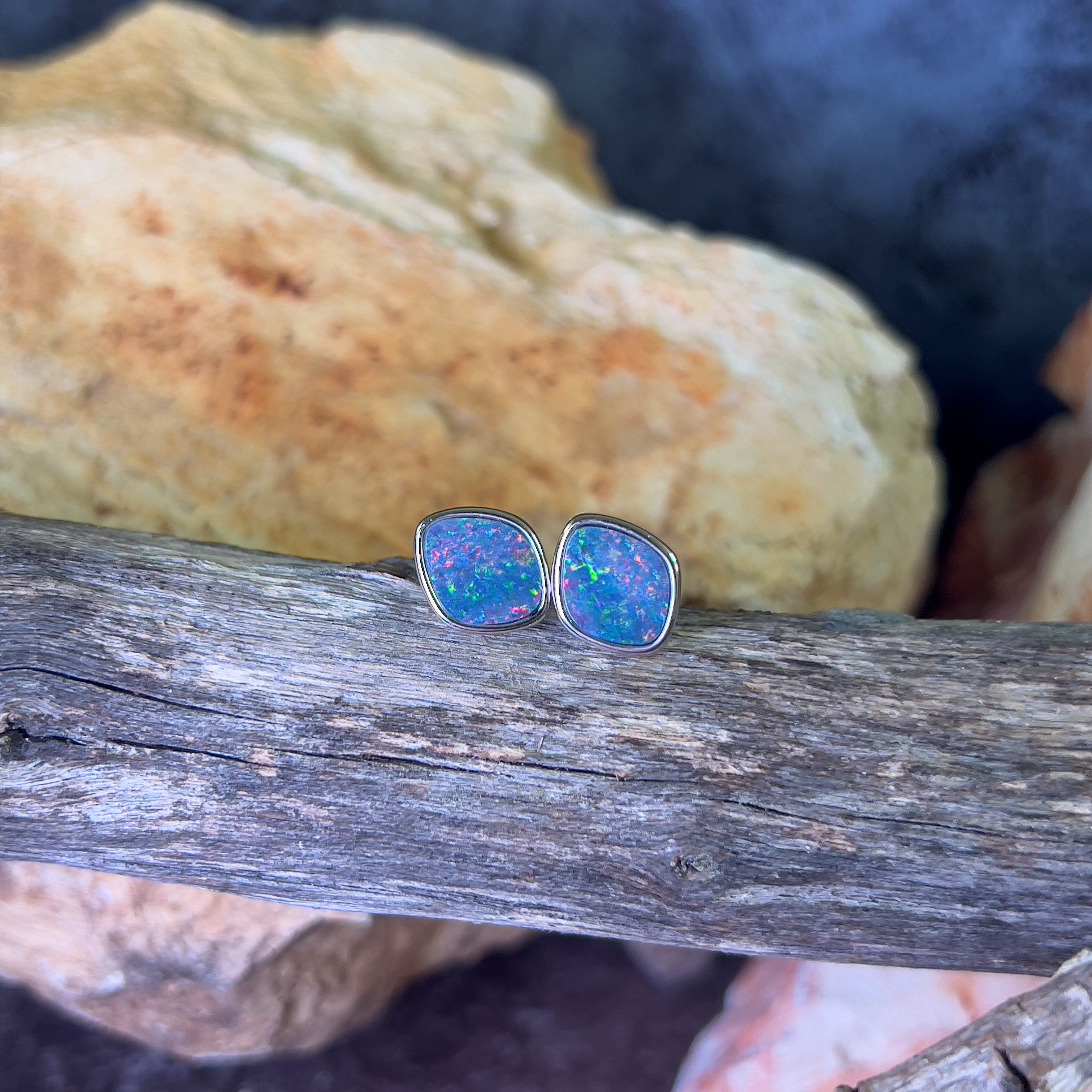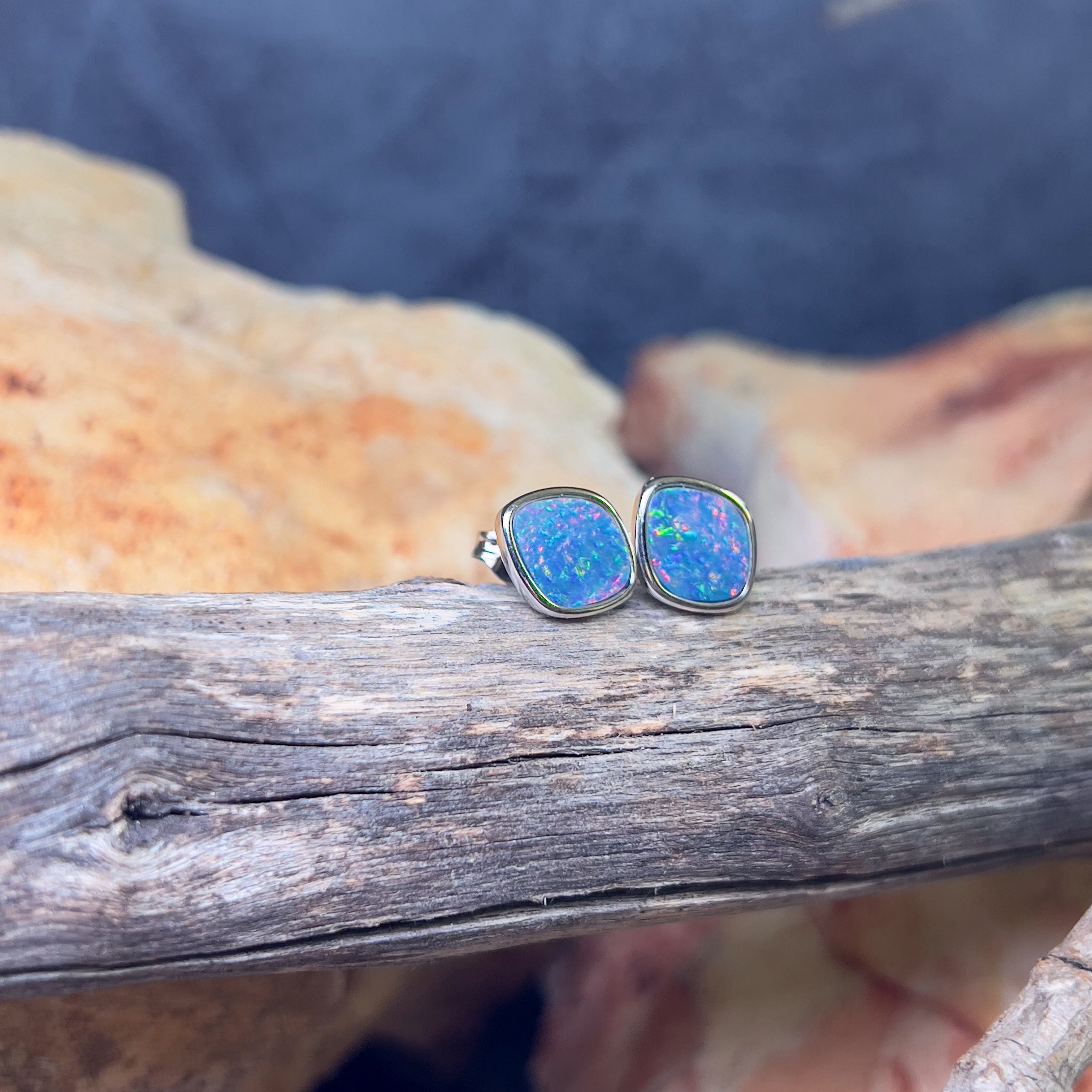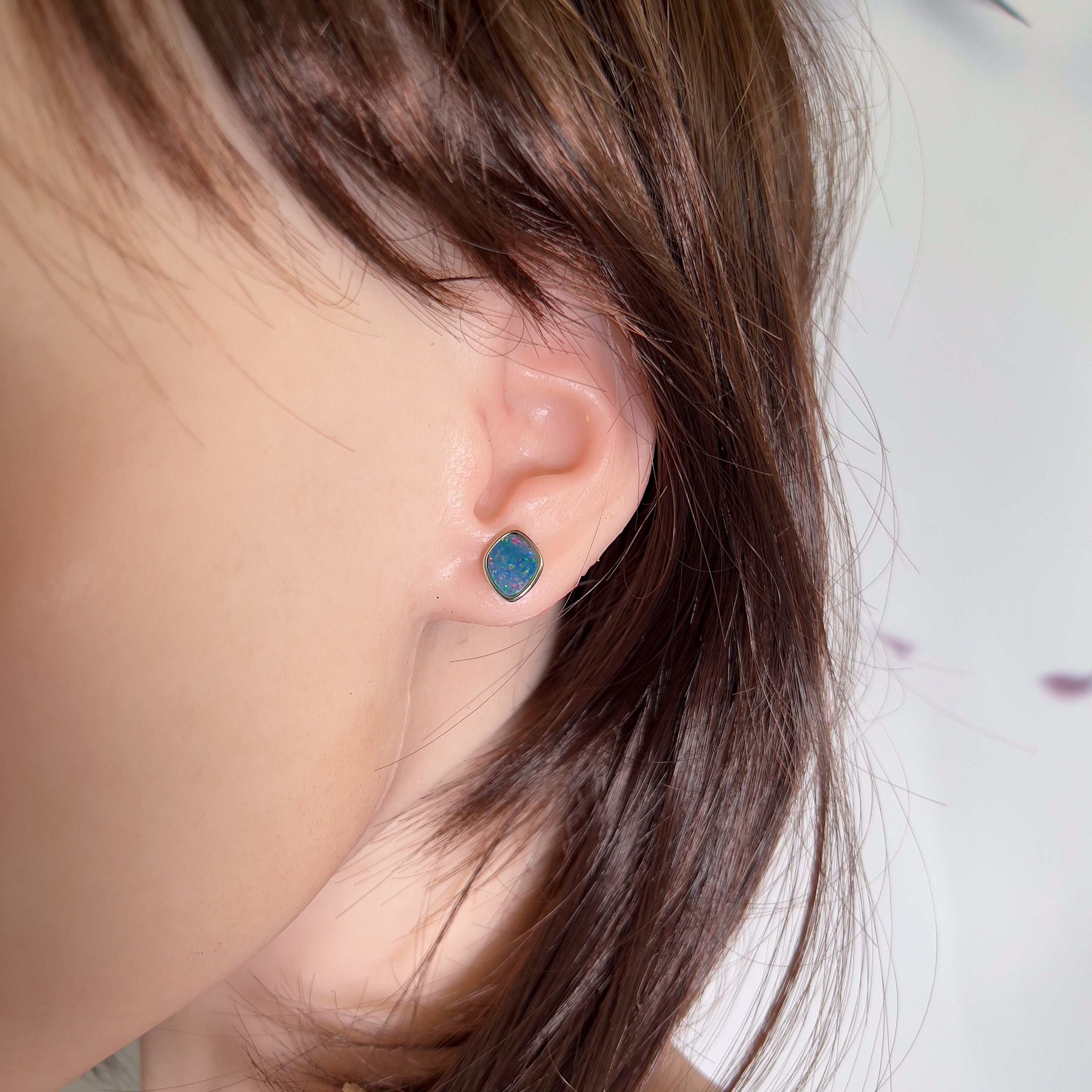 Add some sparkle to your ears with these Sterling Silver Opal doublet studs! The diamond shape adds a touch of elegance to any outfit. Perfect for any occasion, these studs will be your new go-to accessory.