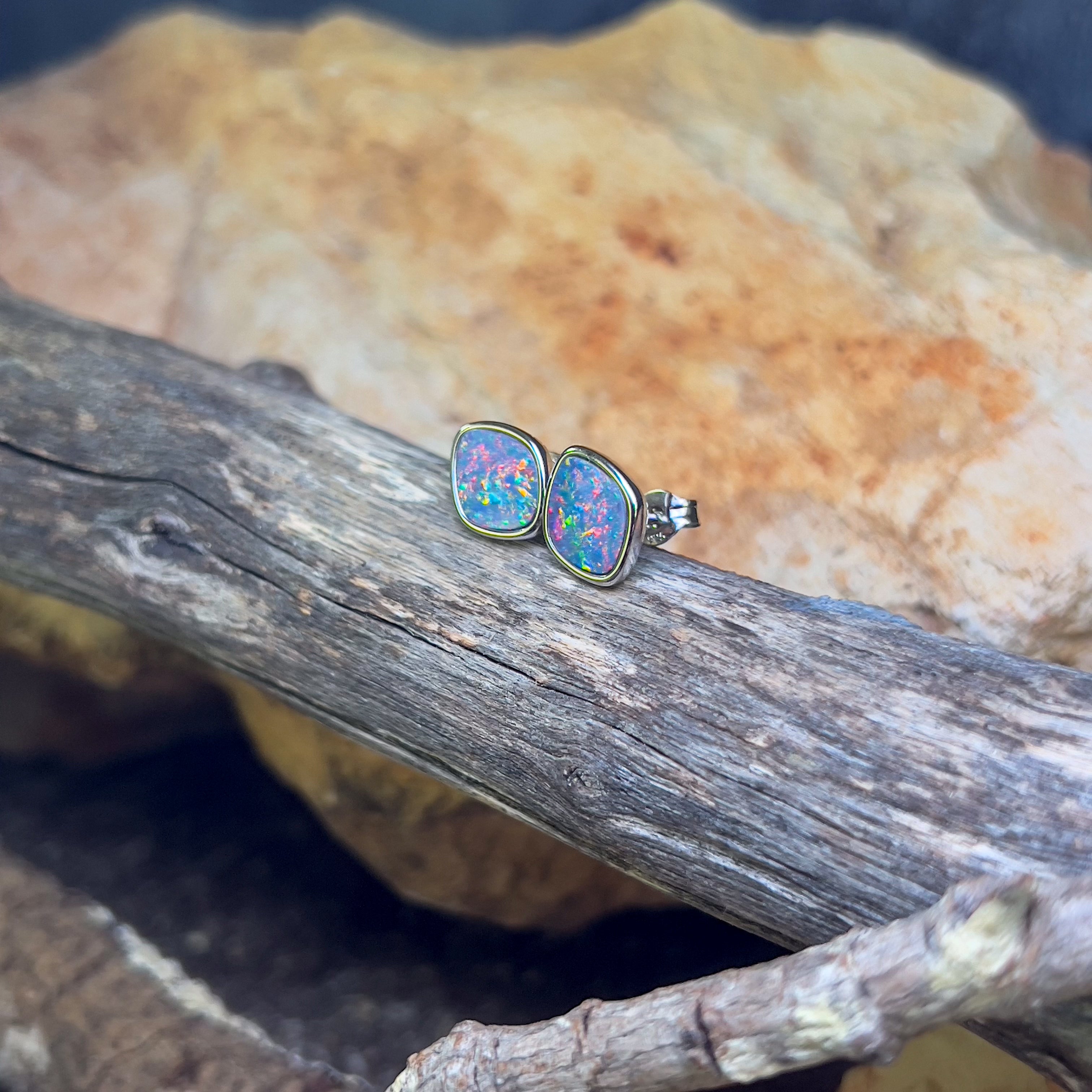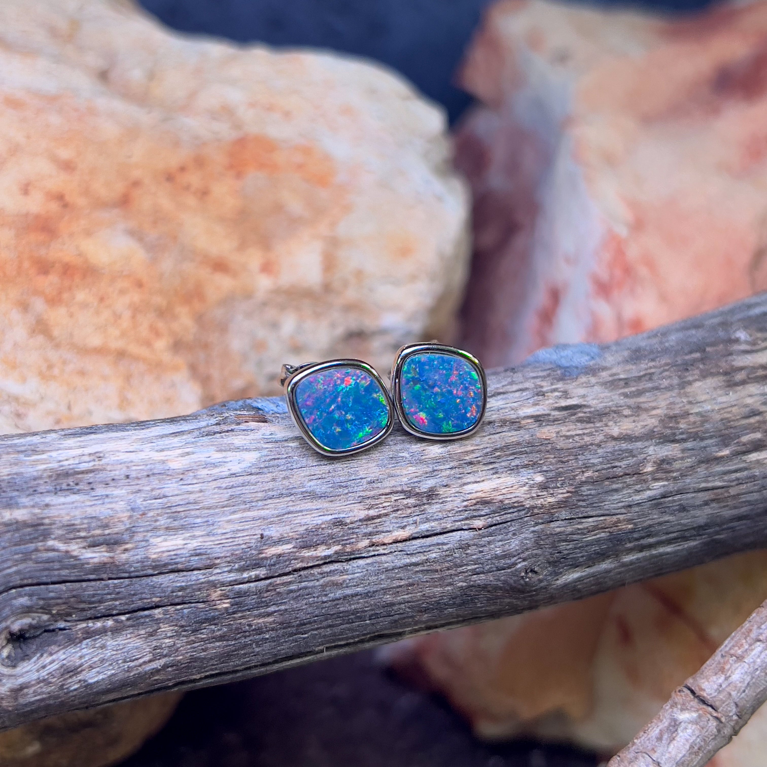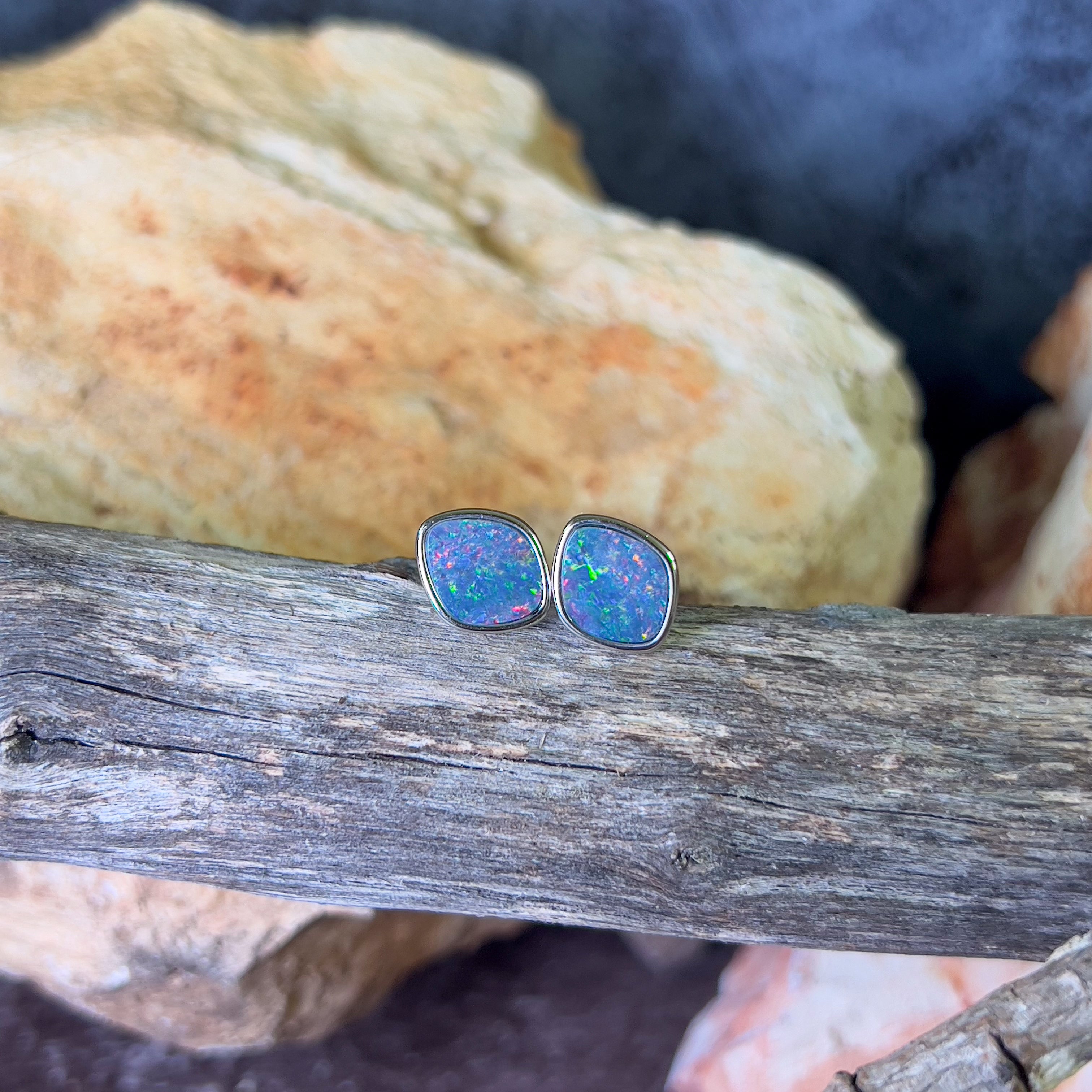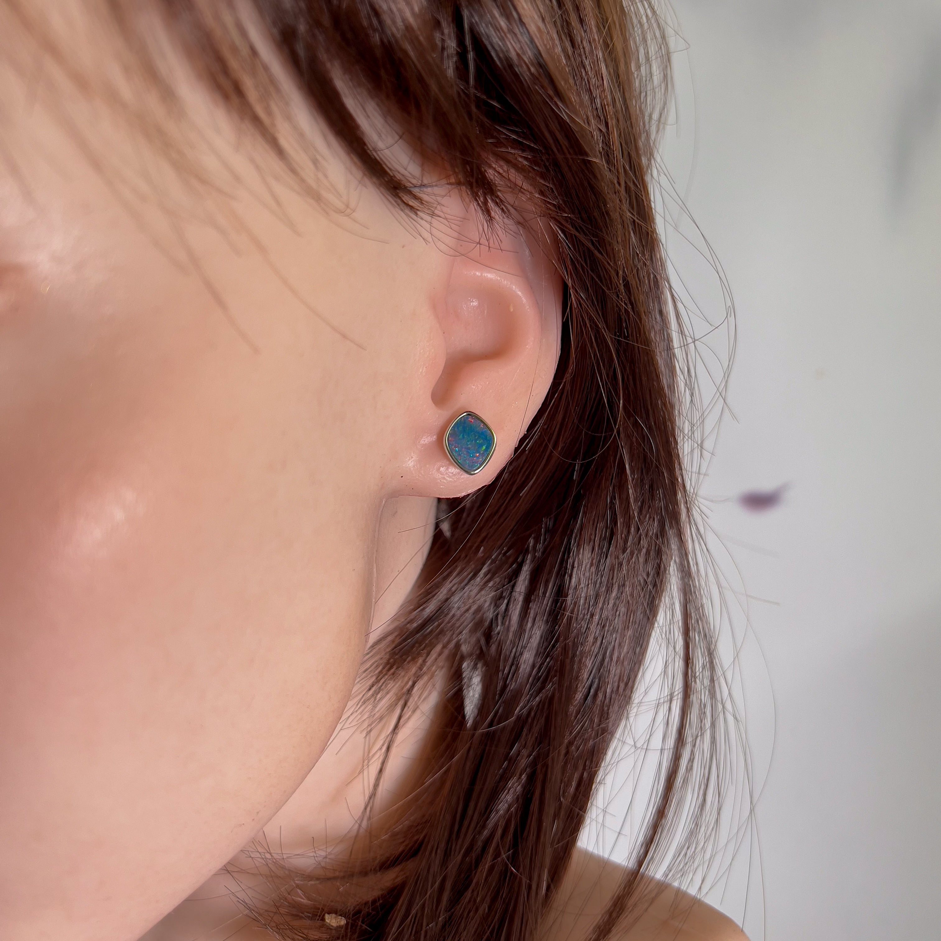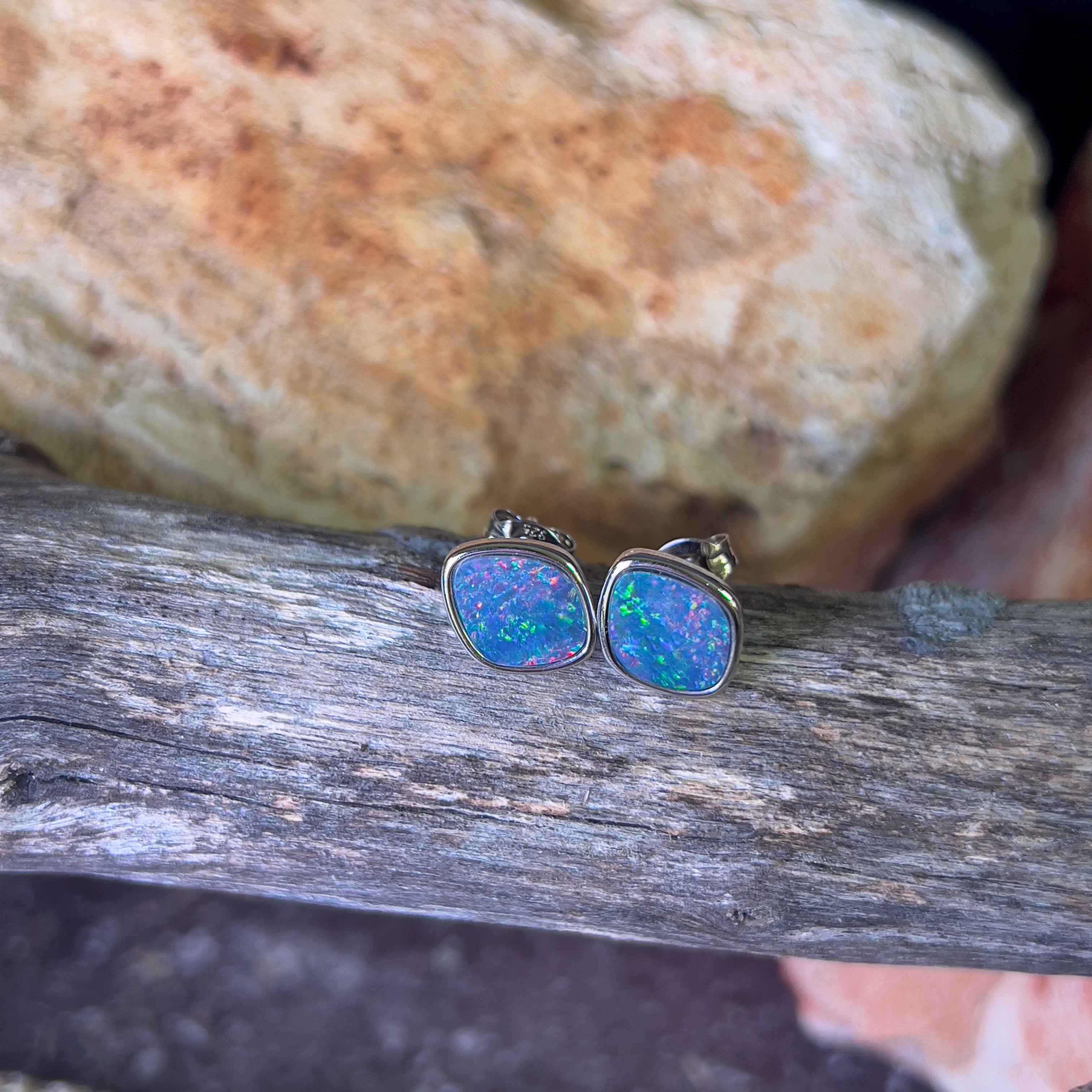 Add some sparkle to your ears with these Sterling Silver Opal doublet studs! The diamond shape adds a touch of elegance to any outfit. Perfect for any occasion, these studs will be your new go-to accessory.