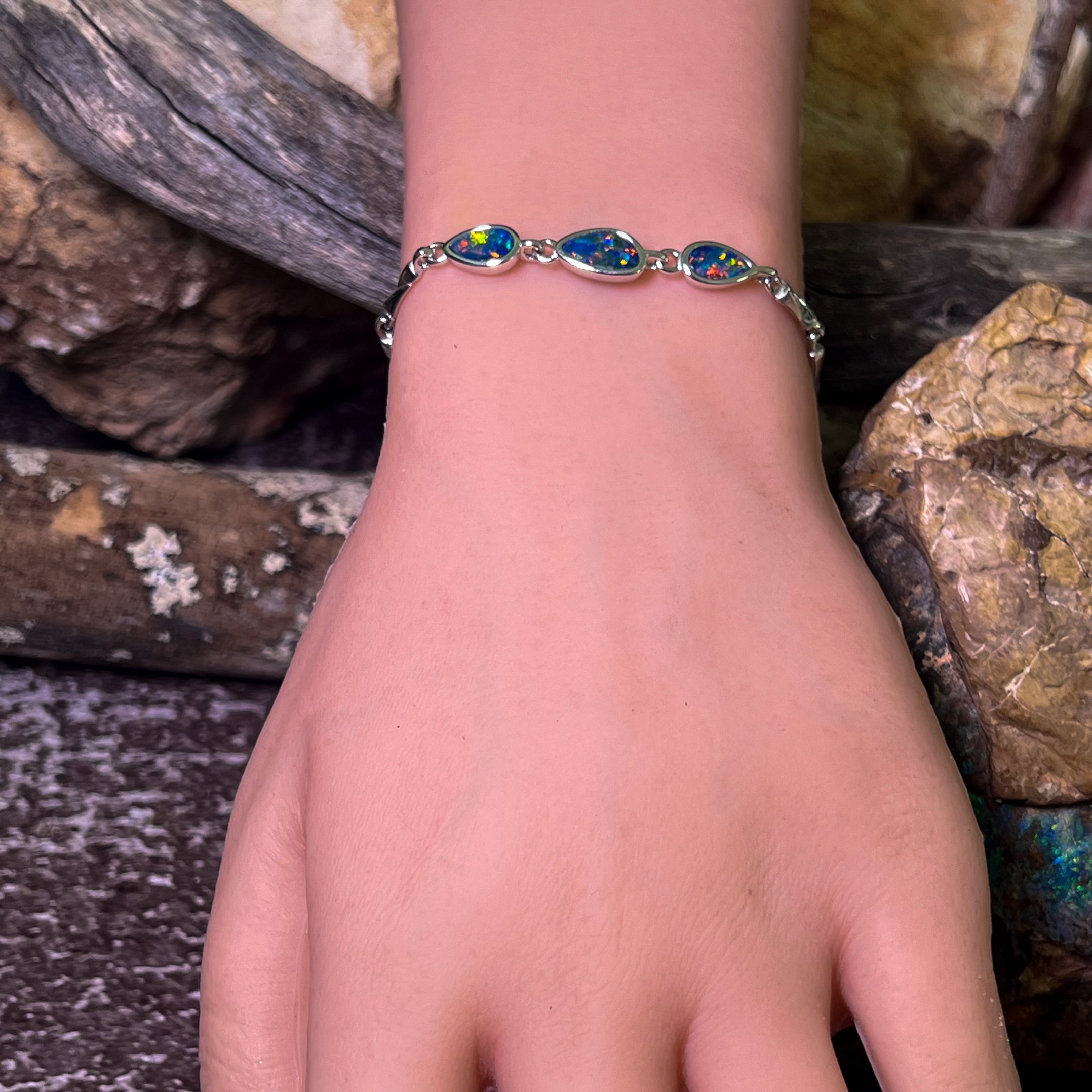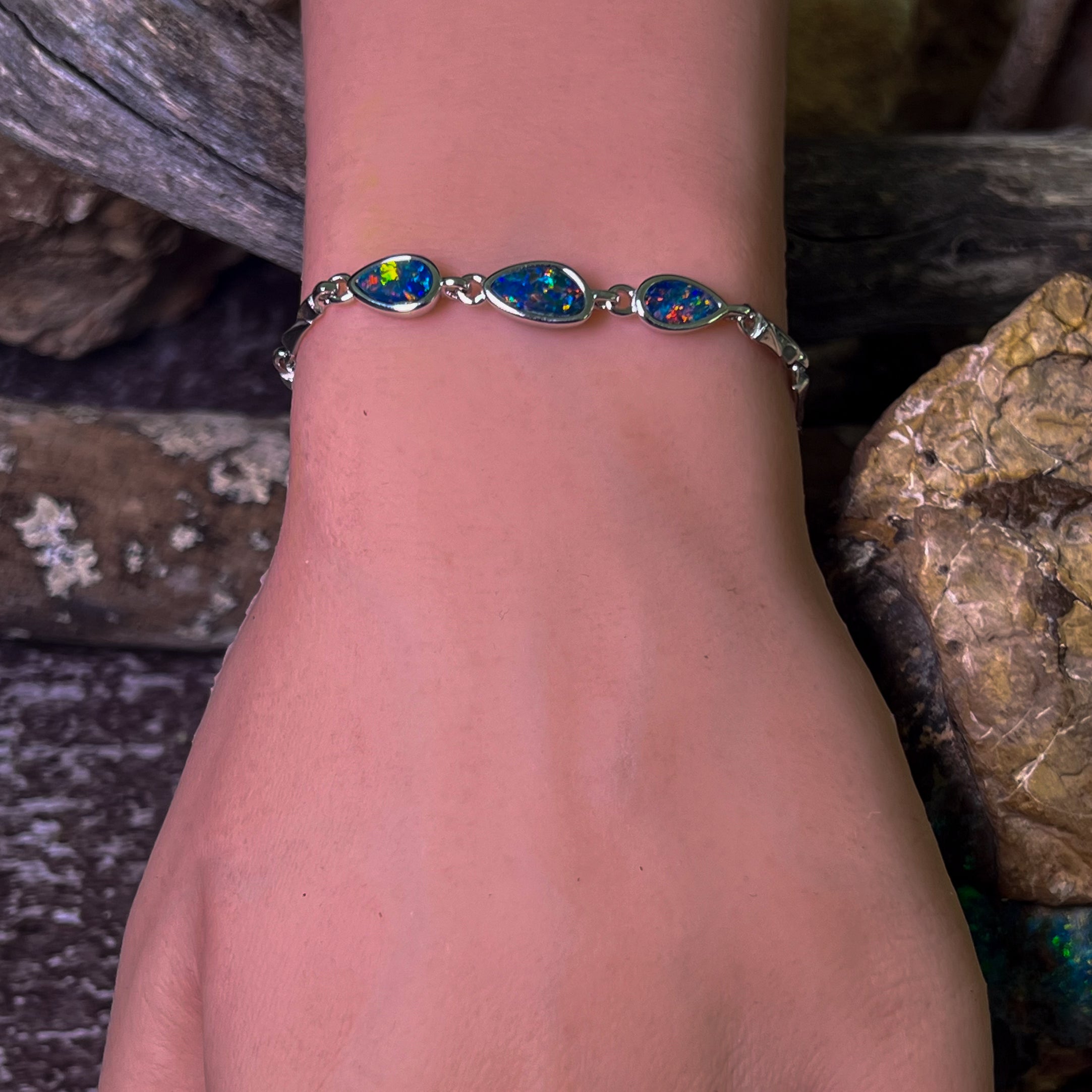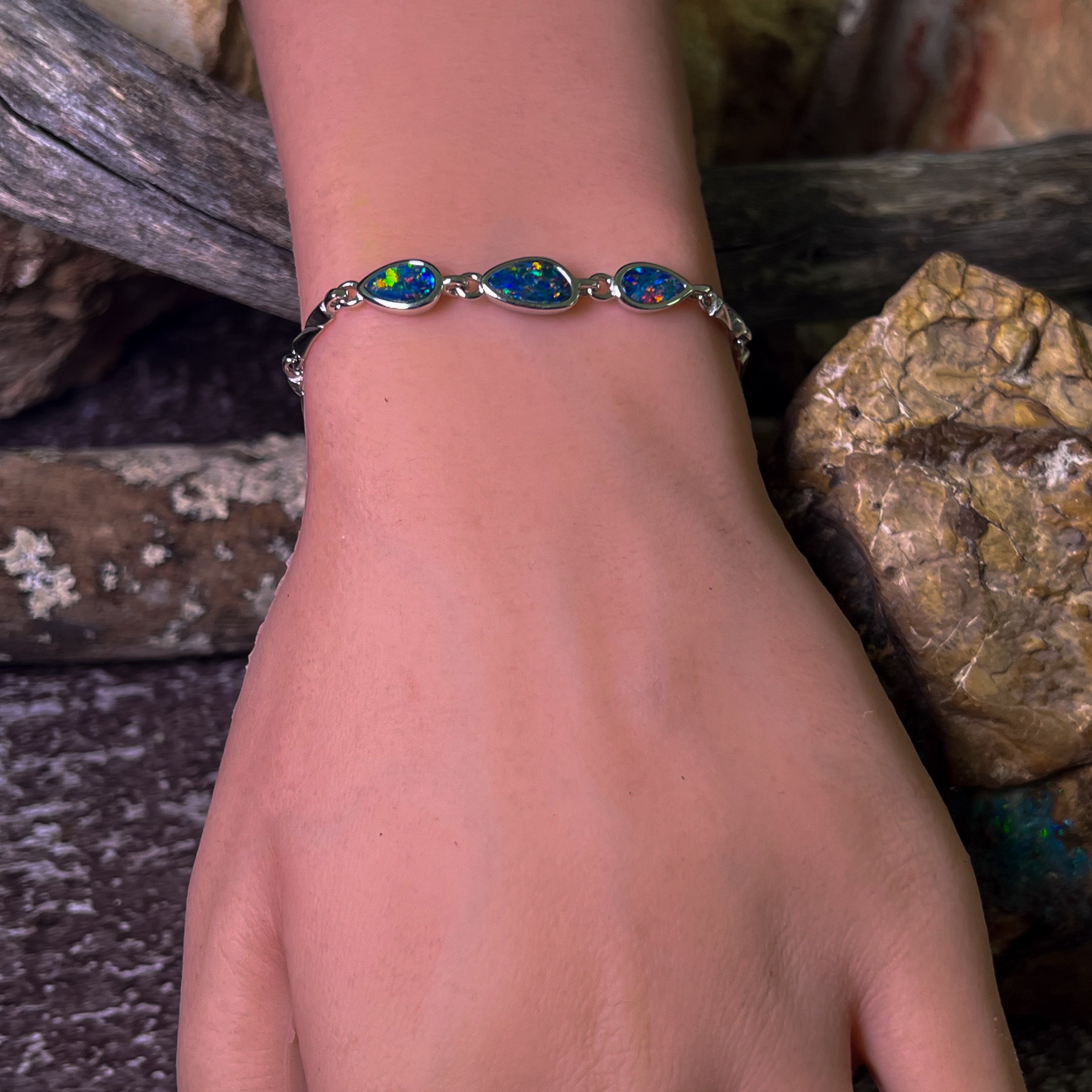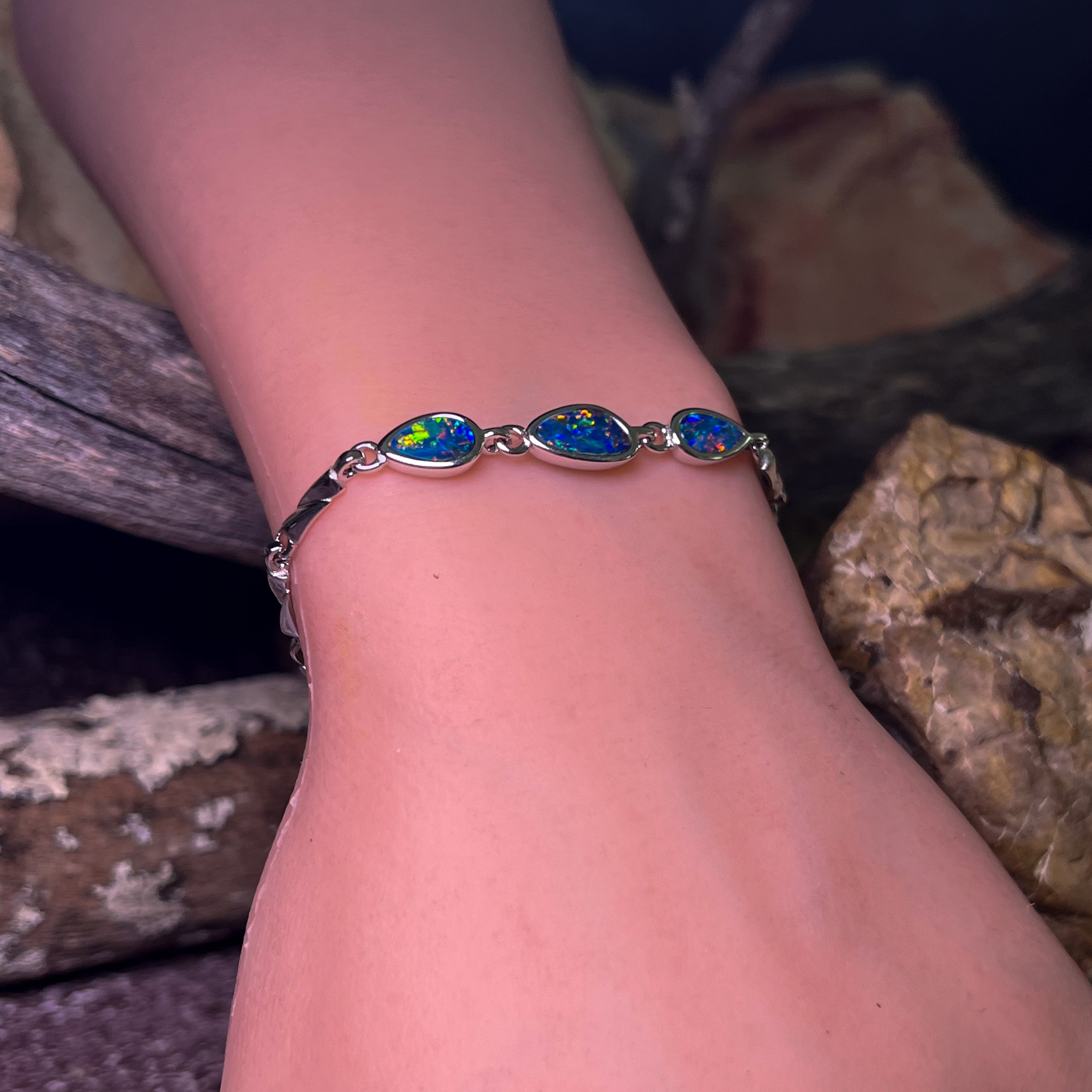 Sterling Silver Opal doublet freeform 3 stone bracelet