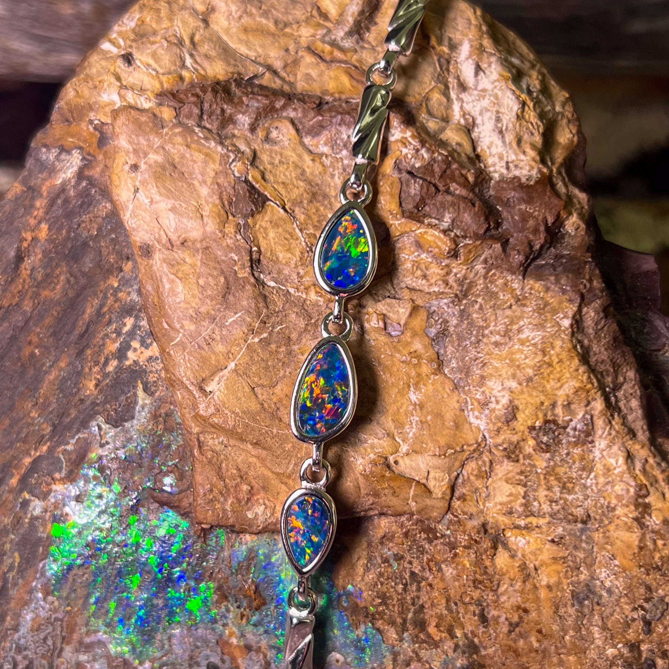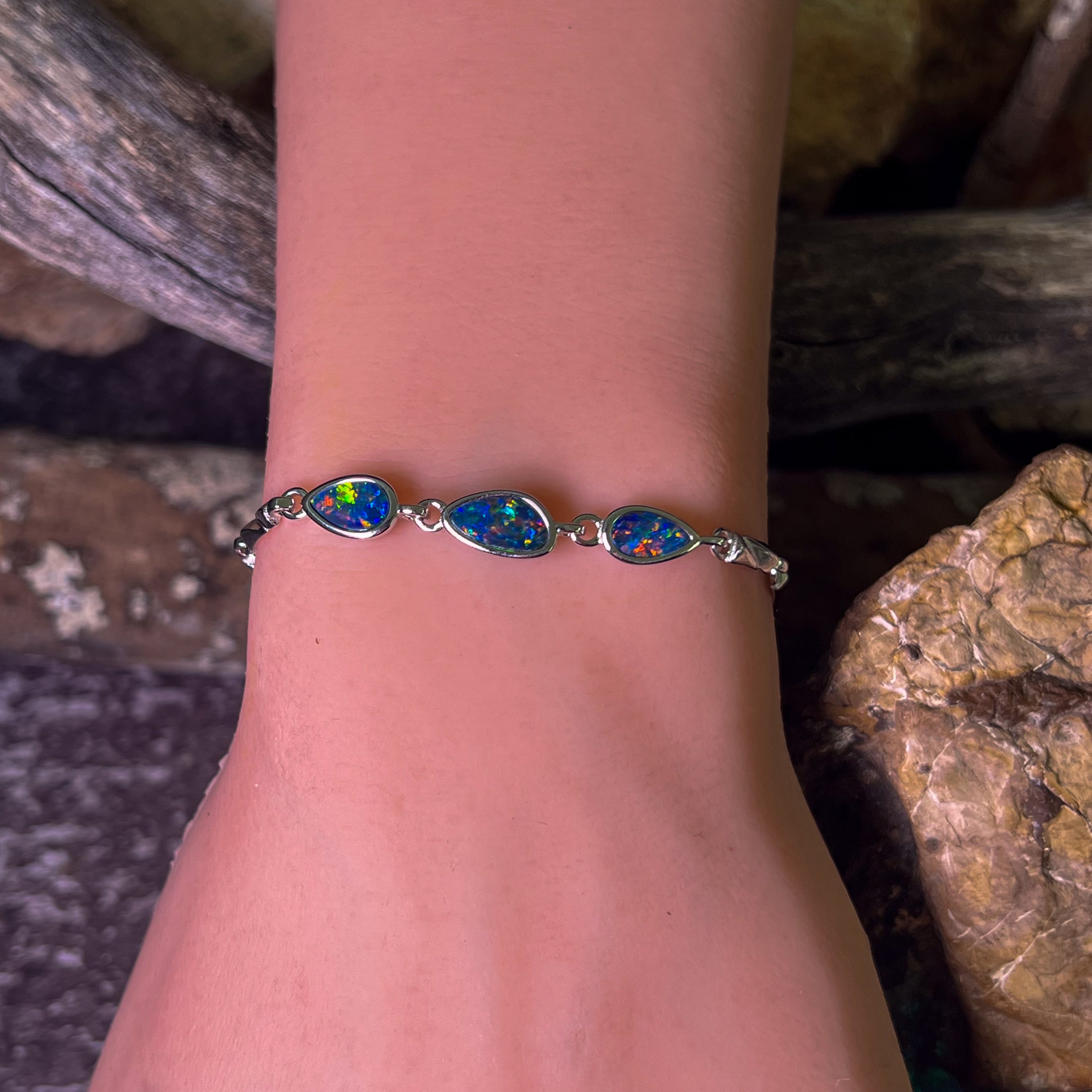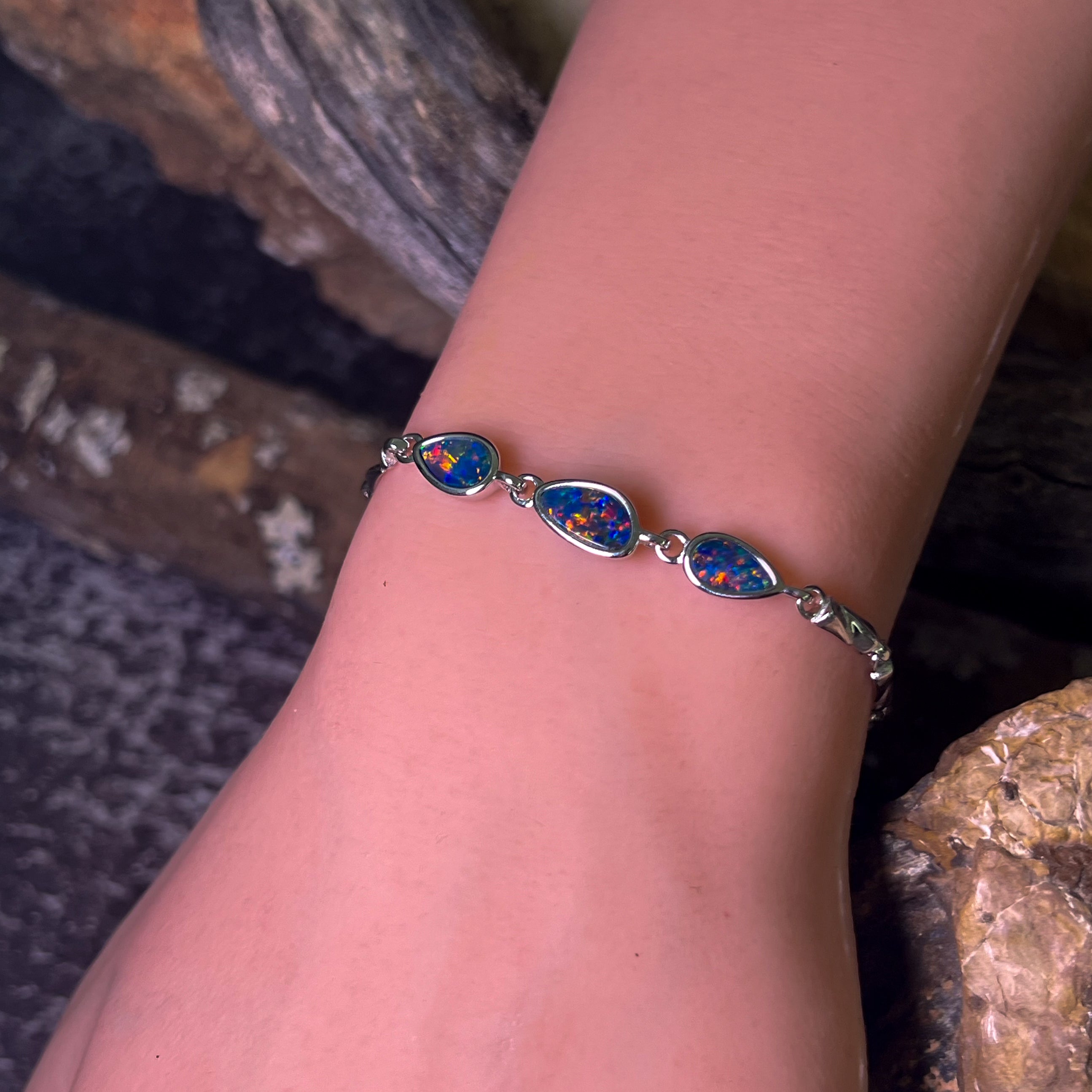 Sterling Silver Opal doublet freeform 3 stone bracelet