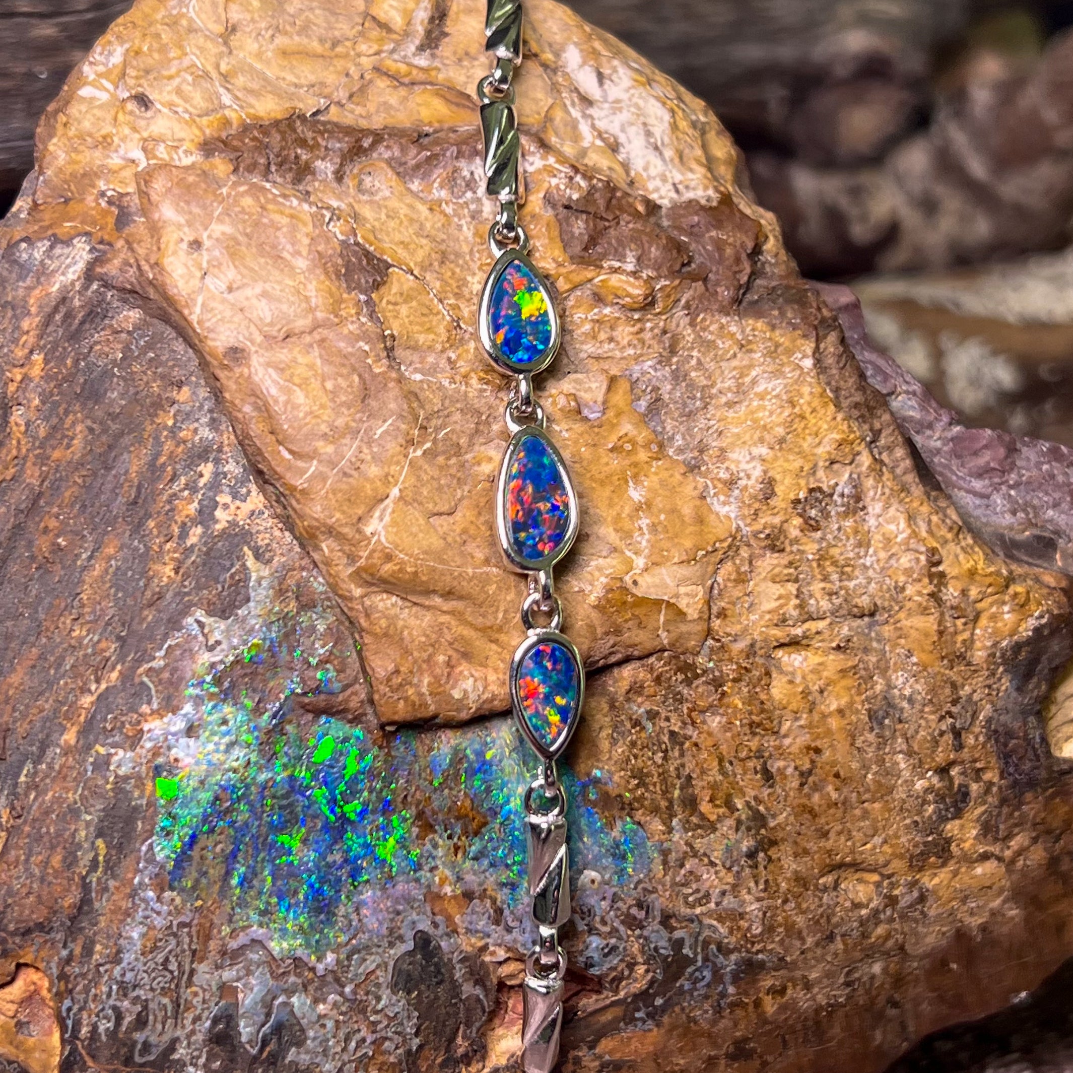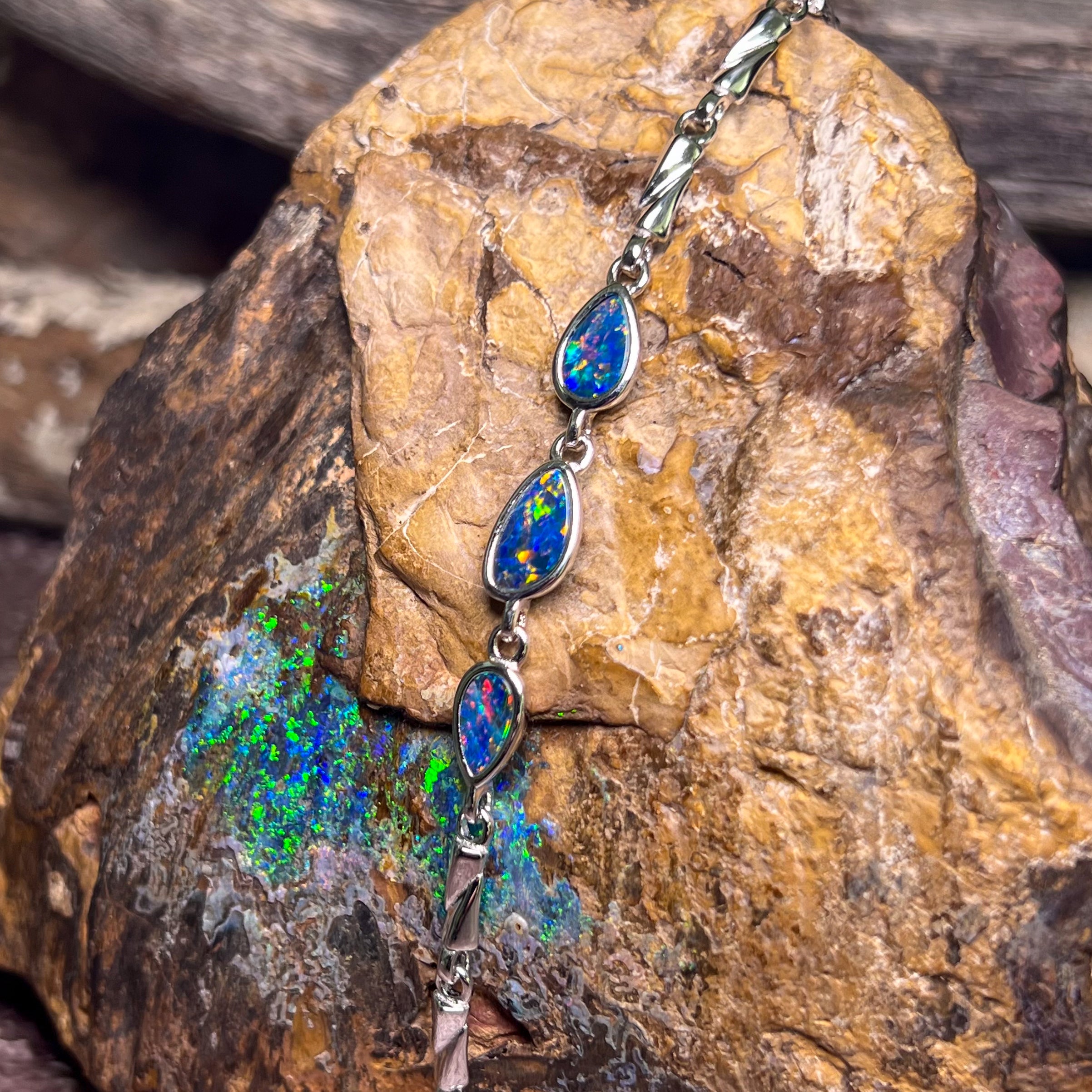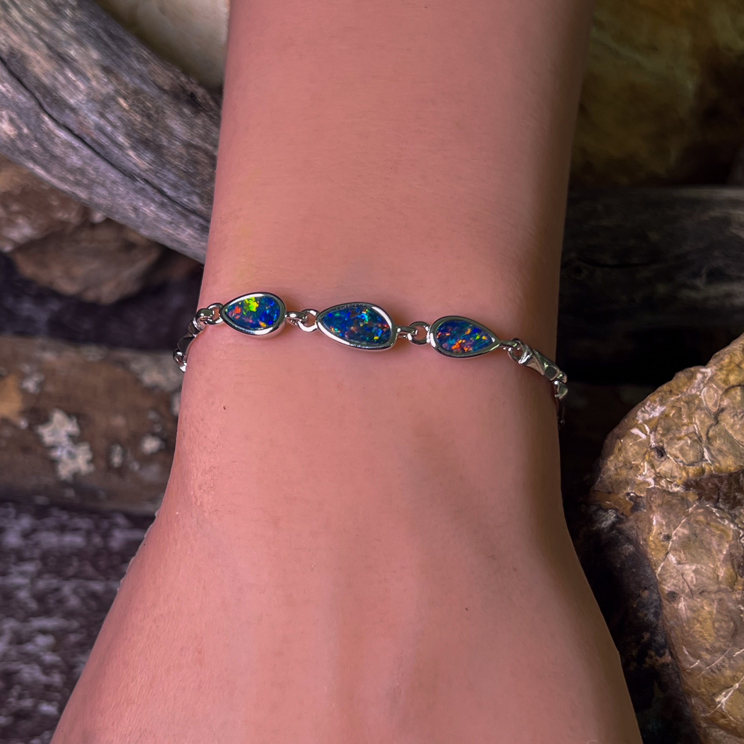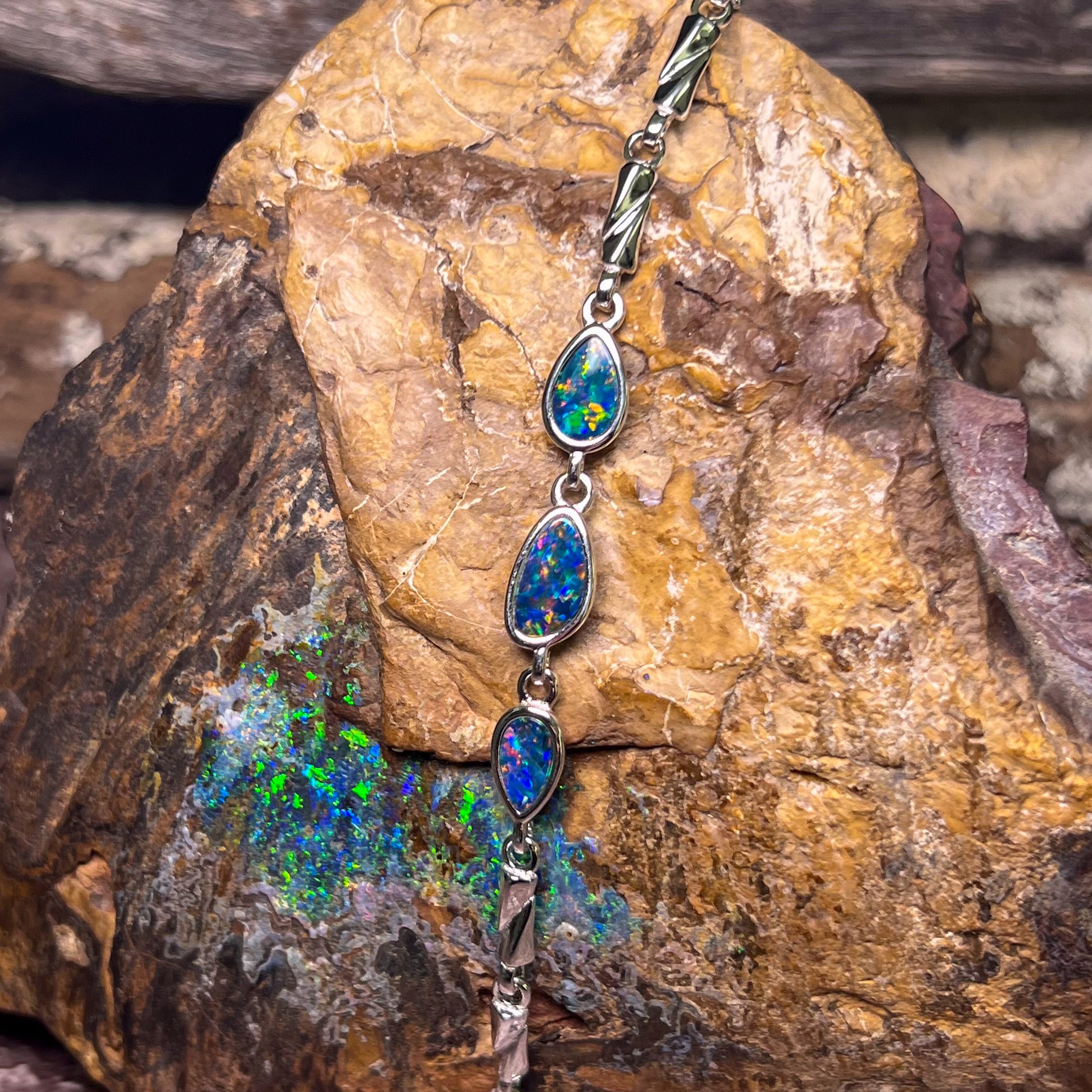 Sterling Silver Opal doublet freeform 3 stone bracelet