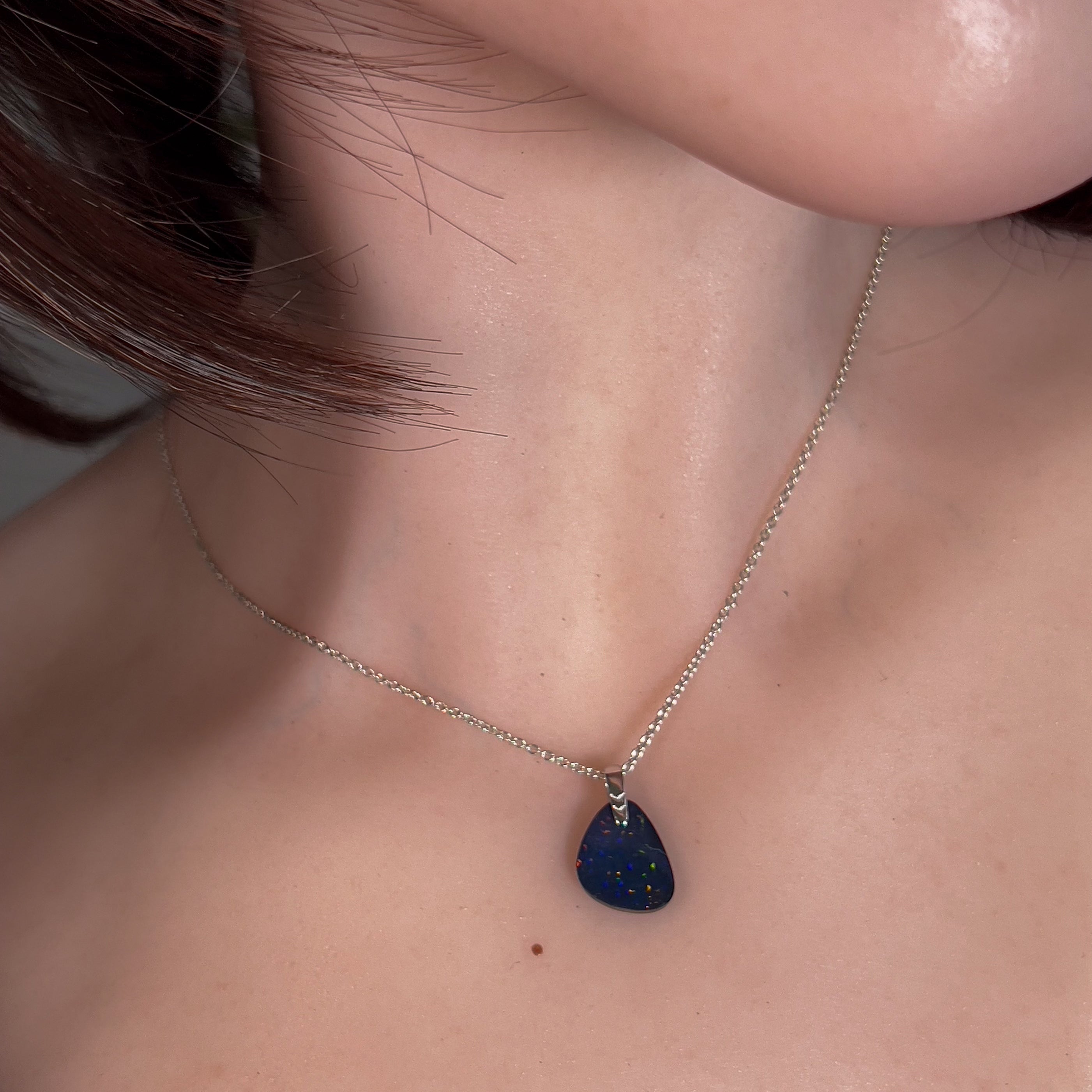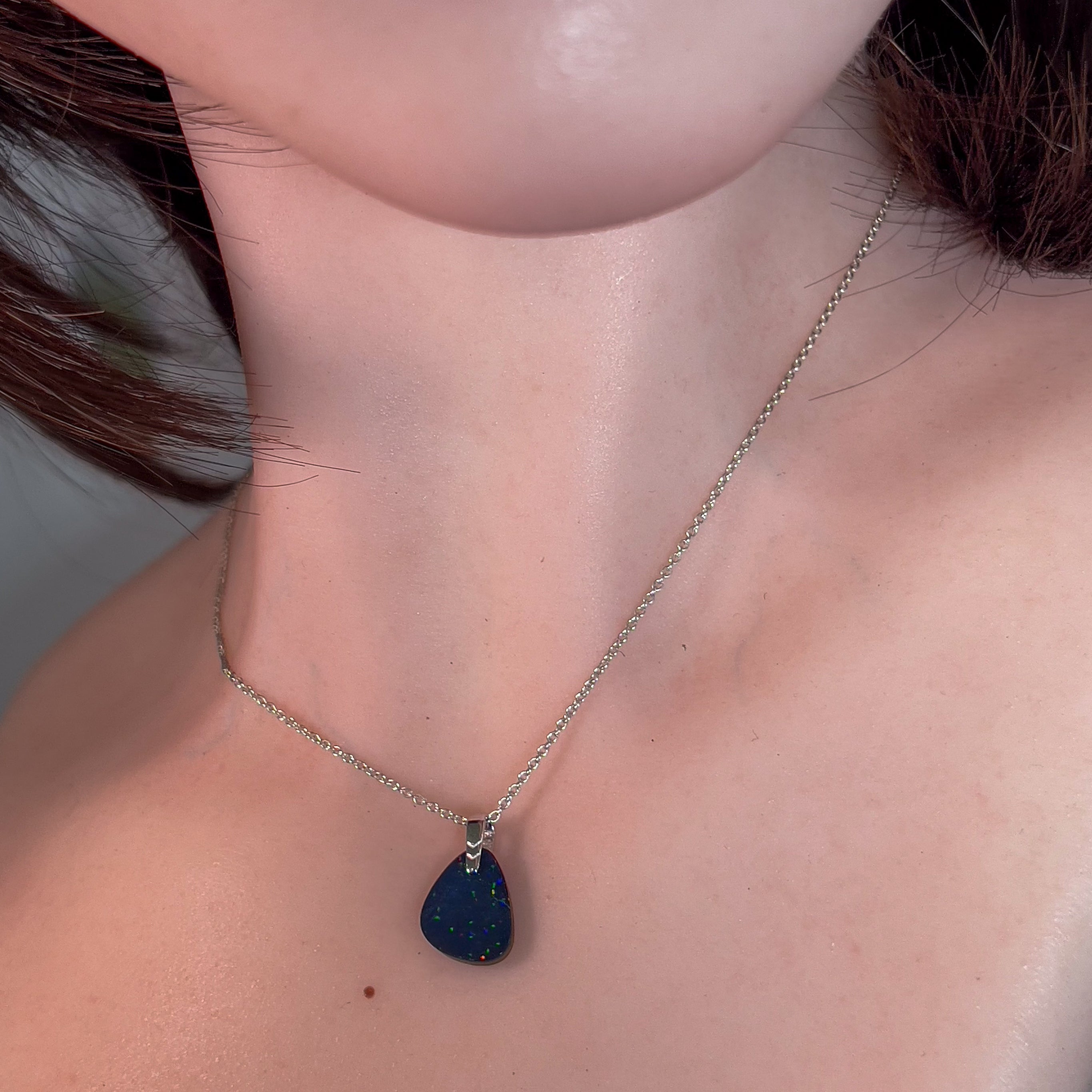 Elevate your style with our minimalist Sterling Silver Opal doublet Red pin fire pendant! Crafted with quality and designed to make a statement, this pendant adds a touch of elegance and sophistication to any outfit. The striking red pin fire opal will surely catch eyes and turn heads. Upgrade your look today!