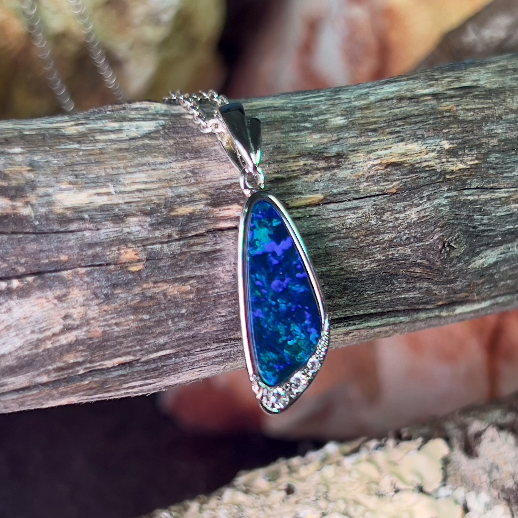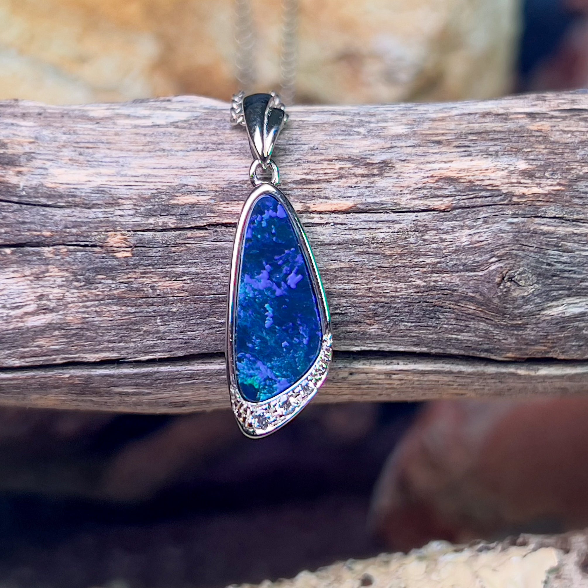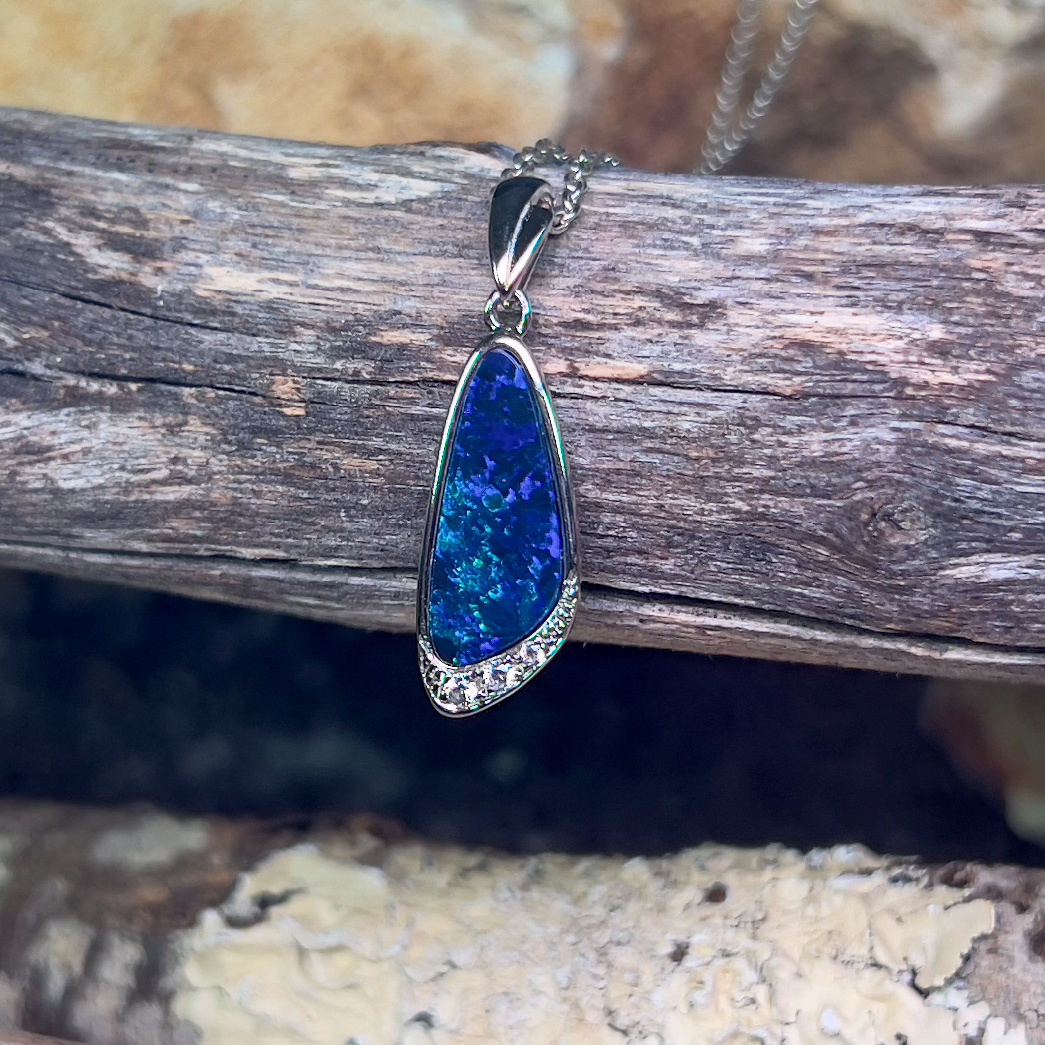 Sterling Silver Opal doublet Triangle shape with cz Pendant
