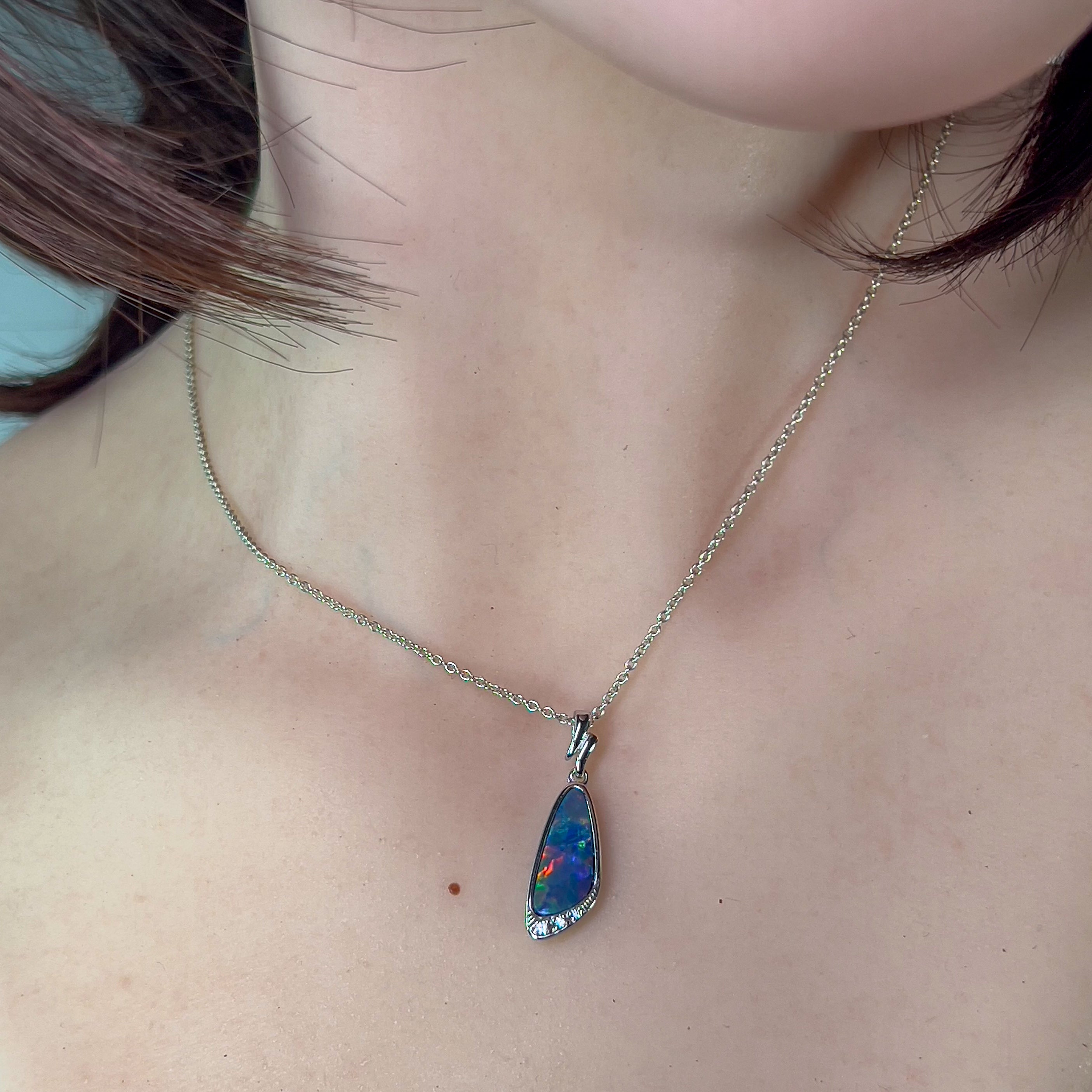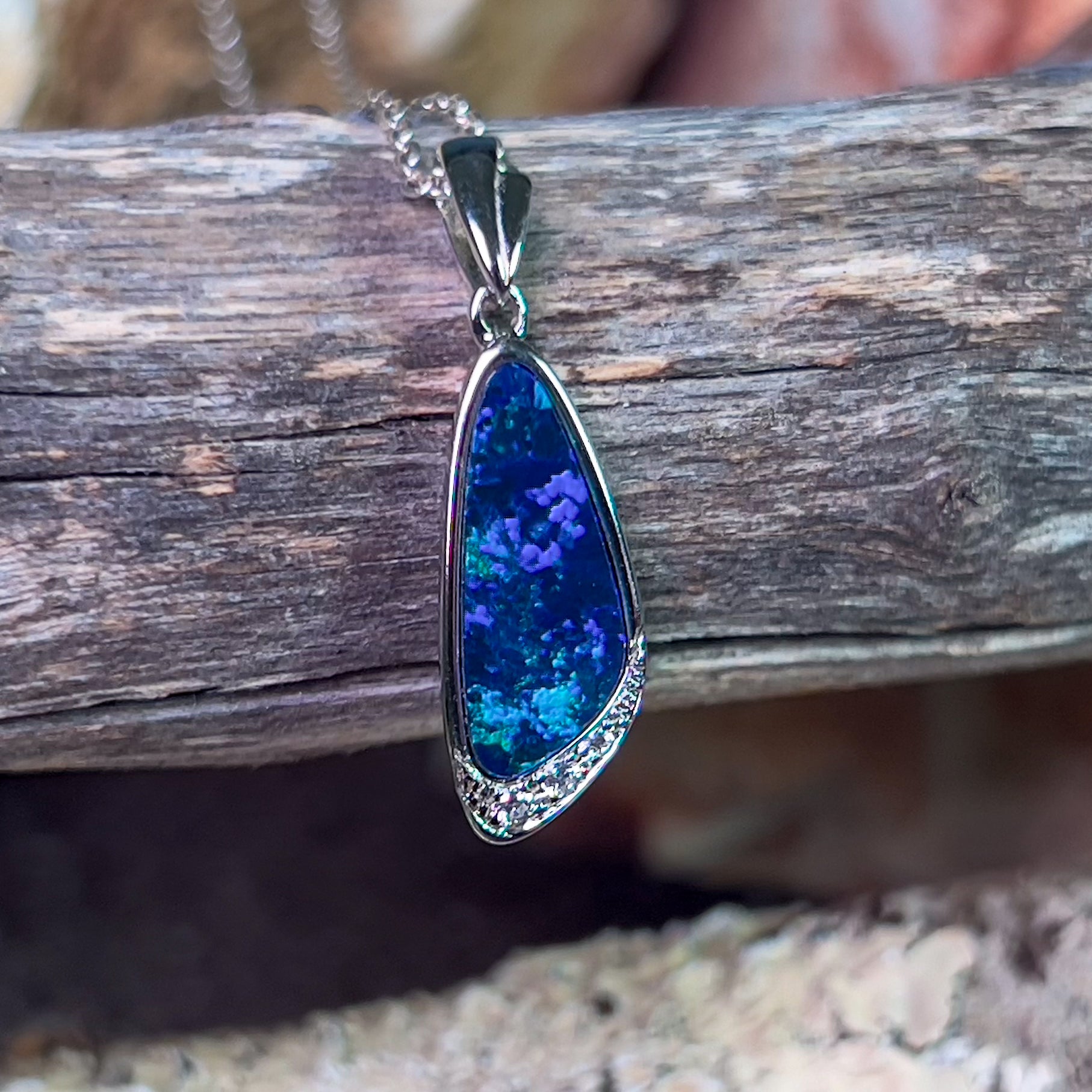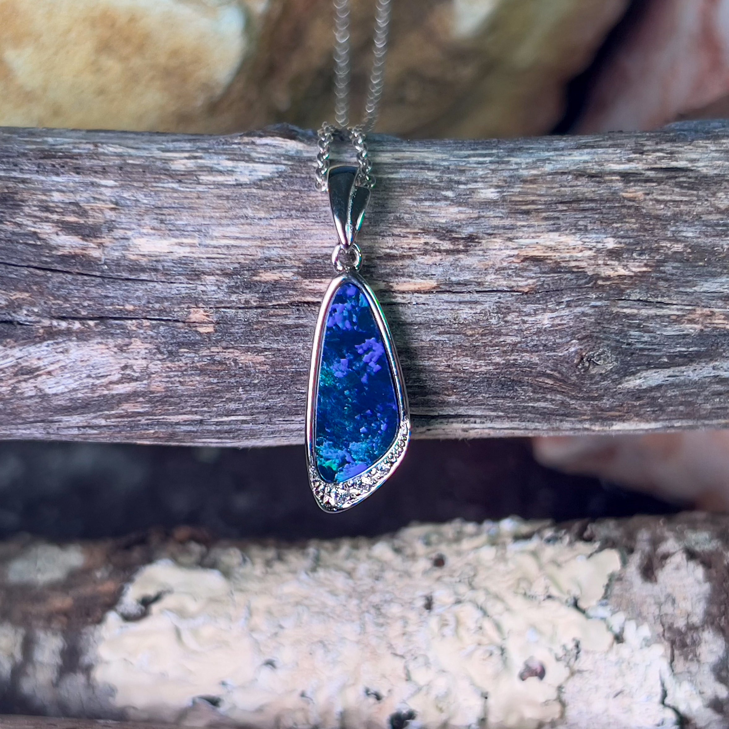 Sterling Silver Opal doublet Triangle shape with cz Pendant