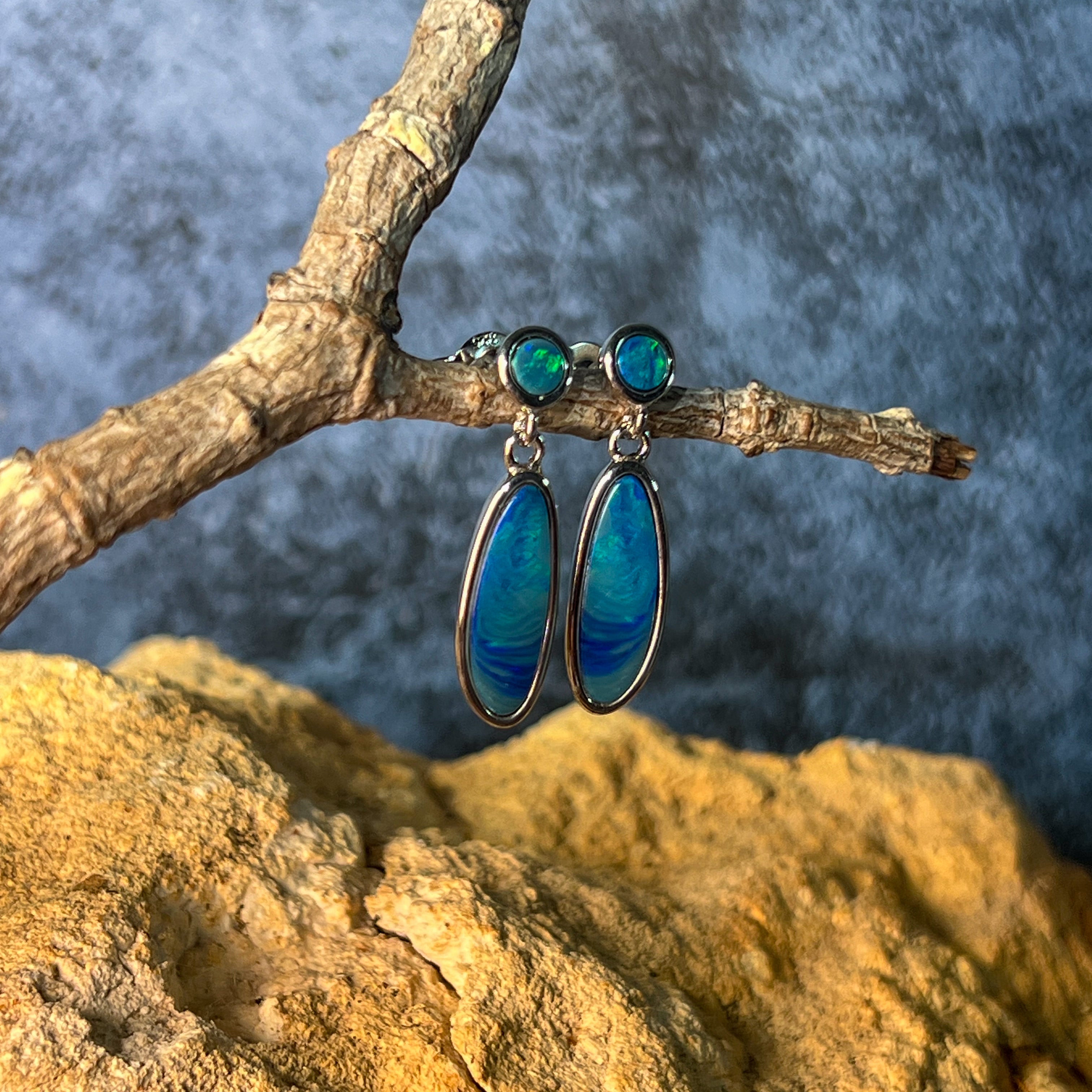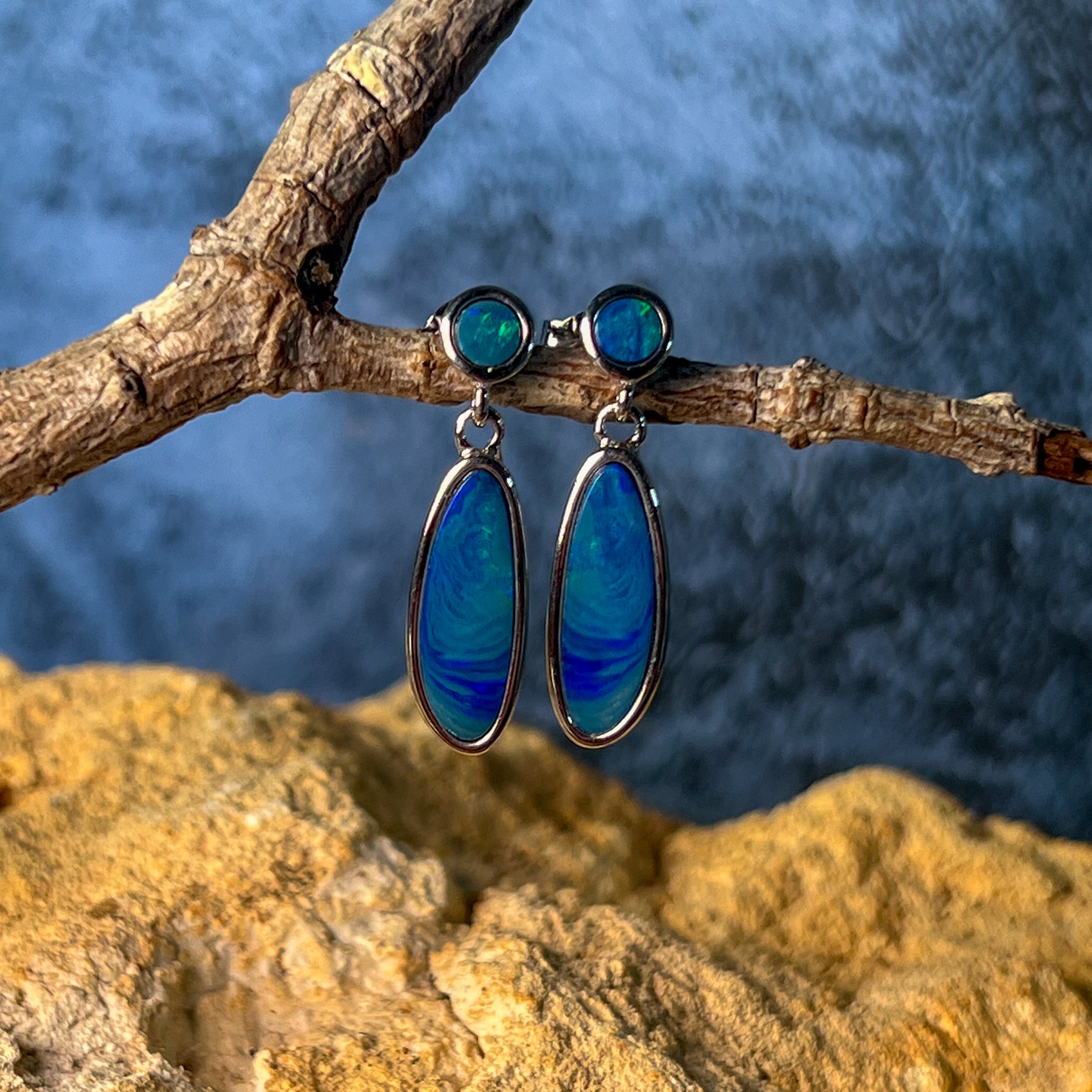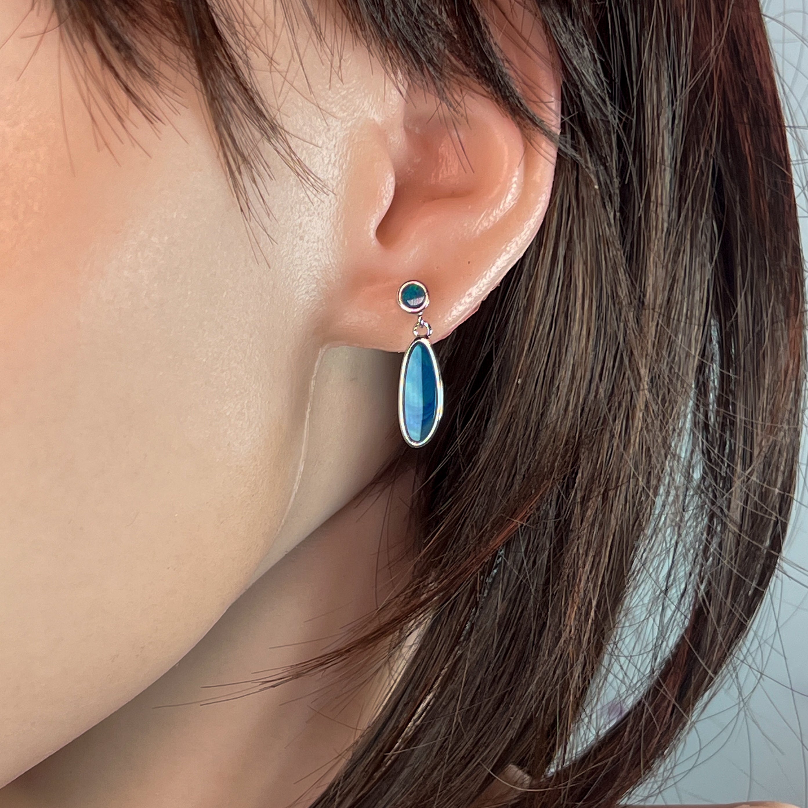 Sterling Silver Opal drop earrings Blue Green satin colours