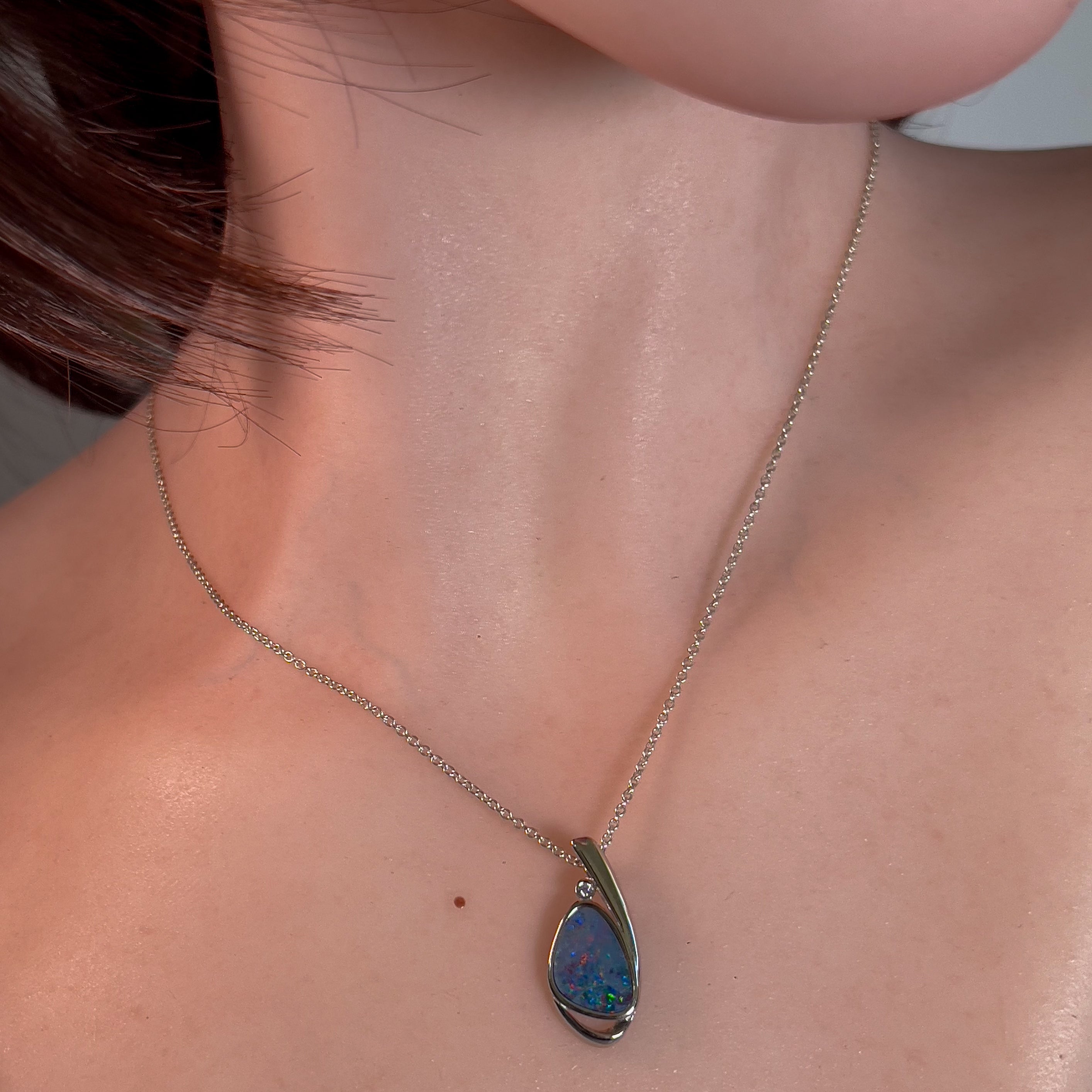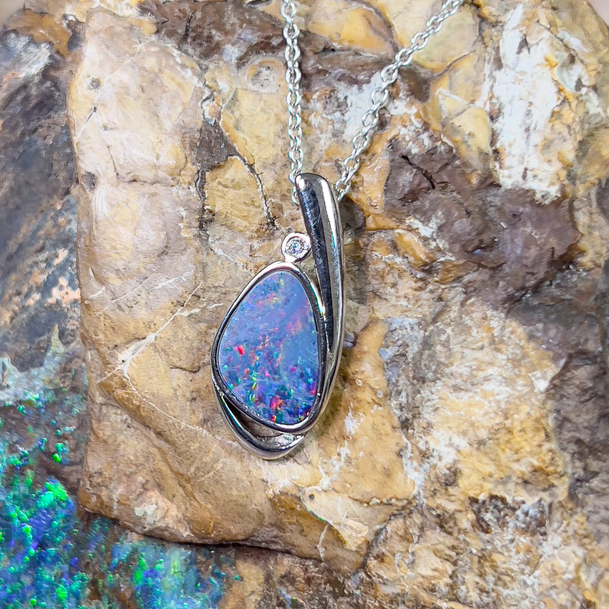 Experience the stunning beauty of our Sterling Silver Opal Red Violet Doublet Pendant! Featuring a mesmerizing blend of blue and red hues, this pendant will add a vibrant pop of color to any outfit. Made with high-quality sterling silver, our pendant exudes elegance and will be a cherished addition to your jewelry collection.
