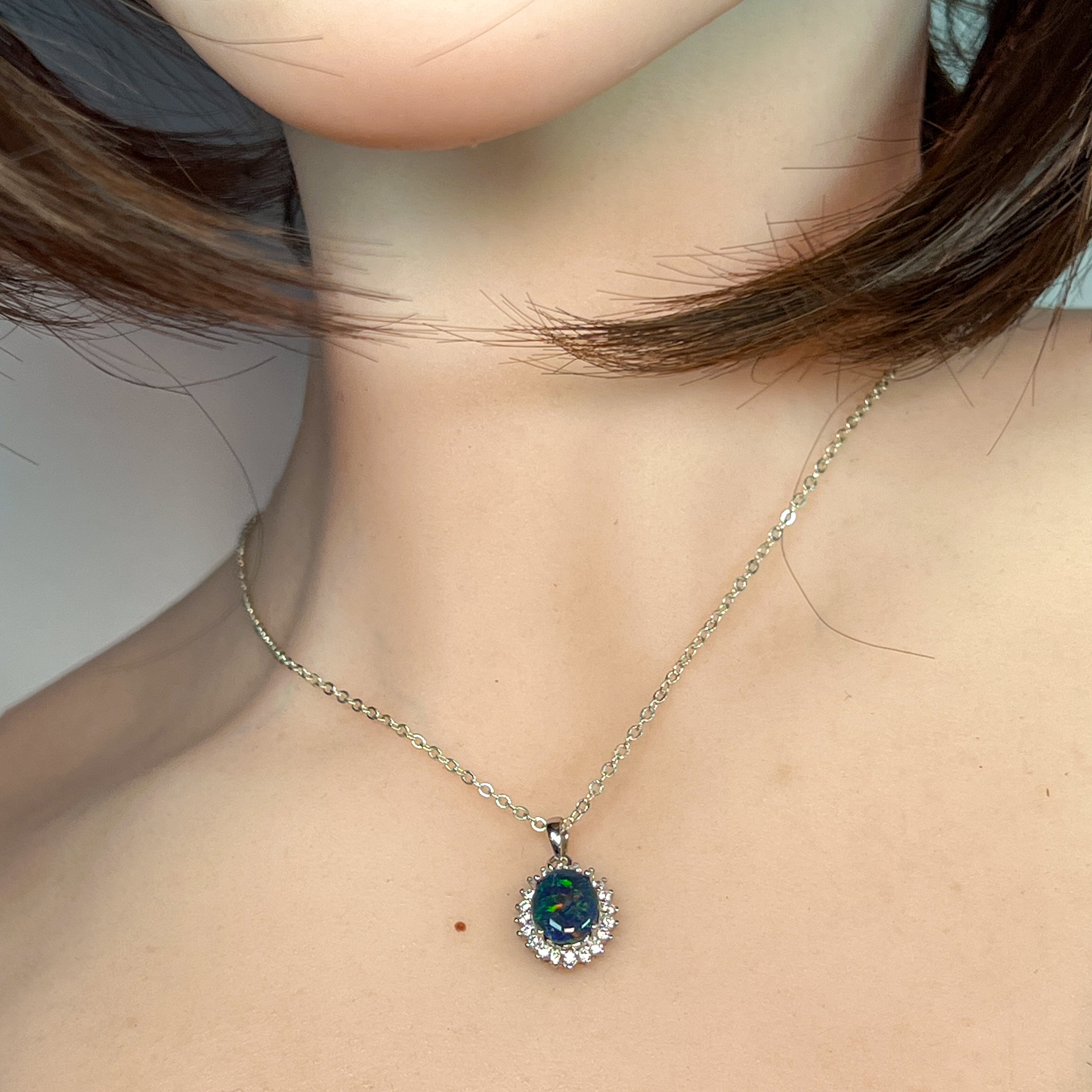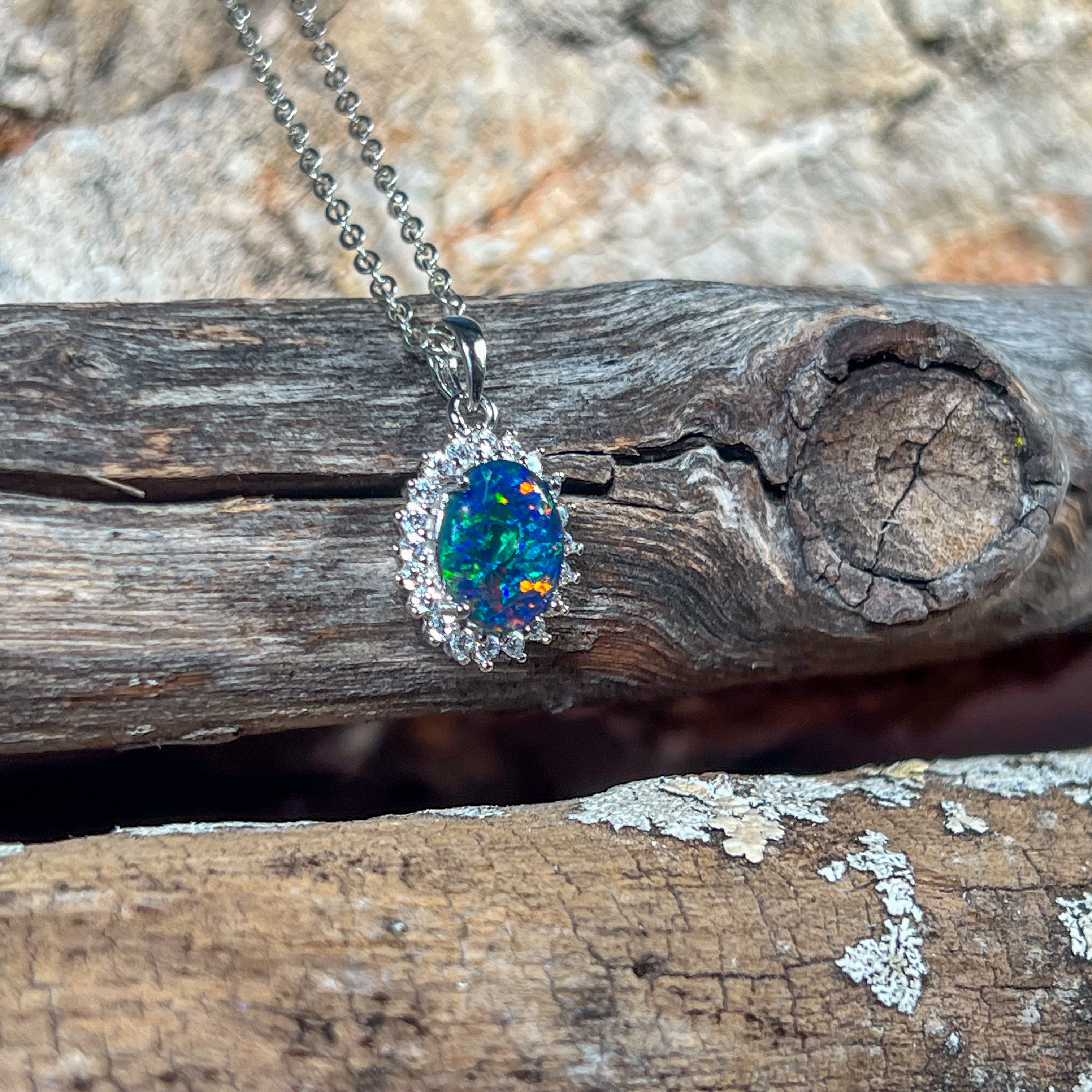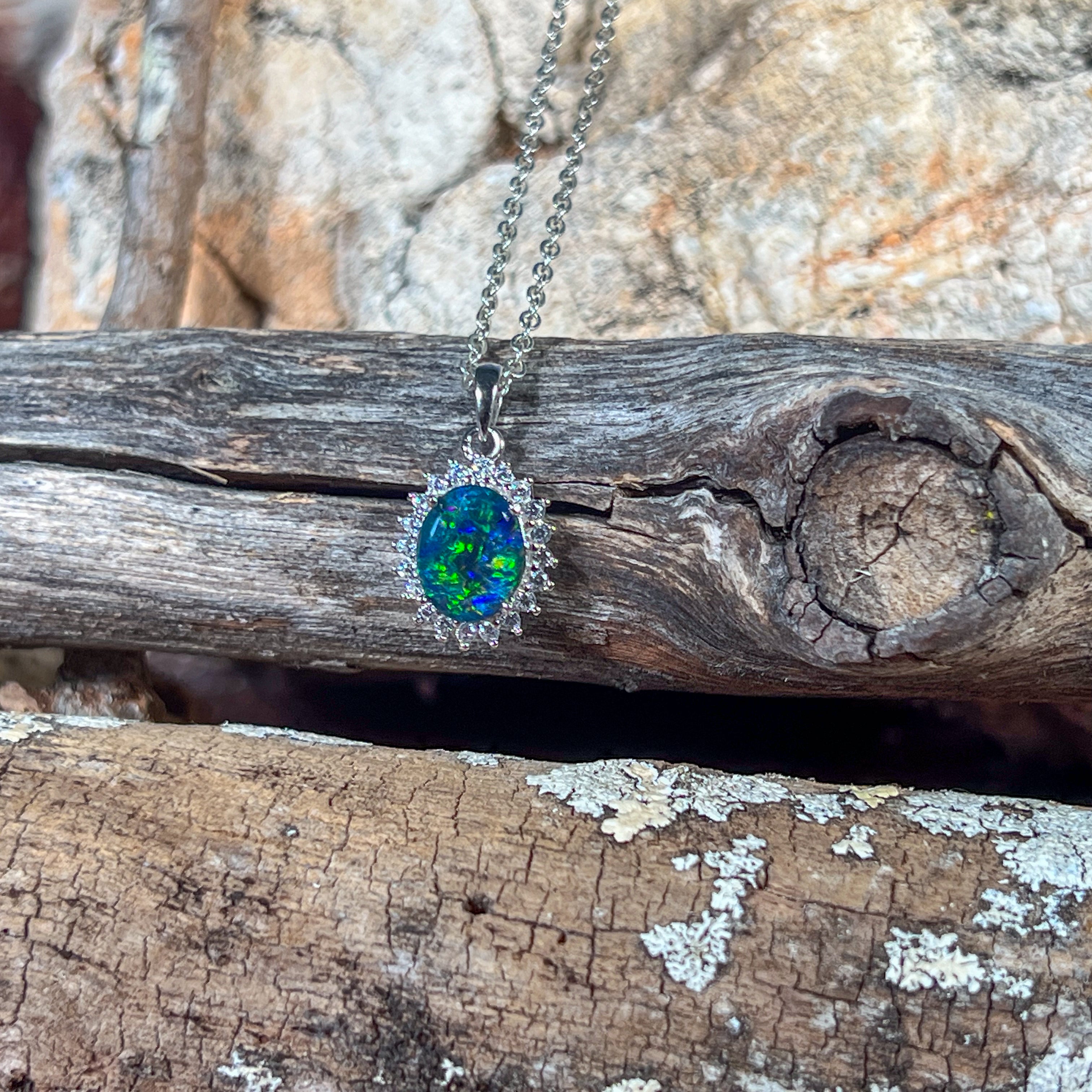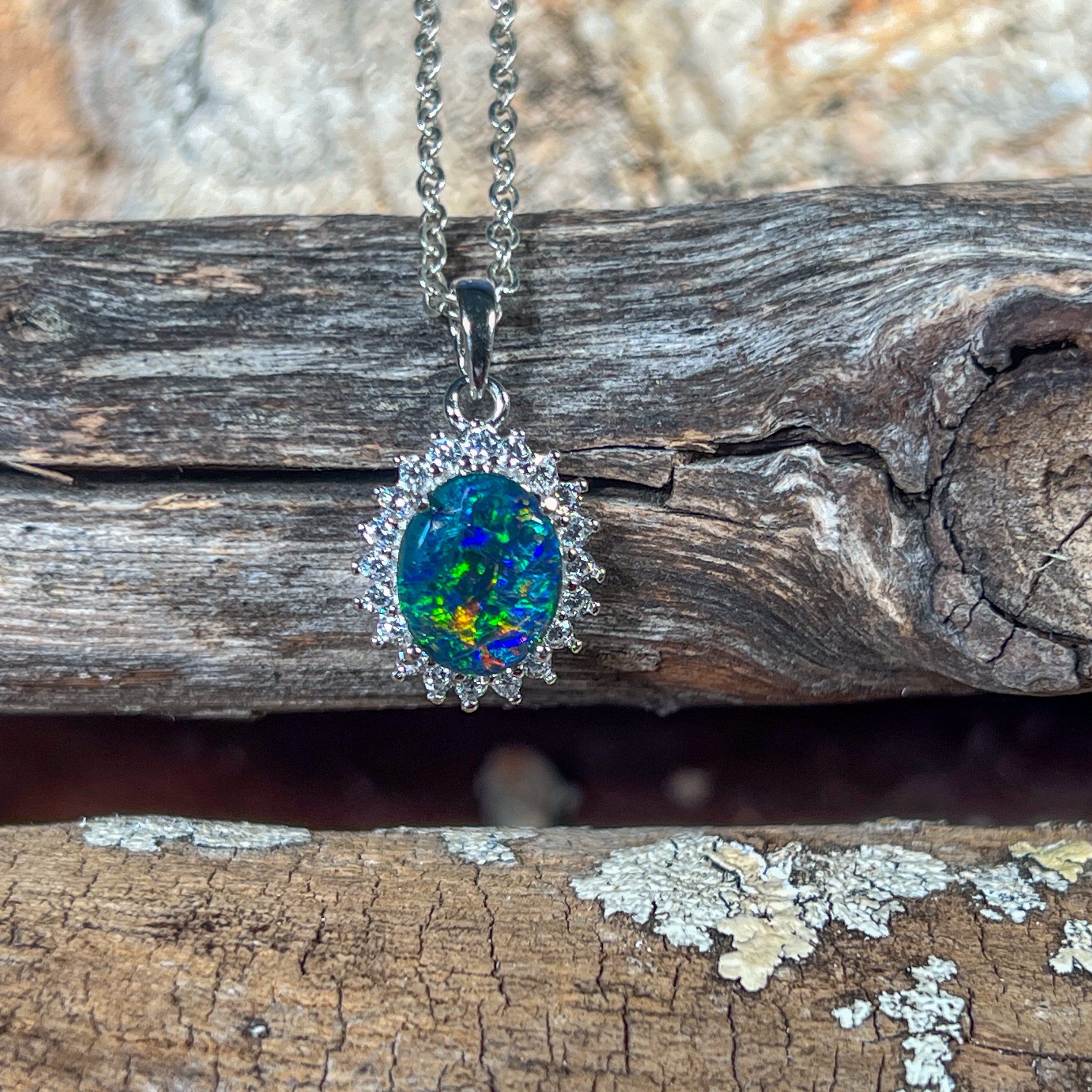 Sterling Silver Opal triplet 10x8mm cluster pendant