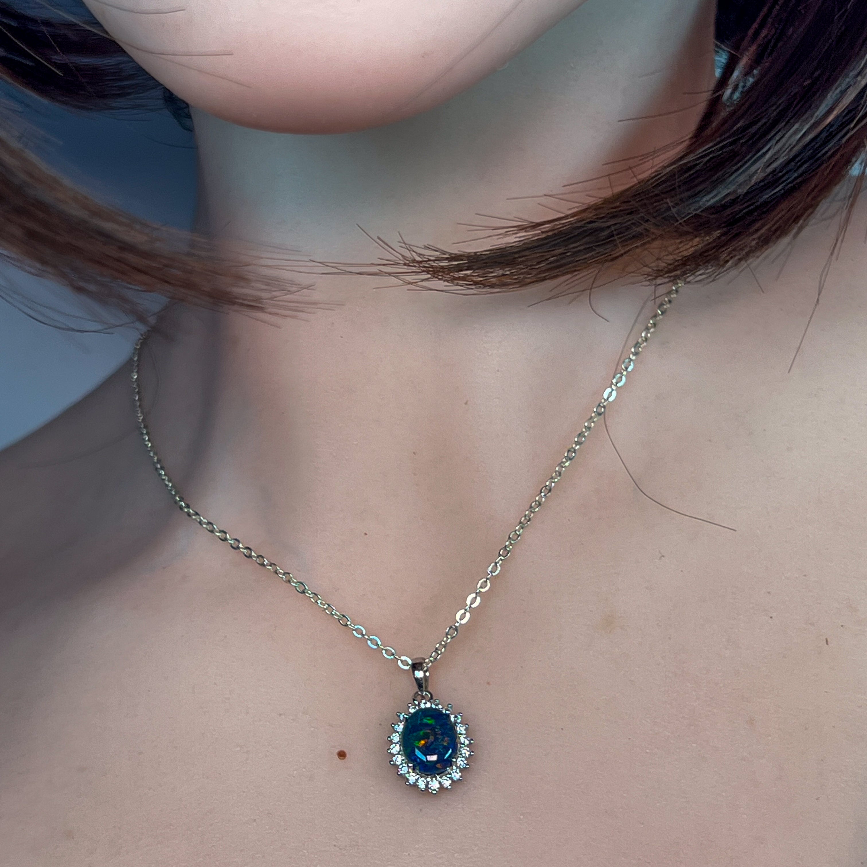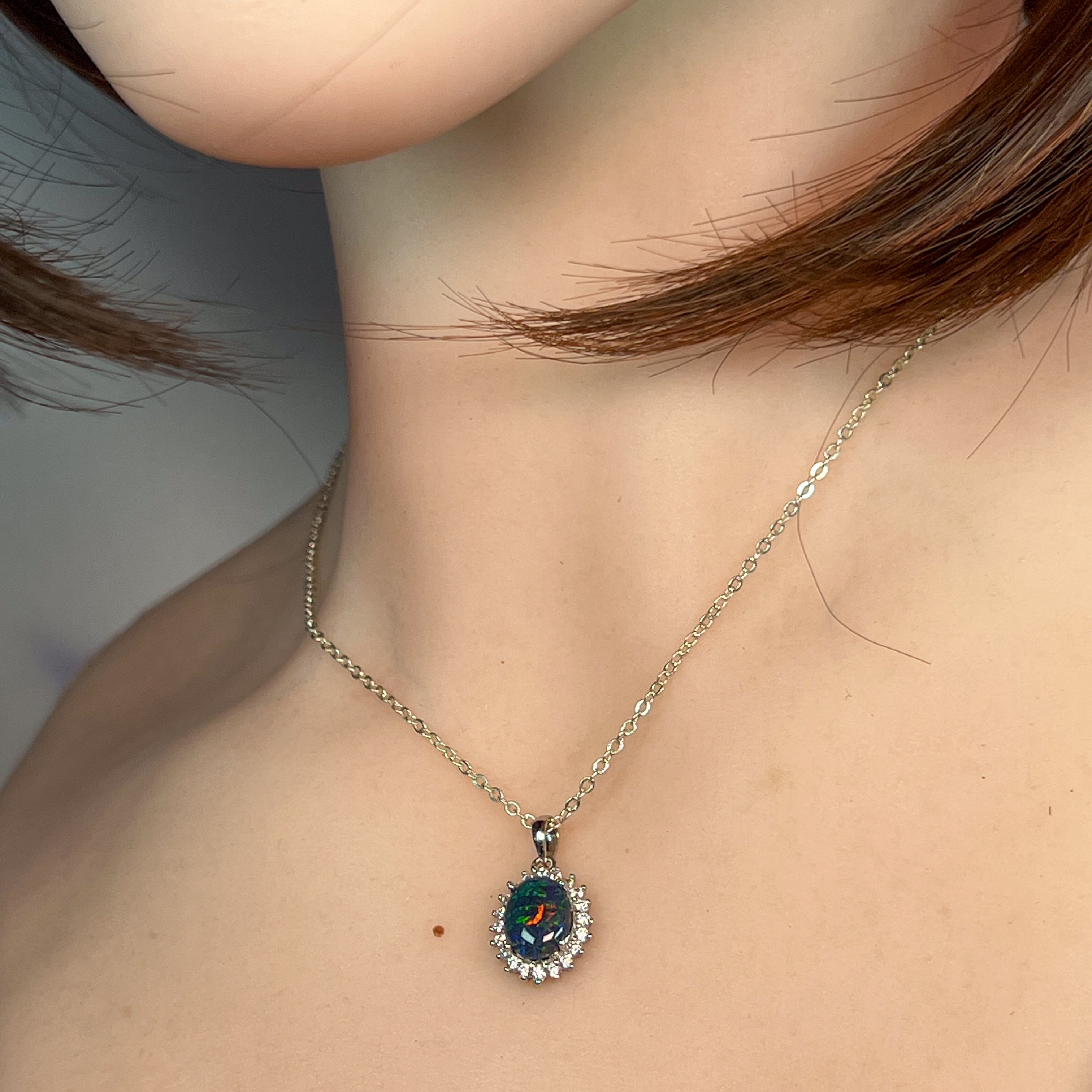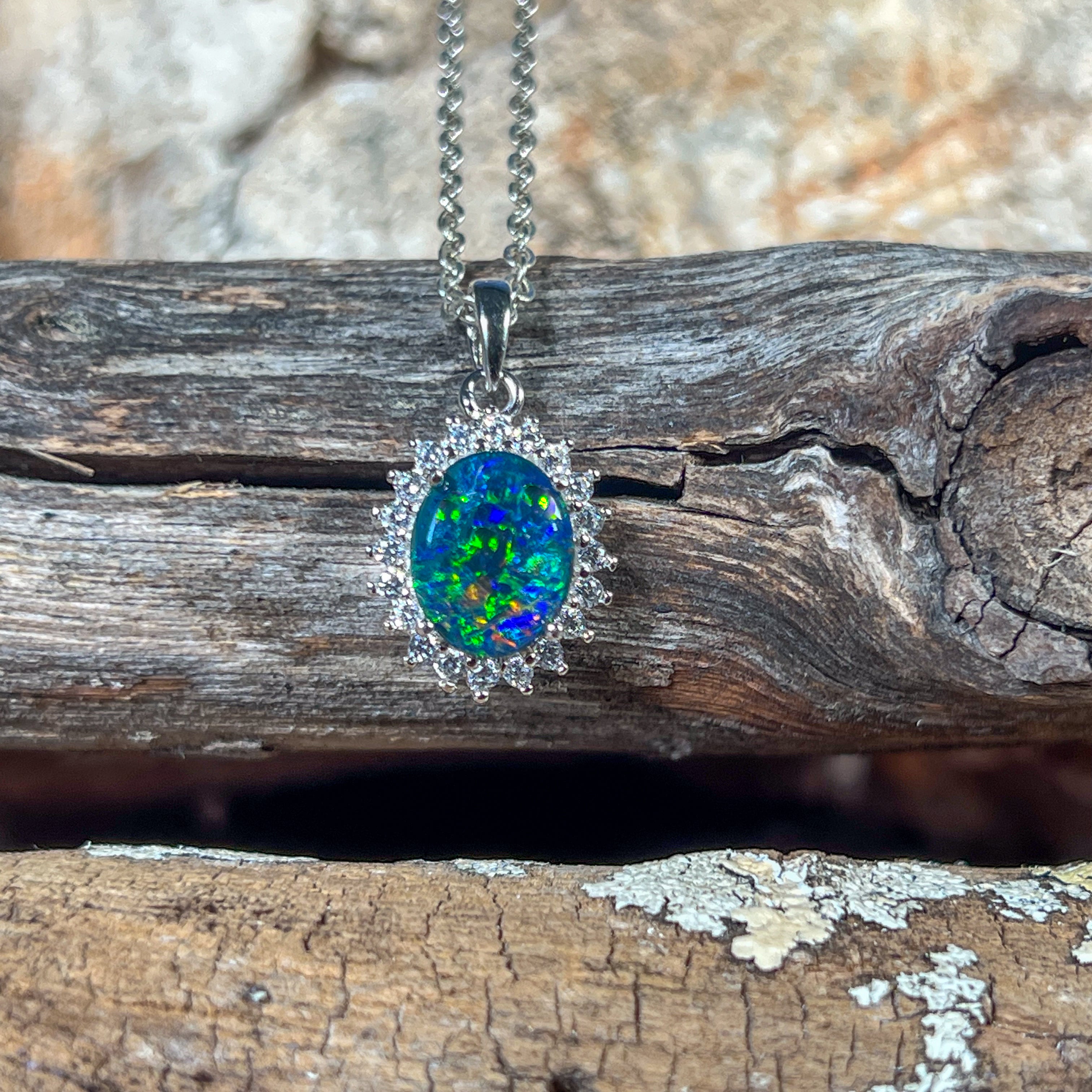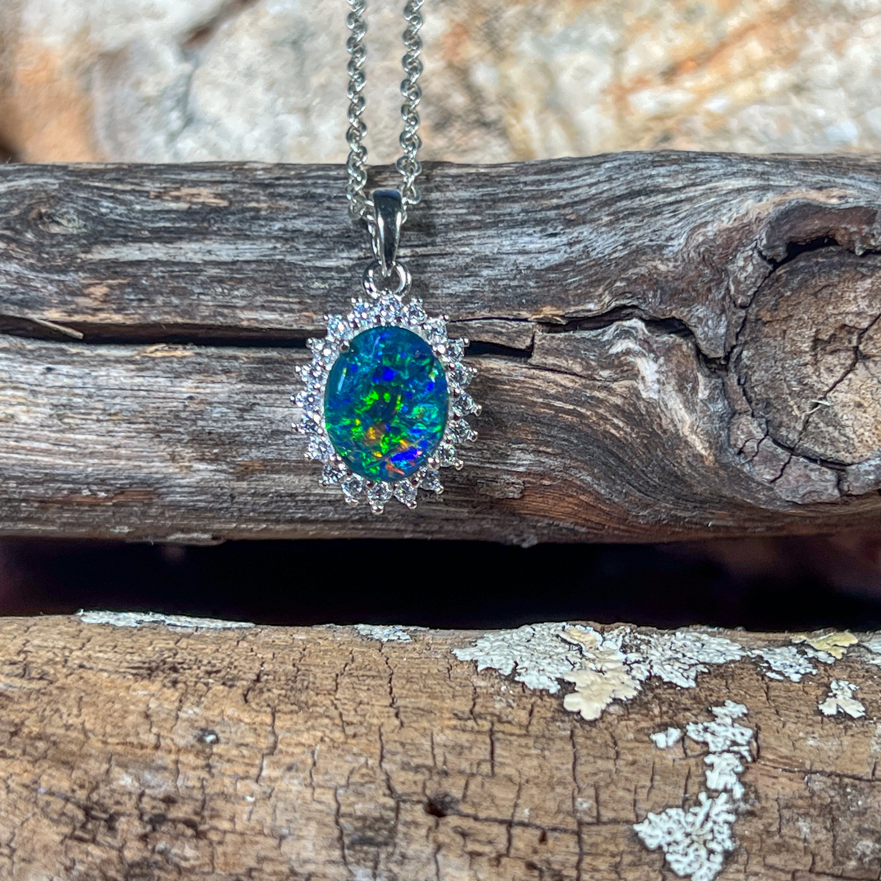 Sterling Silver Opal triplet 10x8mm cluster pendant