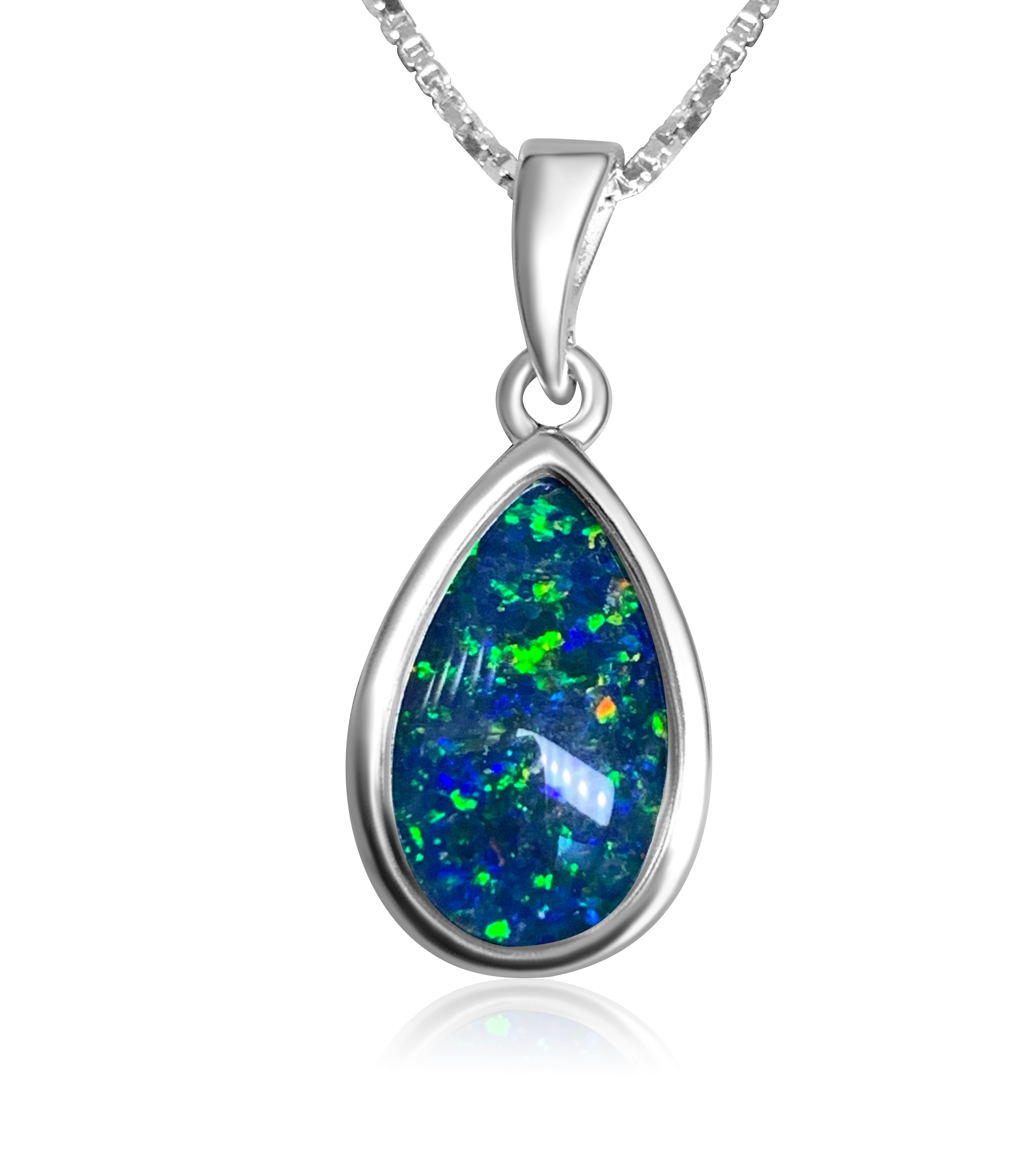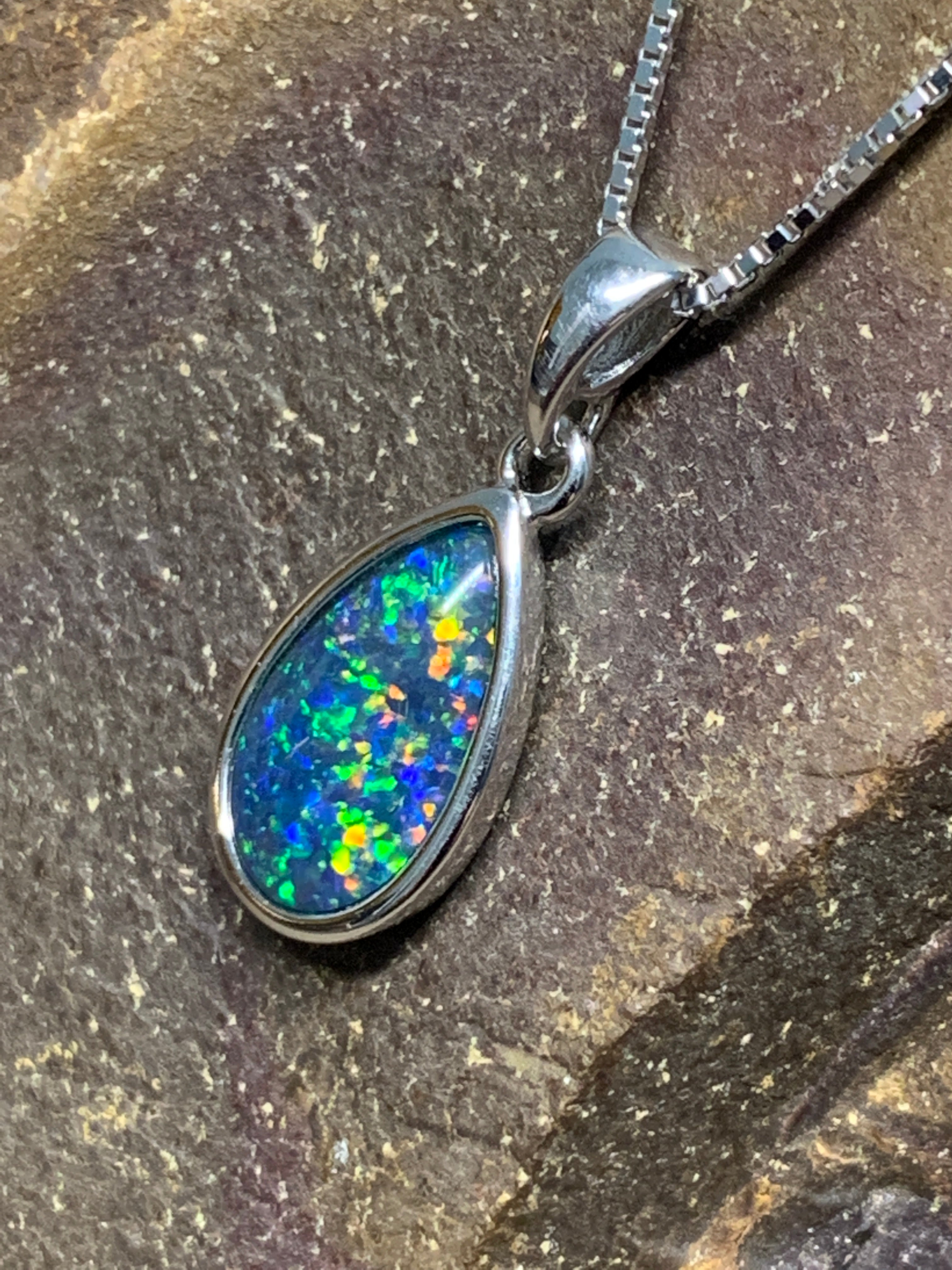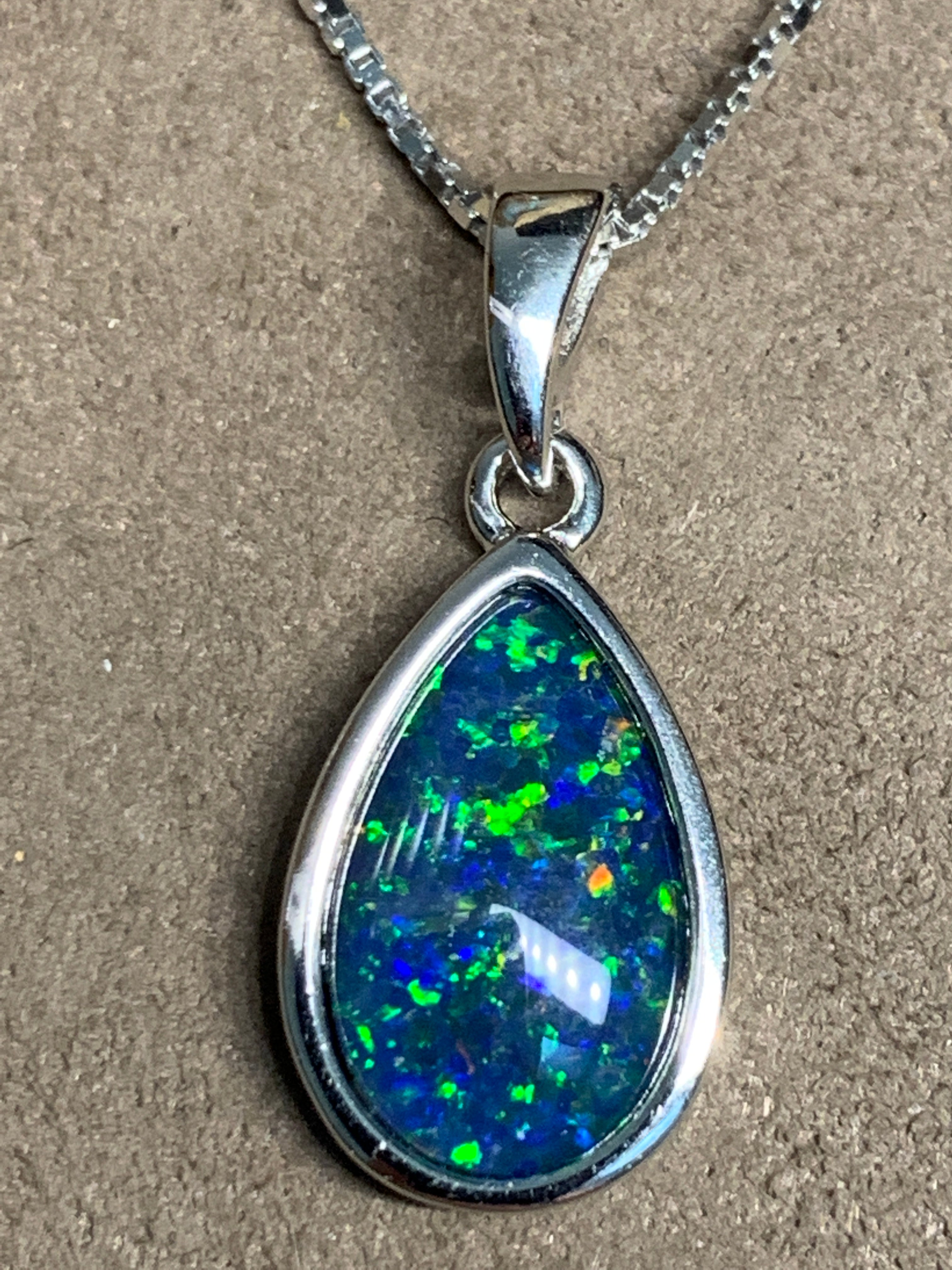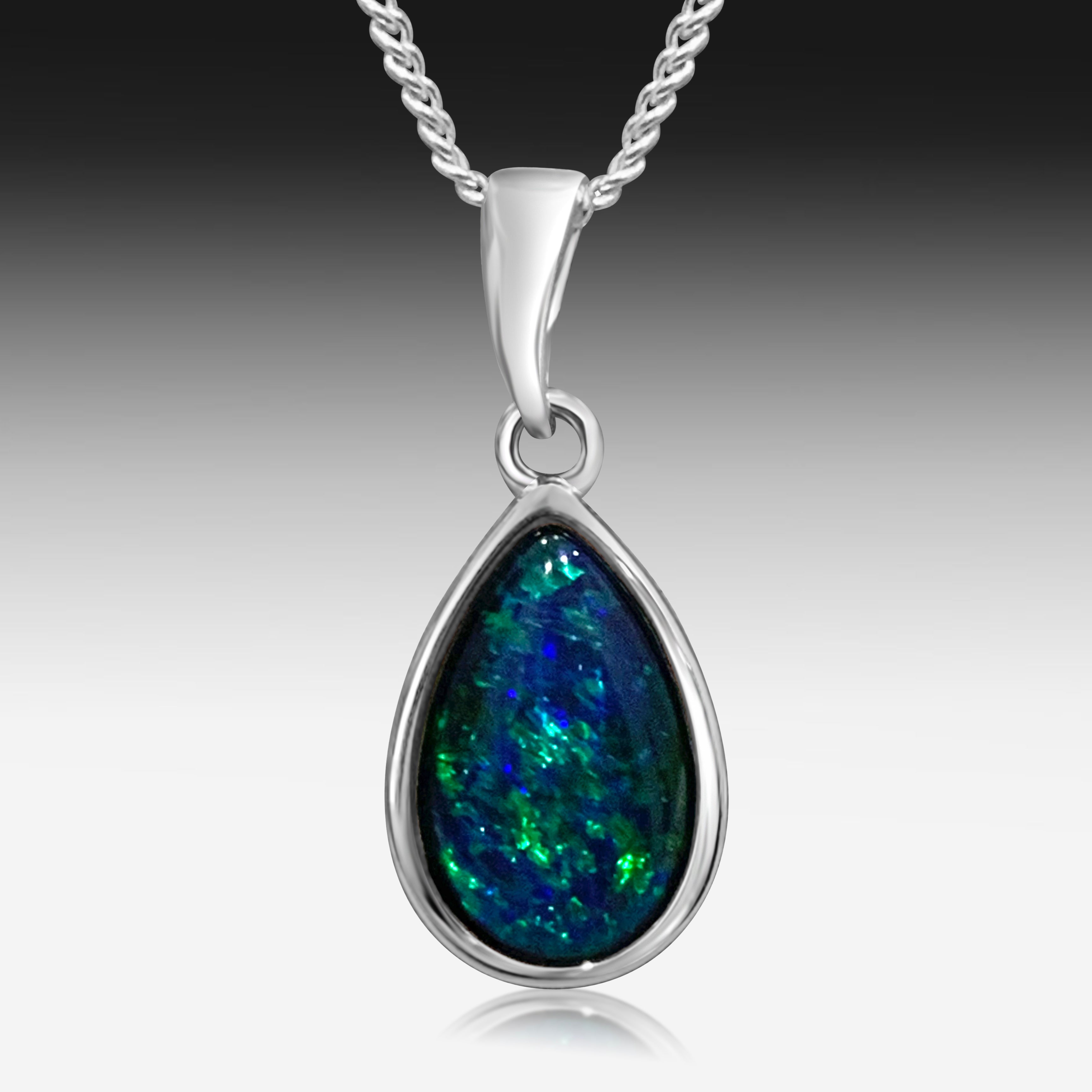 Suit up for adventure with this eye-catching Sterling Silver Opal Triplet Pendant! Its striking tear drop shape offers a daring style sensation that's sure to turn heads. Add a touch of glamour and elegance to your look with this unique and stylish opal necklace. Dare to be different!