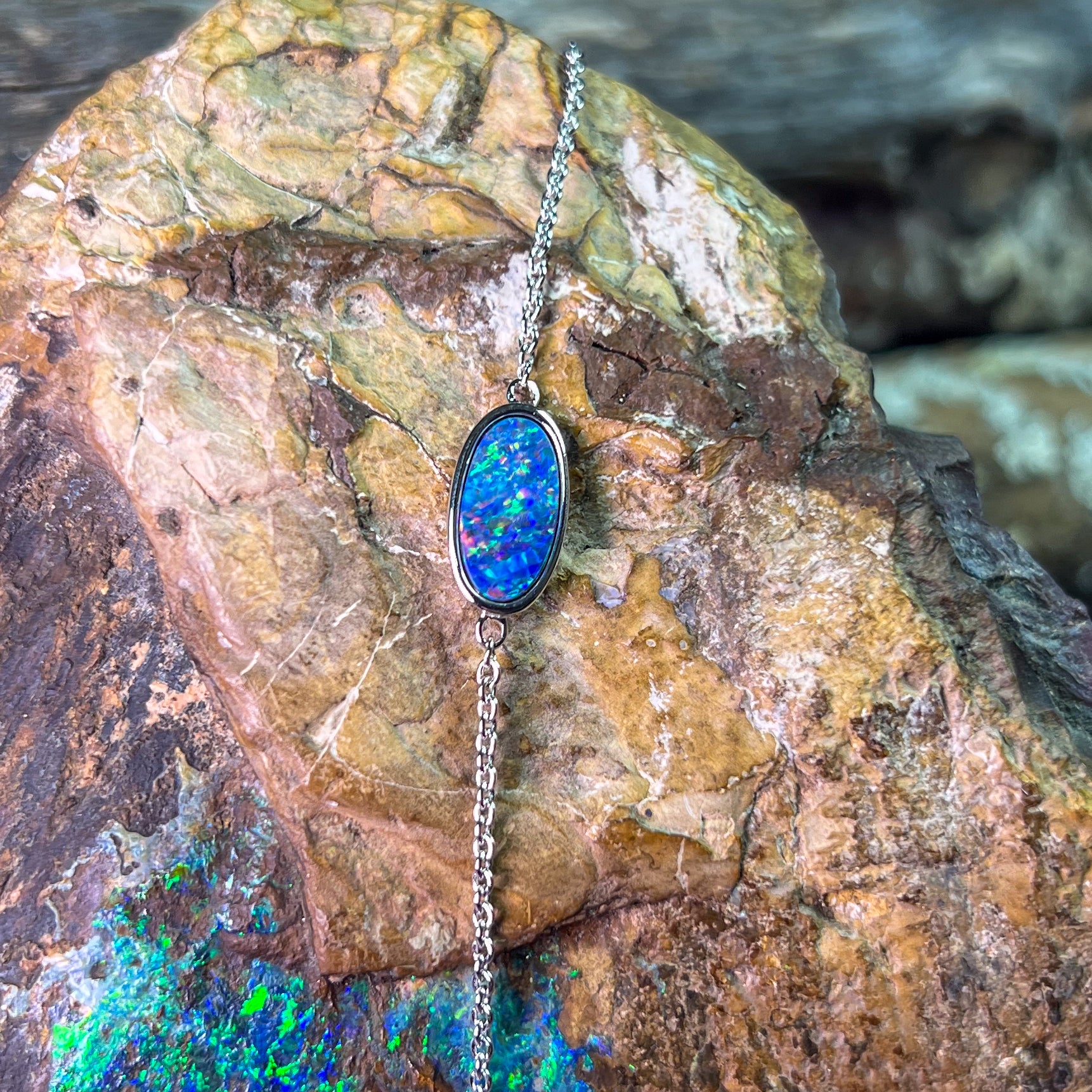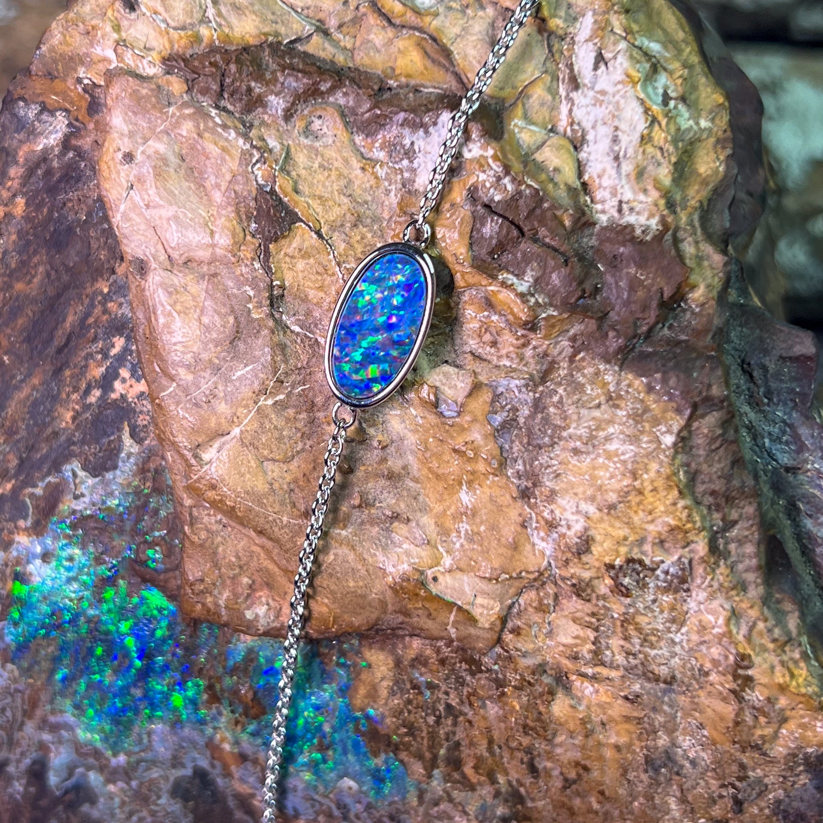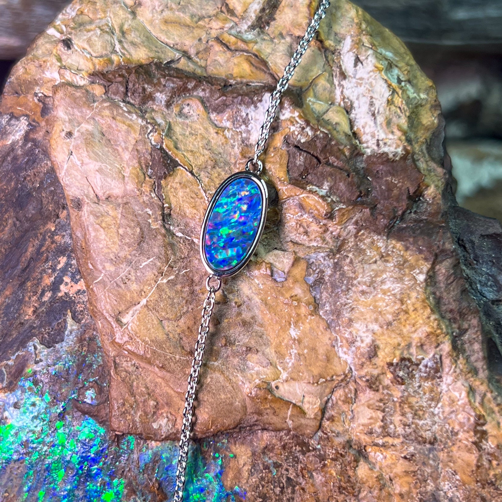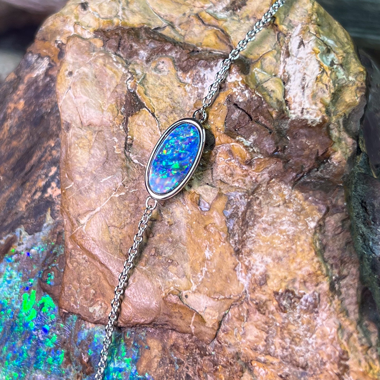 Experience the stunning beauty of our Sterling Silver Oval Opal doublet bracelet. Featuring a solitaire oval design, this 12x6mm bracelet is crafted with quality sterling silver for a luxurious touch. Adorn your wrist with the brilliance and elegance of this opal doublet piece.