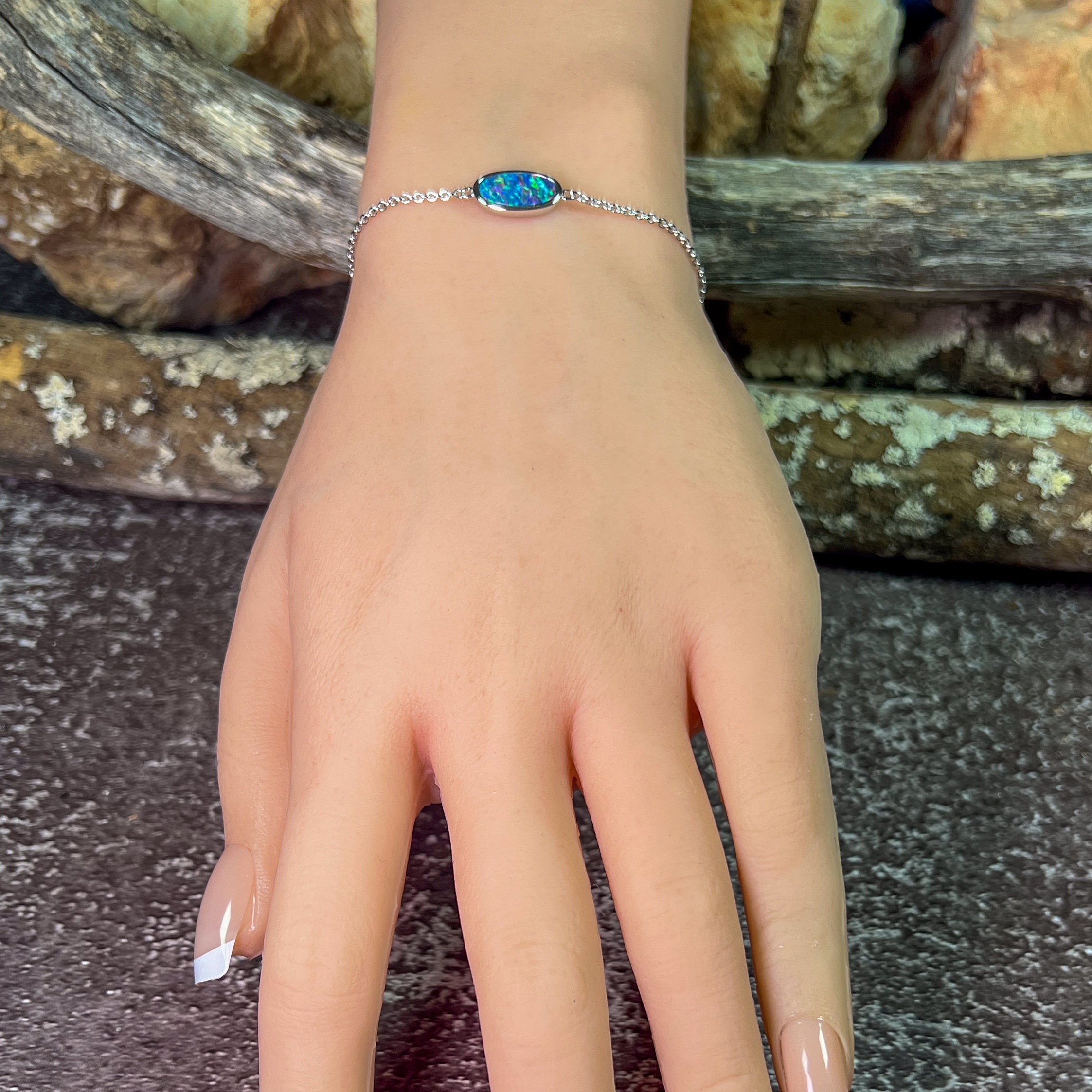 Sterling Silver Oval Opal doublet 12x6mm bracelet